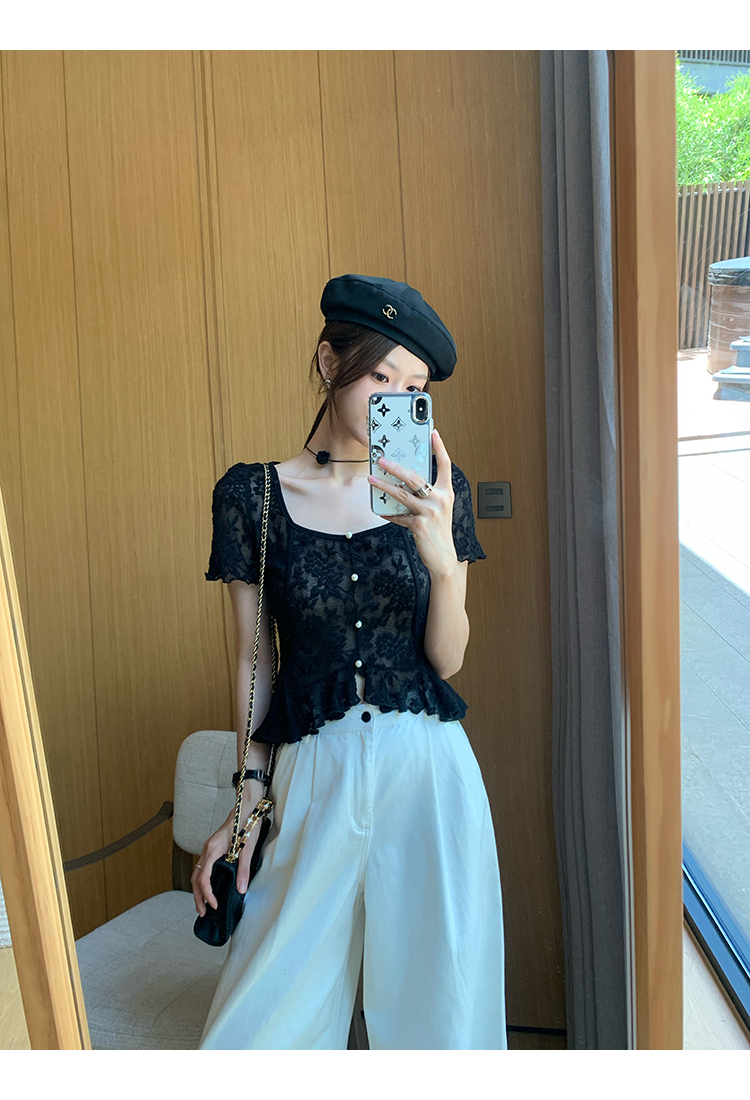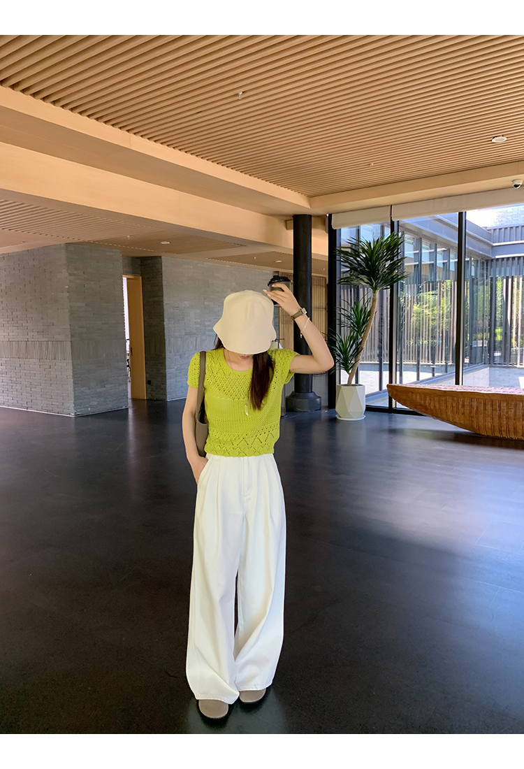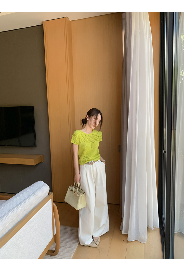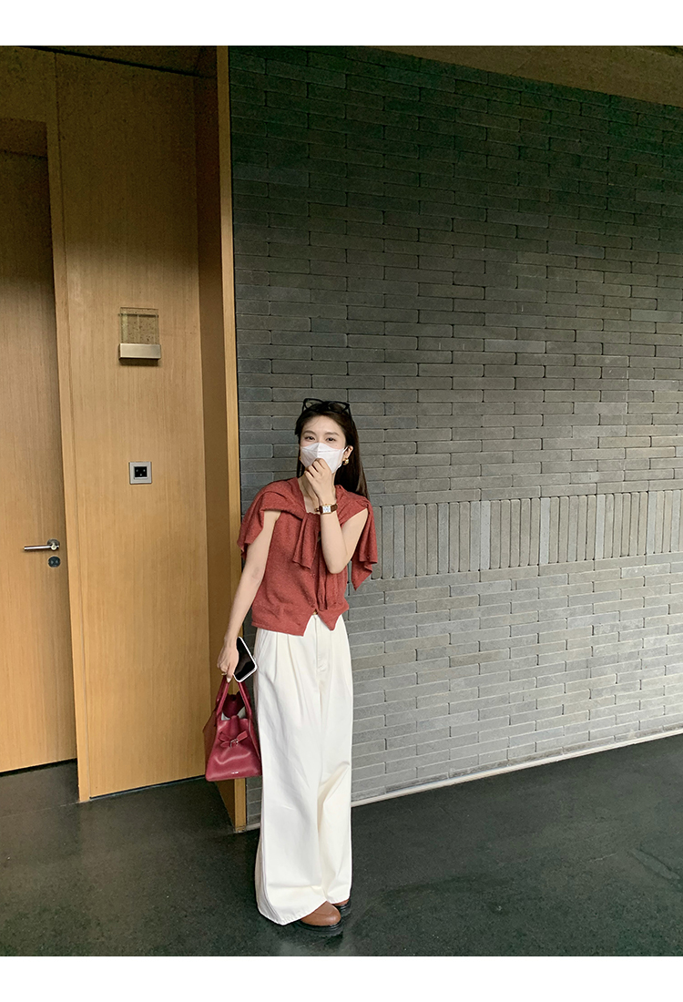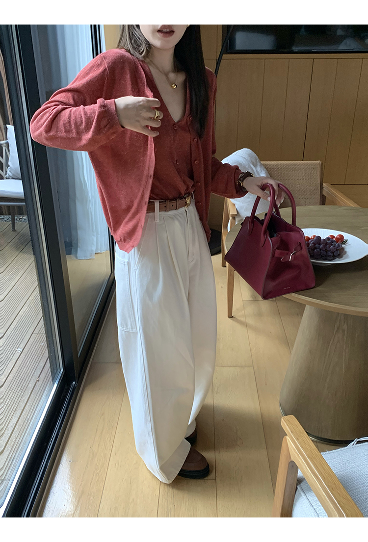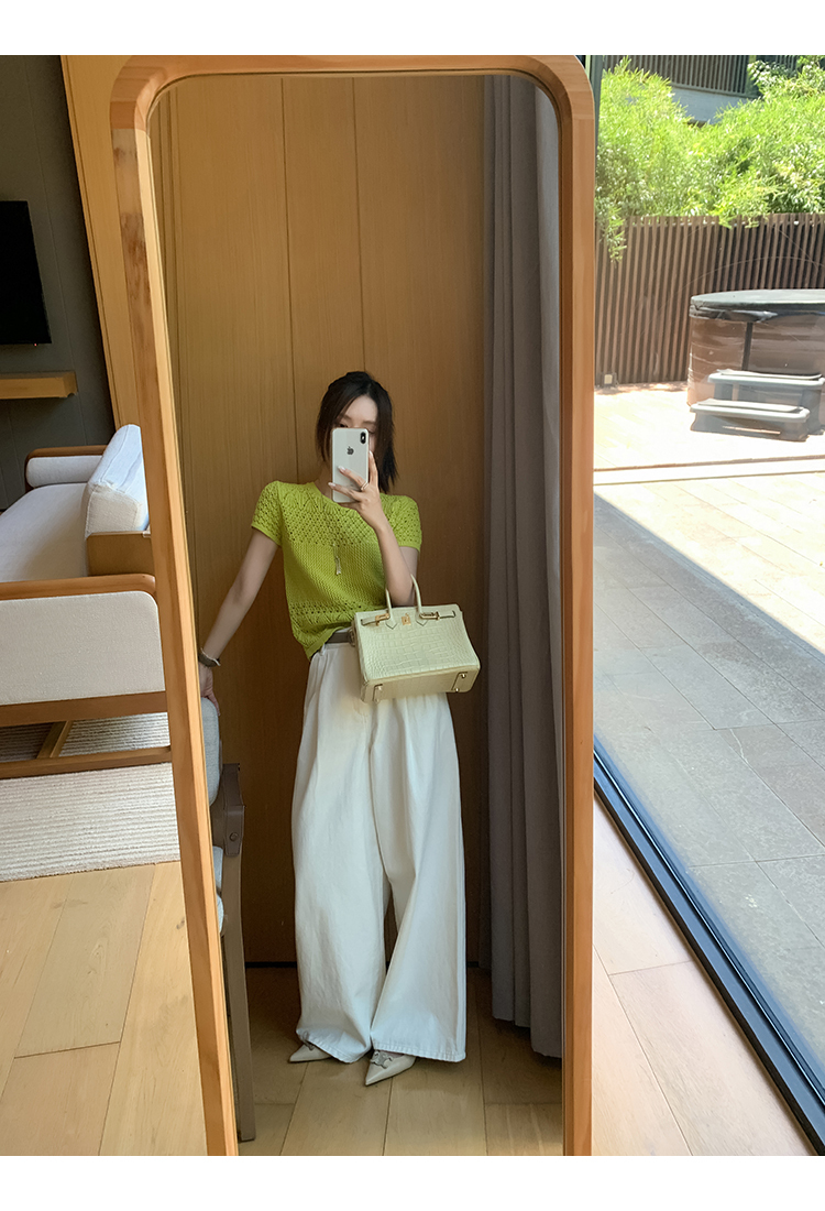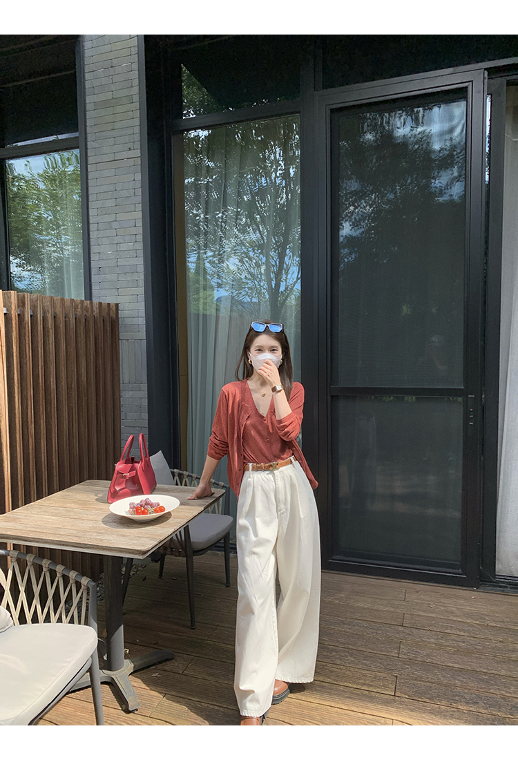 *o-ha-you*【FMQK2042077】私服原色白牛純棉牛仔百搭天菜神褲顯瘦闊腿直筒牛仔褲