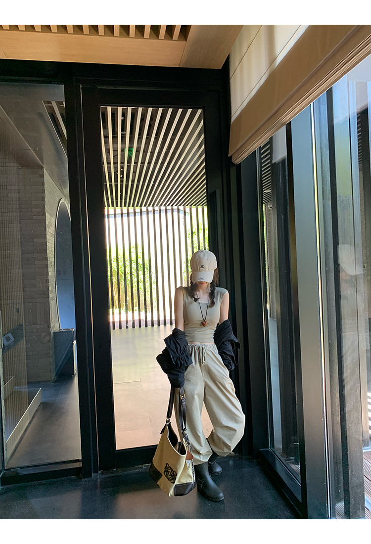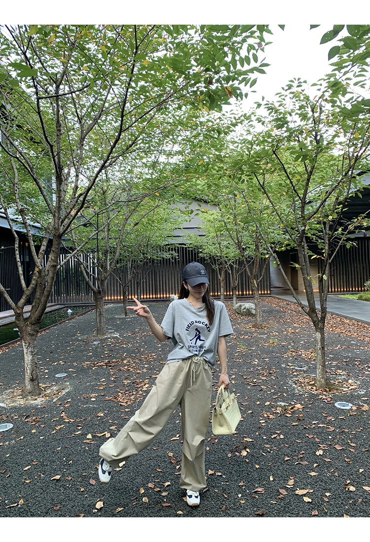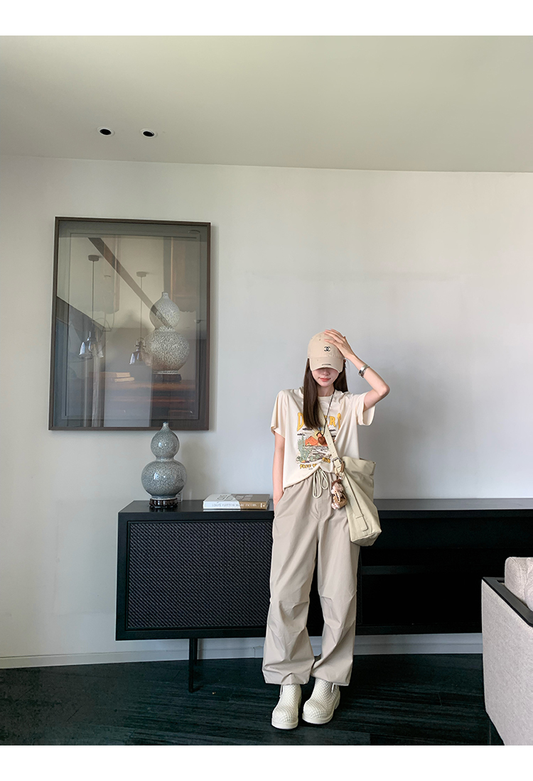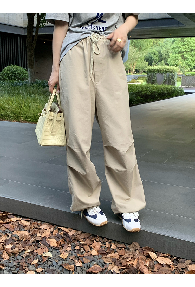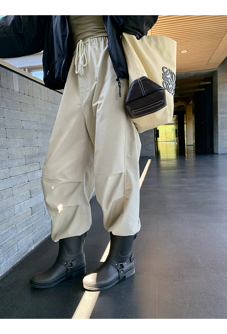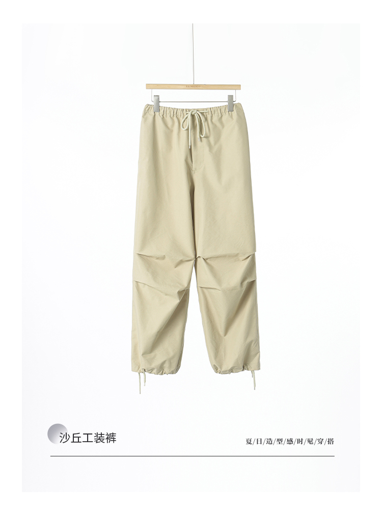 *o-ha-you*【FMQK2043013】沙丘工裝褲高密布料寬鬆皺褶抽繩鬆緊腰兩穿束腳休閒褲