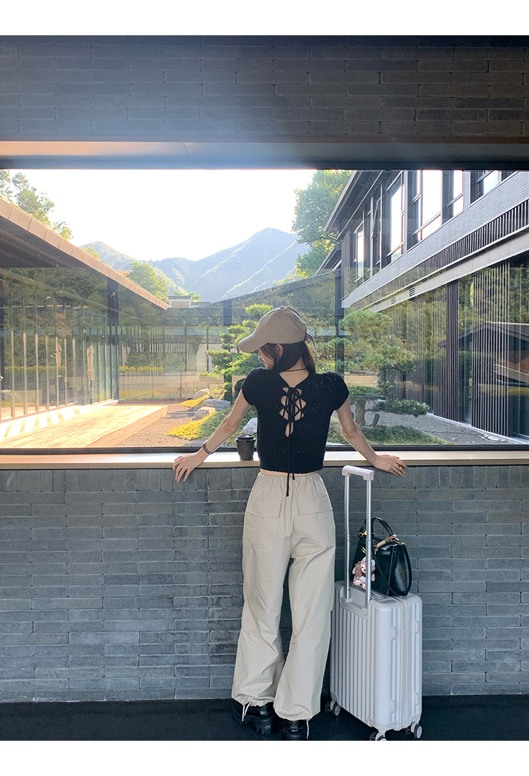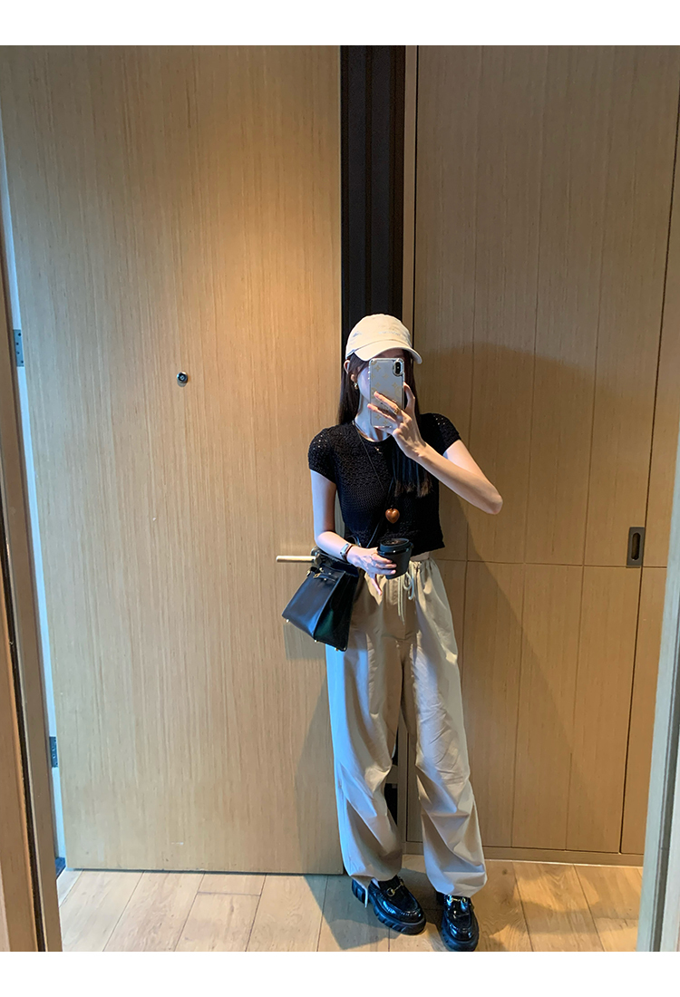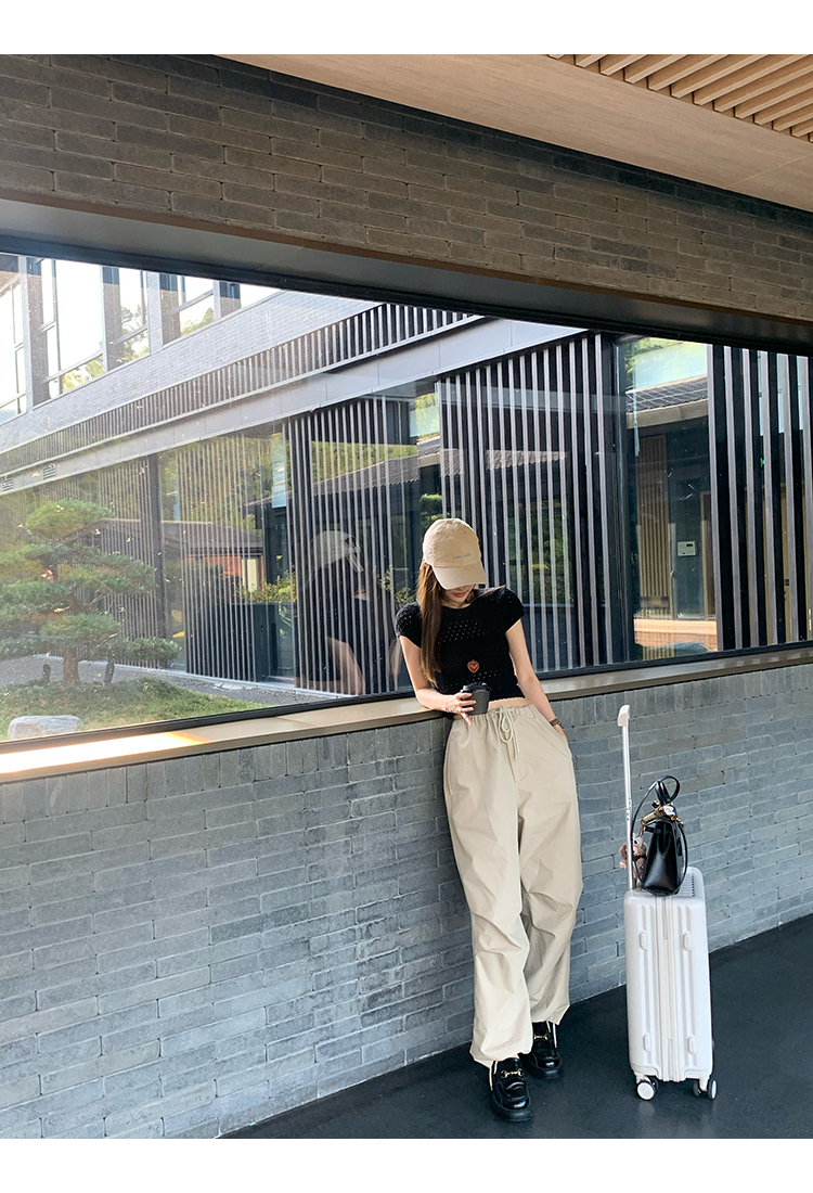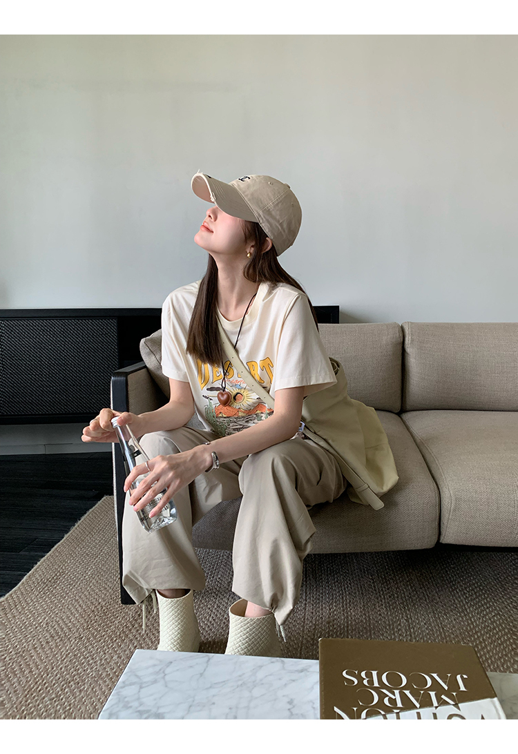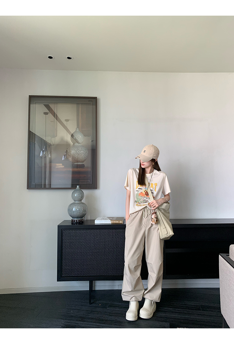 *o-ha-you*【FMQK2043013】沙丘工裝褲高密布料寬鬆皺褶抽繩鬆緊腰兩穿束腳休閒褲
