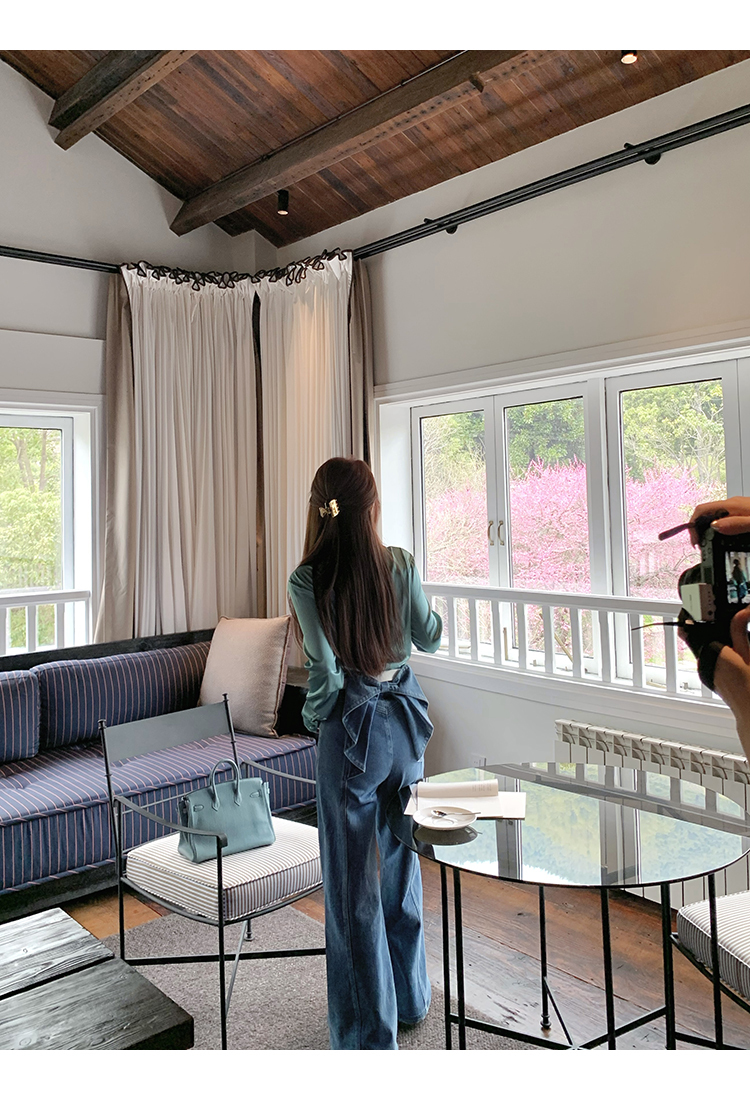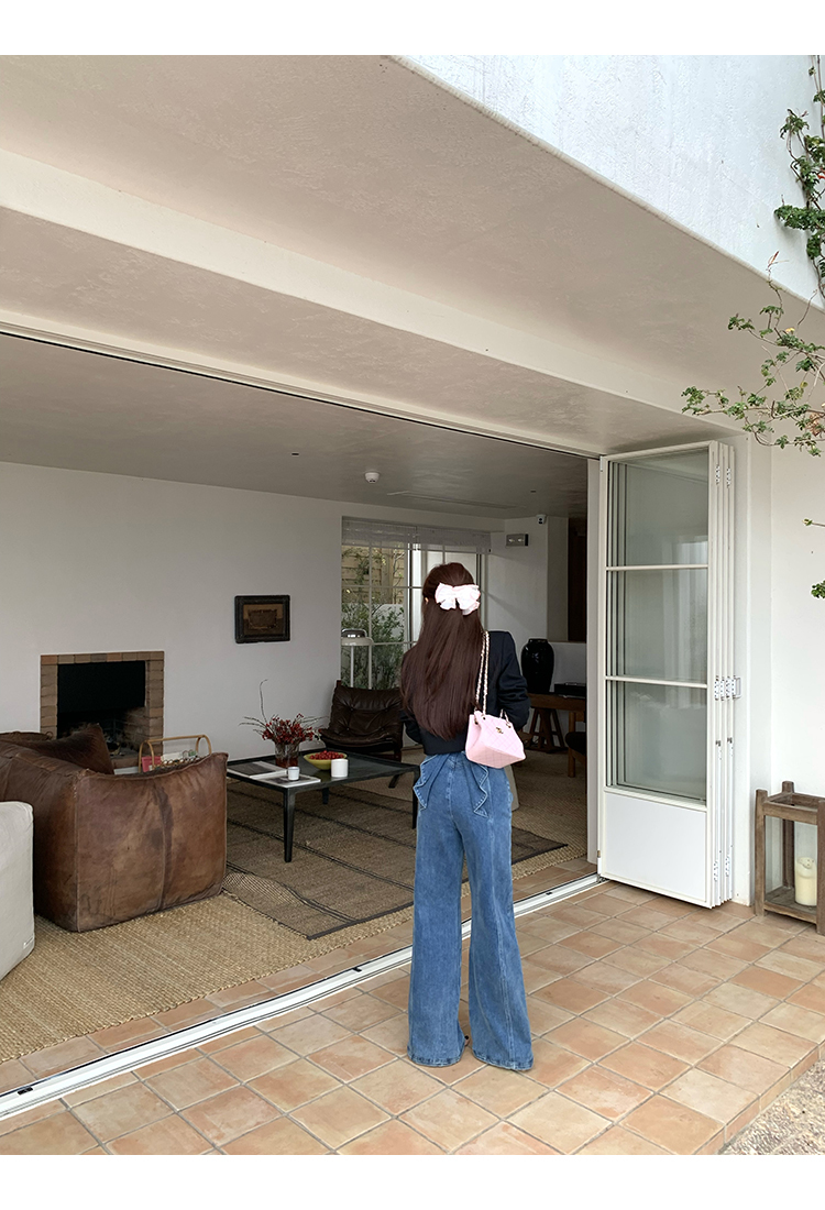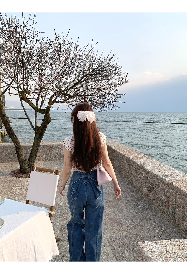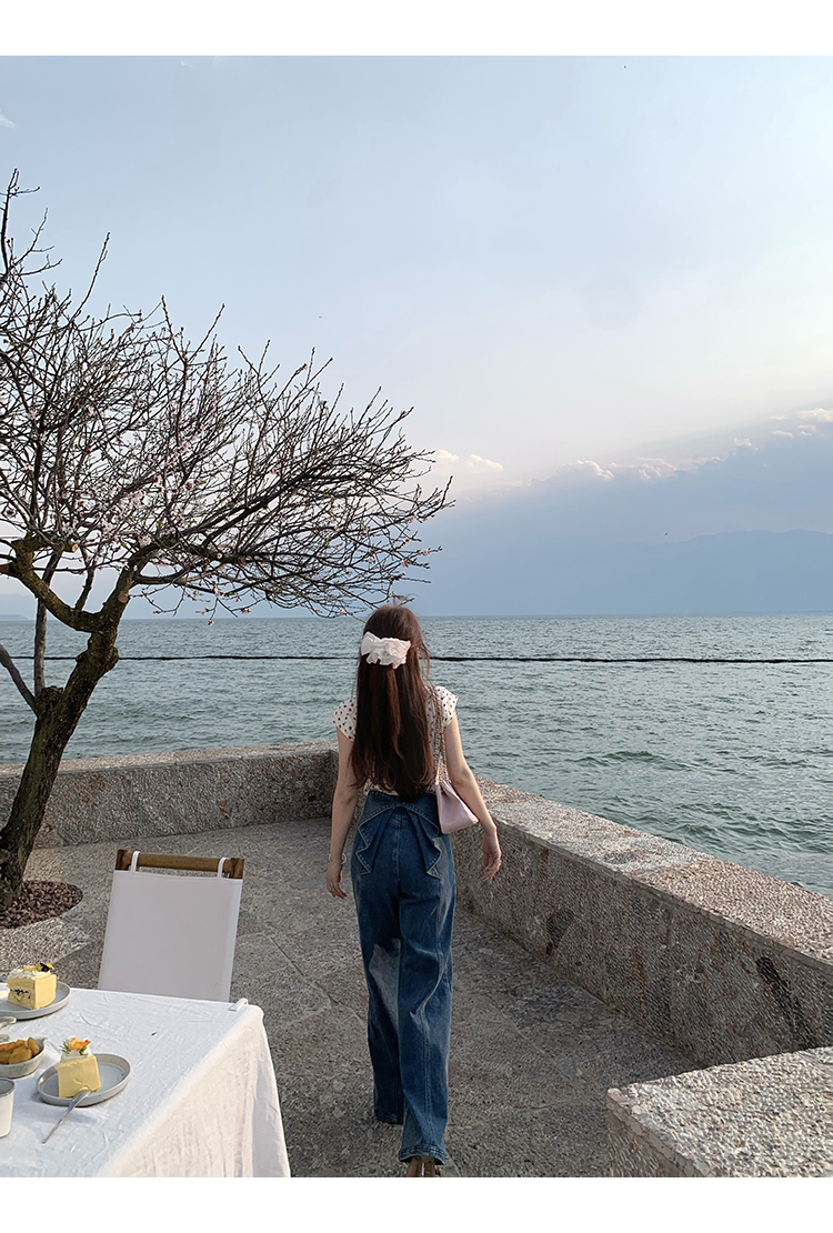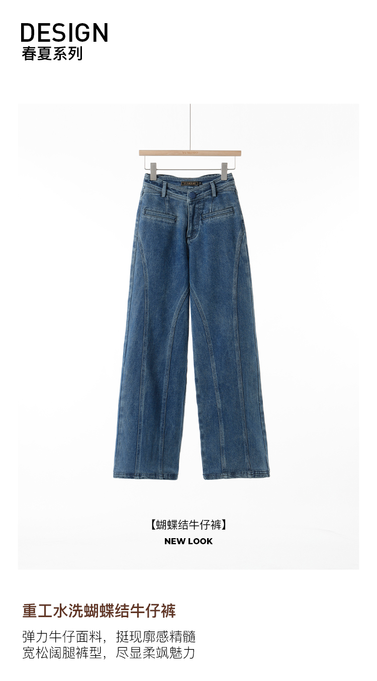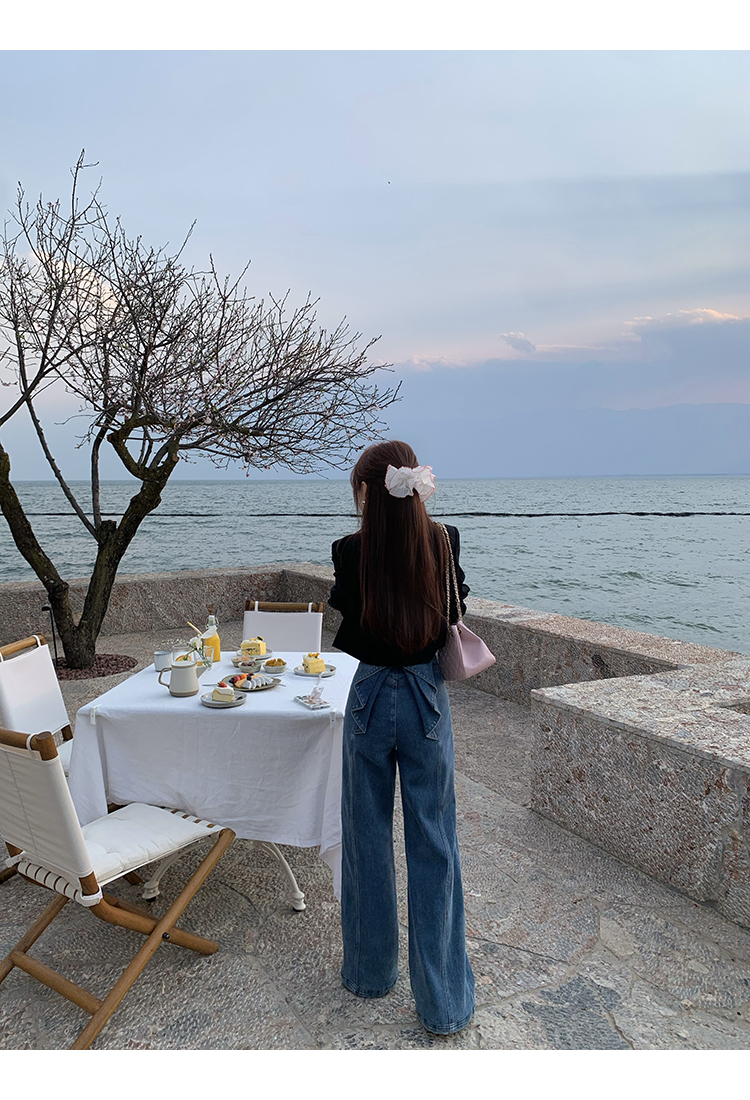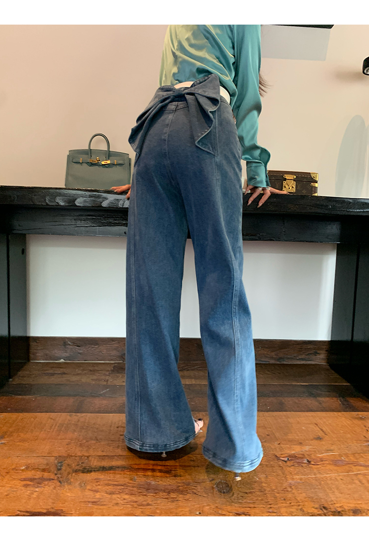 *o-ha-you*【FMQKA10012】蝴蝶結牛仔褲 天繎高棉彈性復古水洗高腰顯瘦寬鬆直筒褲休閒褲