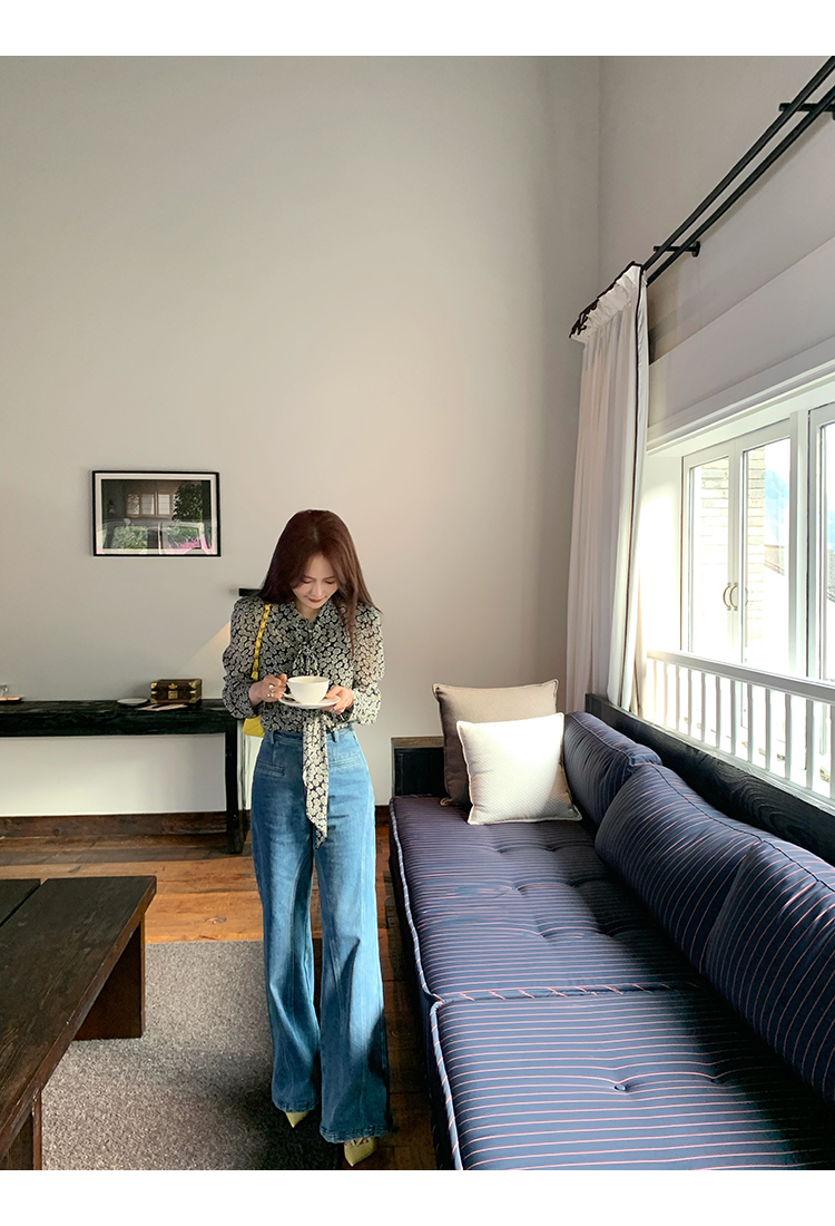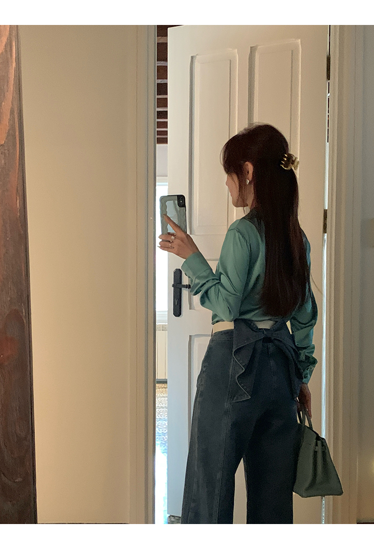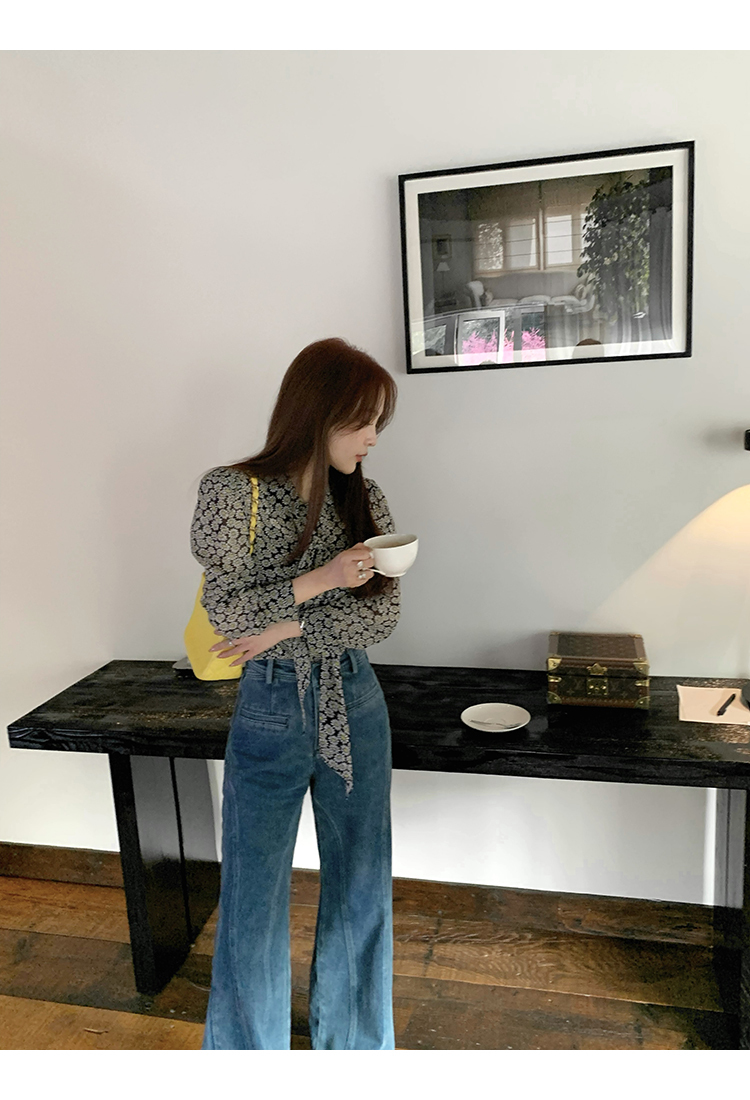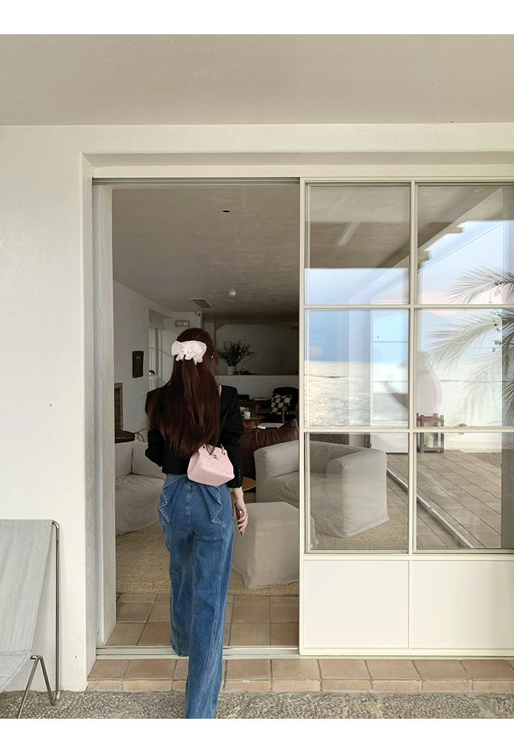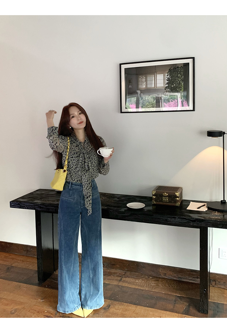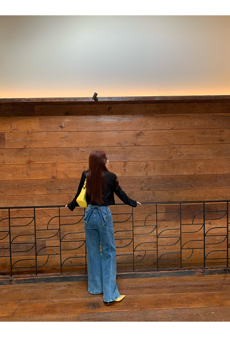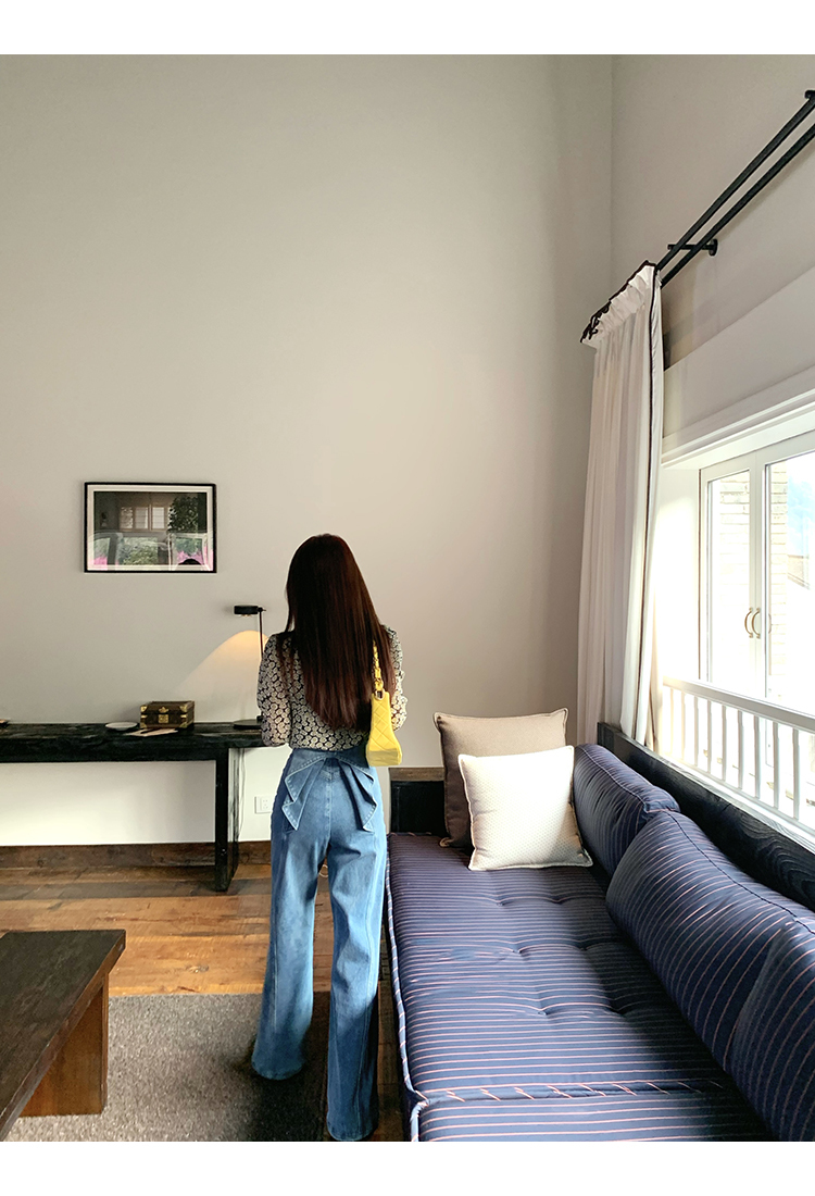 *o-ha-you*【FMQKA10012】蝴蝶結牛仔褲 天繎高棉彈性復古水洗高腰顯瘦寬鬆直筒褲休閒褲