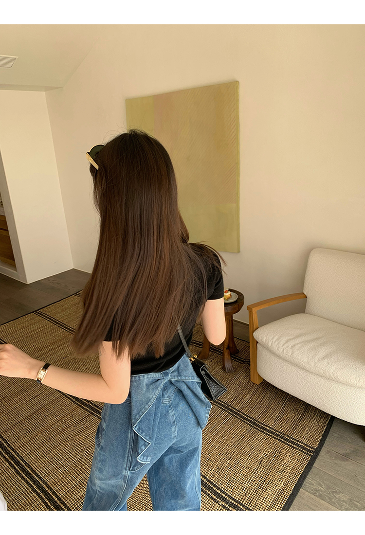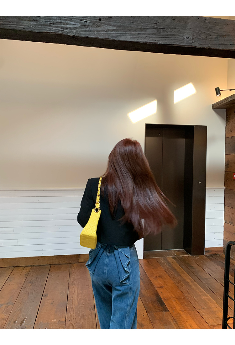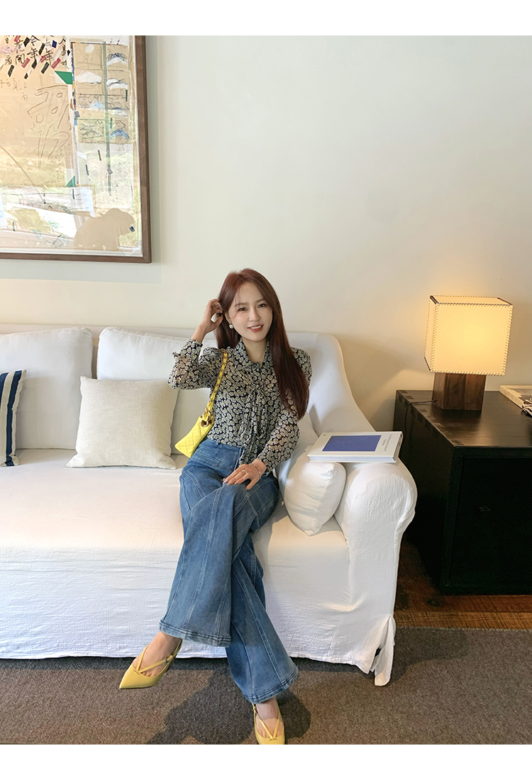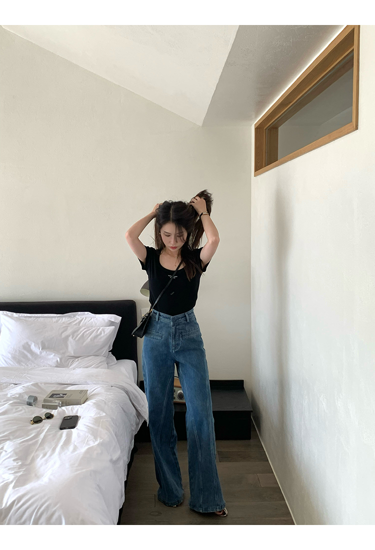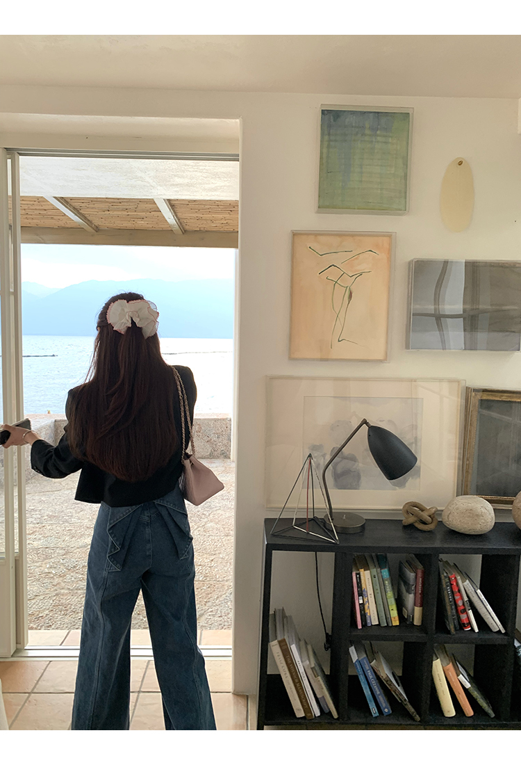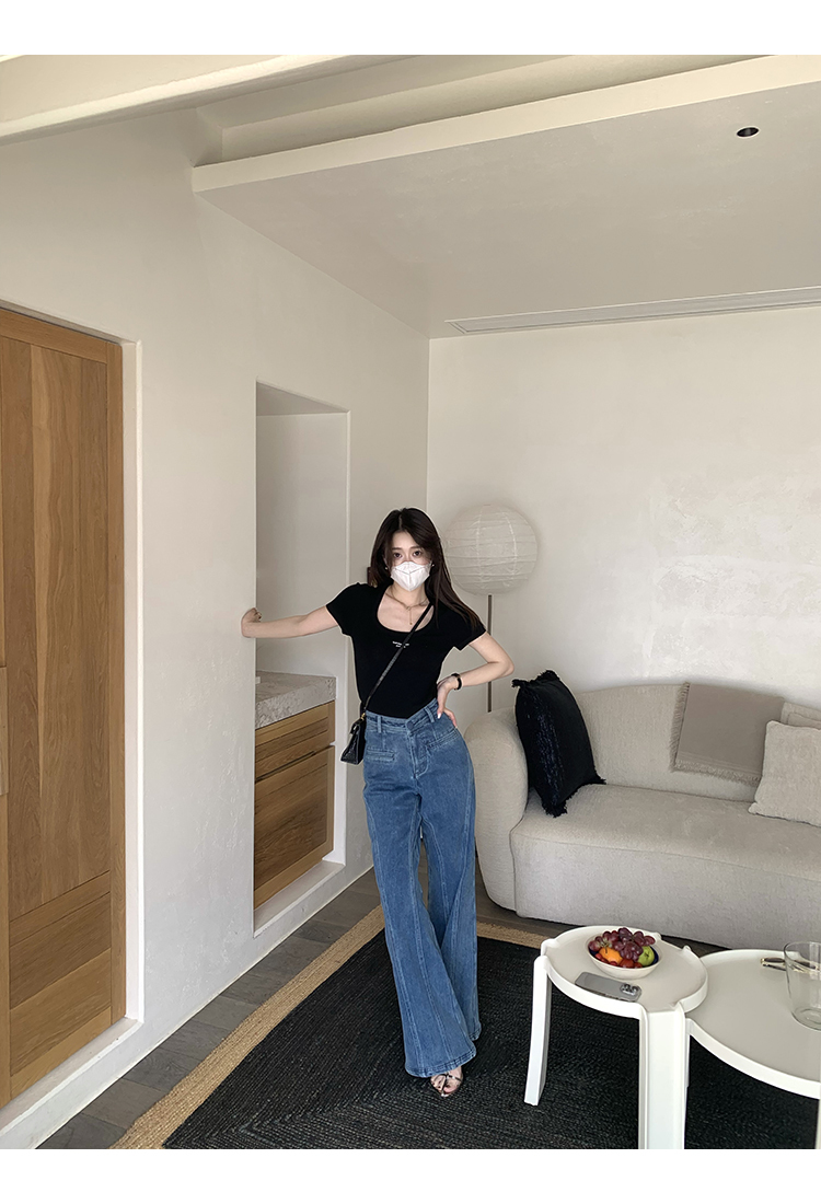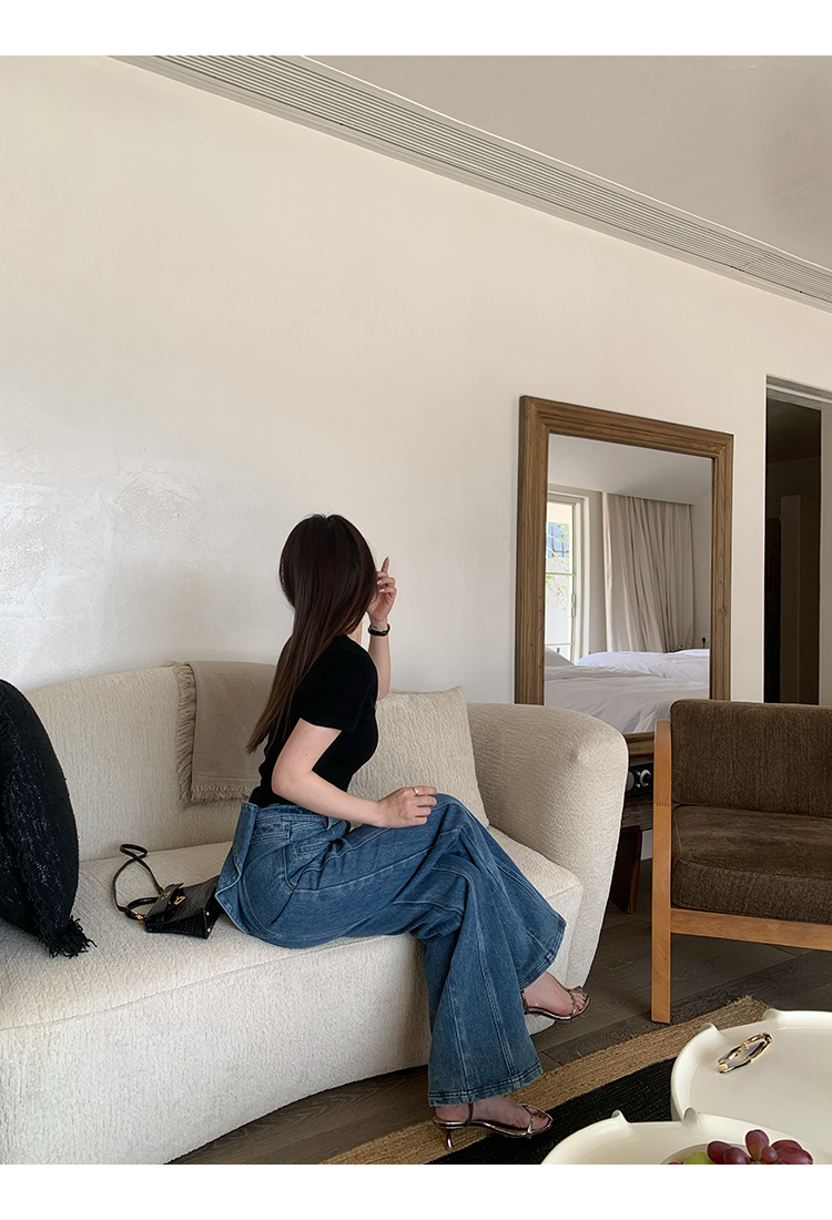 *o-ha-you*【FMQKA10012】蝴蝶結牛仔褲 天繎高棉彈性復古水洗高腰顯瘦寬鬆直筒褲休閒褲