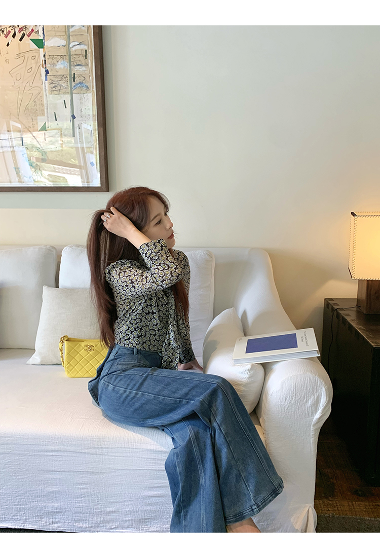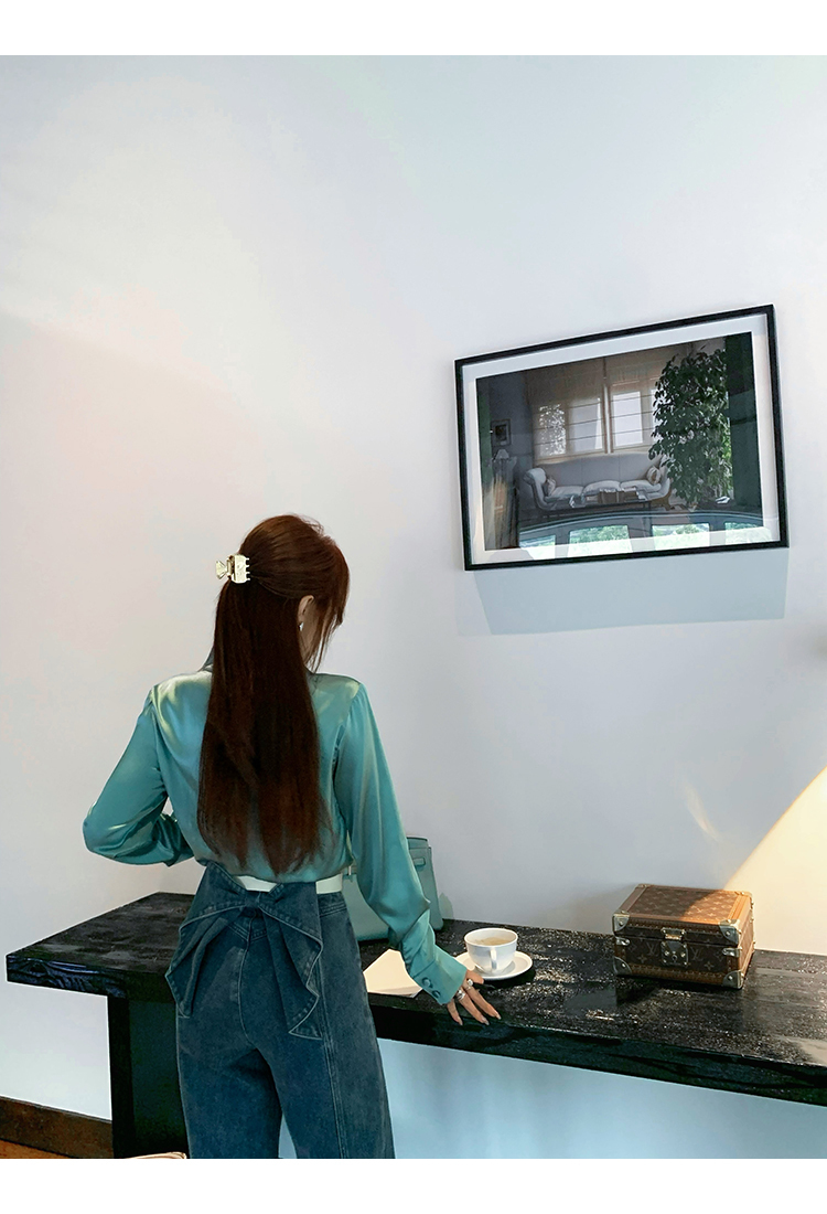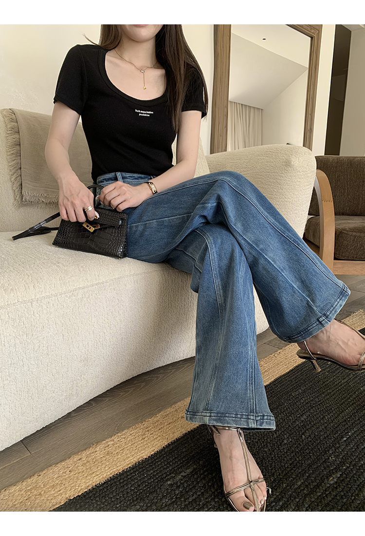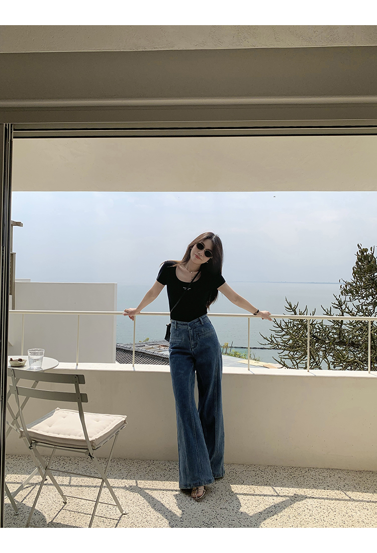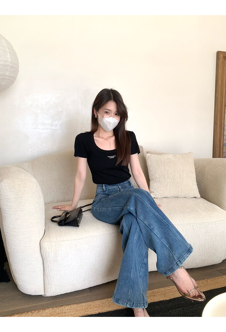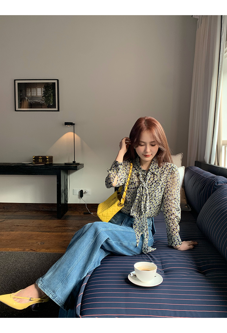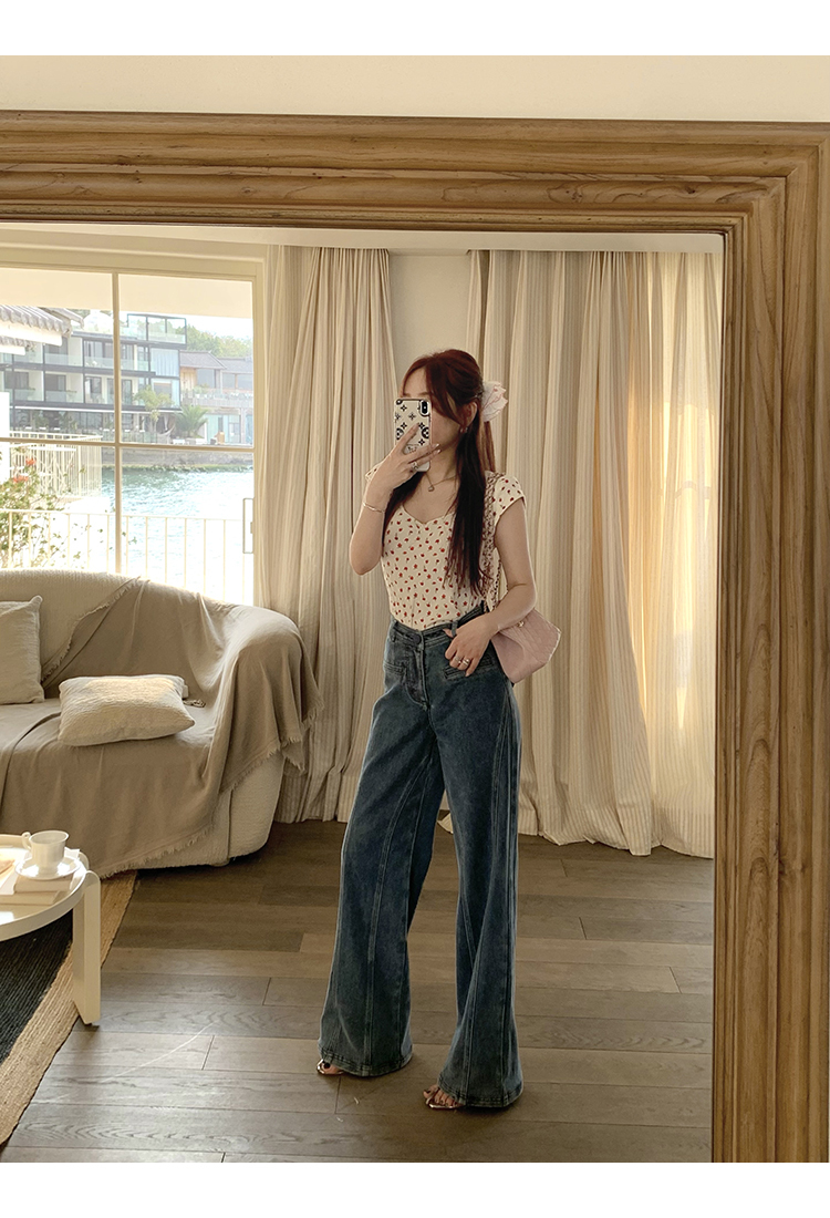 *o-ha-you*【FMQKA10012】蝴蝶結牛仔褲 天繎高棉彈性復古水洗高腰顯瘦寬鬆直筒褲休閒褲
