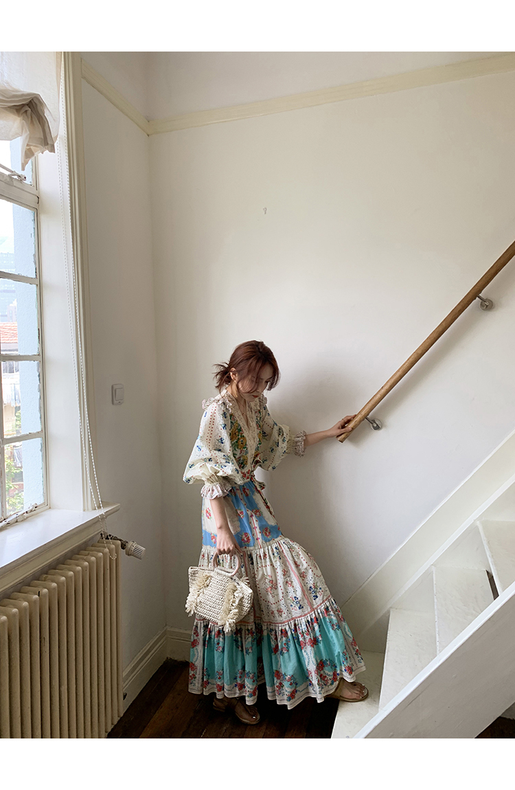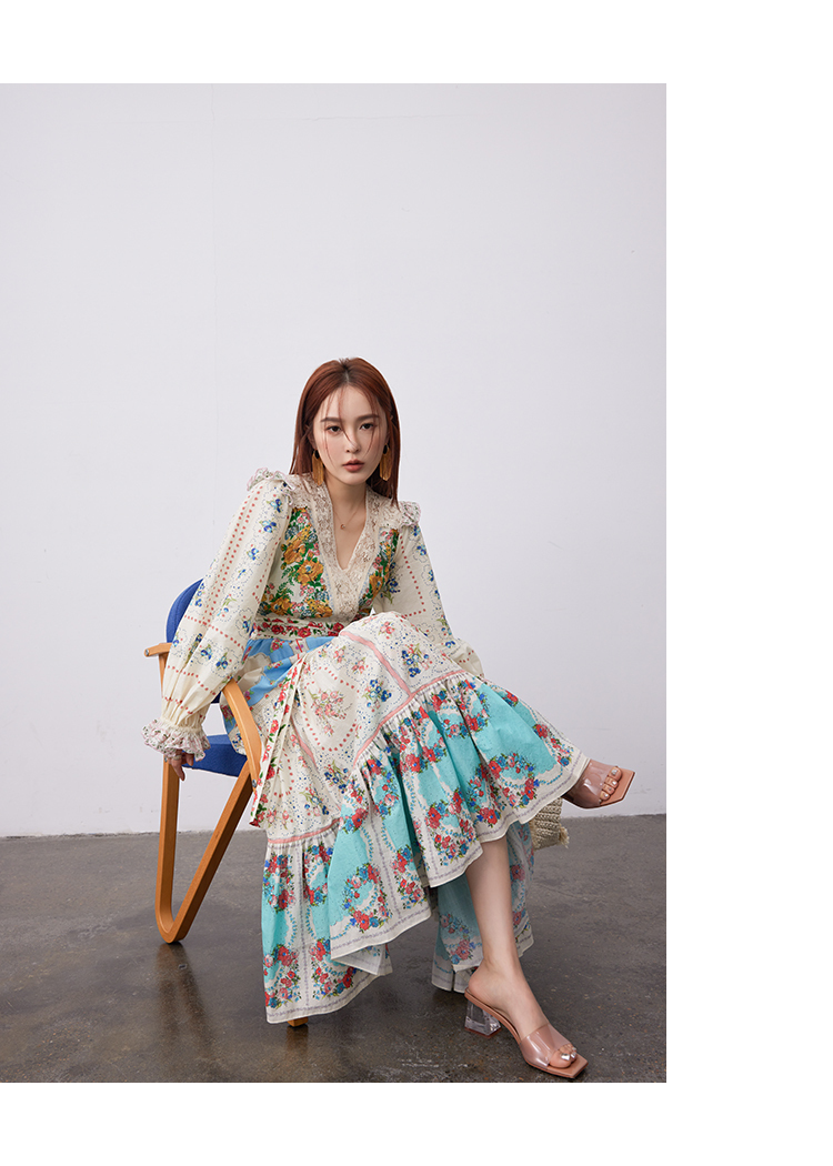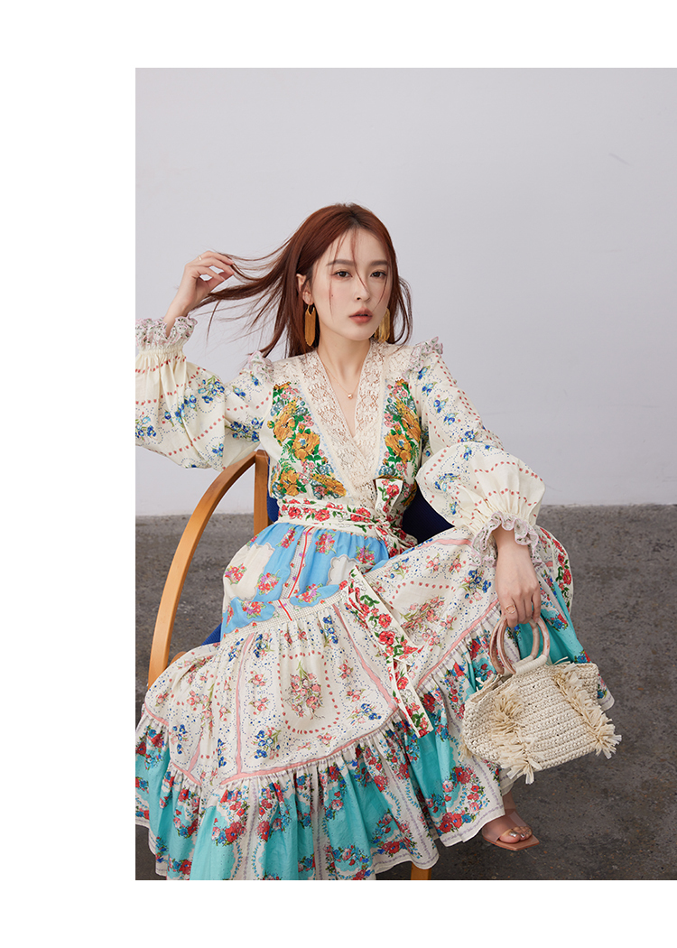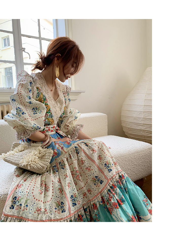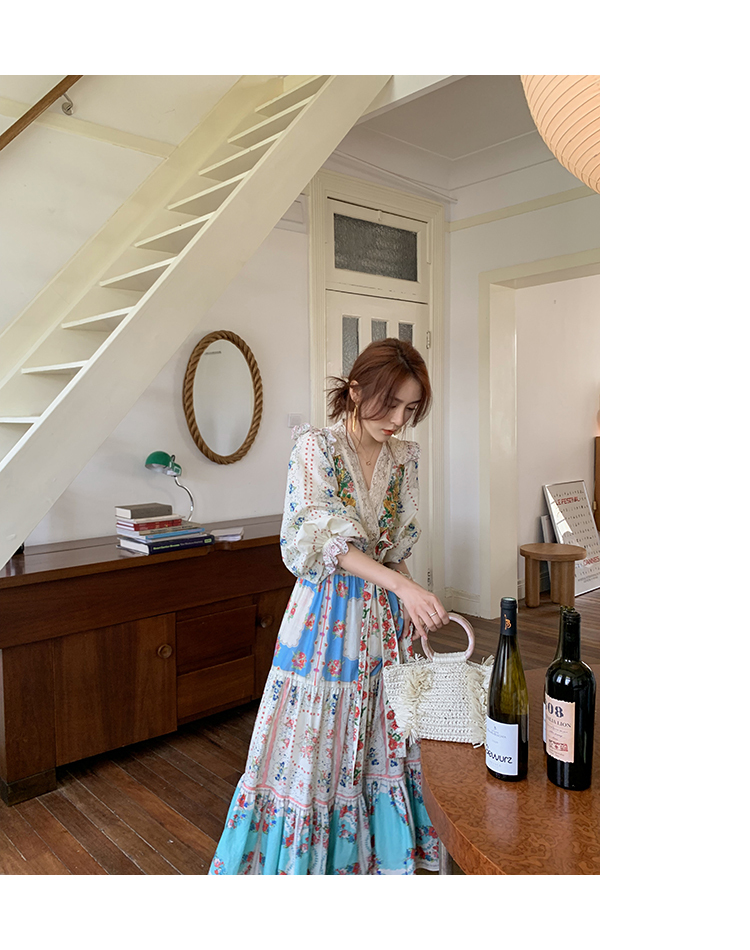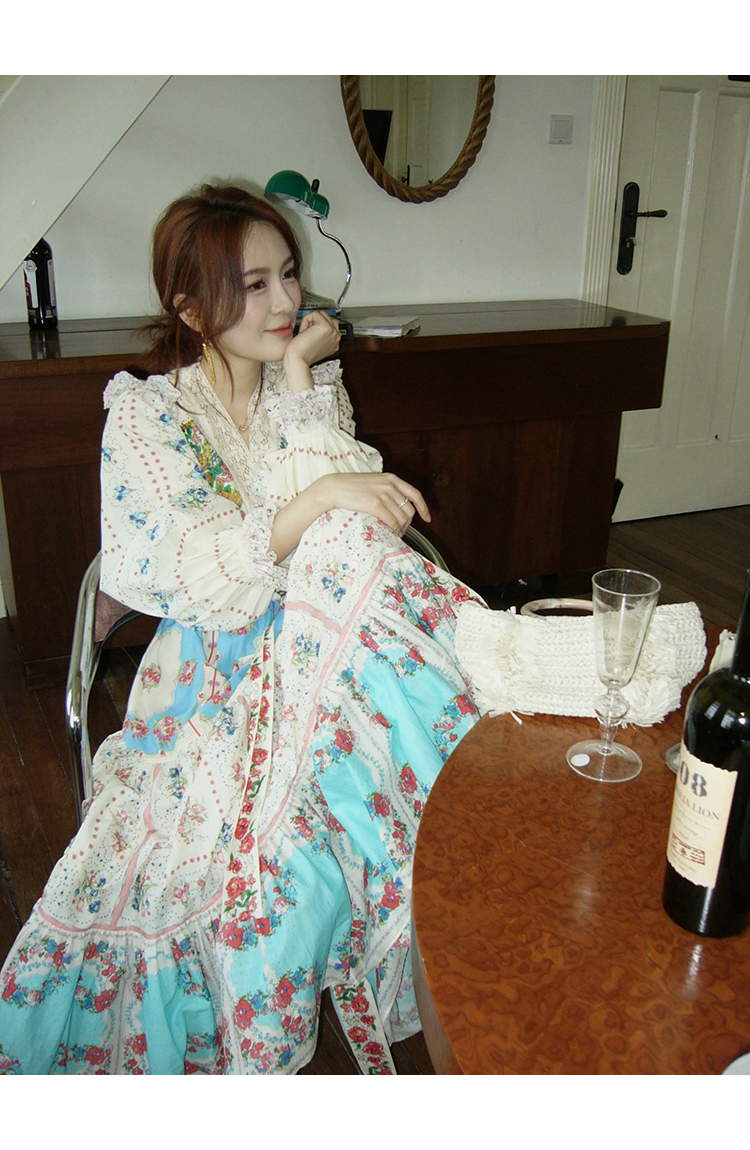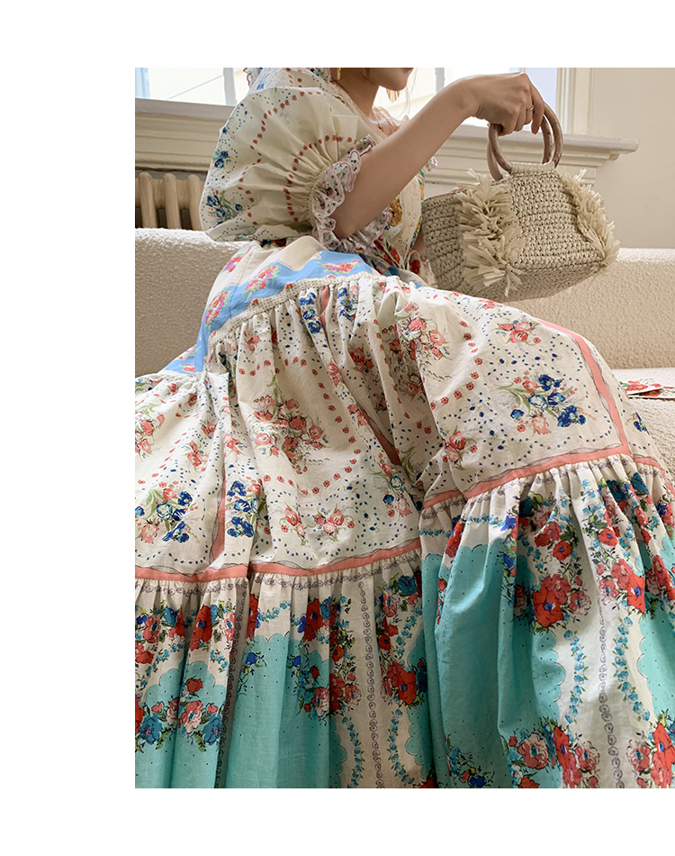 *o-ha-you*【FMQL2031016】【比爾森莊園】夏季新款時尚精緻花色連衣裙長洋裝