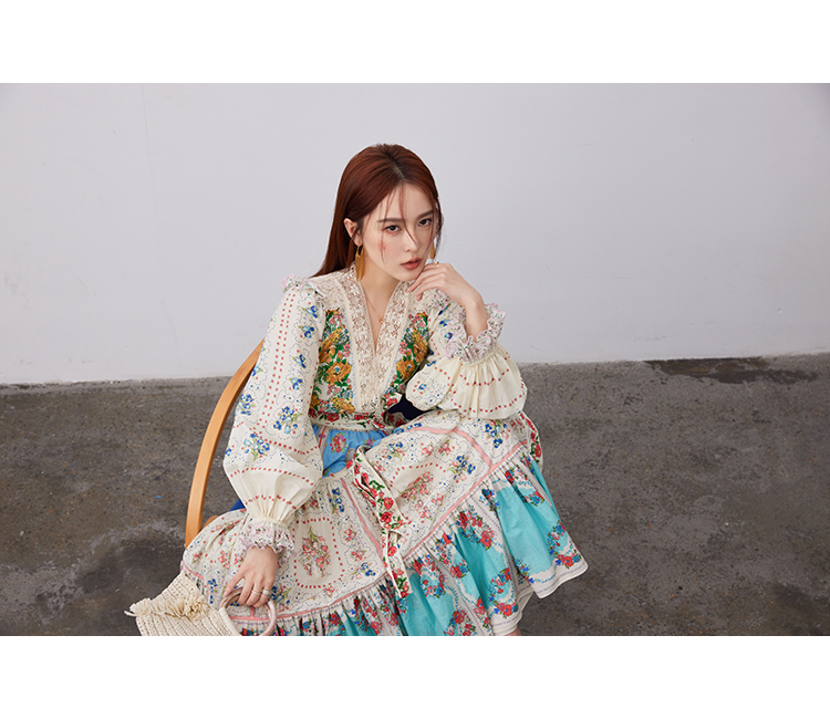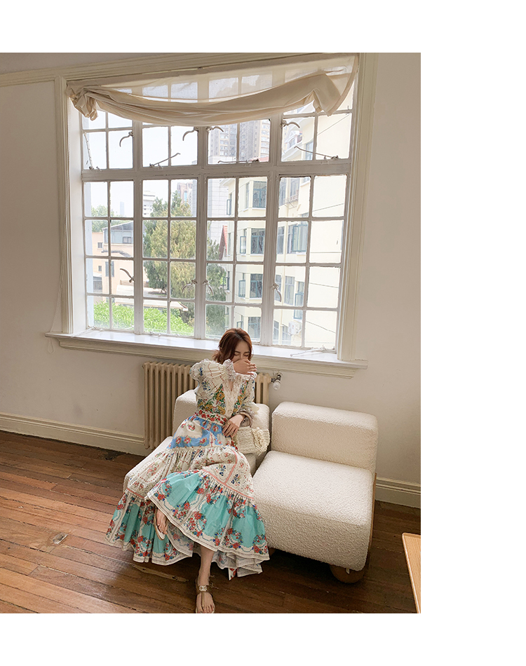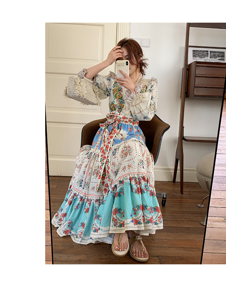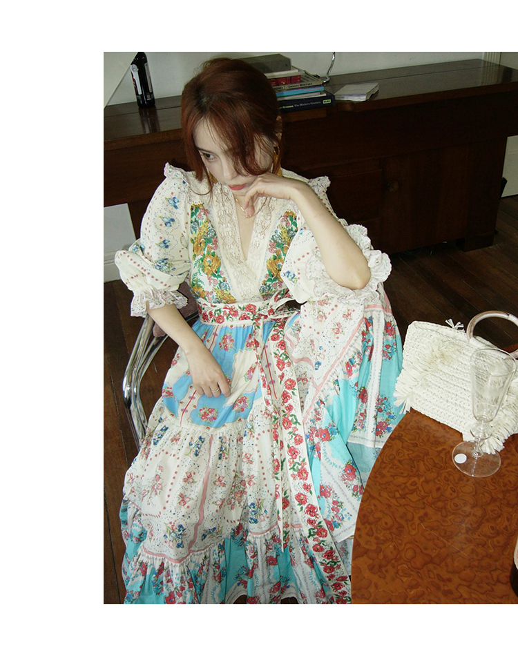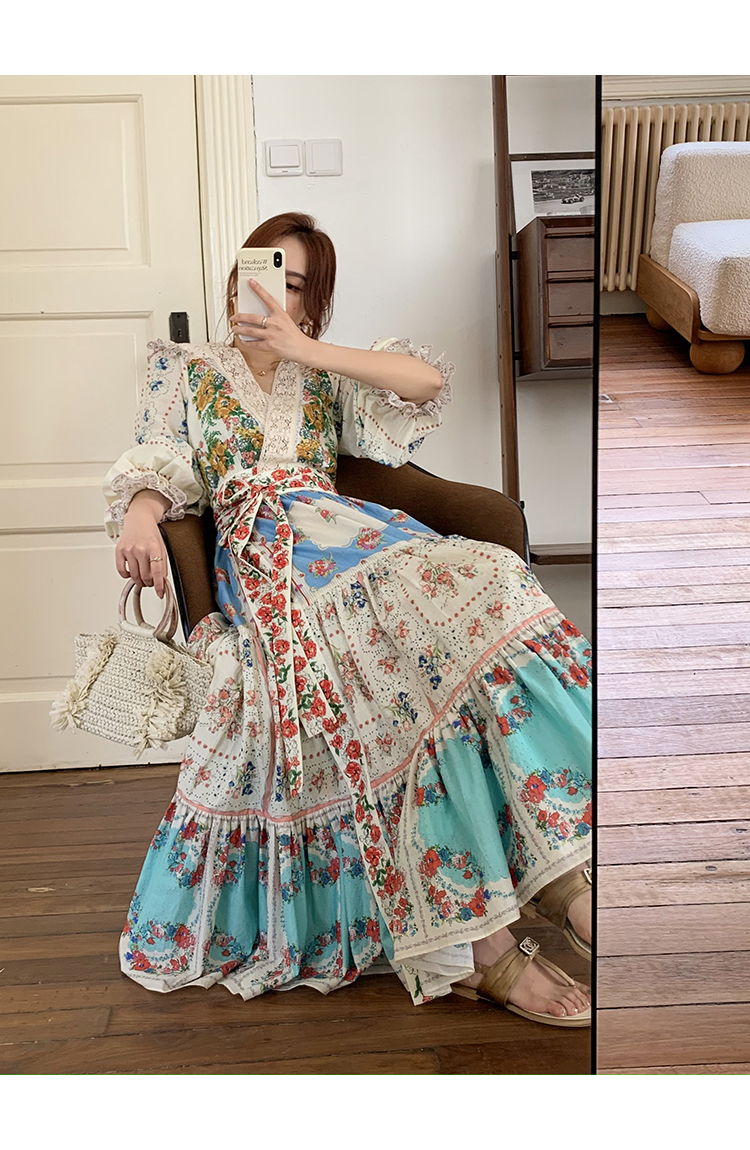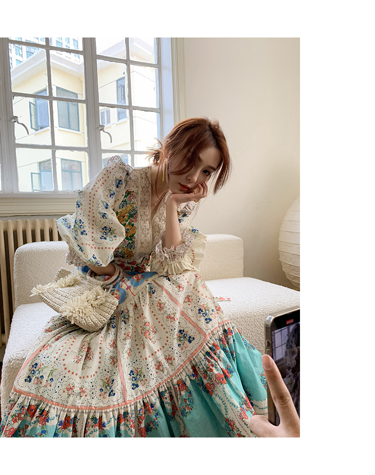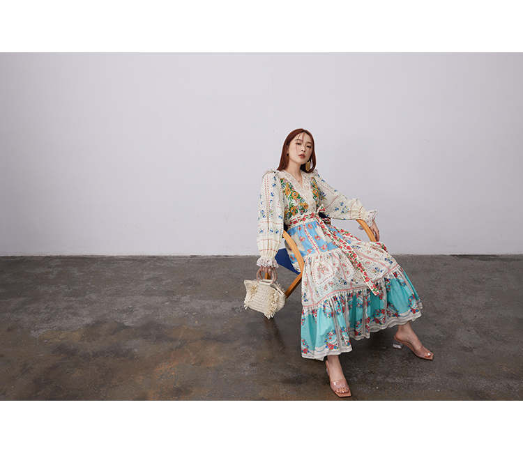 *o-ha-you*【FMQL2031016】【比爾森莊園】夏季新款時尚精緻花色連衣裙長洋裝