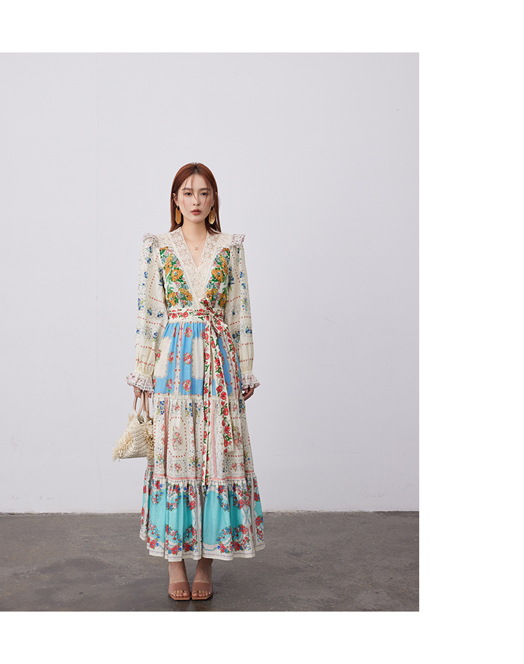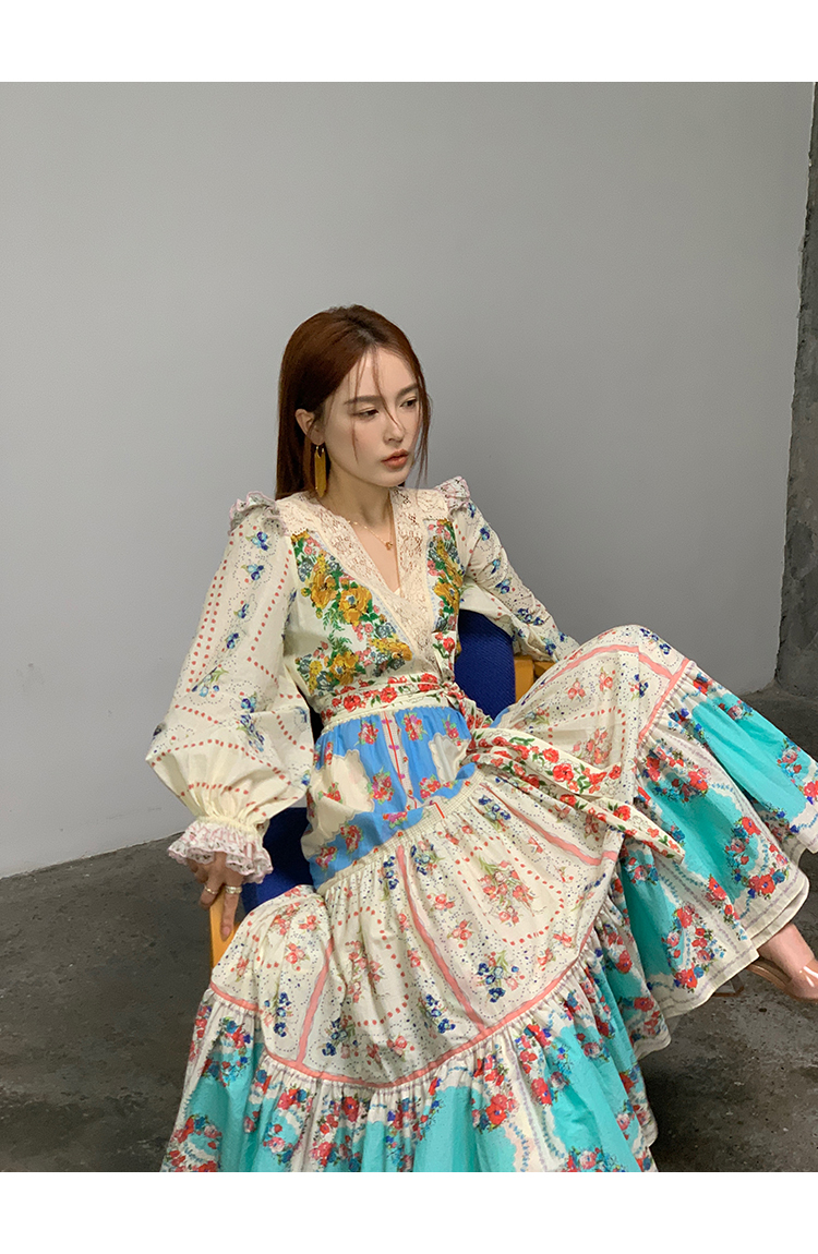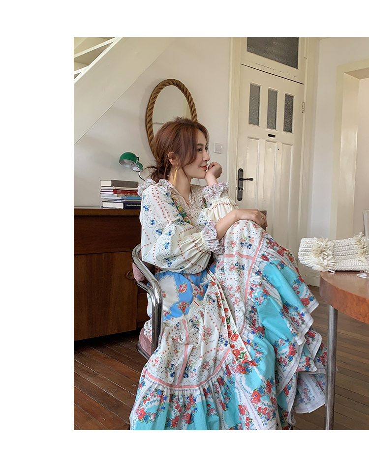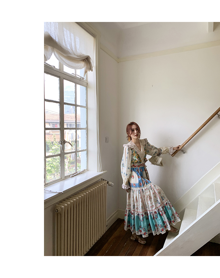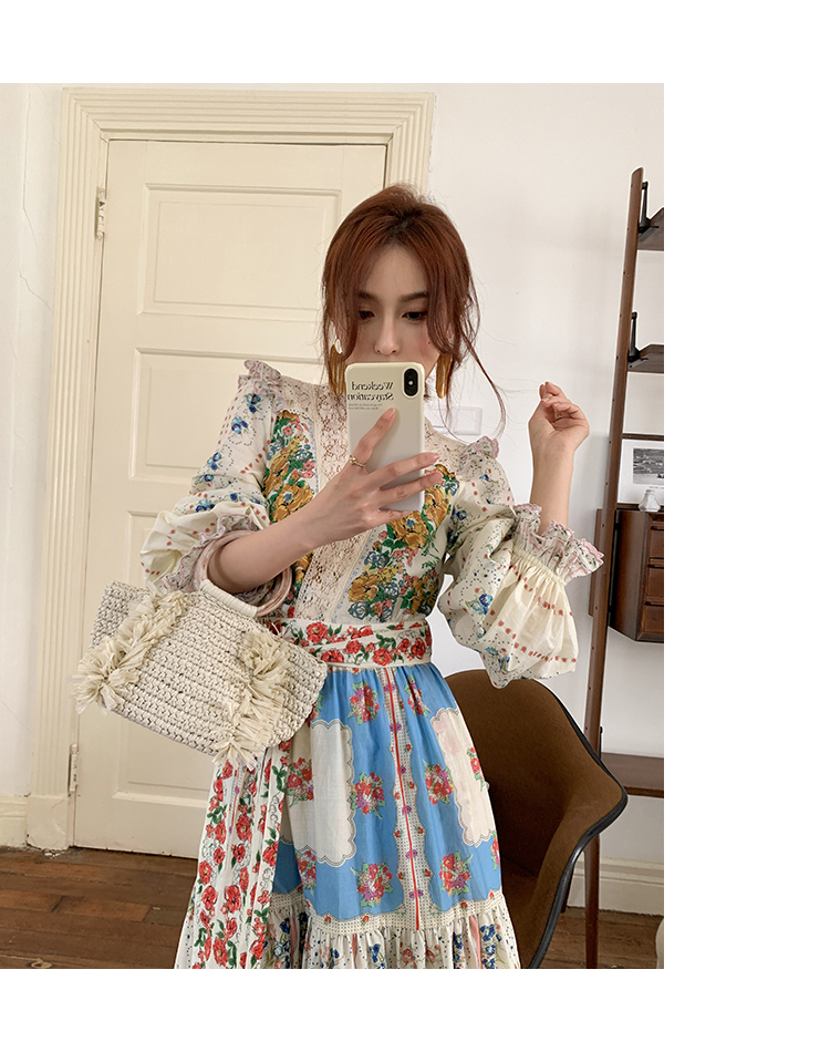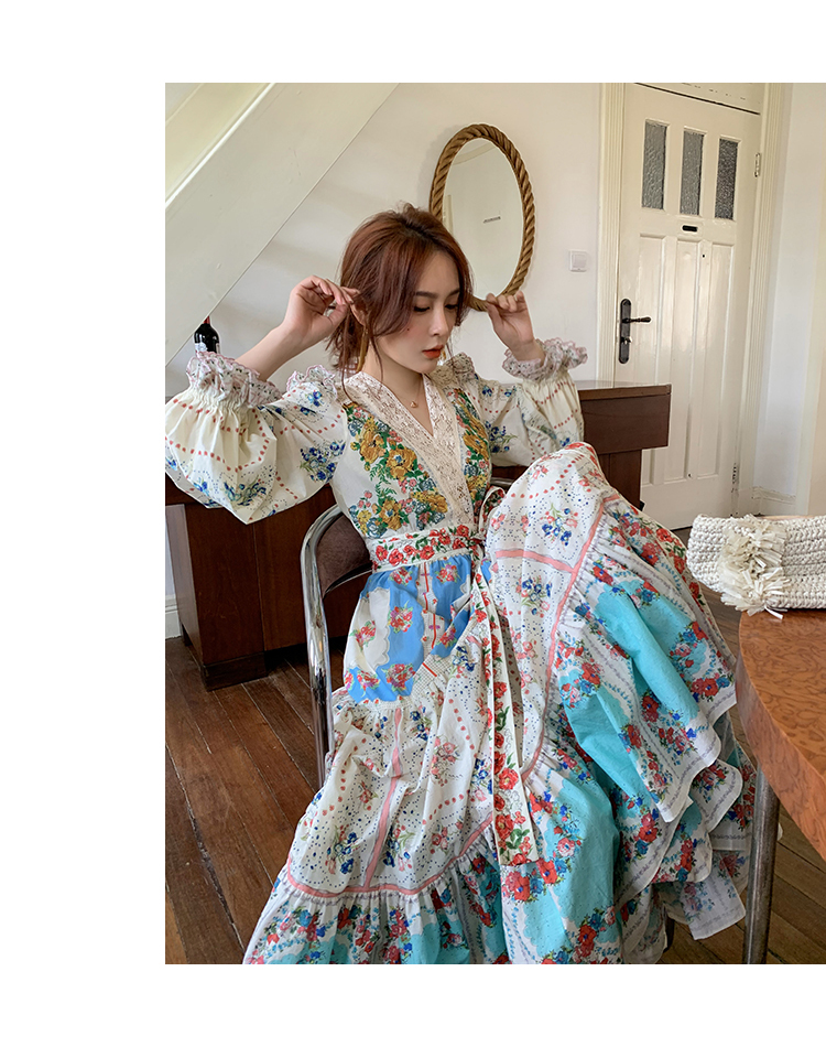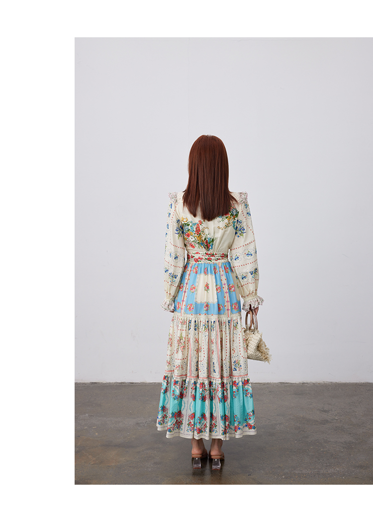 *o-ha-you*【FMQL2031016】【比爾森莊園】夏季新款時尚精緻花色連衣裙長洋裝