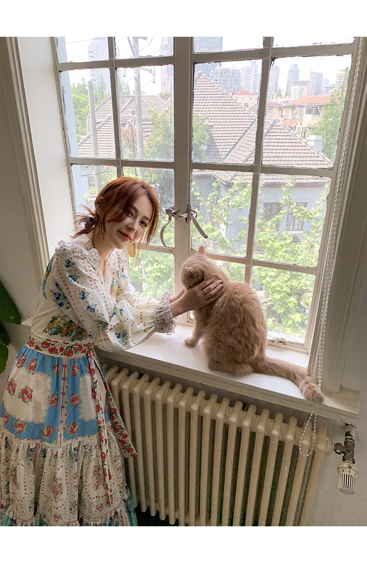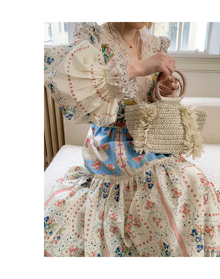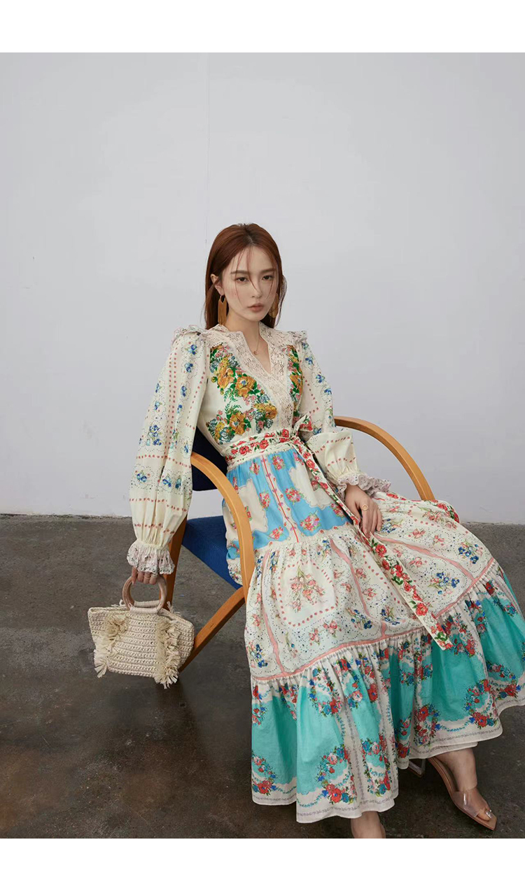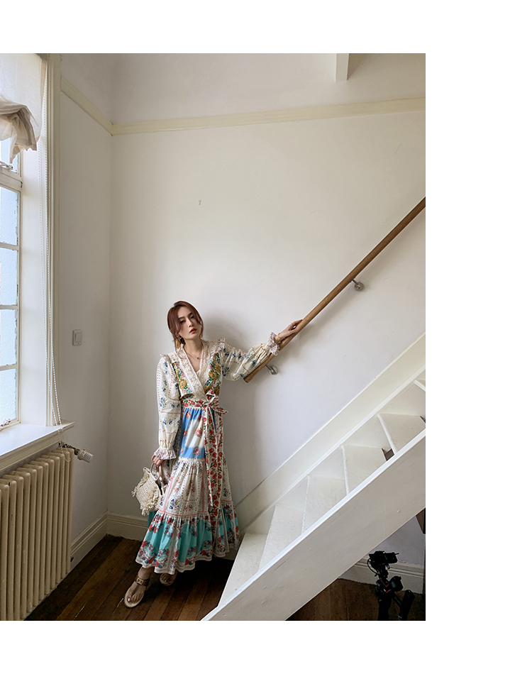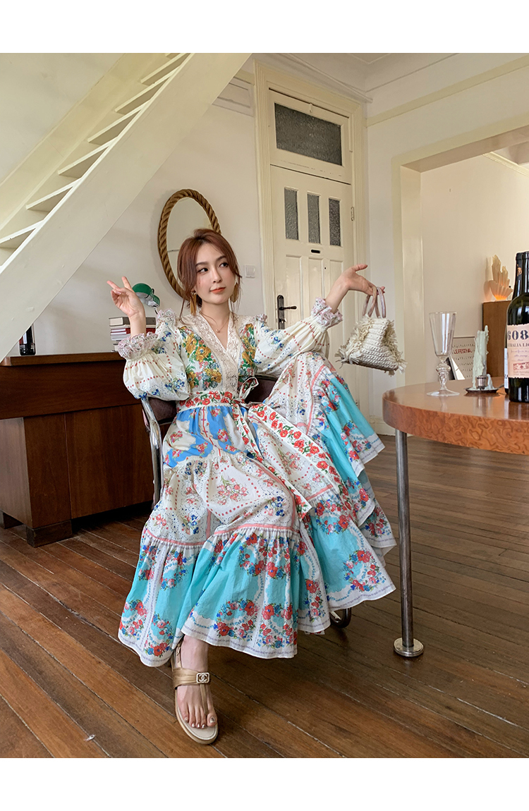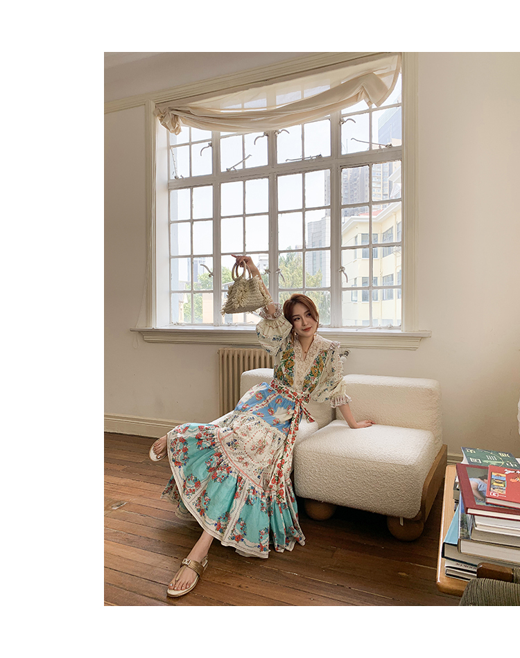 *o-ha-you*【FMQL2031016】【比爾森莊園】夏季新款時尚精緻花色連衣裙長洋裝