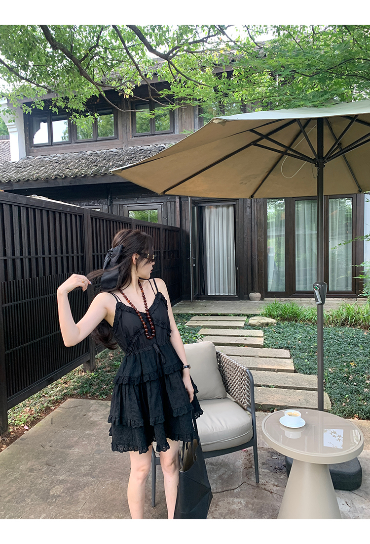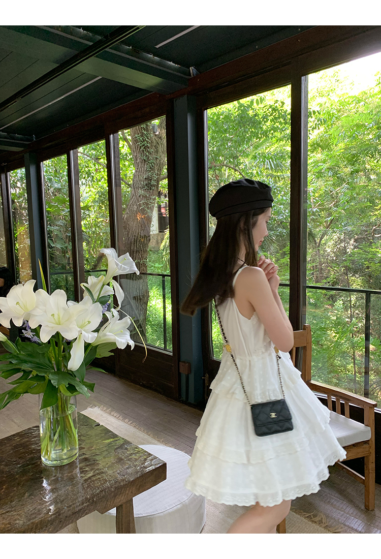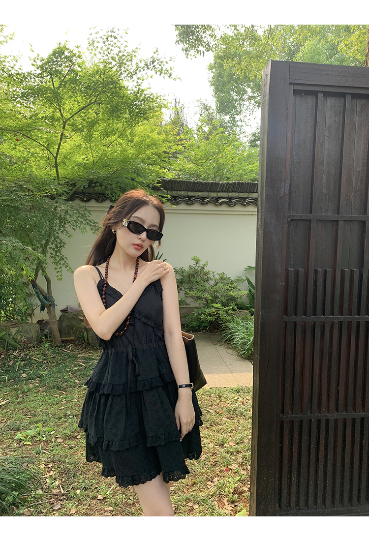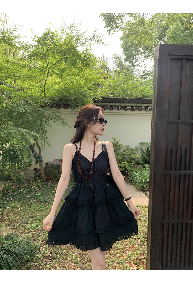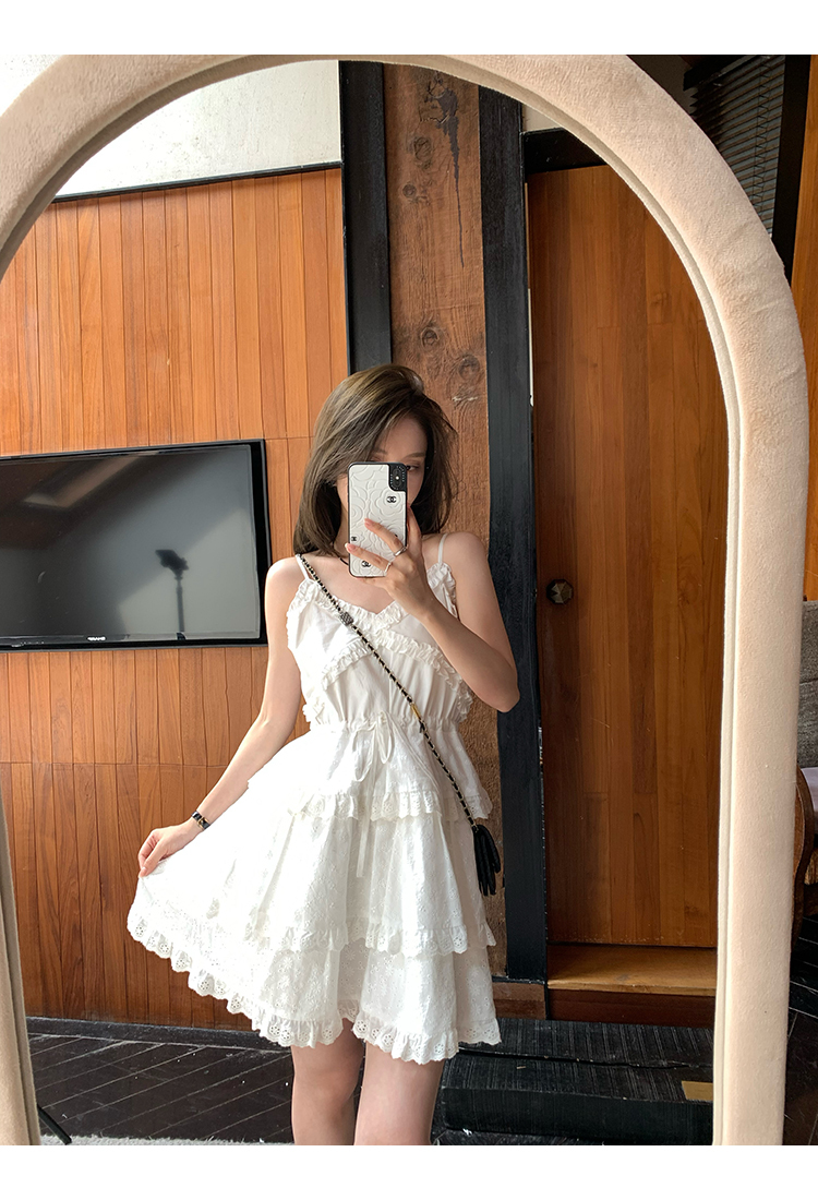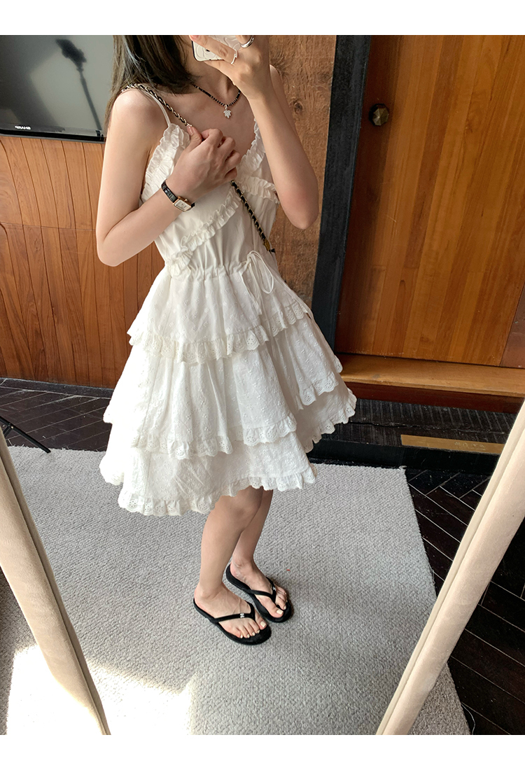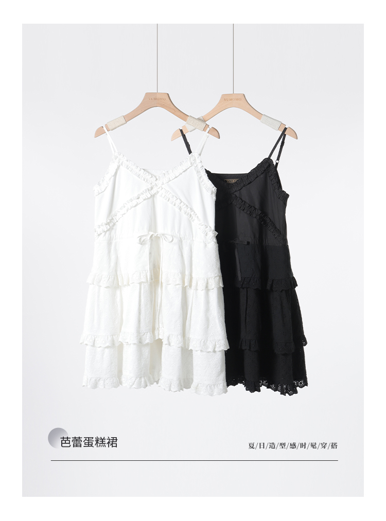 *o-ha-you*【FMQL2041027】芭蕾蛋糕裙純棉繡花蕾絲減齡少女收腰吊帶裙連衣裙洋裝-2色