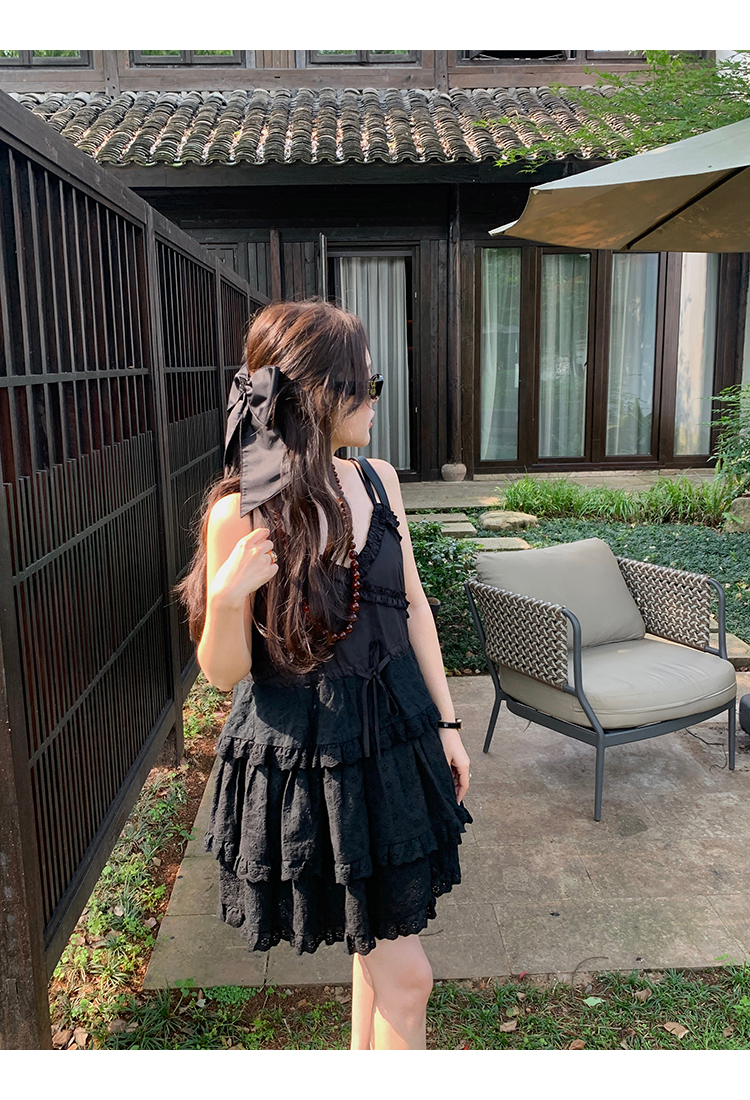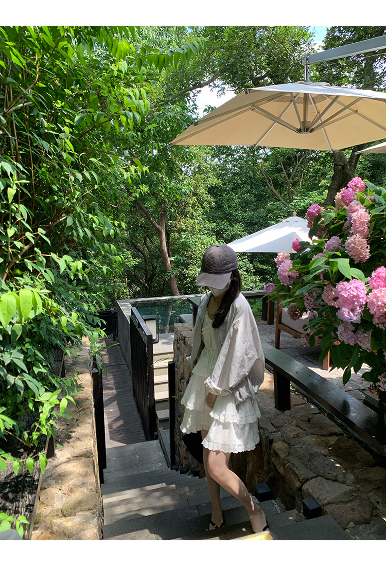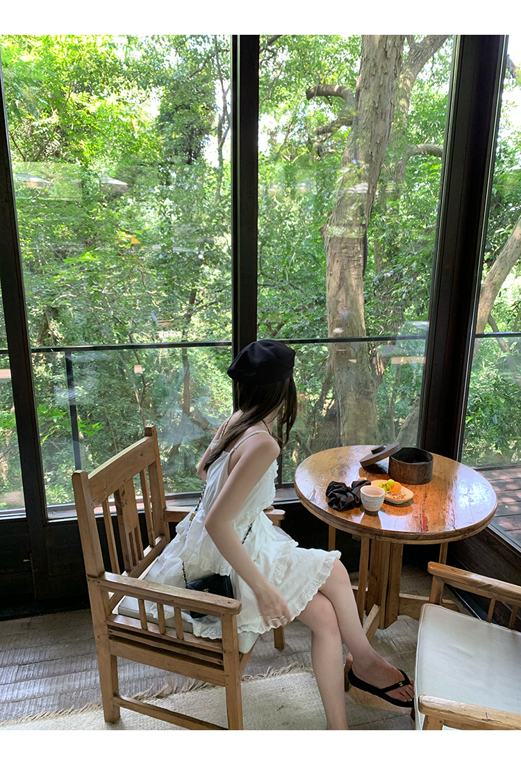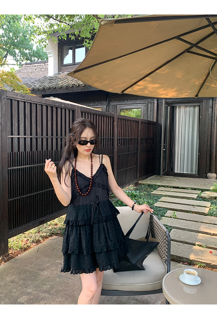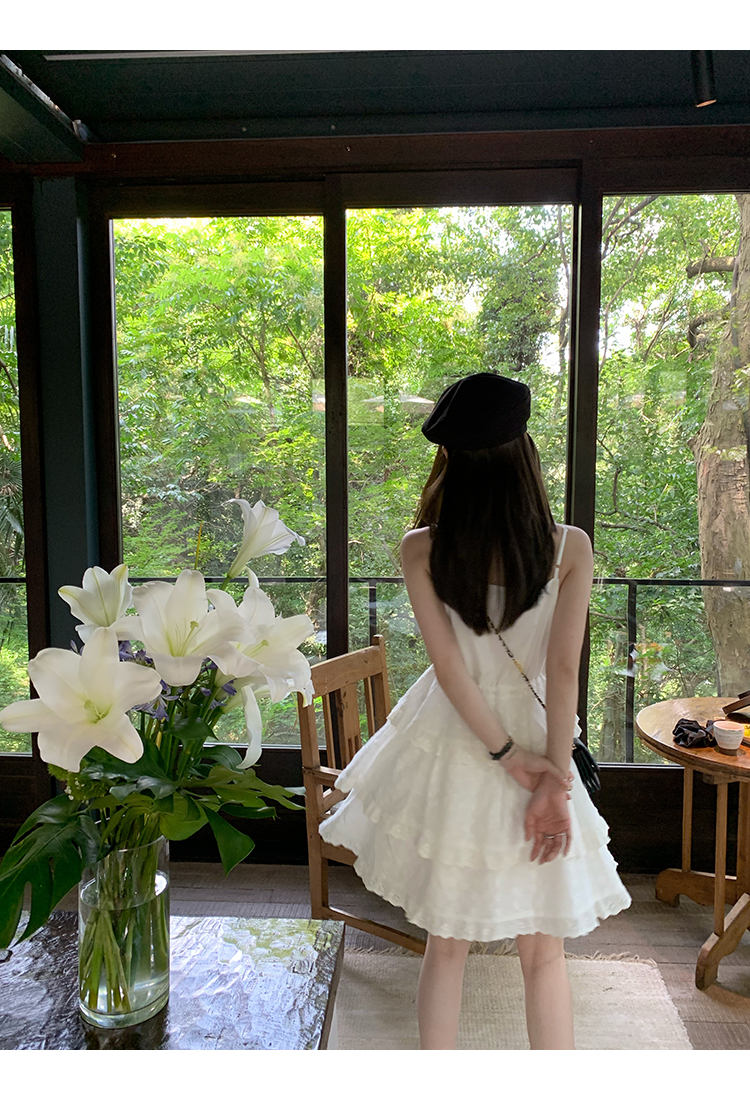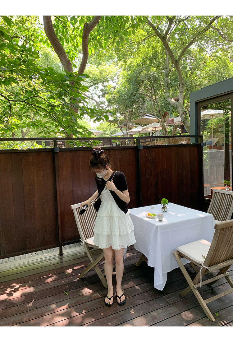 *o-ha-you*【FMQL2041027】芭蕾蛋糕裙純棉繡花蕾絲減齡少女收腰吊帶裙連衣裙洋裝-2色