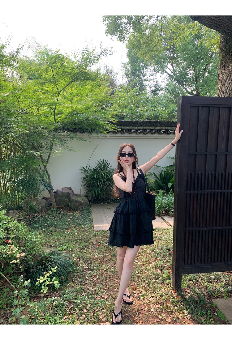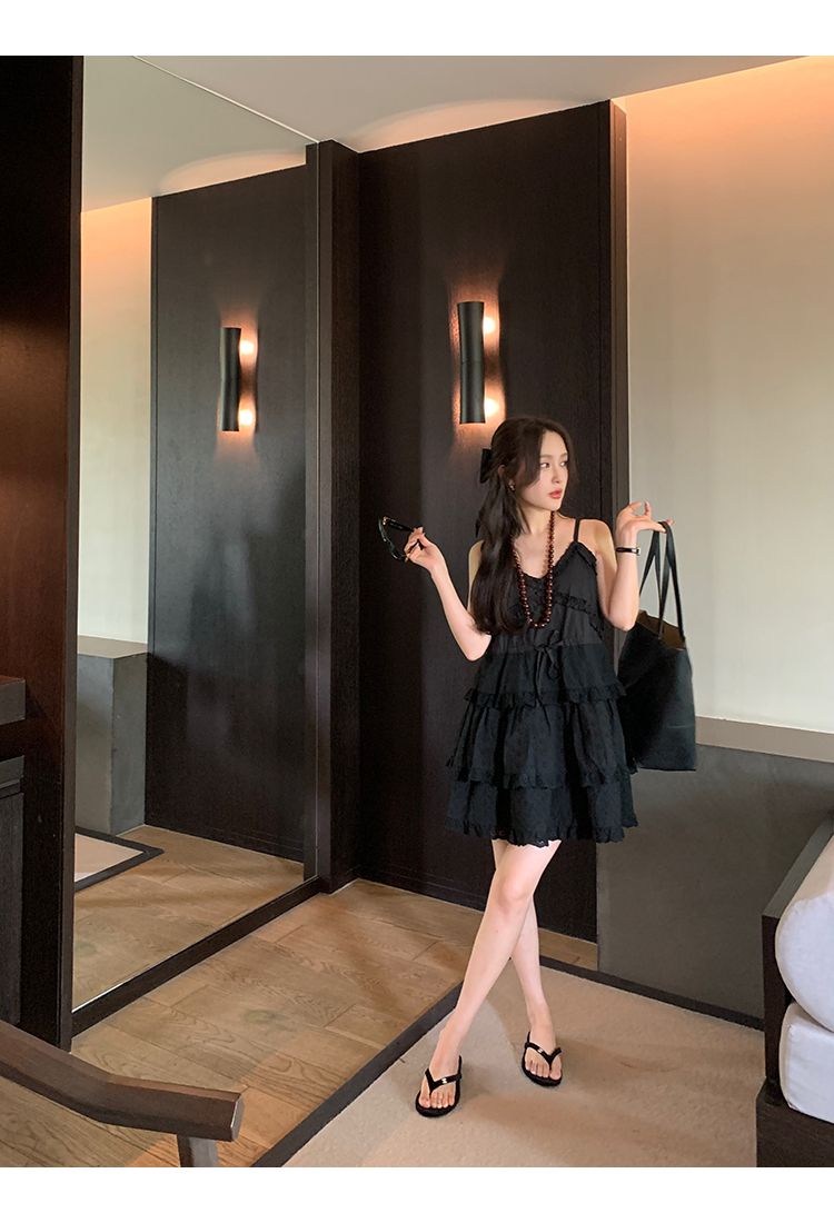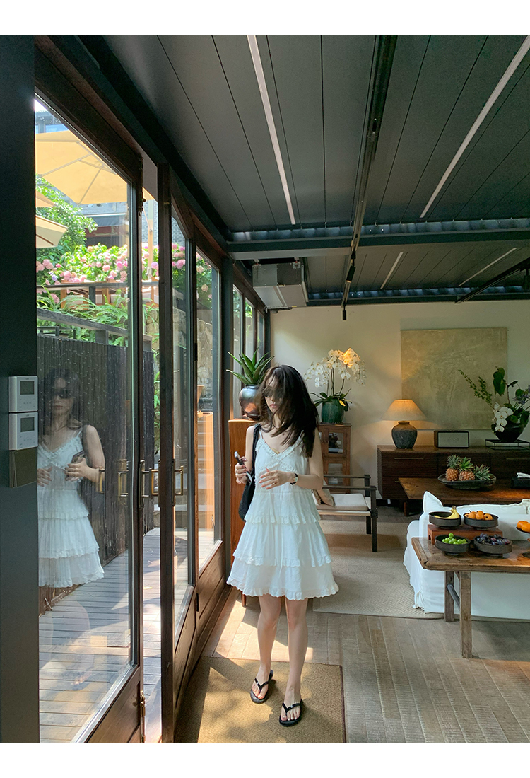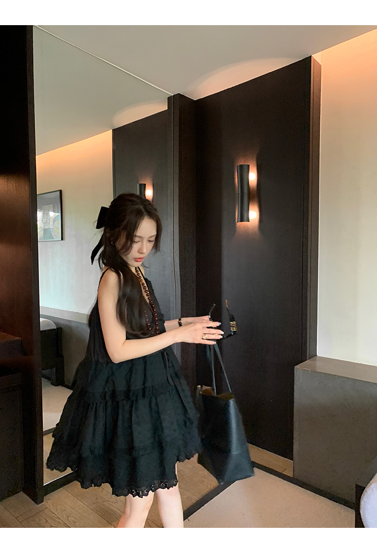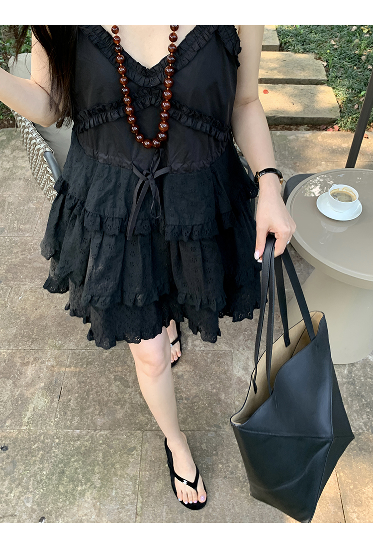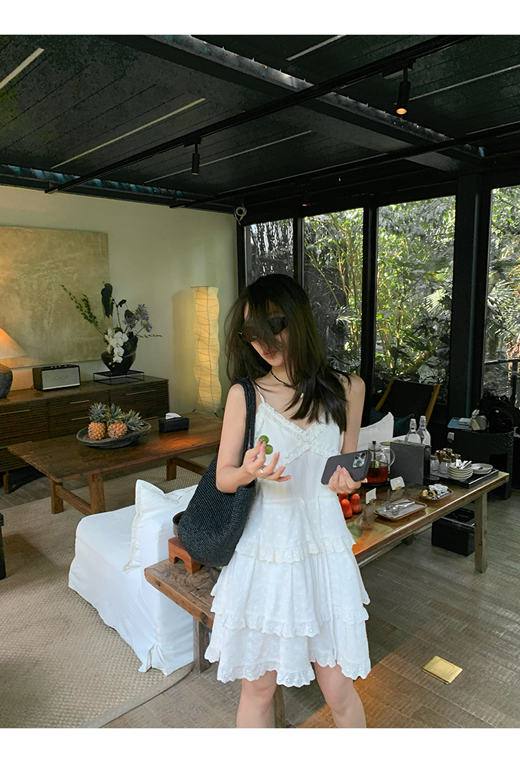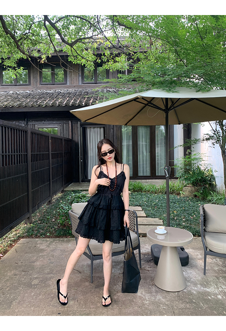 *o-ha-you*【FMQL2041027】芭蕾蛋糕裙純棉繡花蕾絲減齡少女收腰吊帶裙連衣裙洋裝-2色