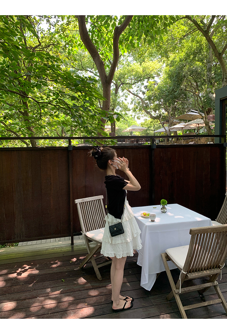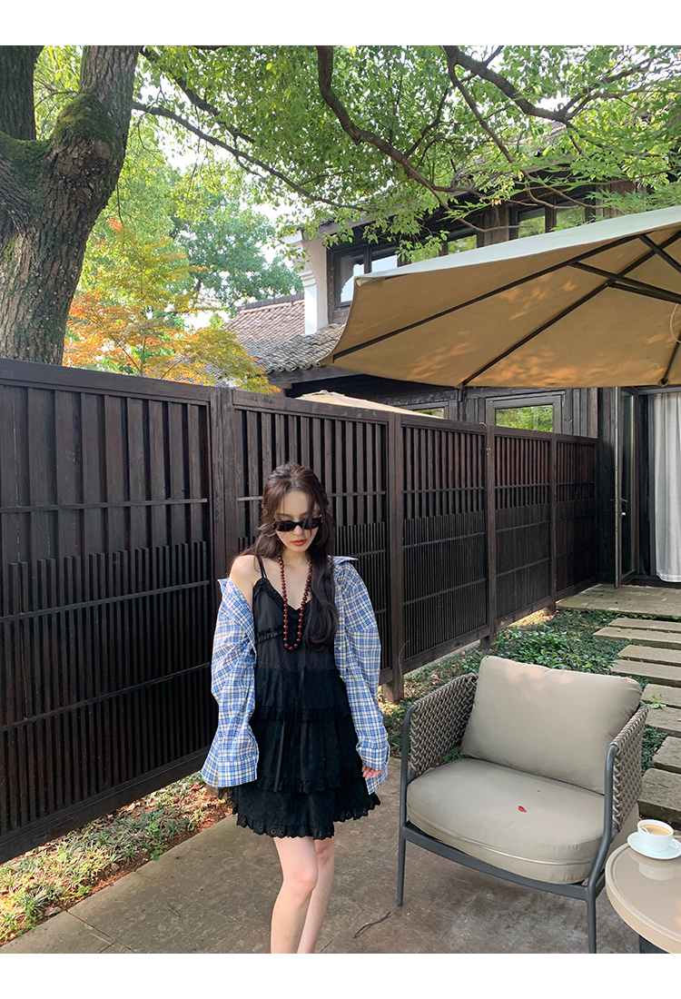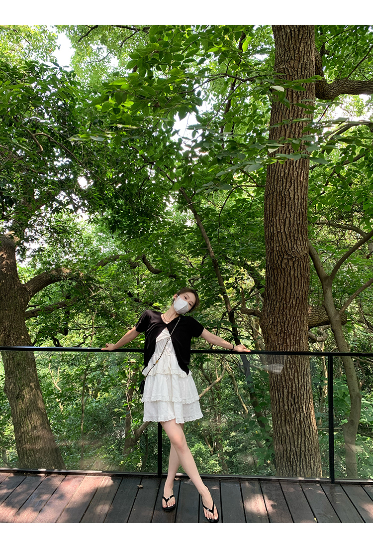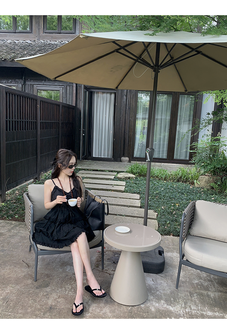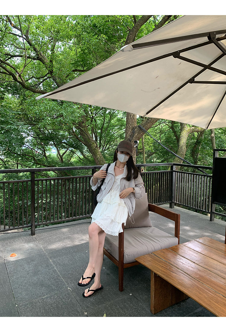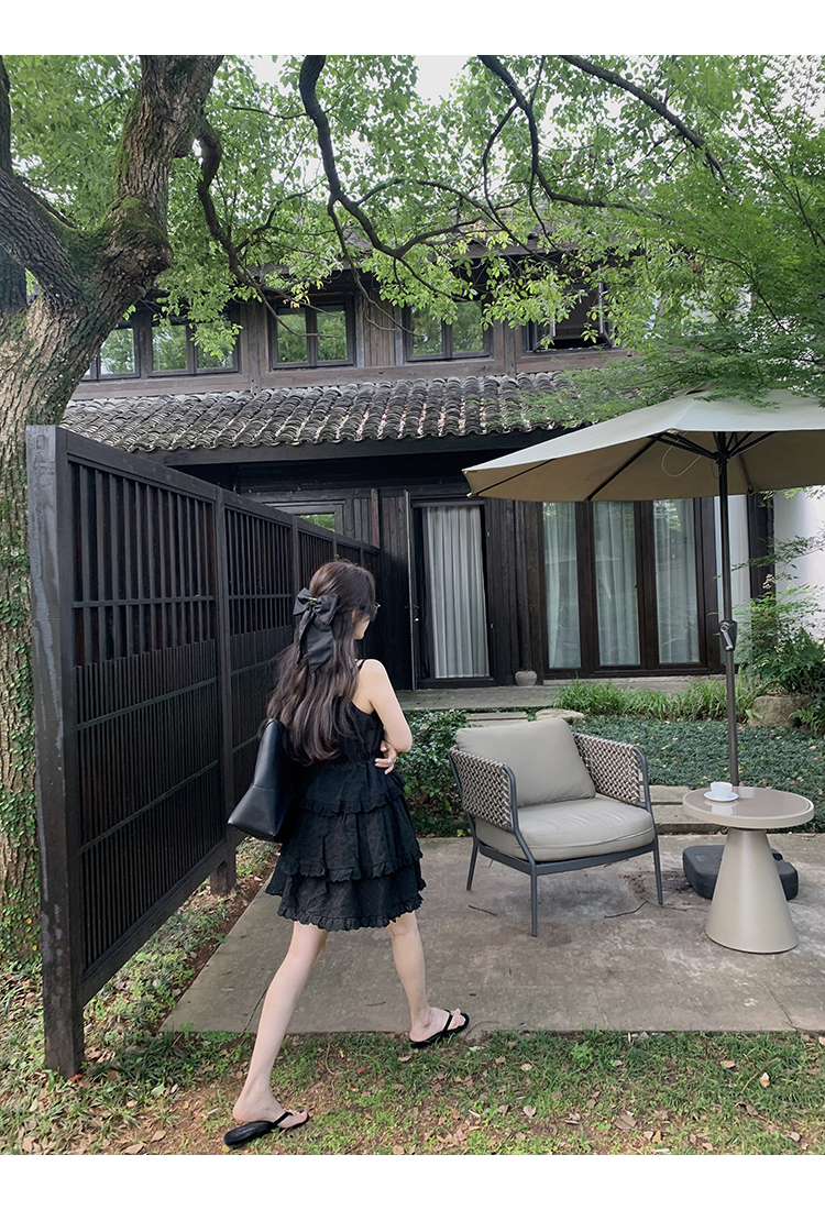 *o-ha-you*【FMQL2041027】芭蕾蛋糕裙純棉繡花蕾絲減齡少女收腰吊帶裙連衣裙洋裝-2色