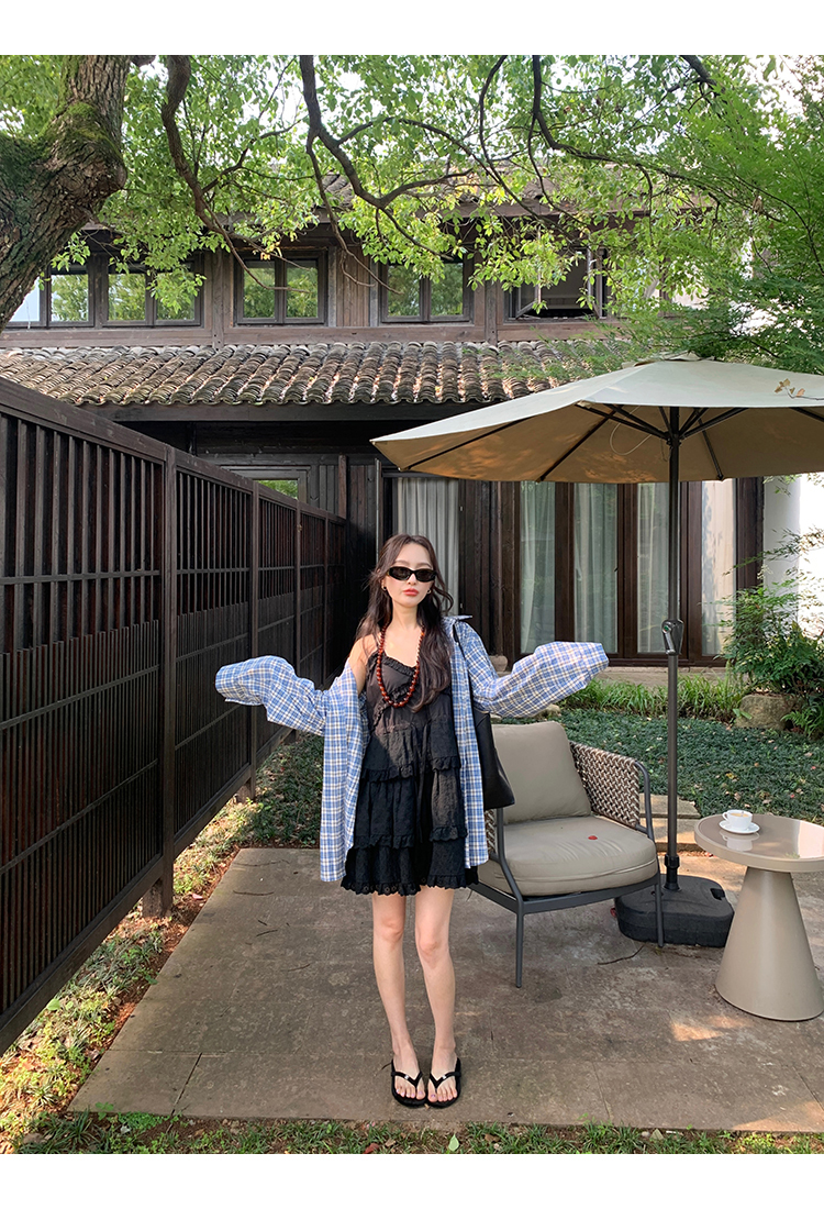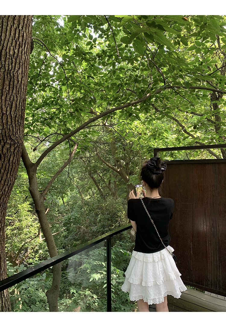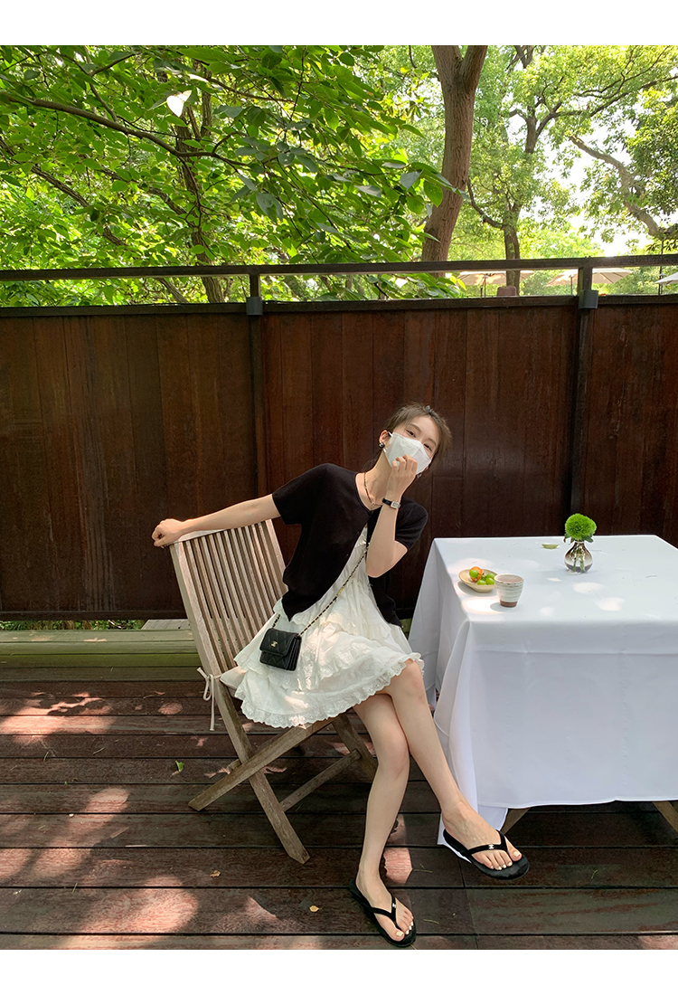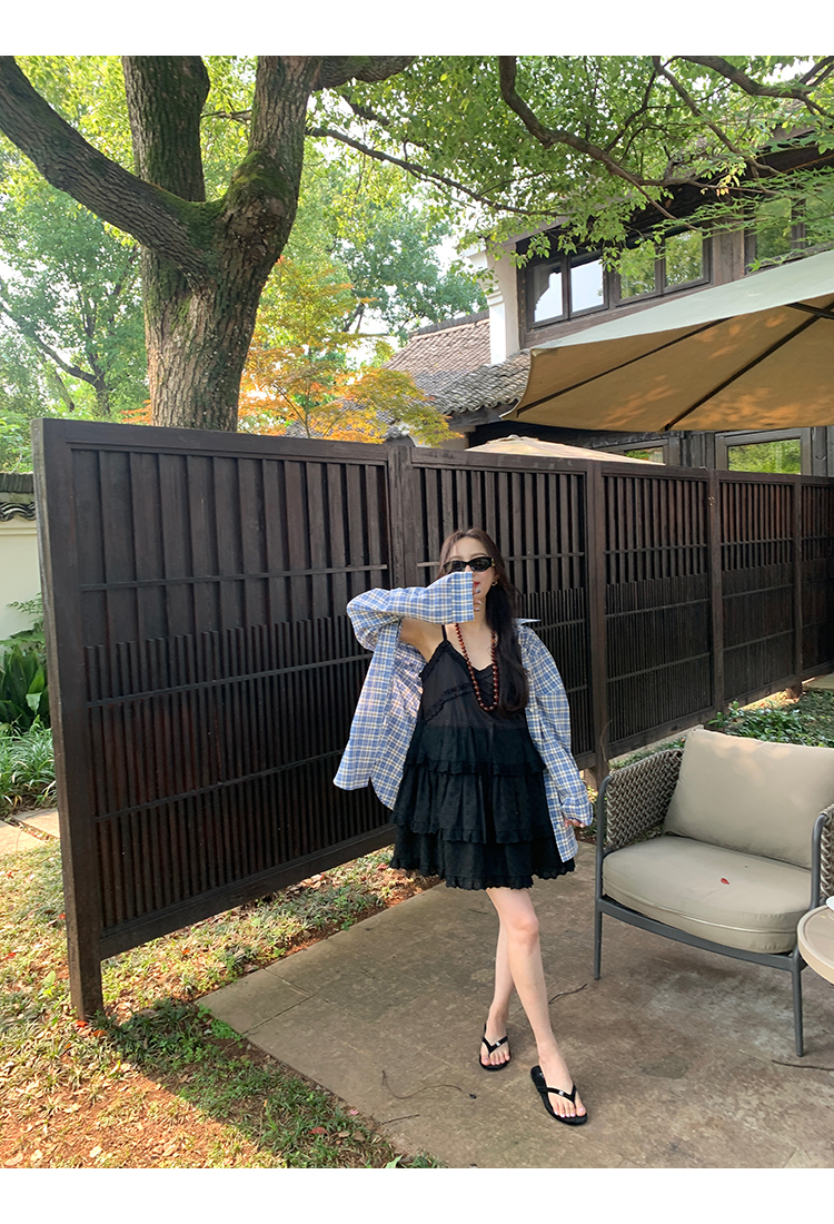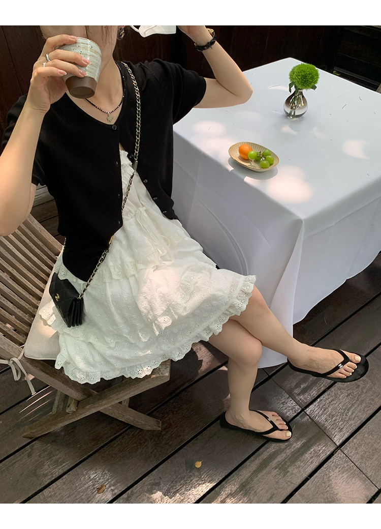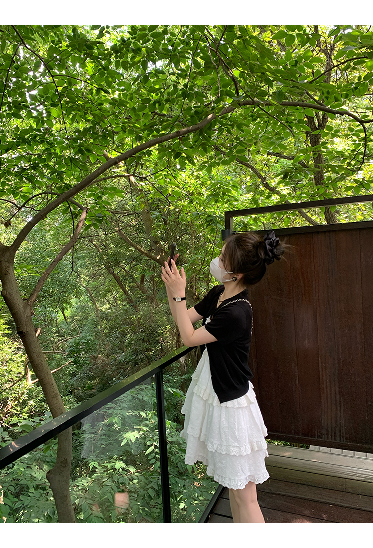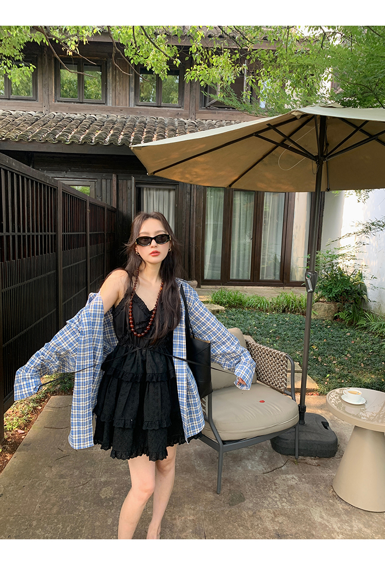 *o-ha-you*【FMQL2041027】芭蕾蛋糕裙純棉繡花蕾絲減齡少女收腰吊帶裙連衣裙洋裝-2色