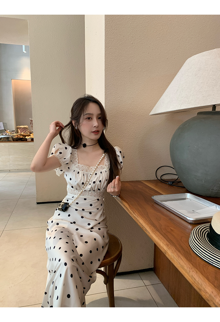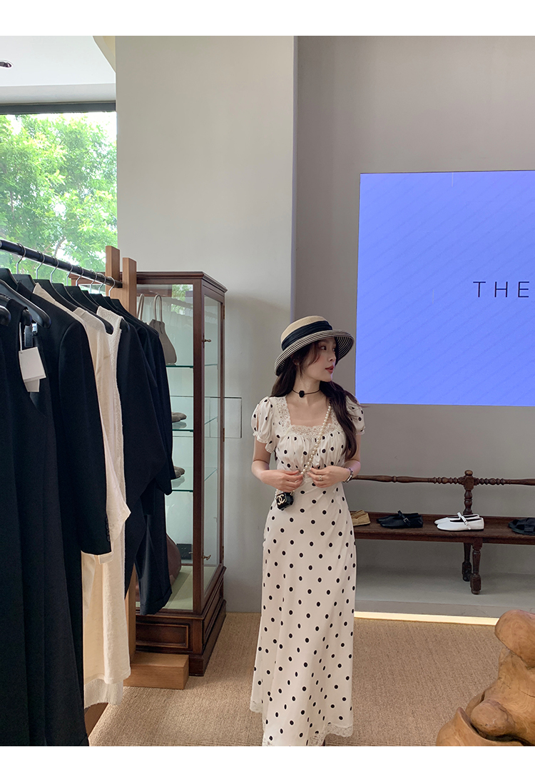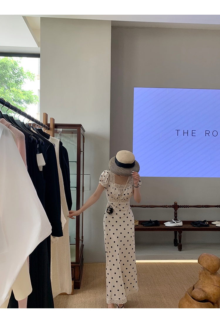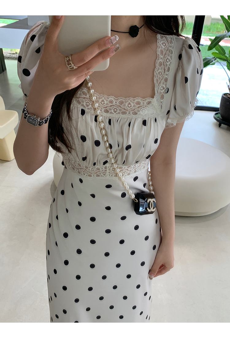 領型設計法式方領設計拼接蕾絲花邊,修飾臉型與脖頸線條
