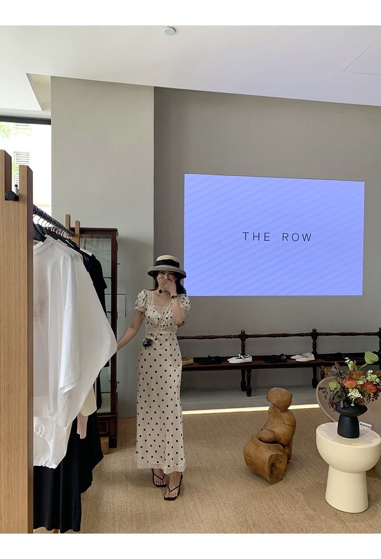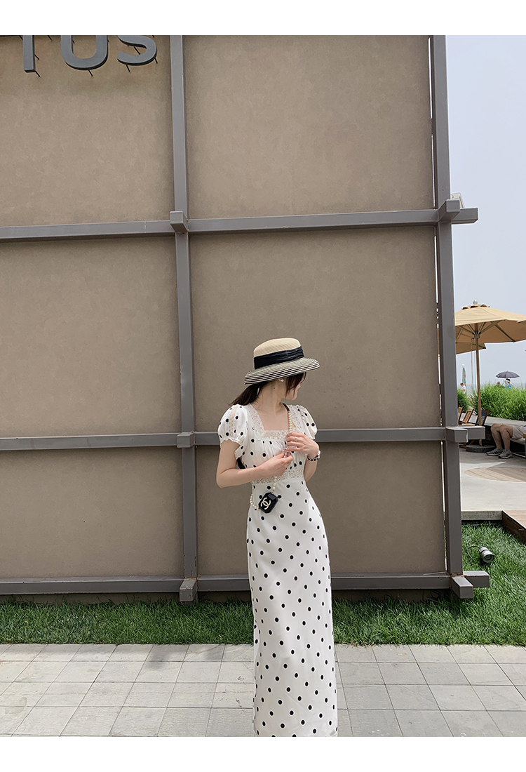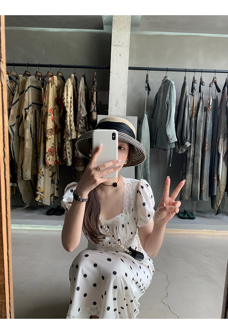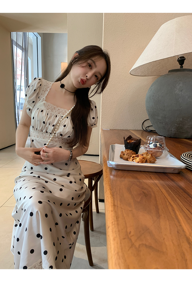領型設計法式方領設計拼接蕾絲花邊,修飾臉型與脖頸線條