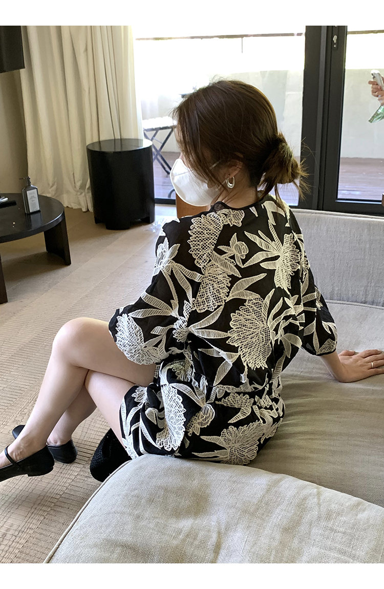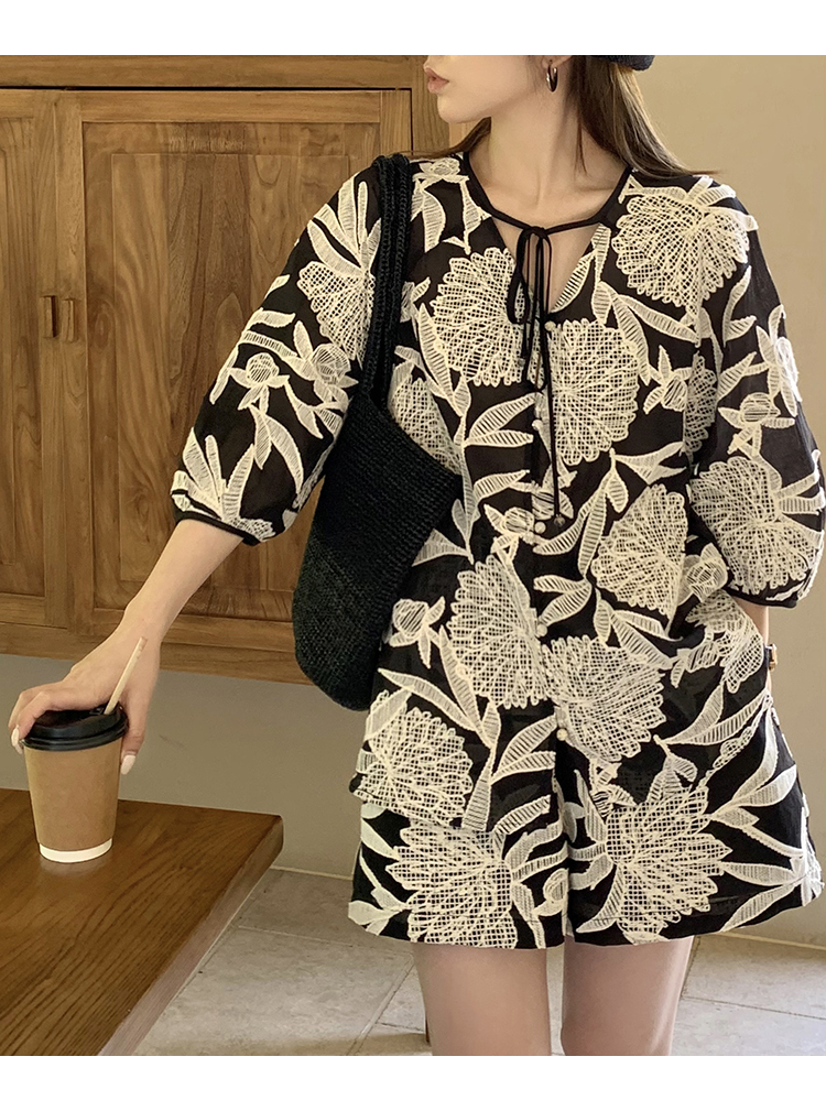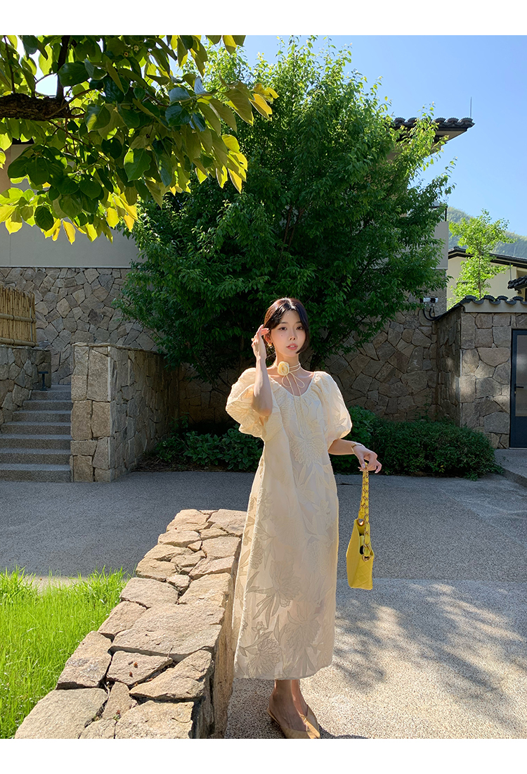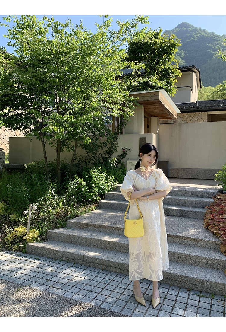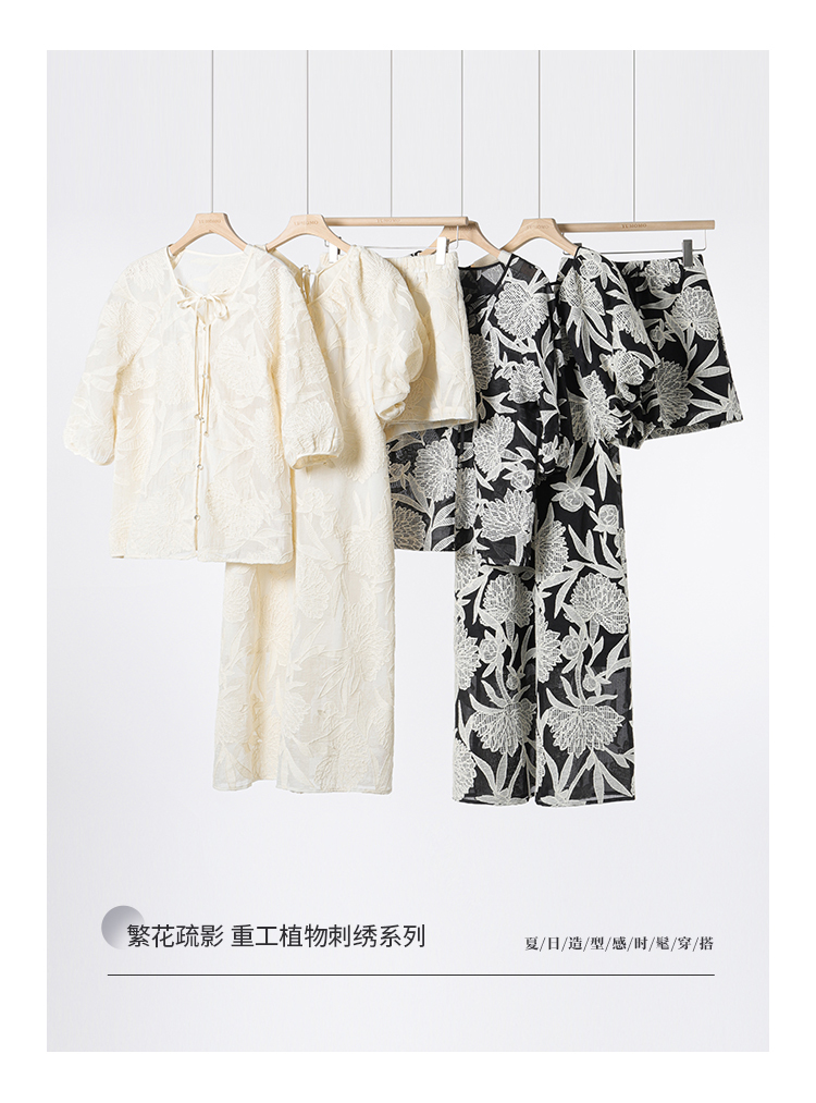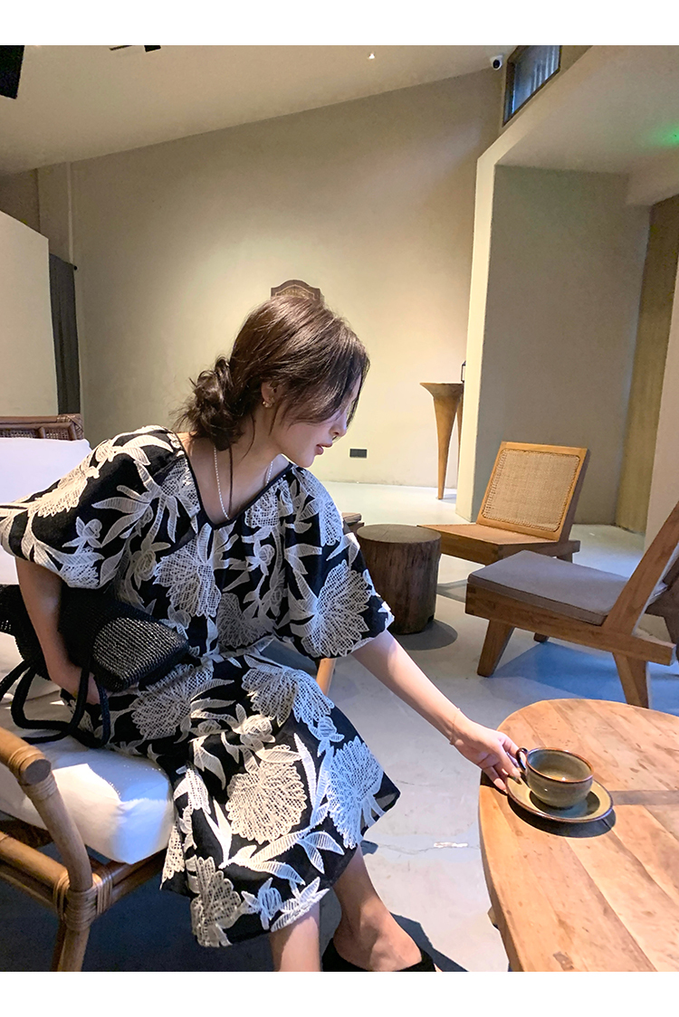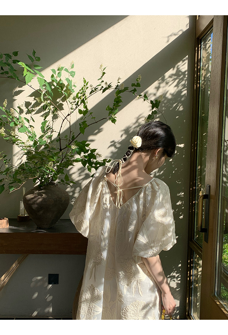 *o-ha-you*【FMQL2042032】繁花疏影重工植物刺繡系列浪漫鬆弛感泡泡袖連衣裙洋裝/上衣/短褲