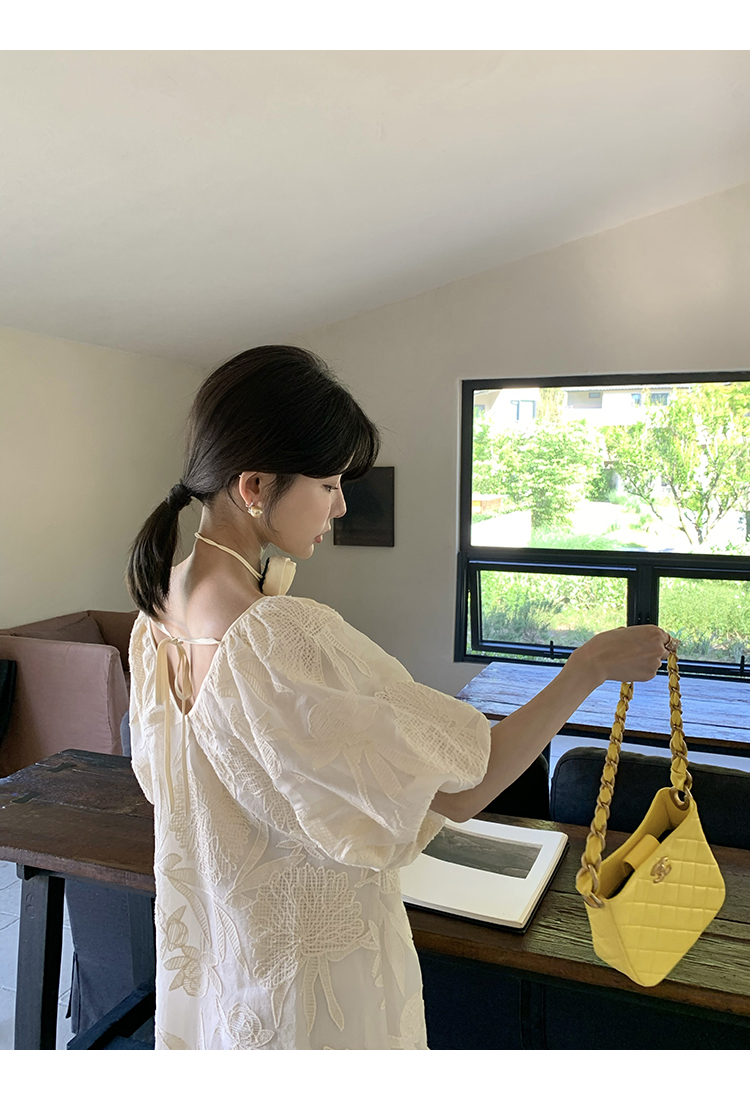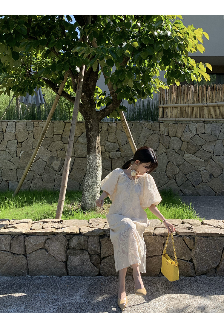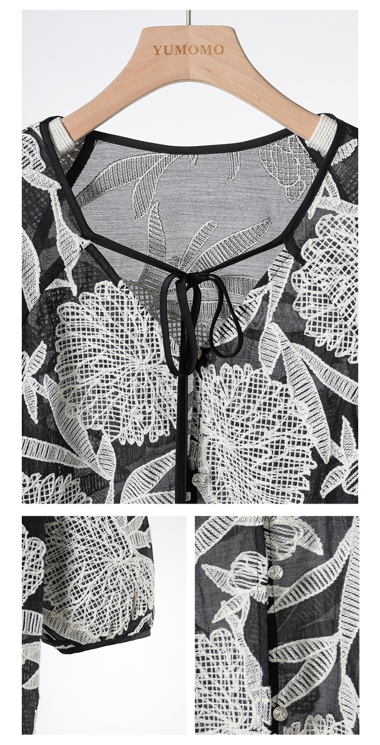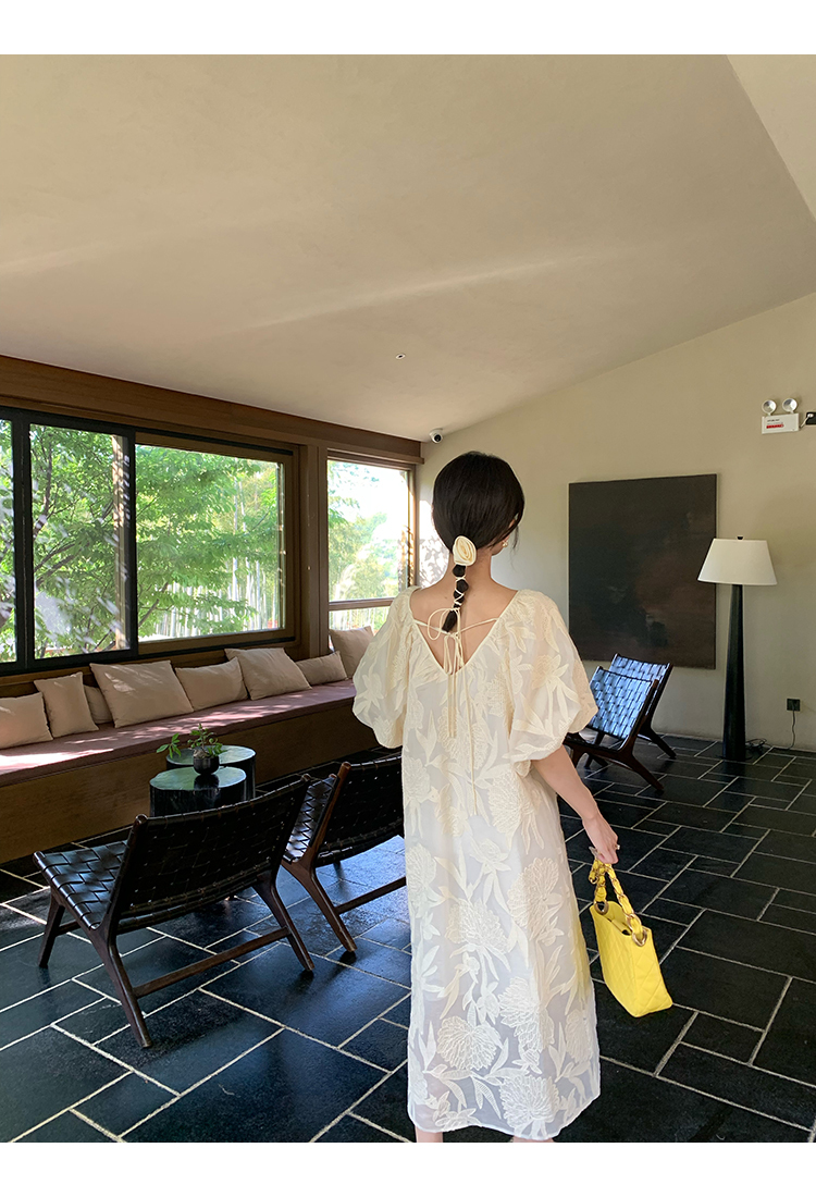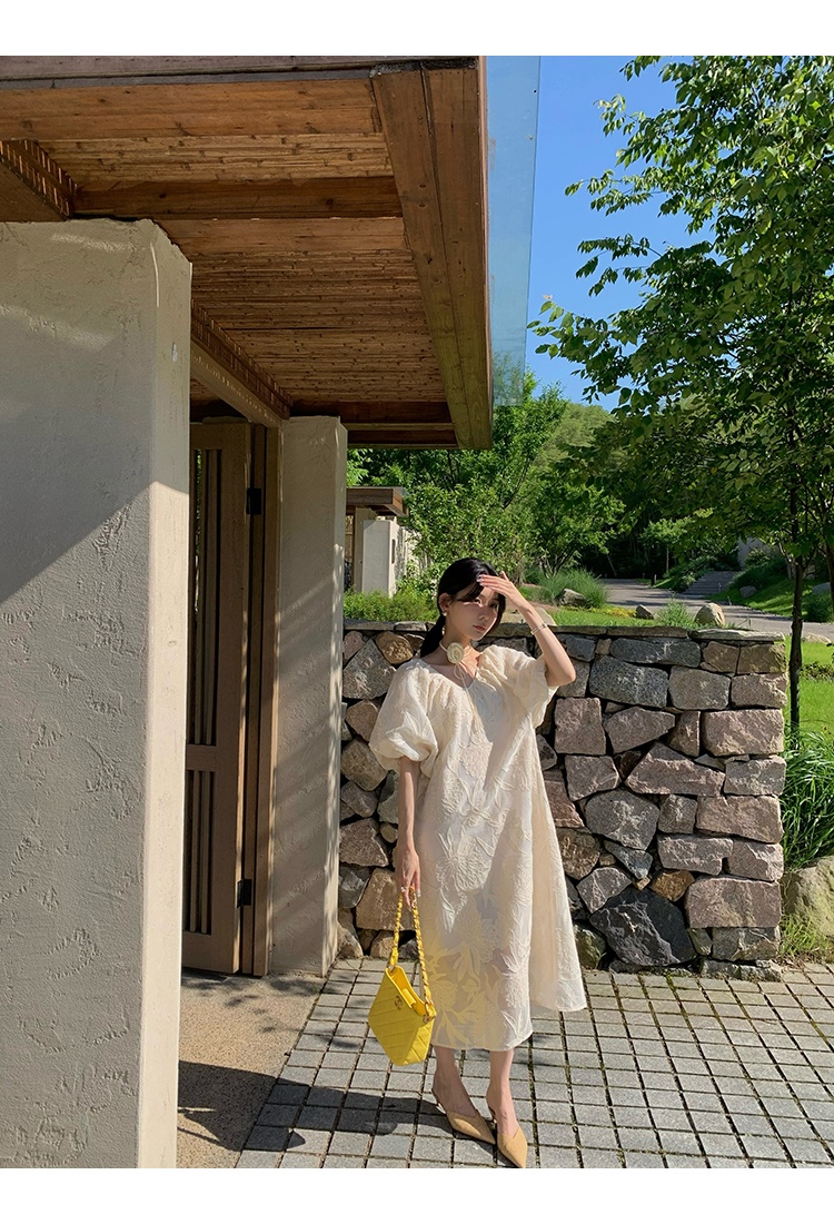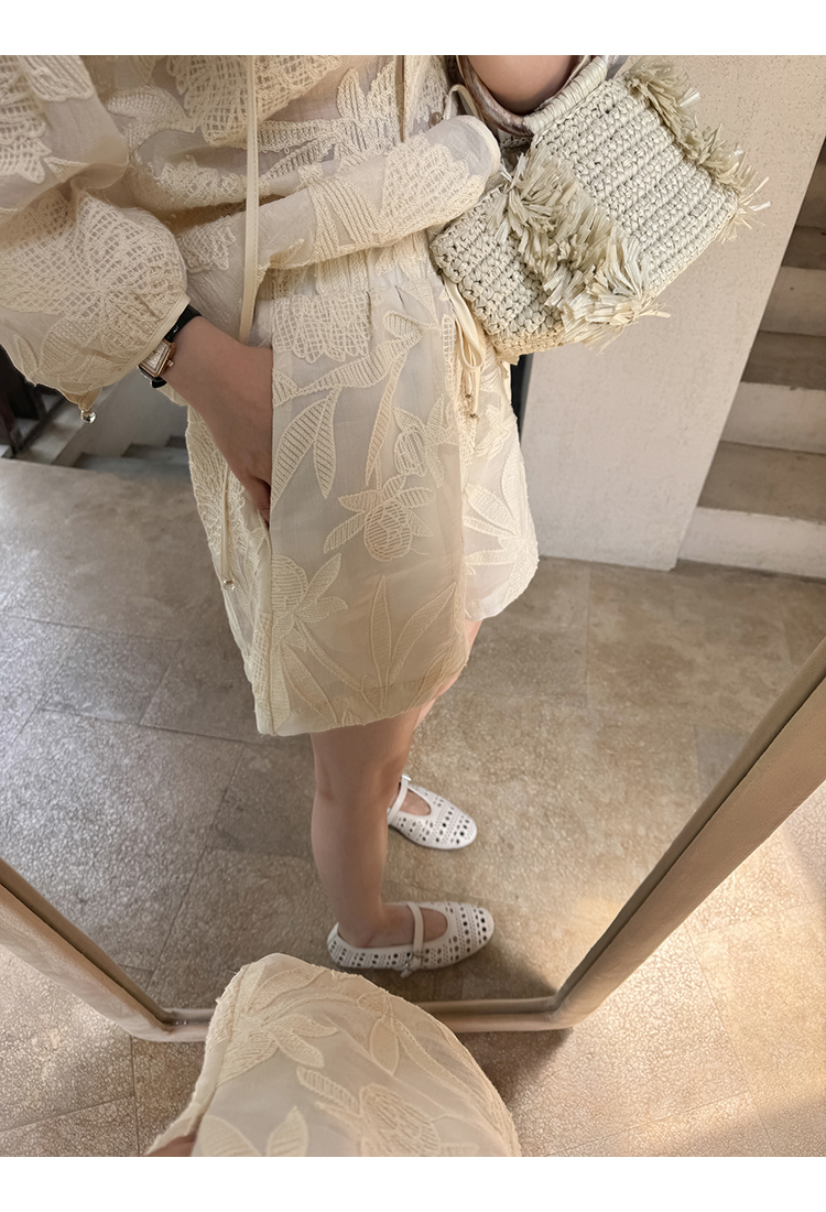 *o-ha-you*【FMQL2042032】繁花疏影重工植物刺繡系列浪漫鬆弛感泡泡袖連衣裙洋裝/上衣/短褲