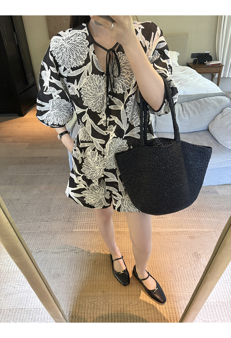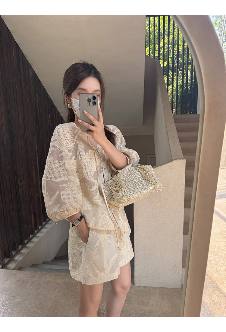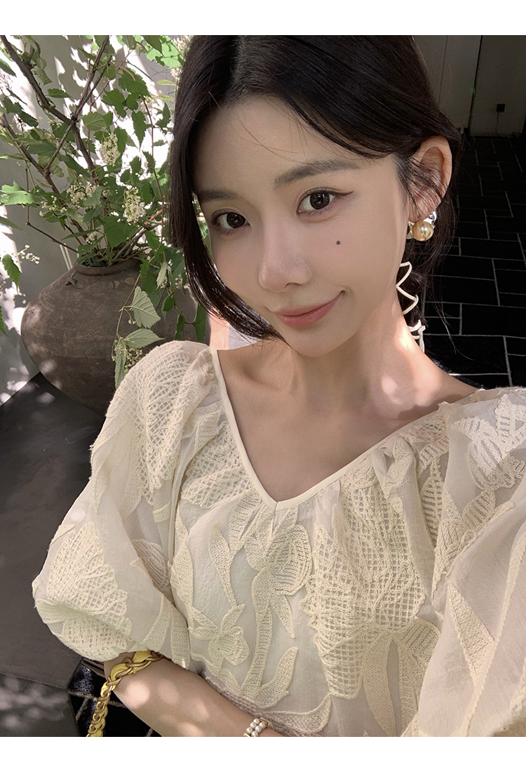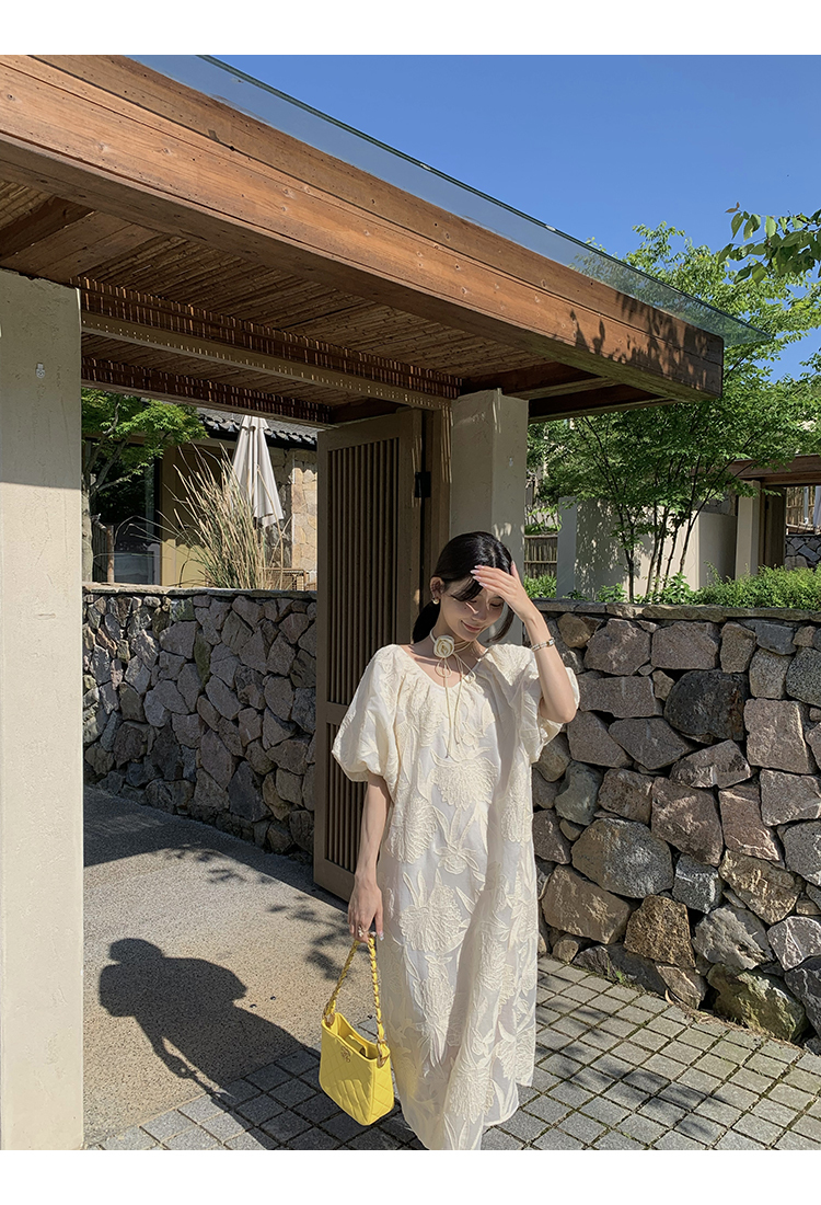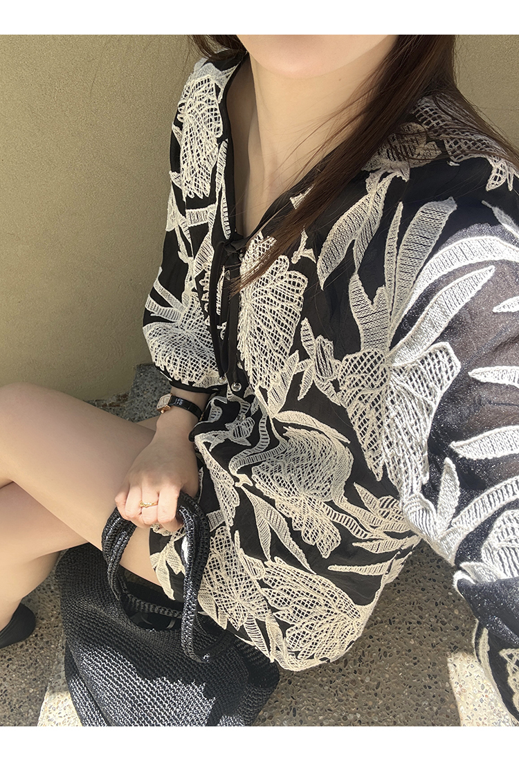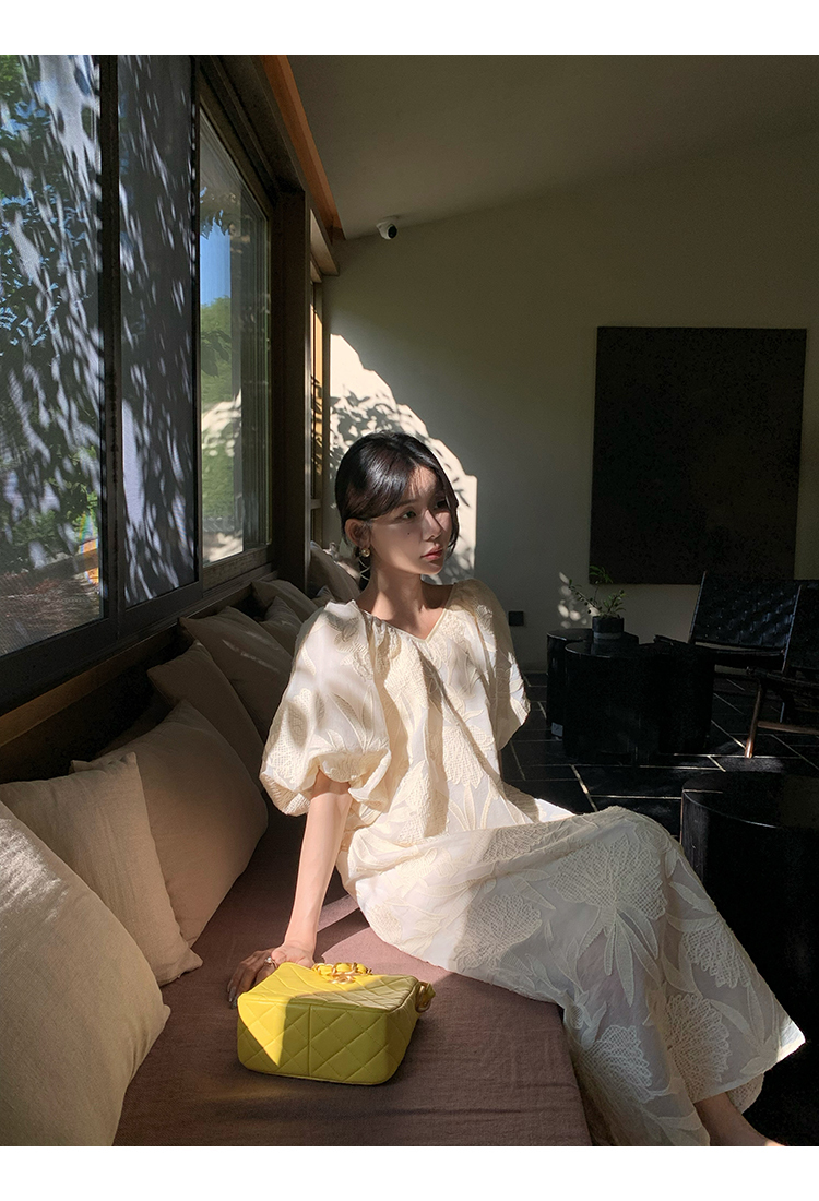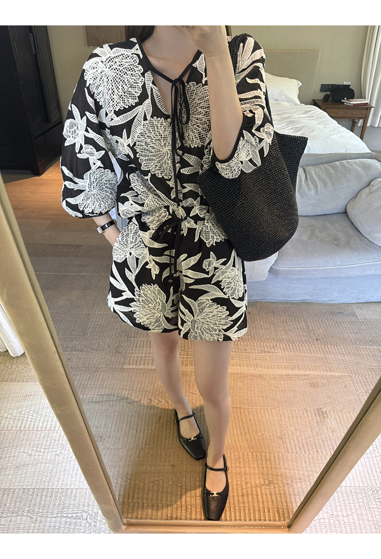 *o-ha-you*【FMQL2042032】繁花疏影重工植物刺繡系列浪漫鬆弛感泡泡袖連衣裙洋裝/上衣/短褲