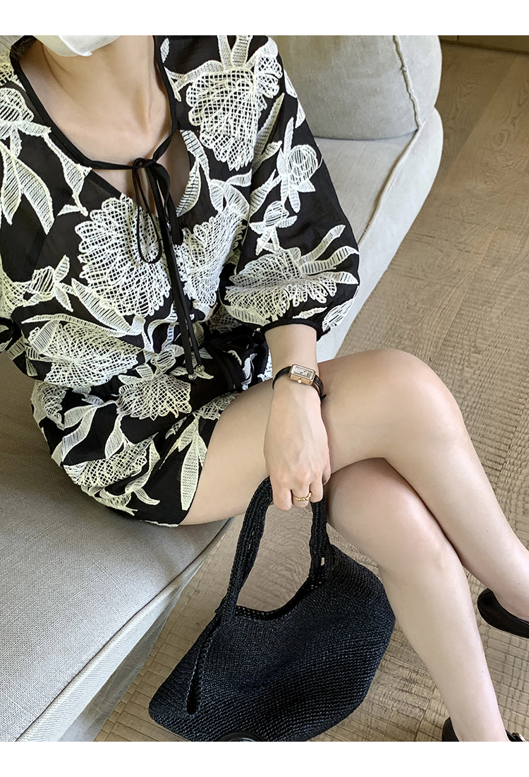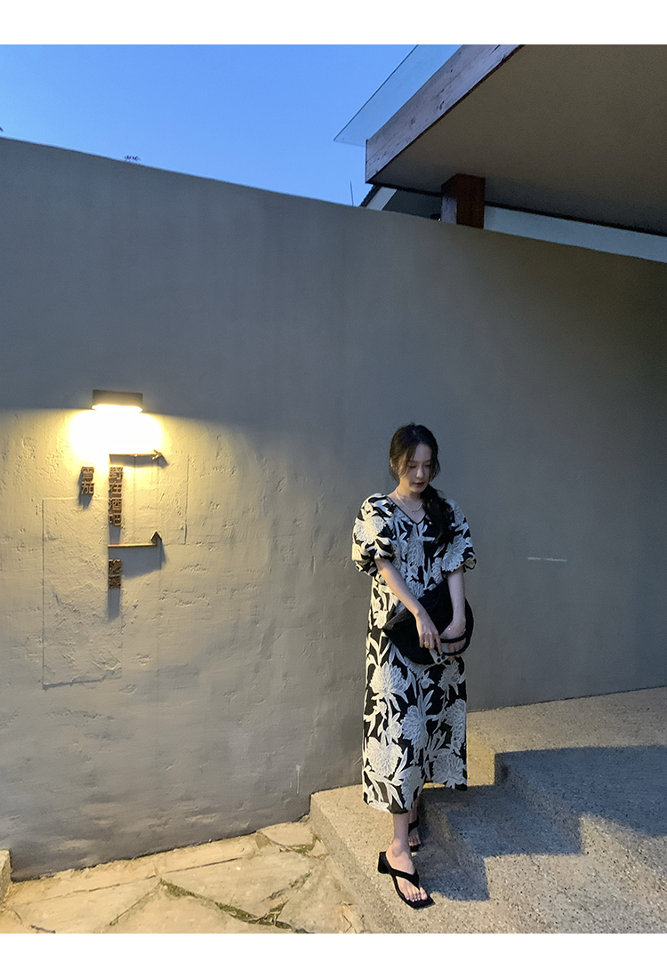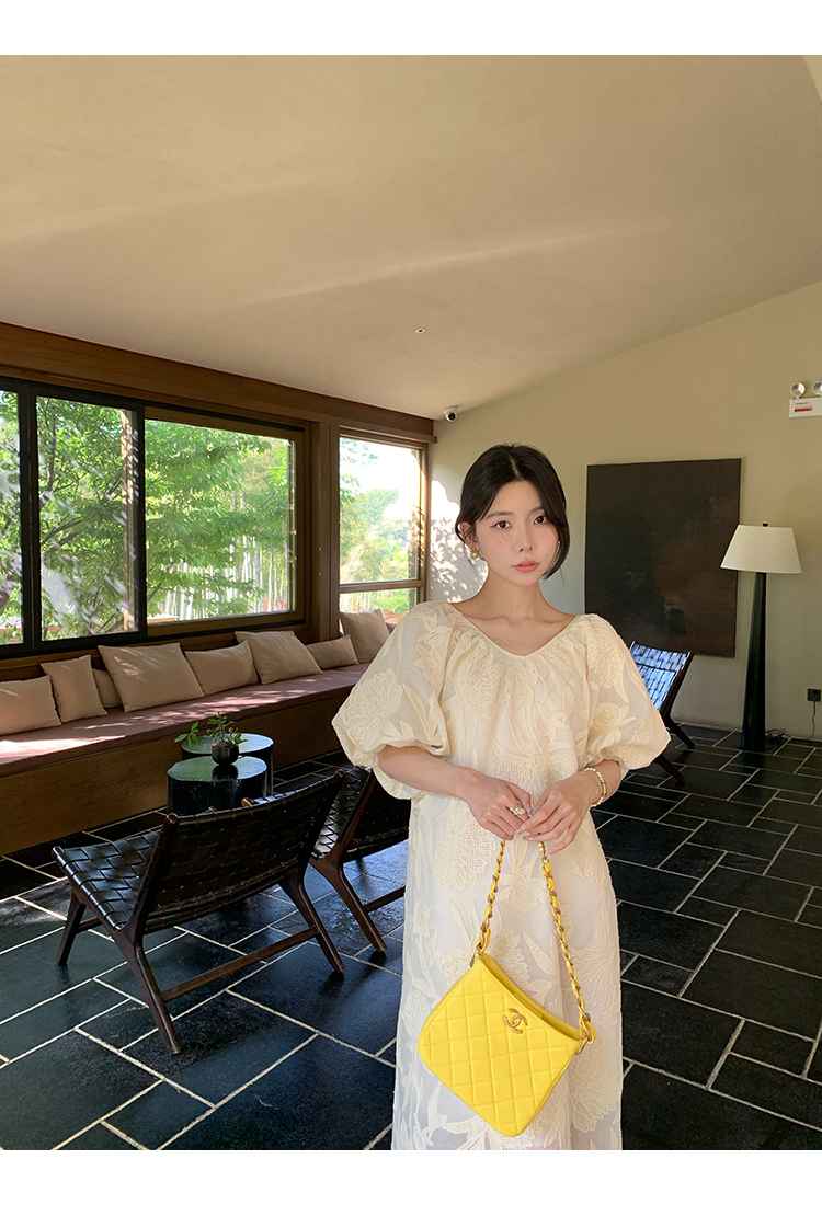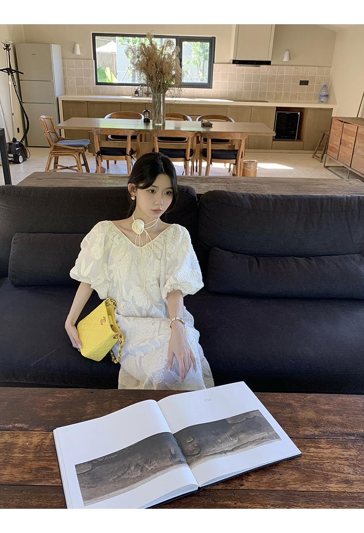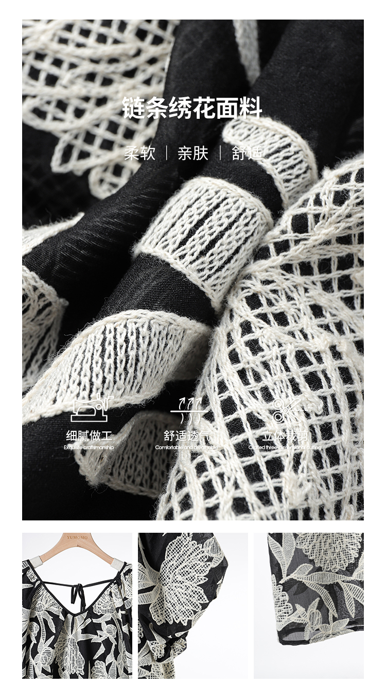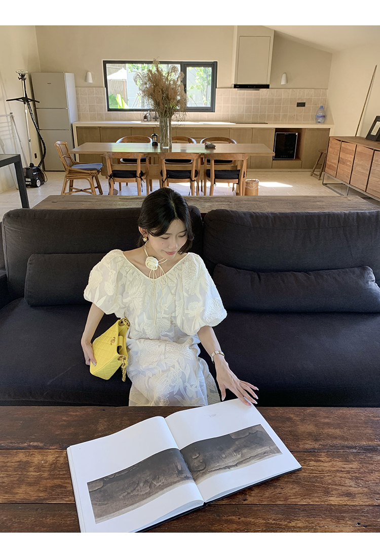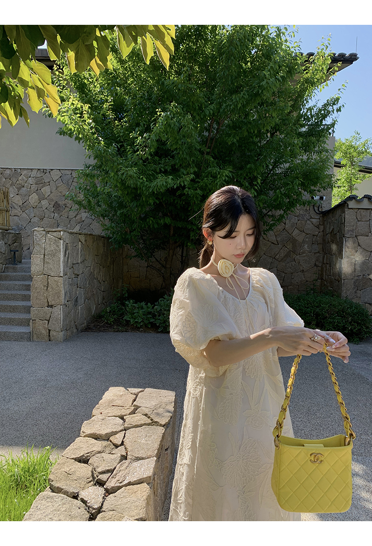 *o-ha-you*【FMQL2042032】繁花疏影重工植物刺繡系列浪漫鬆弛感泡泡袖連衣裙洋裝/上衣/短褲