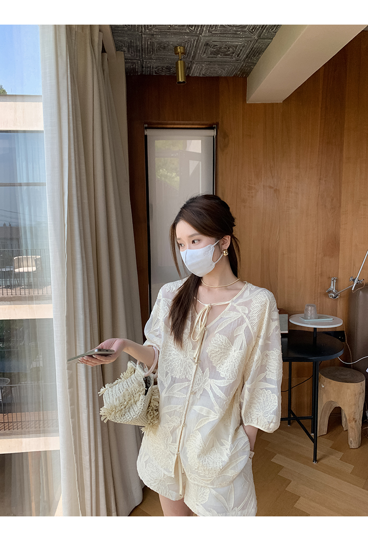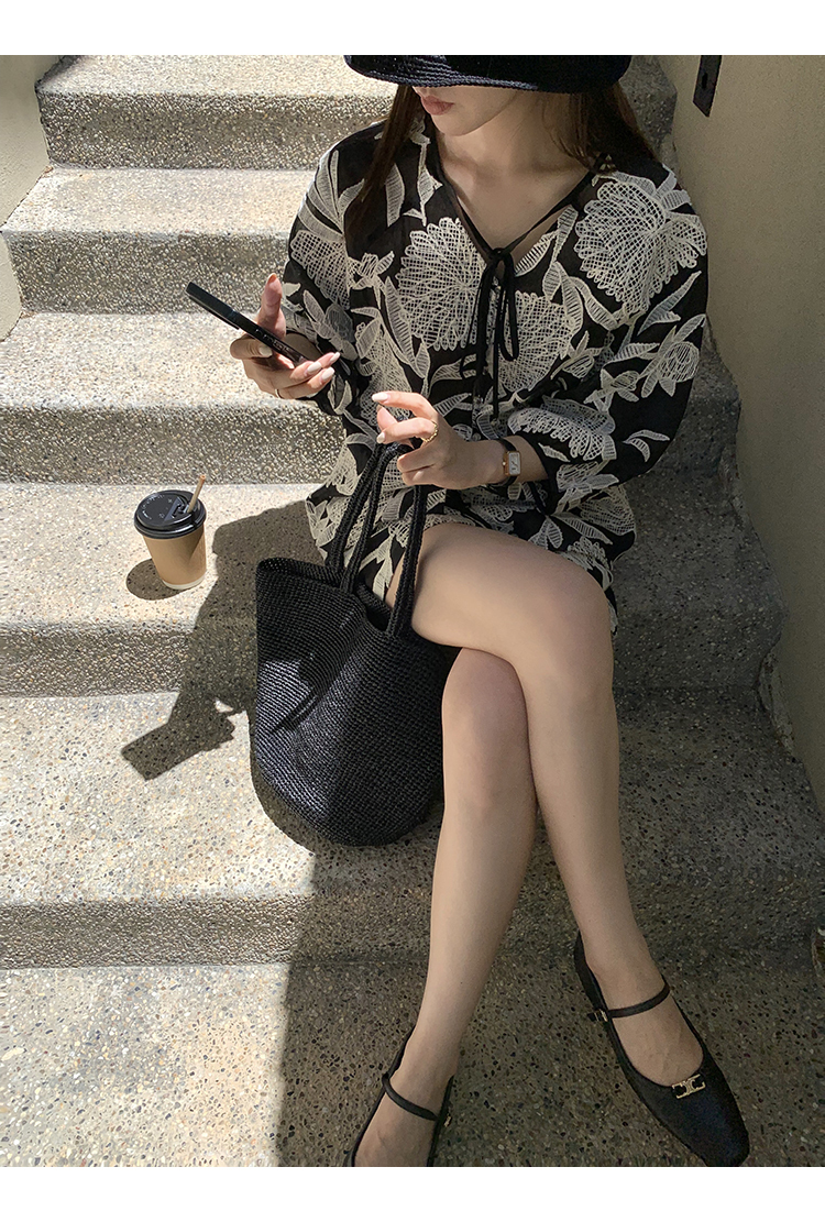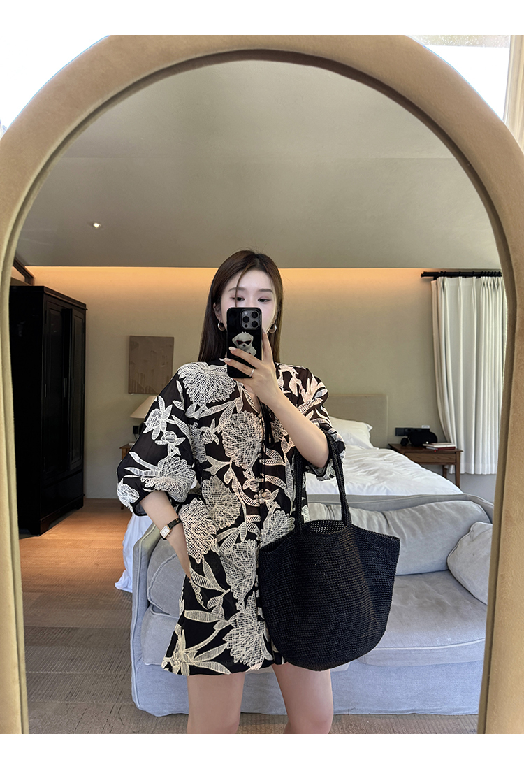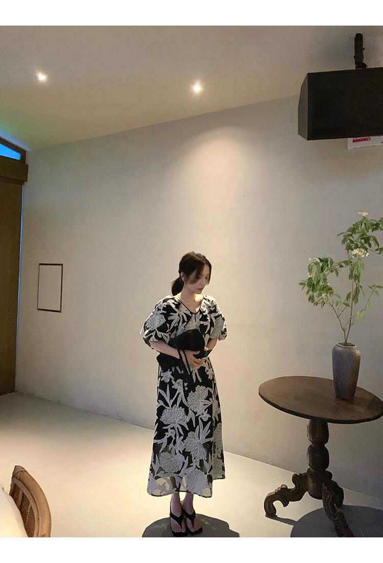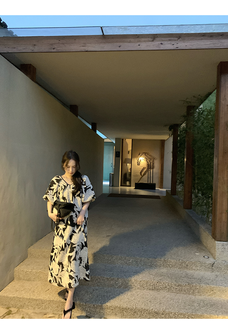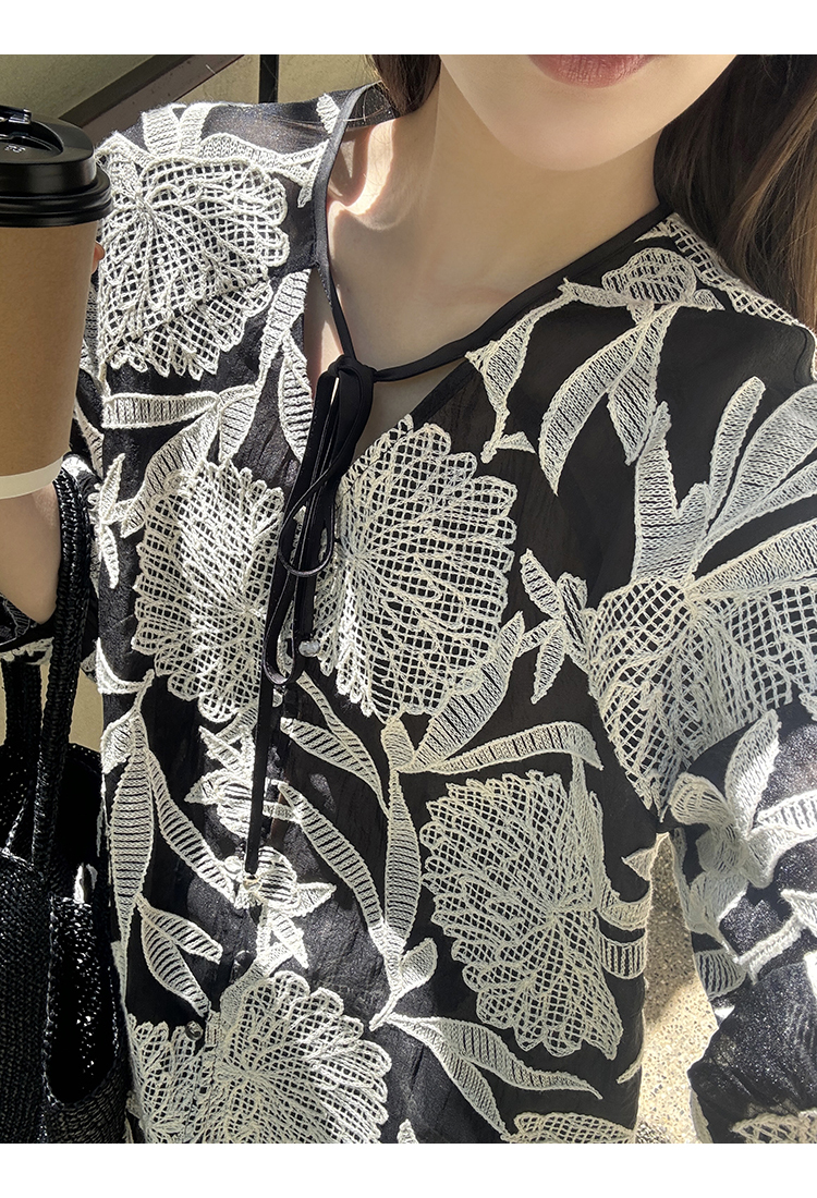 *o-ha-you*【FMQL2042032】繁花疏影重工植物刺繡系列浪漫鬆弛感泡泡袖連衣裙洋裝/上衣/短褲