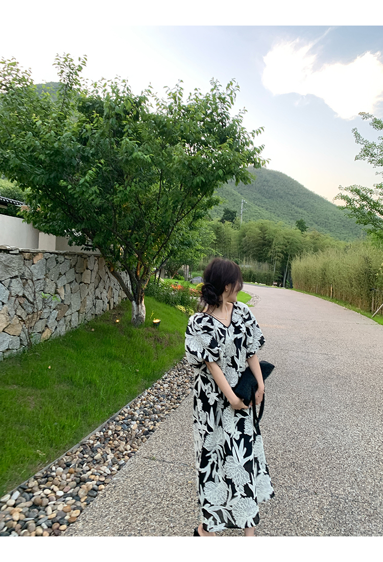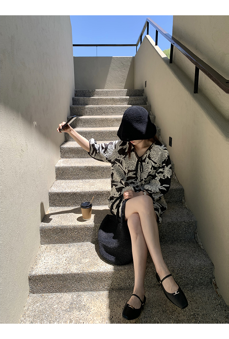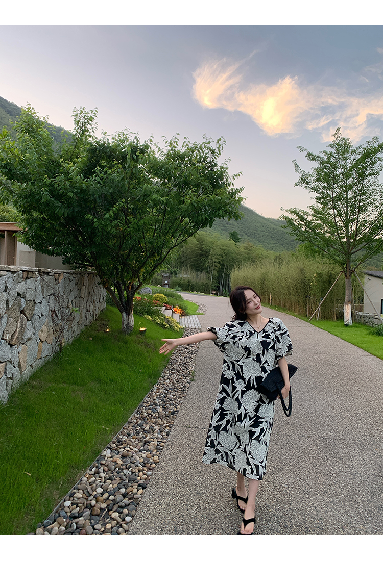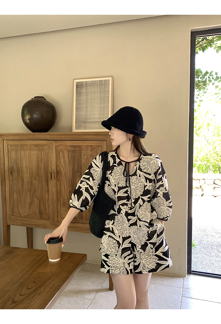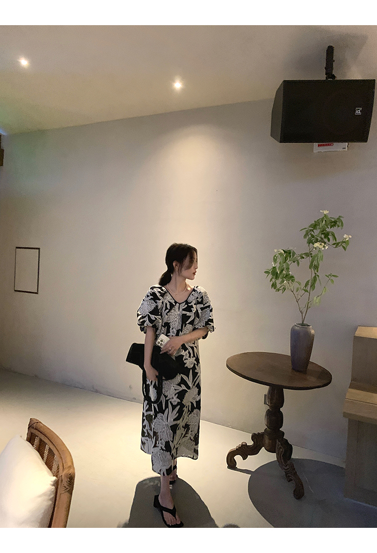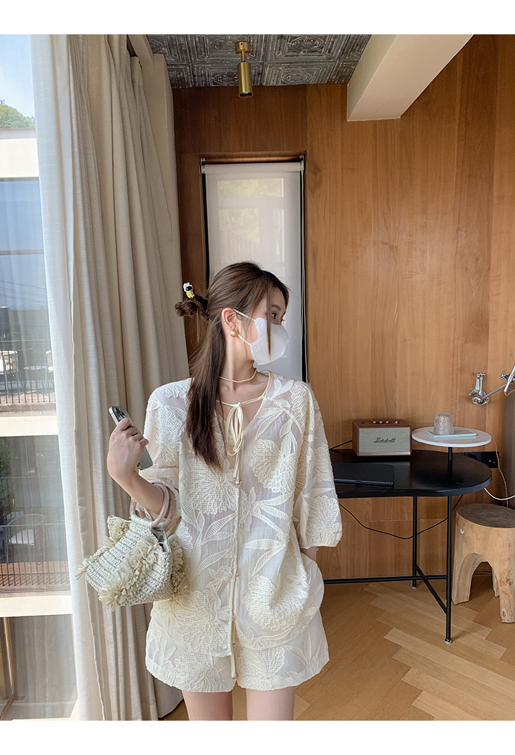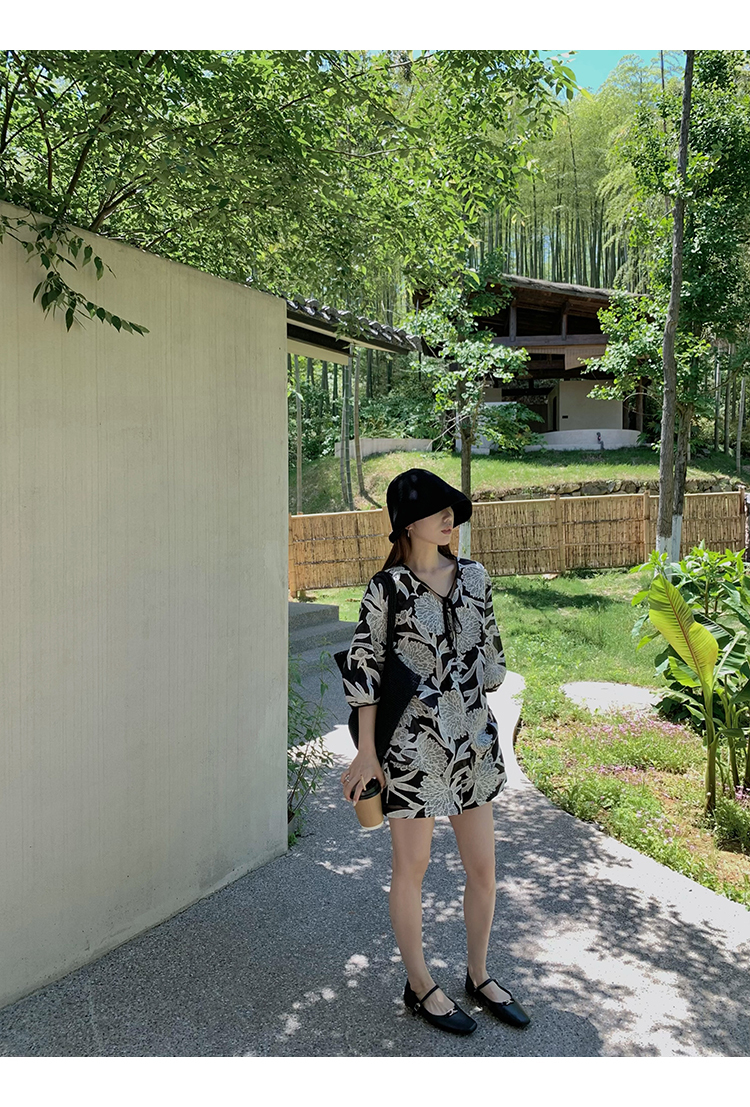 *o-ha-you*【FMQL2042032】繁花疏影重工植物刺繡系列浪漫鬆弛感泡泡袖連衣裙洋裝/上衣/短褲