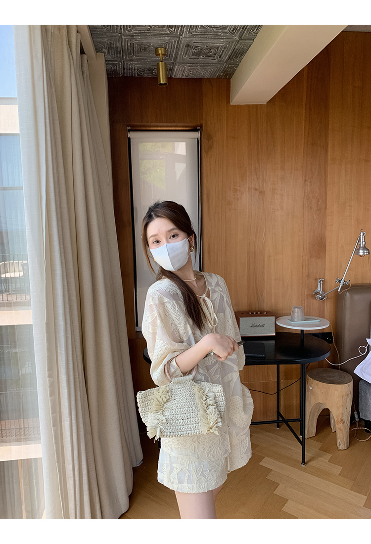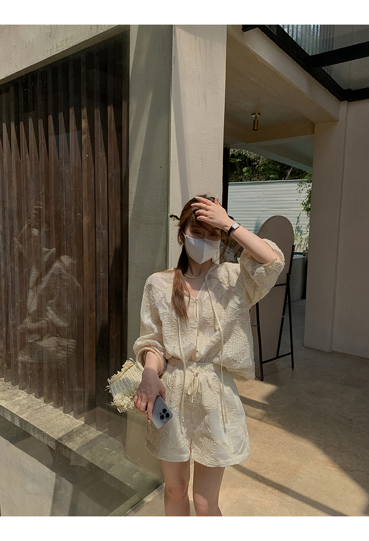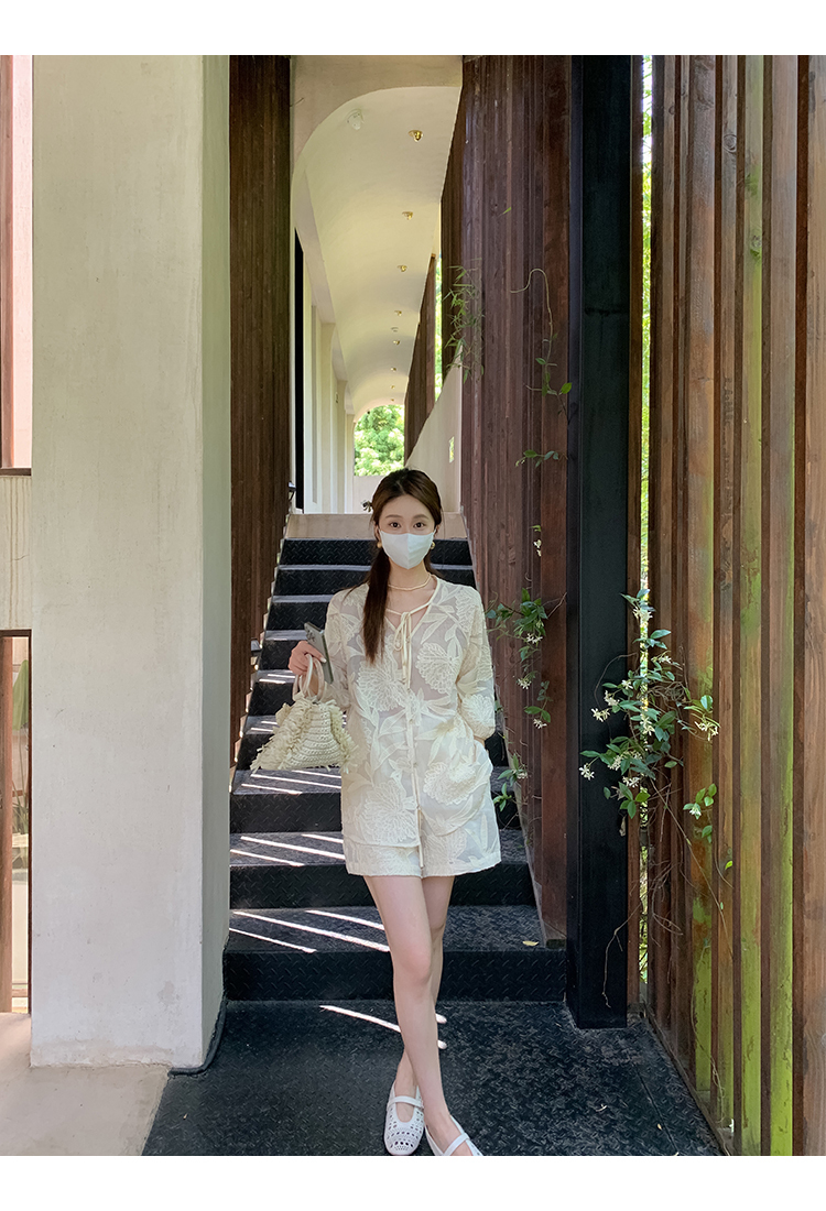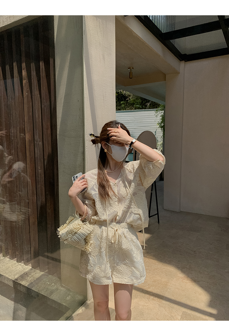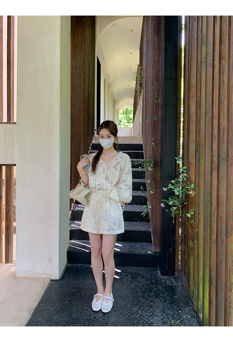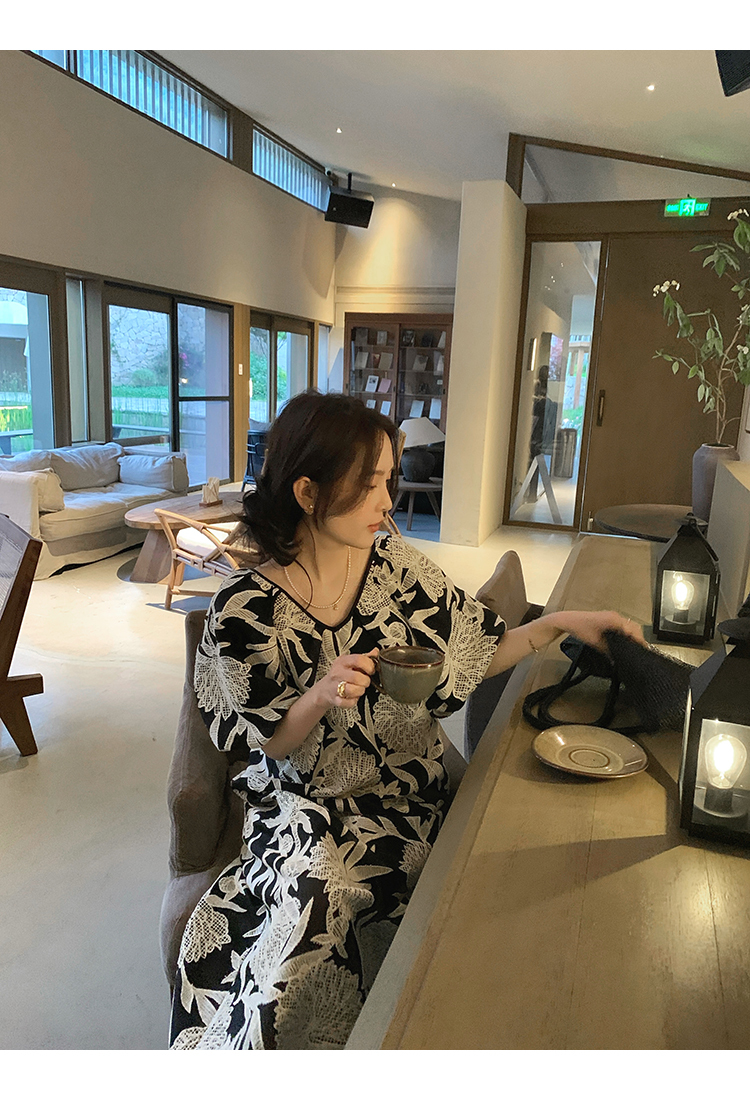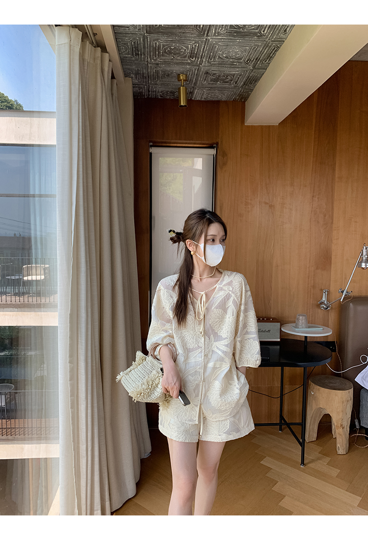 *o-ha-you*【FMQL2042032】繁花疏影重工植物刺繡系列浪漫鬆弛感泡泡袖連衣裙洋裝/上衣/短褲