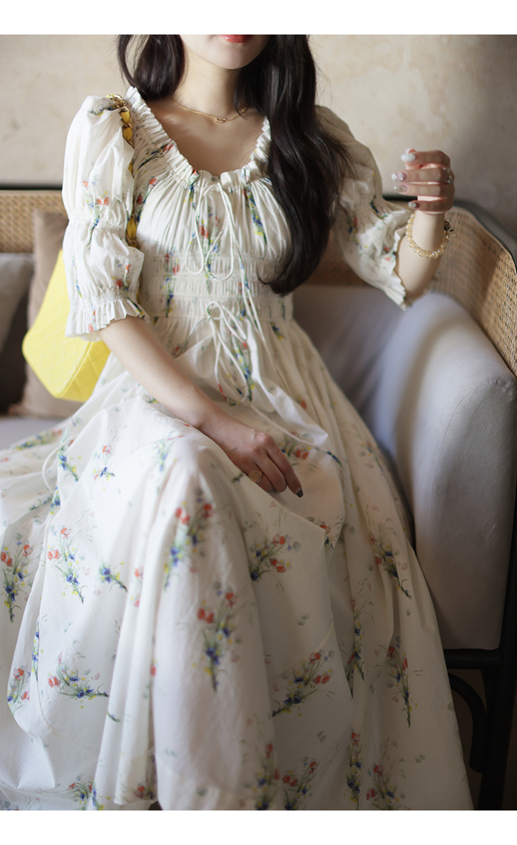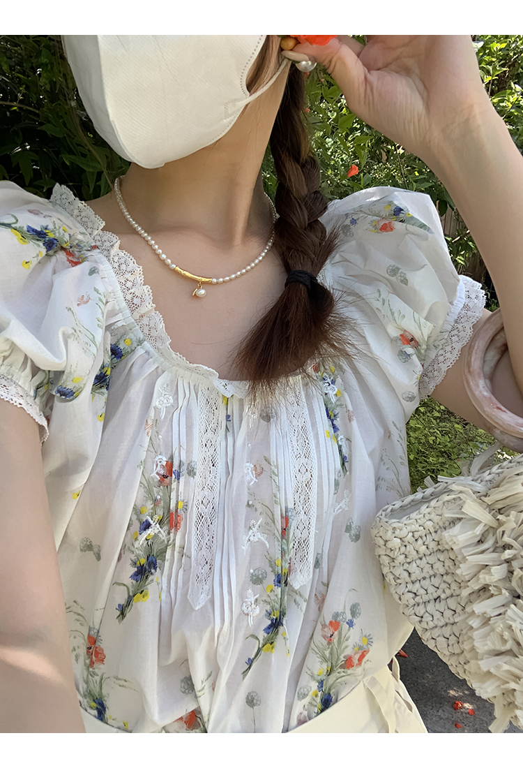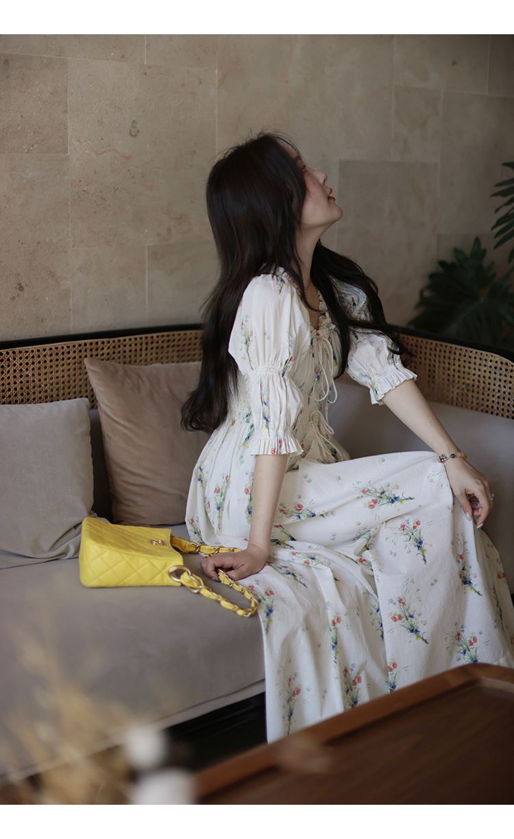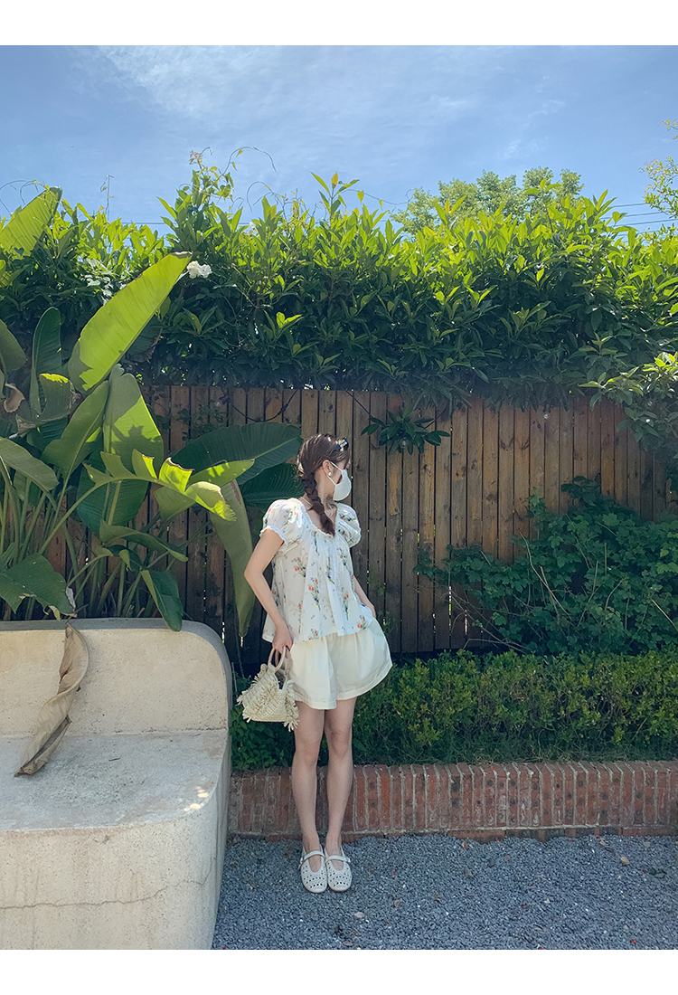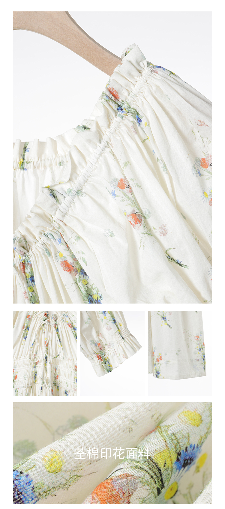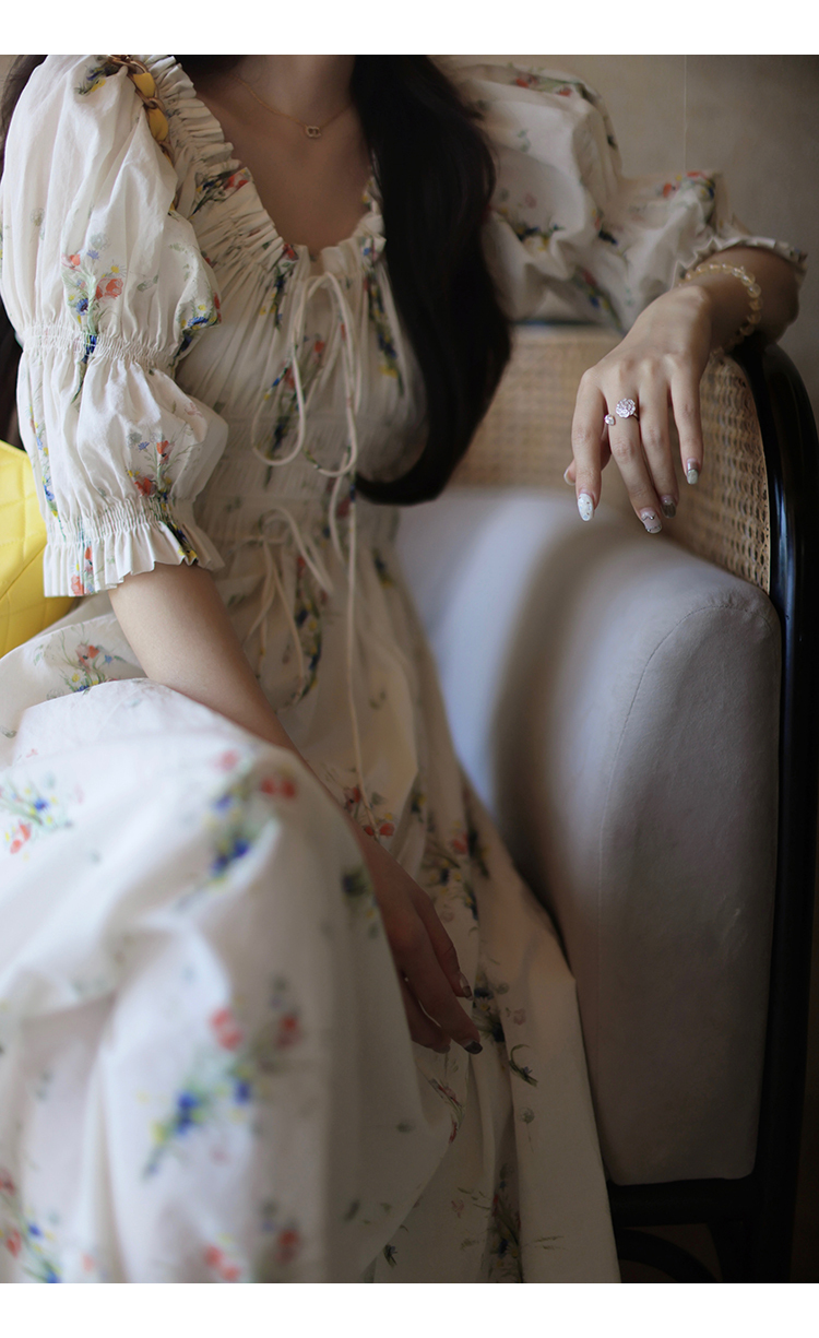 袖子設計雙層藕節五分袖設計貼合手臂,法式田園風,顯手臂瘦