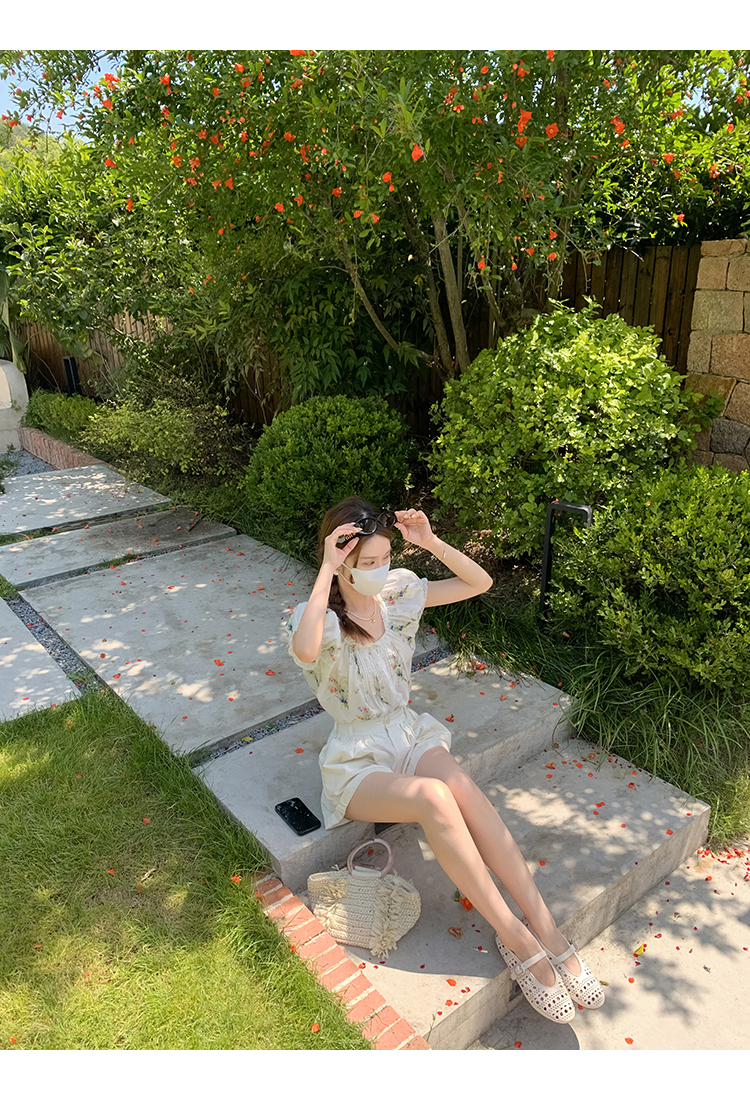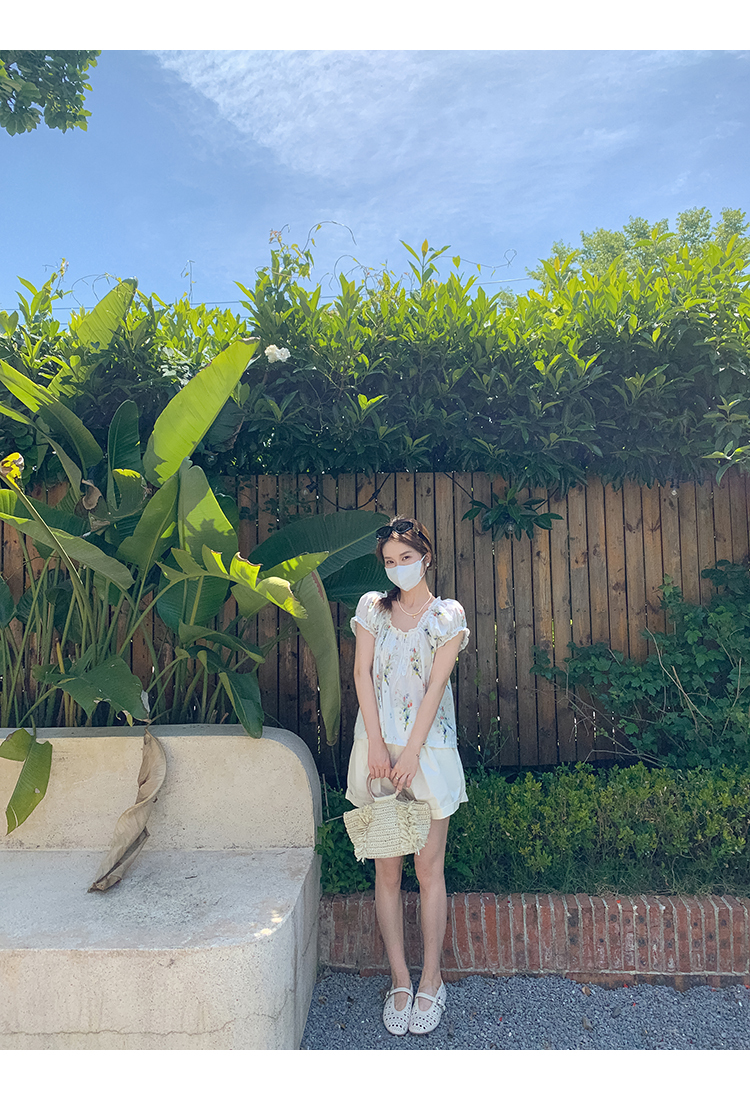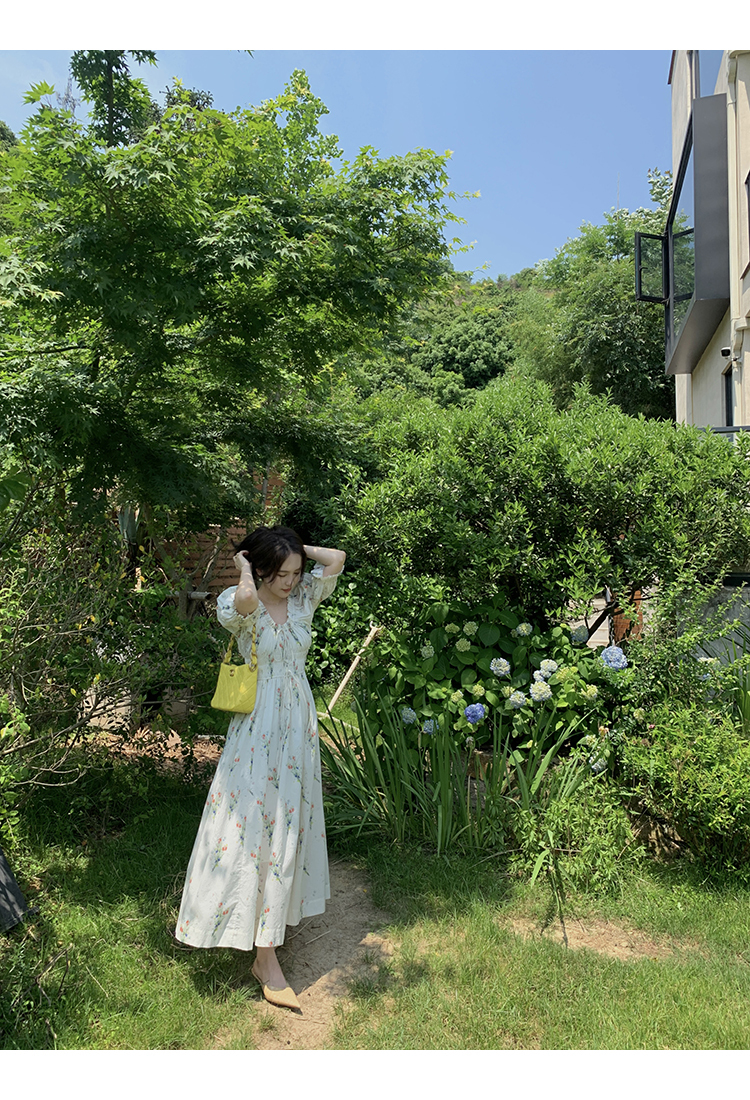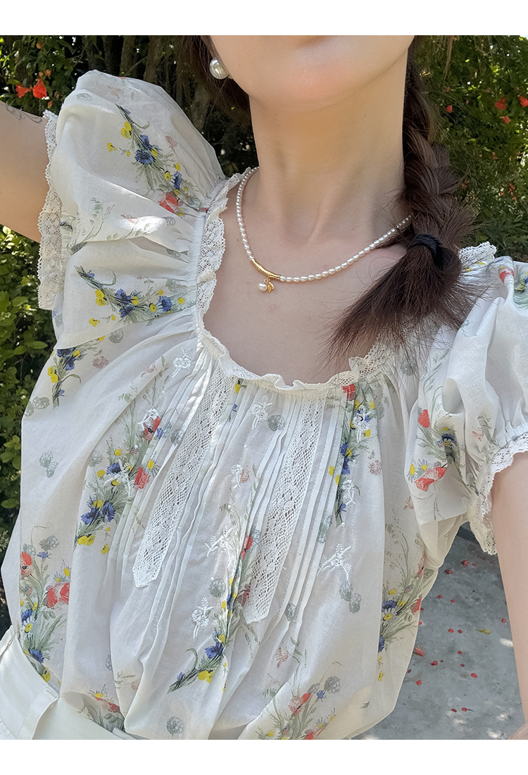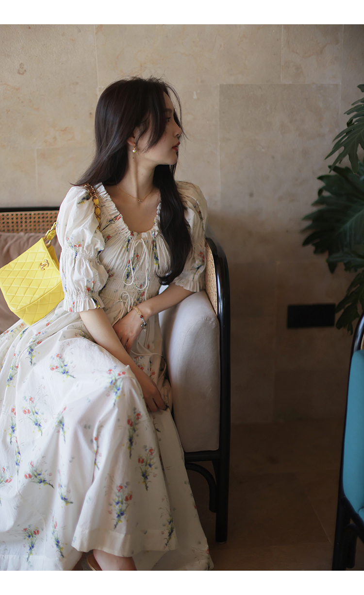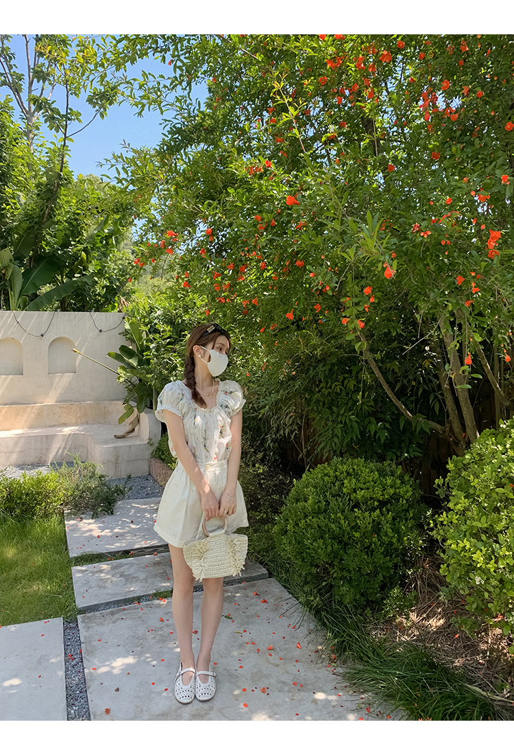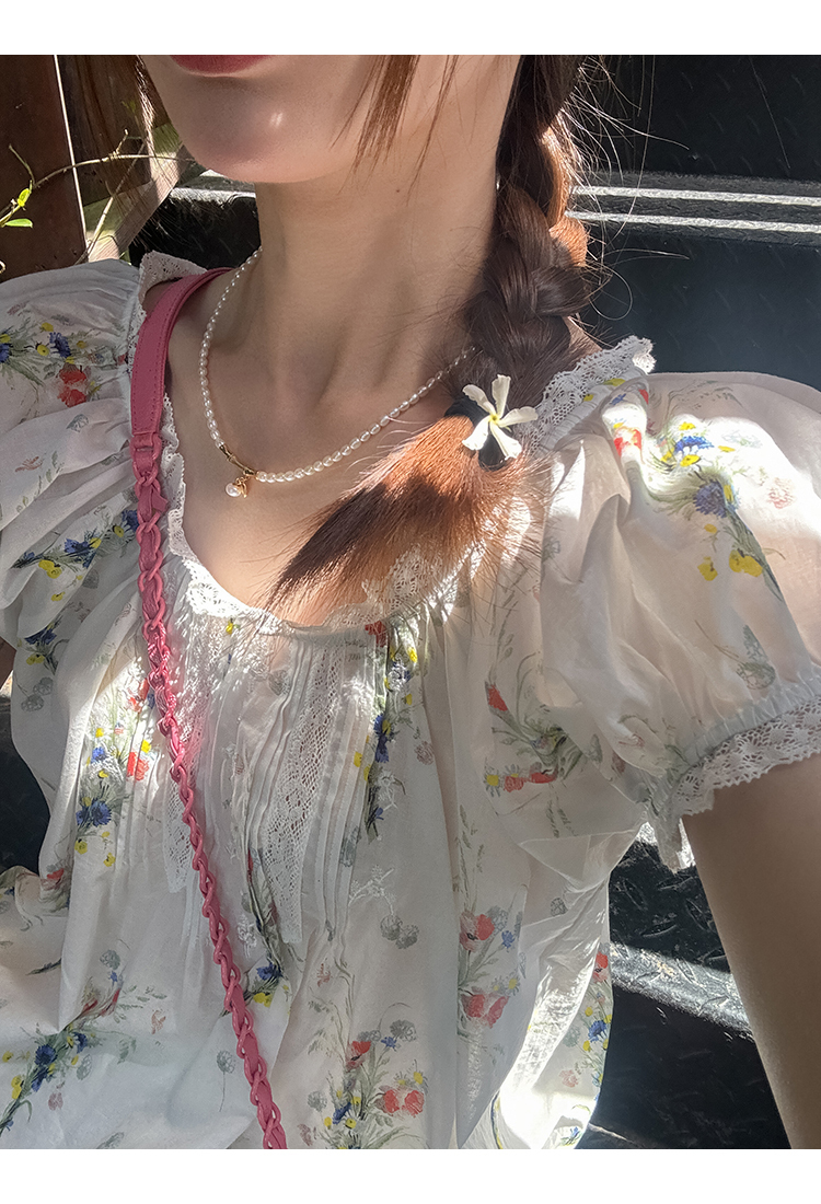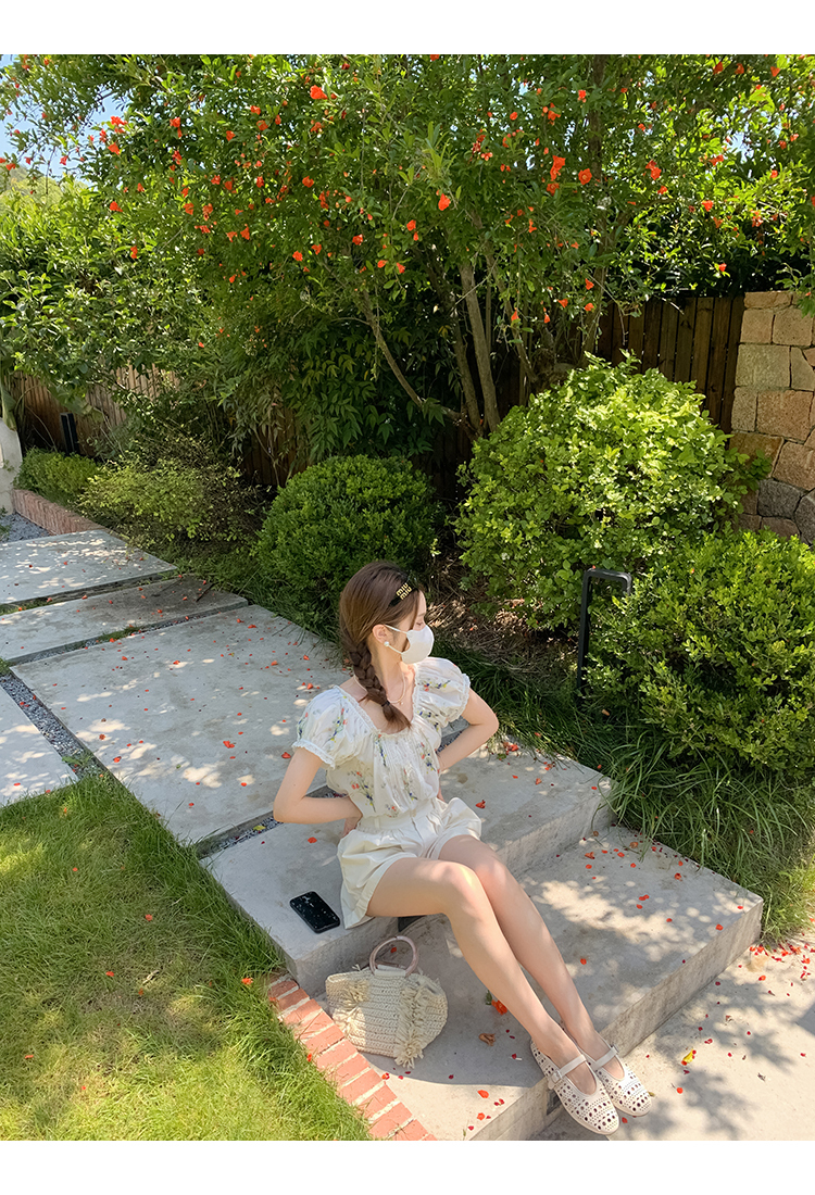 袖子設計雙層藕節五分袖設計貼合手臂,法式田園風,顯手臂瘦