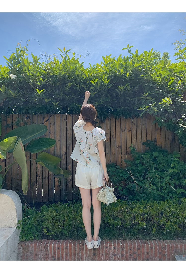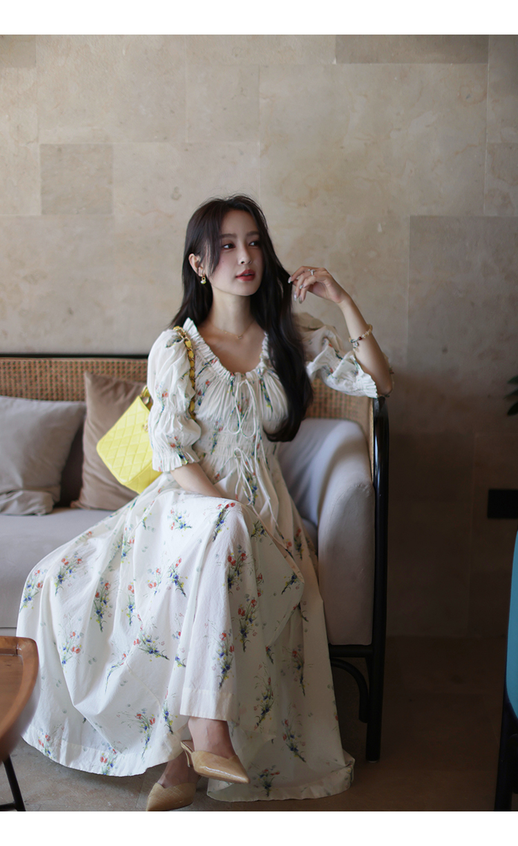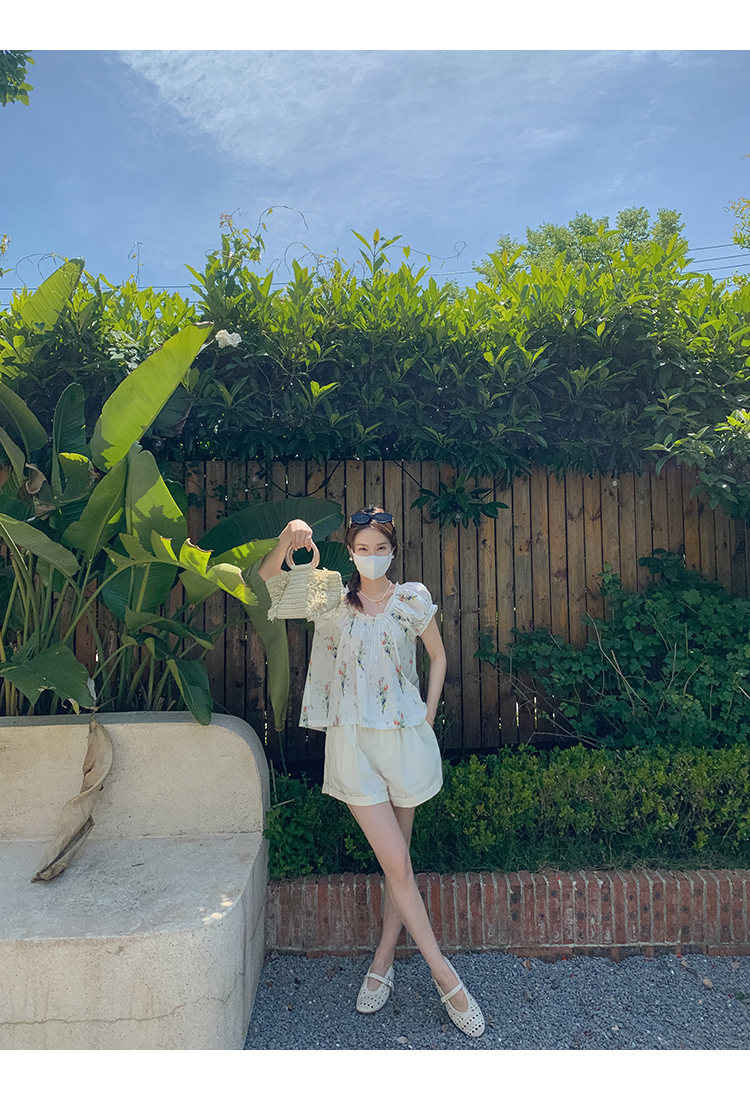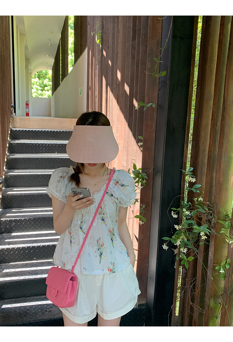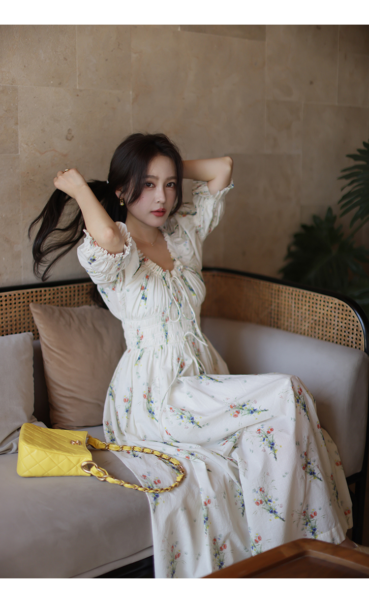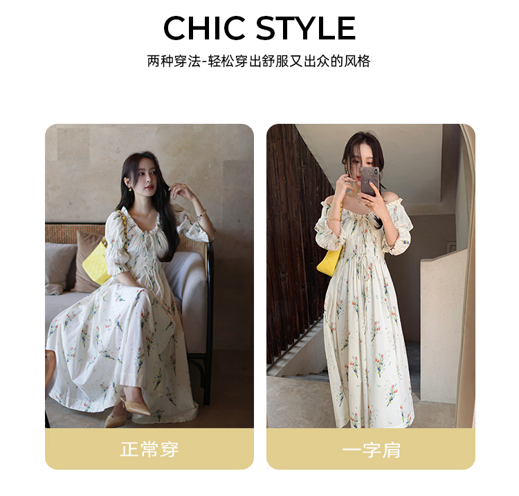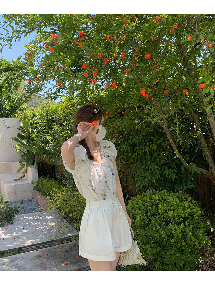袖子設計雙層藕節五分袖設計貼合手臂,法式田園風,顯手臂瘦