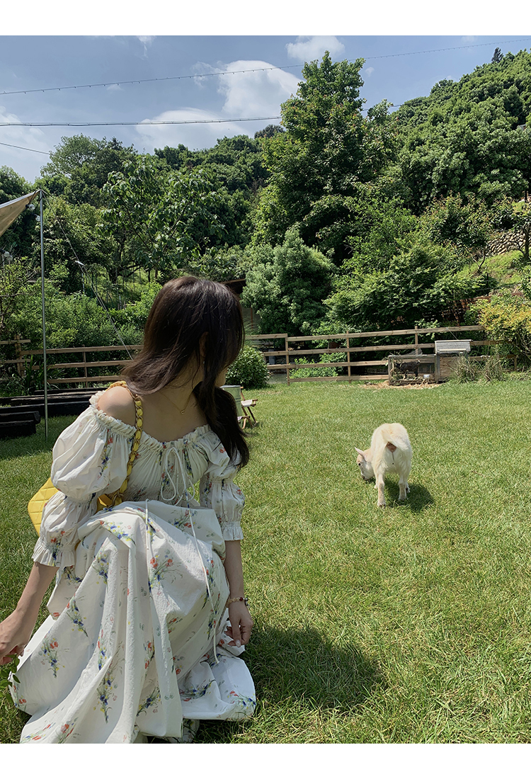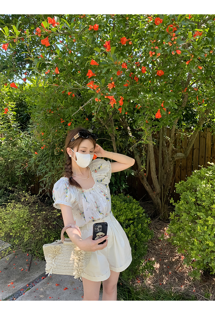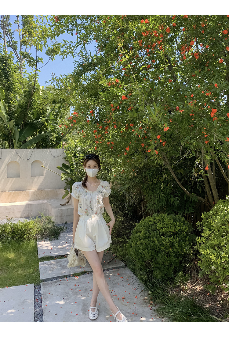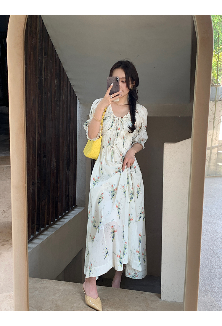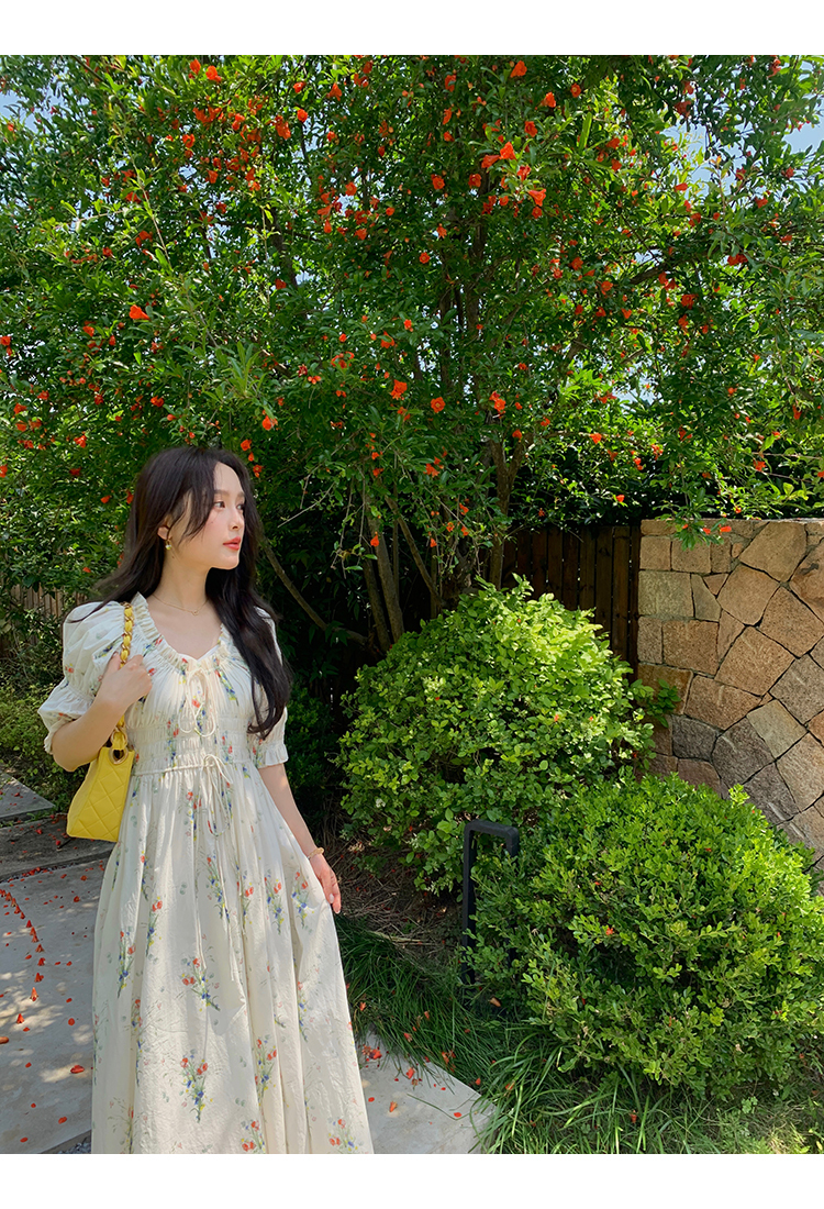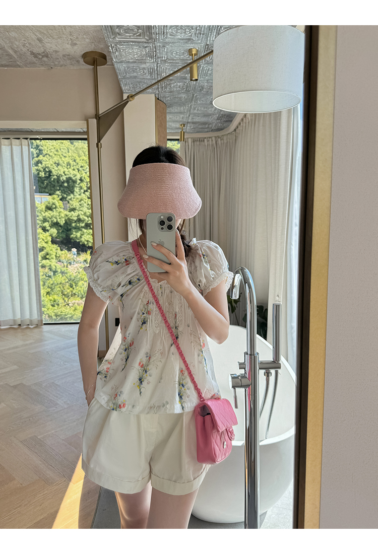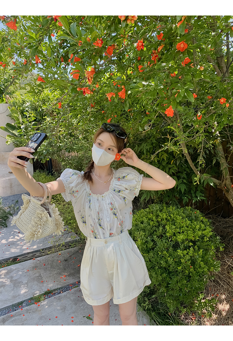 袖子設計雙層藕節五分袖設計貼合手臂,法式田園風,顯手臂瘦