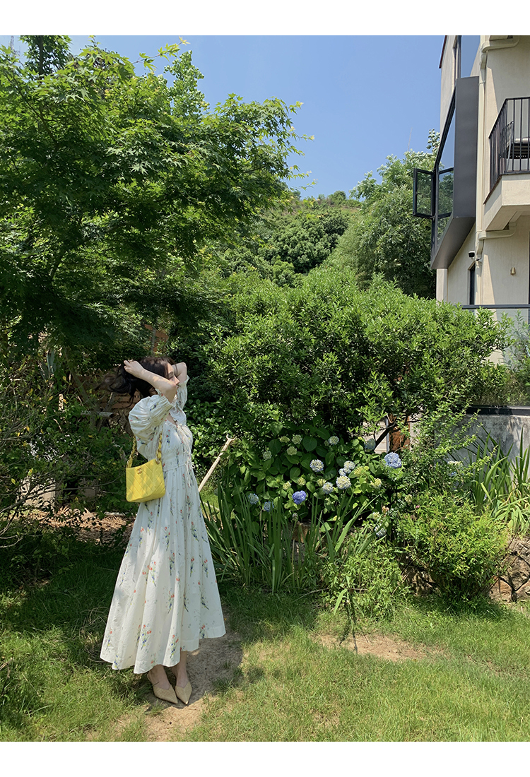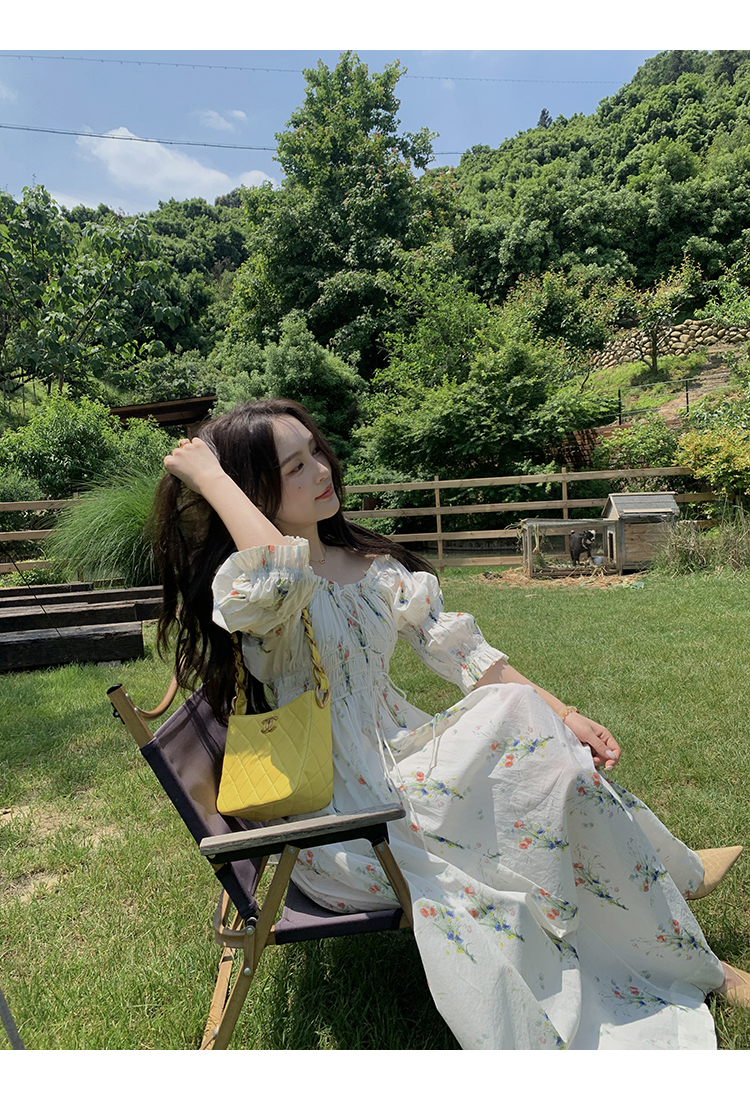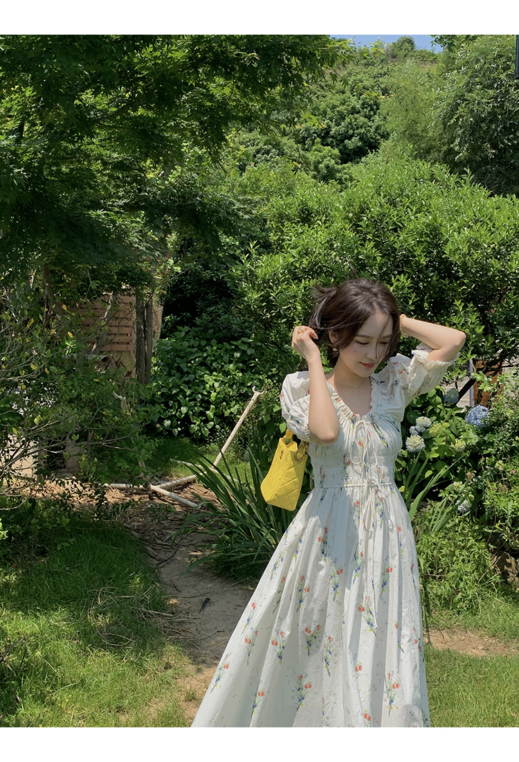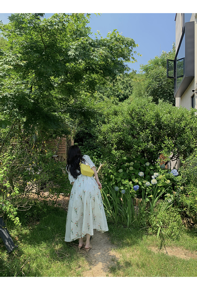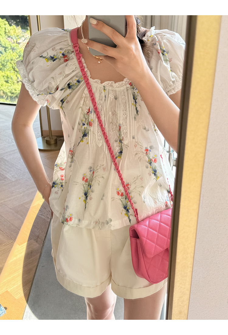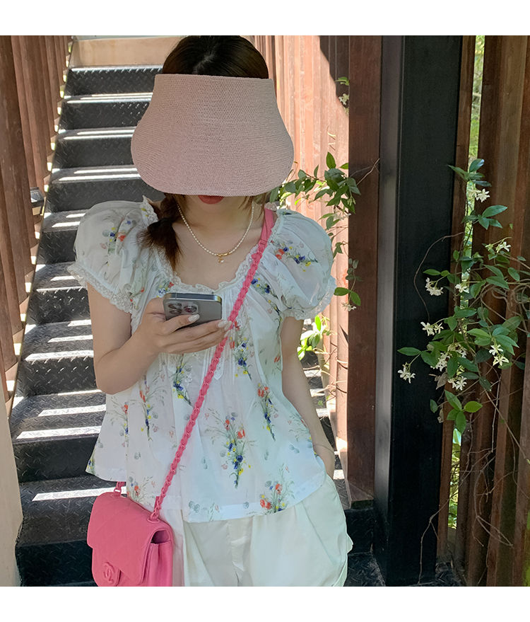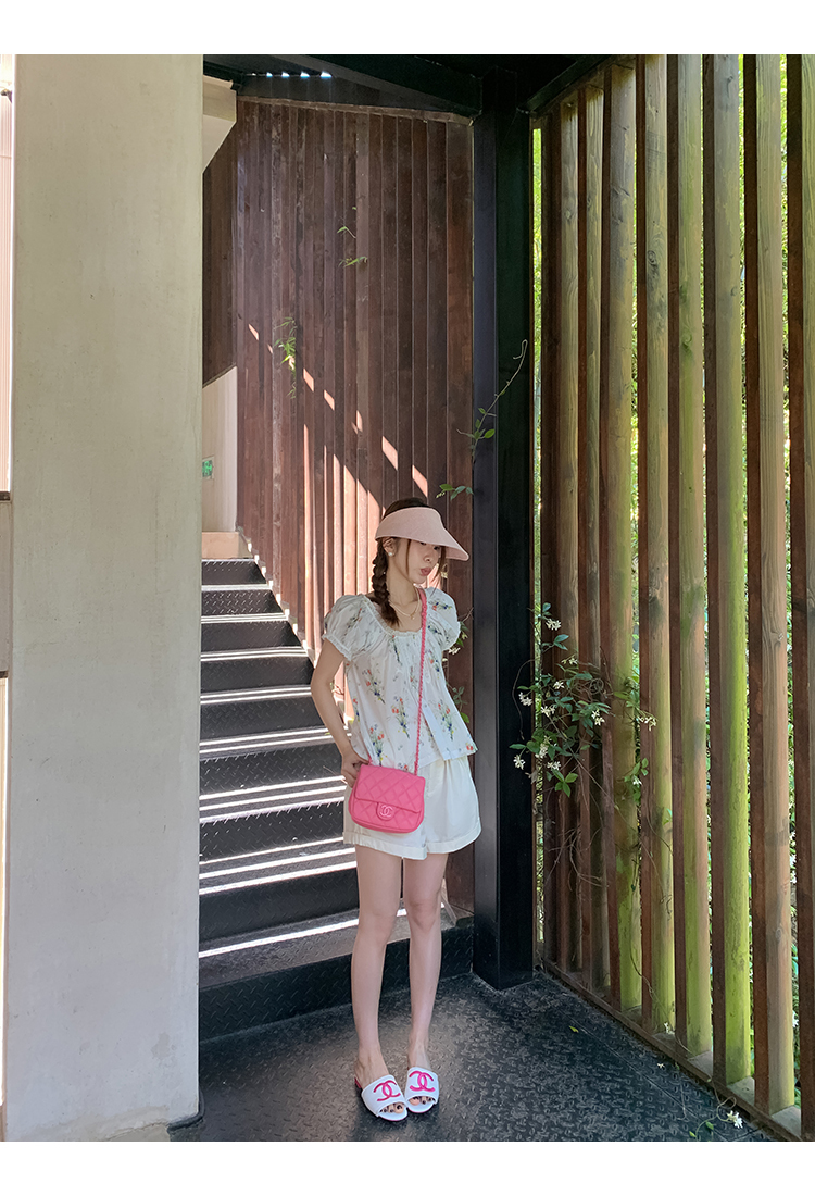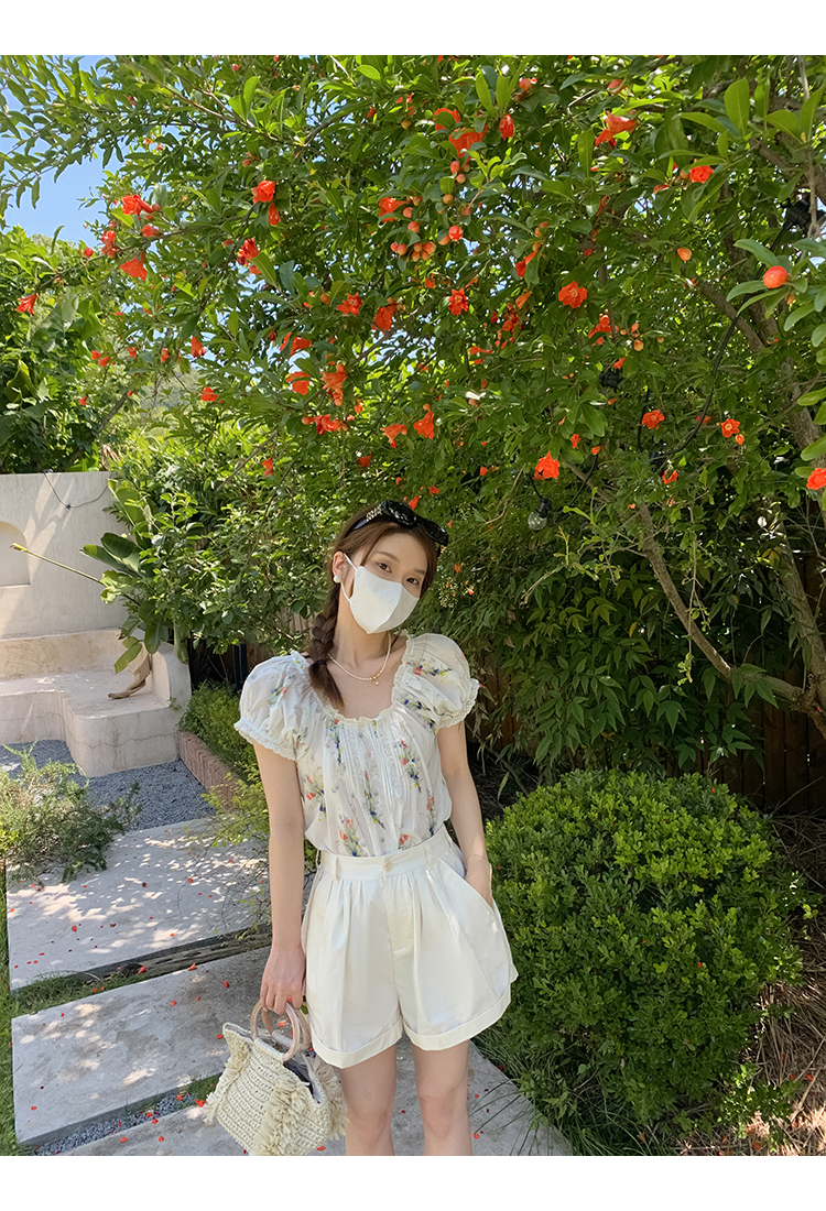 袖子設計雙層藕節五分袖設計貼合手臂,法式田園風,顯手臂瘦