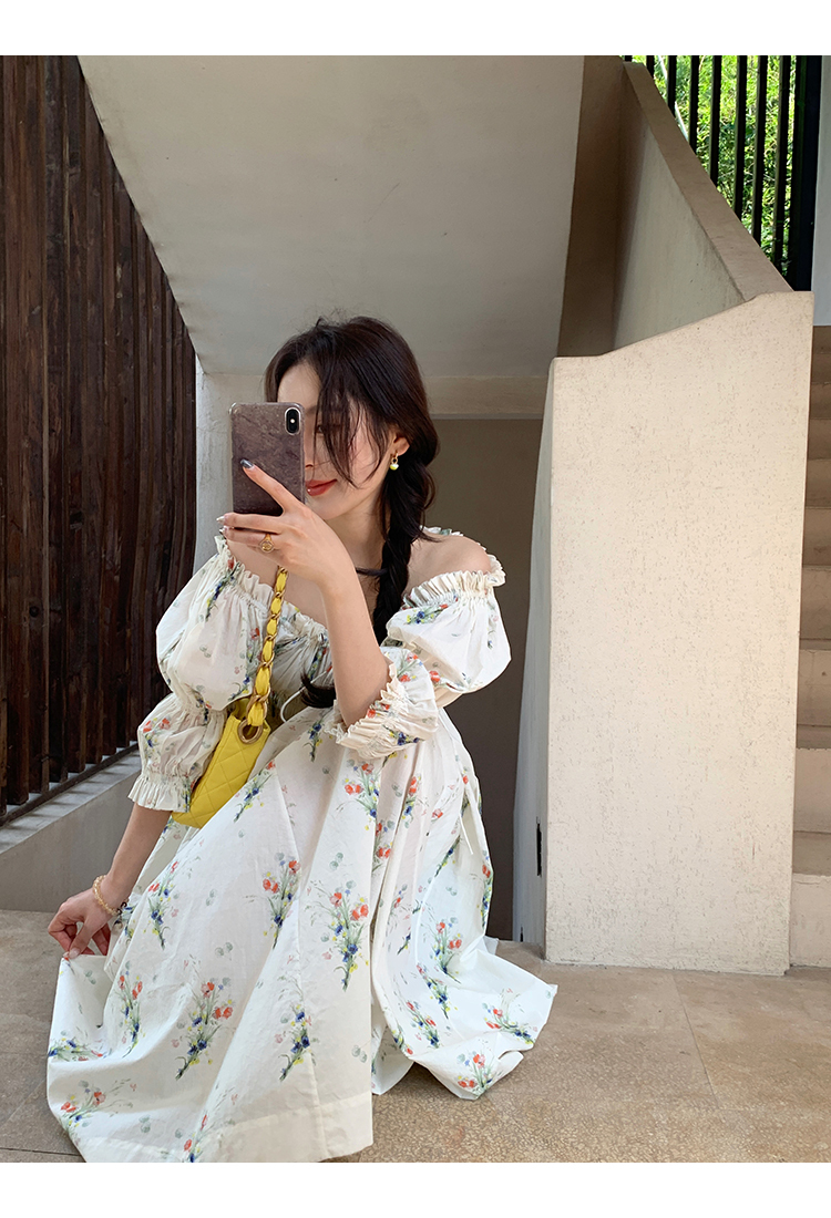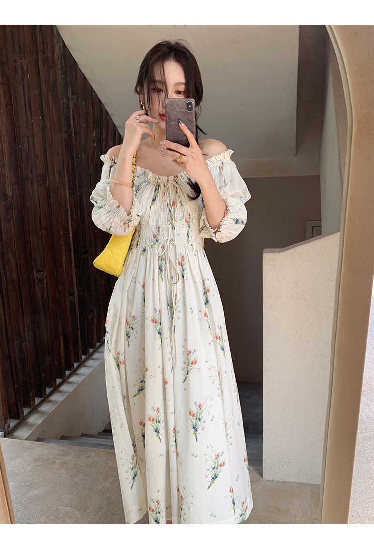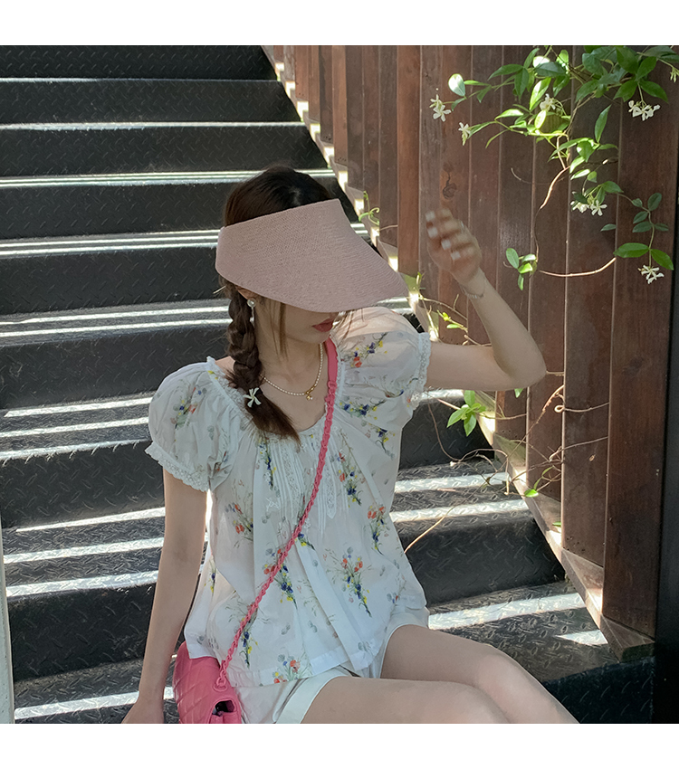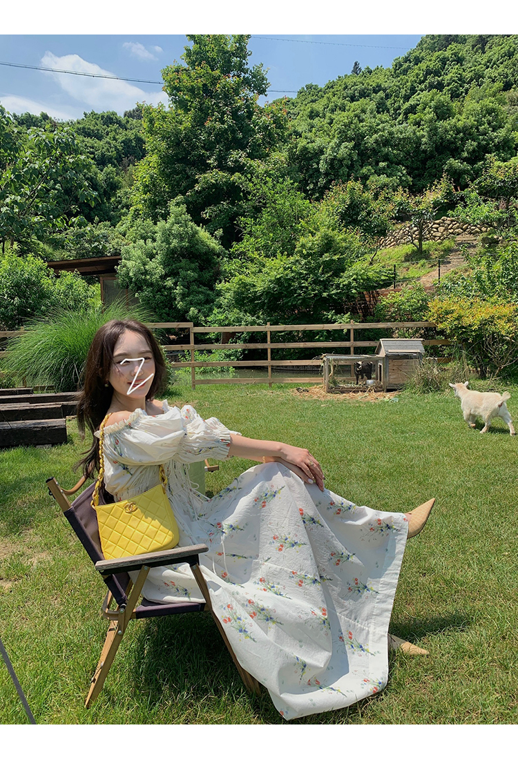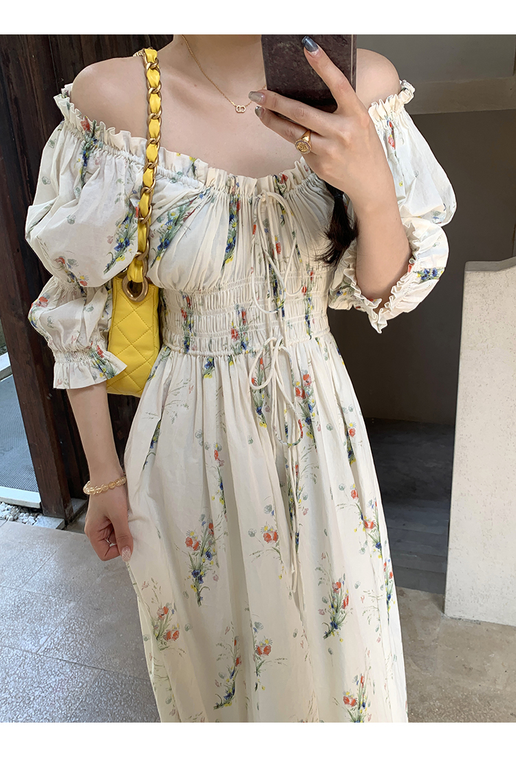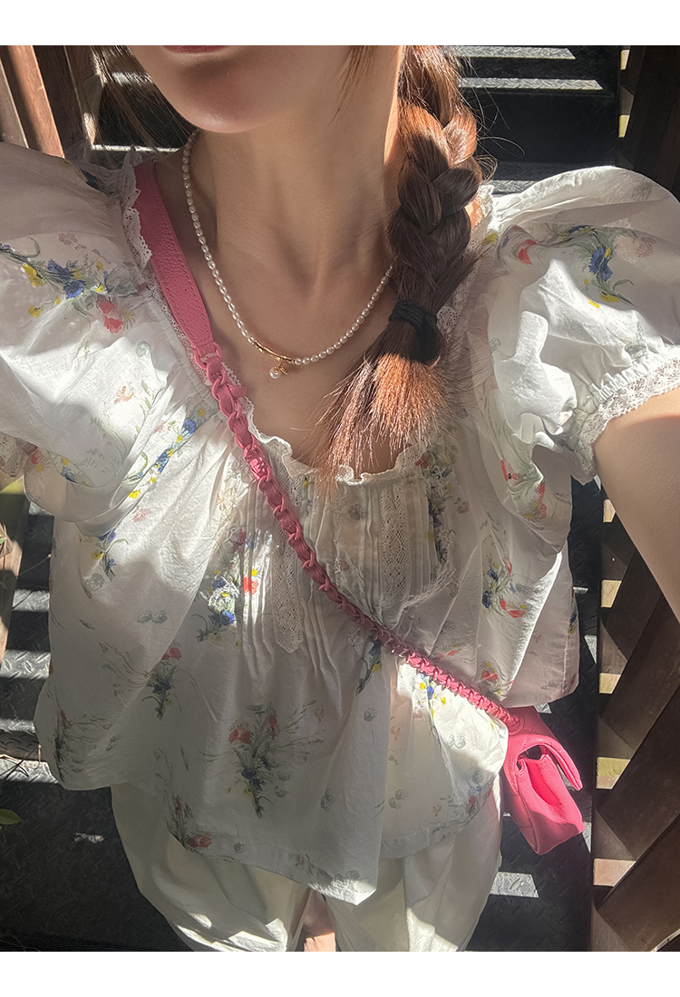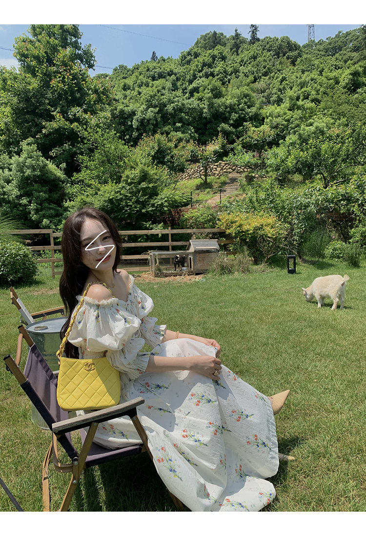 袖子設計雙層藕節五分袖設計貼合手臂,法式田園風,顯手臂瘦