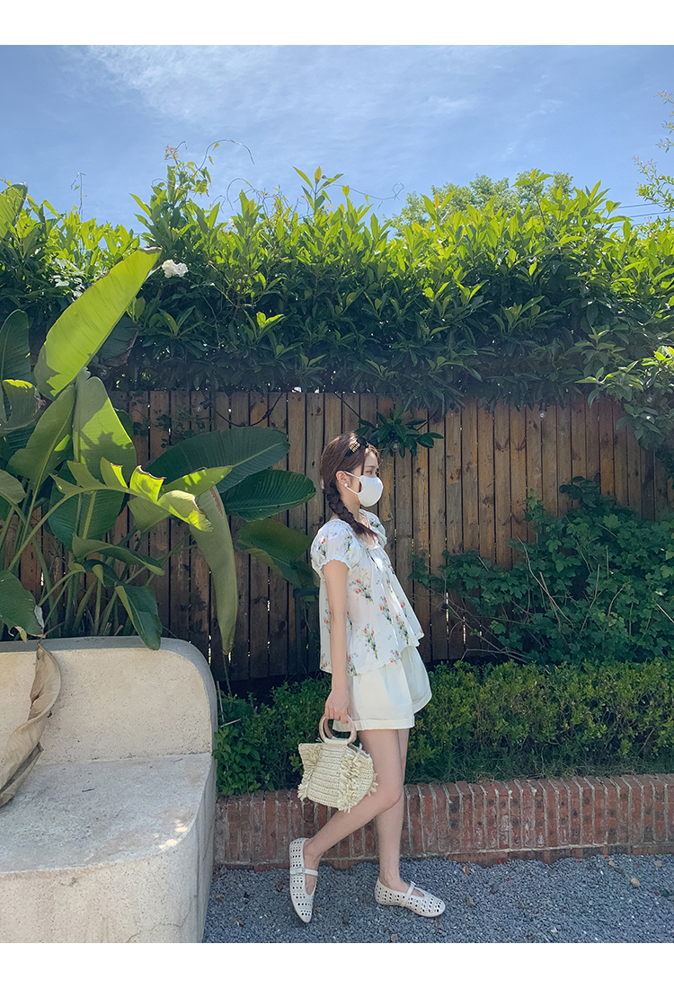 採用微寬鬆X型,收身的版型,與下身散擺的造型輕盈靈動,