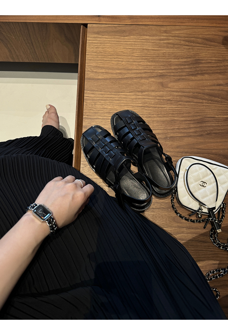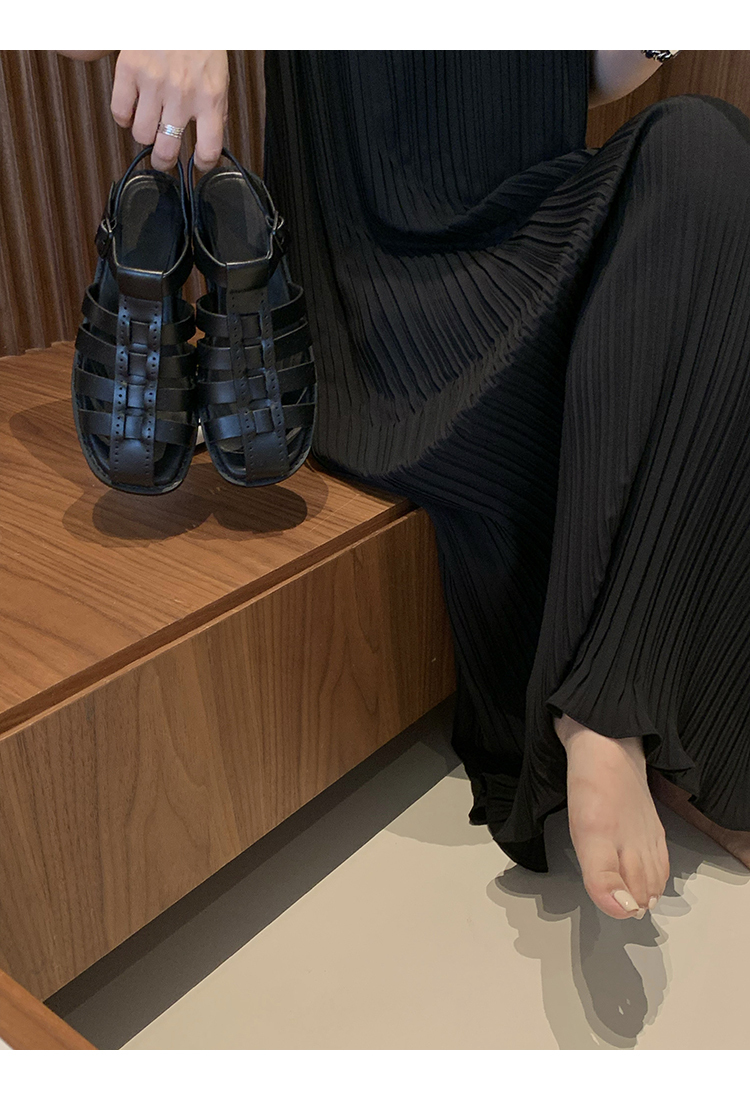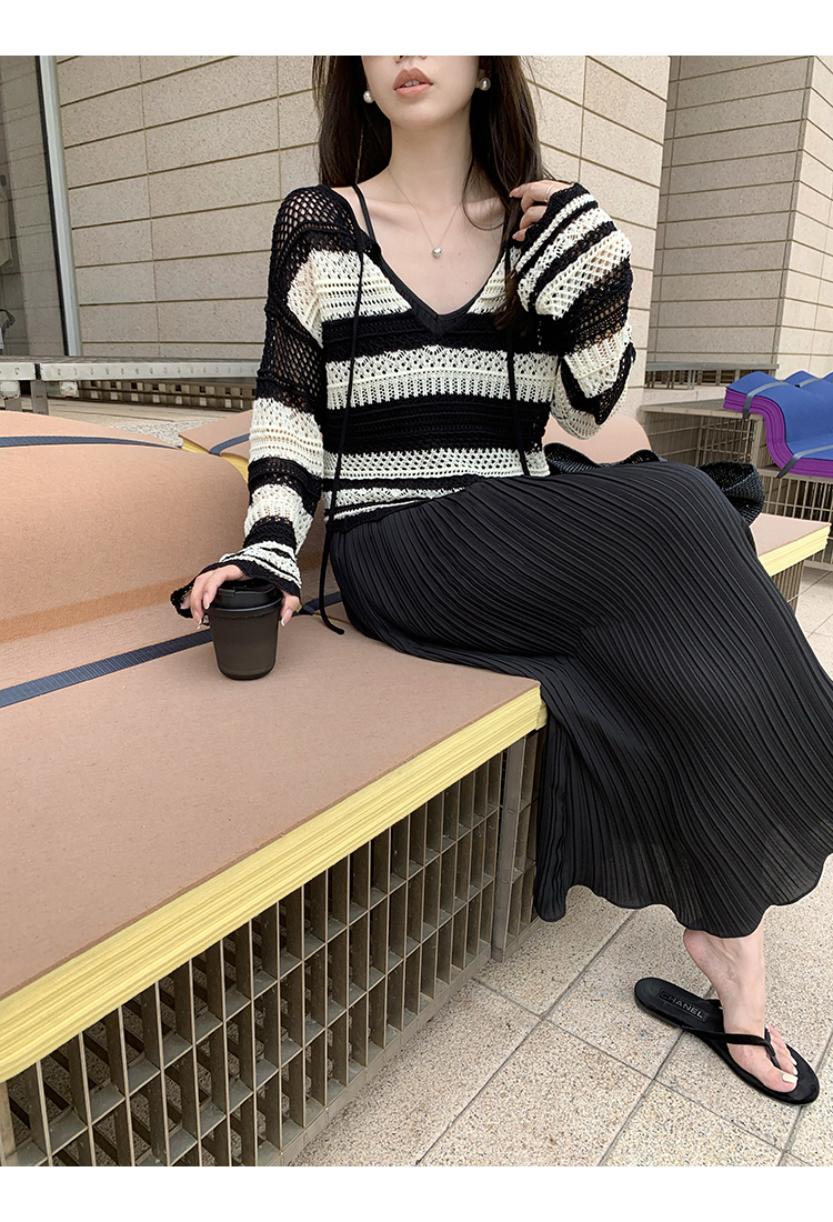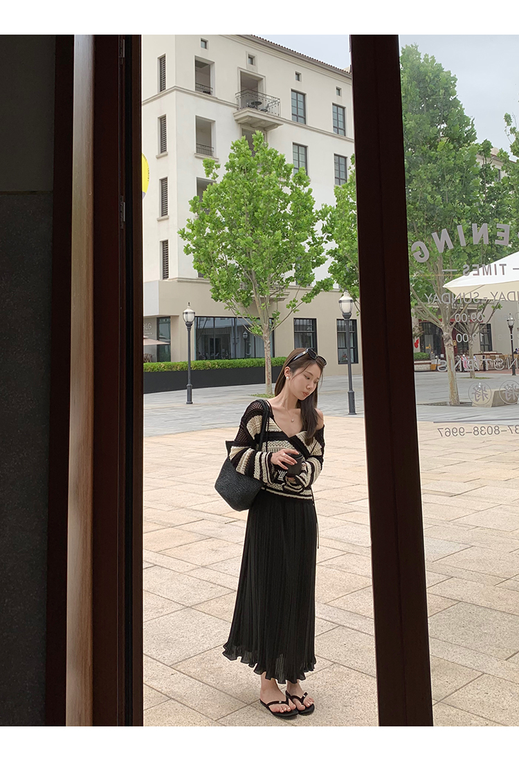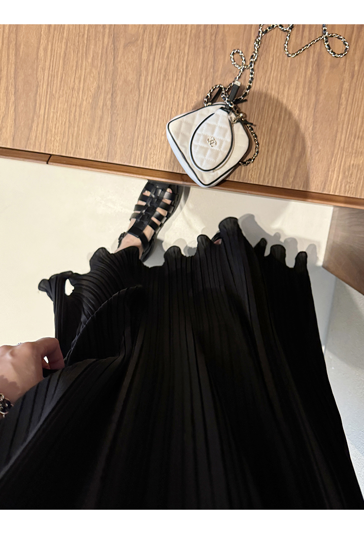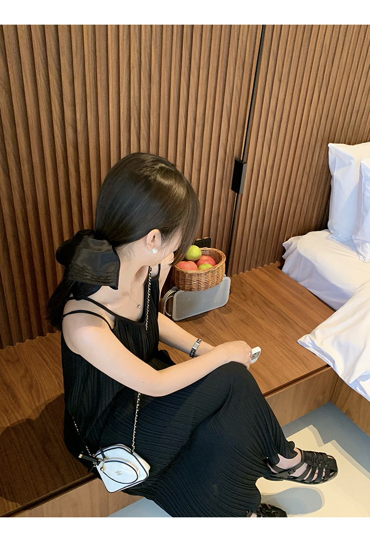 *o-ha-you*【FMQL2042048】斬女小黑裙姐系穿搭輕熟紙片人細牙籤褶寬鬆顯瘦吊帶裙洋裝