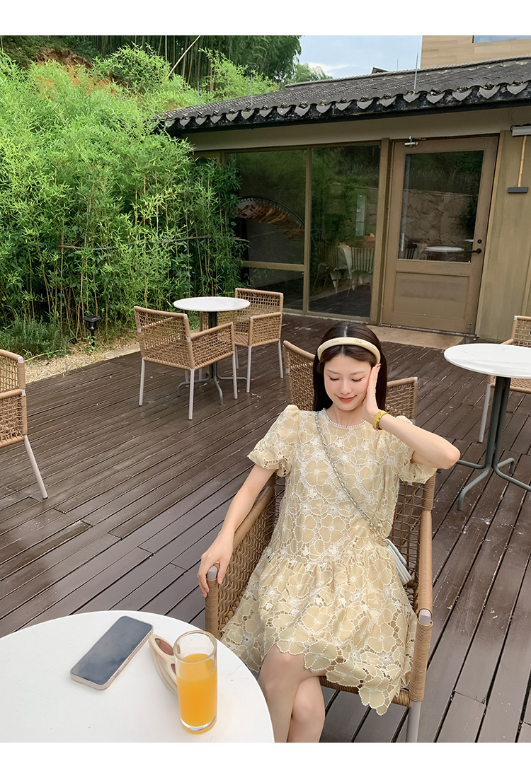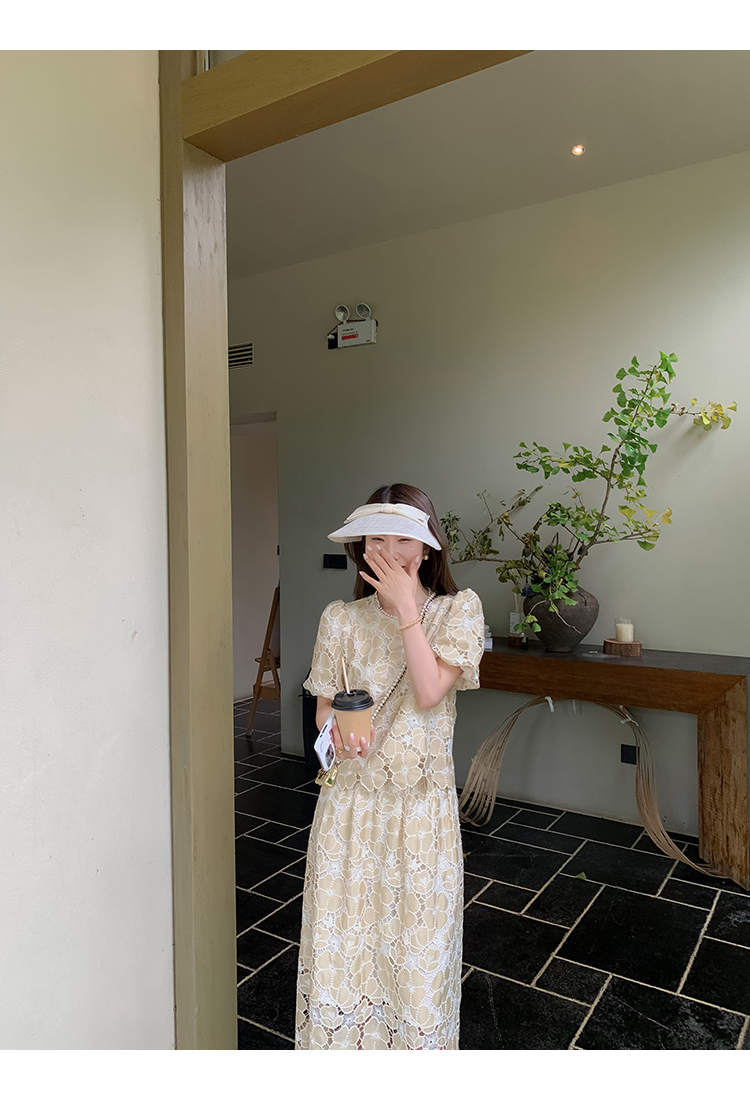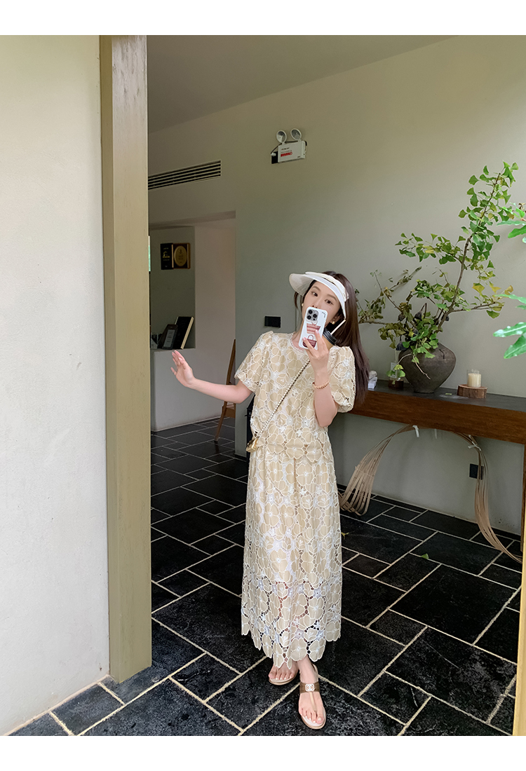 *o-ha-you*【FMQL2042073】氤氳之花-重工雷射刺繡蕾絲系列法式千金風鏤空套裝/連衣裙洋裝