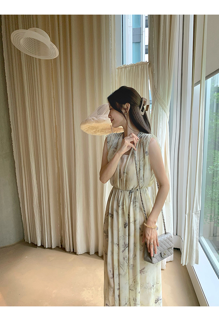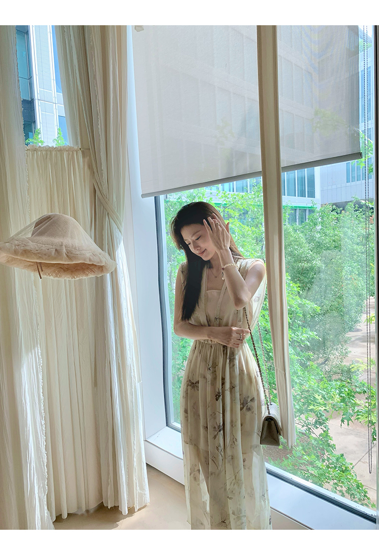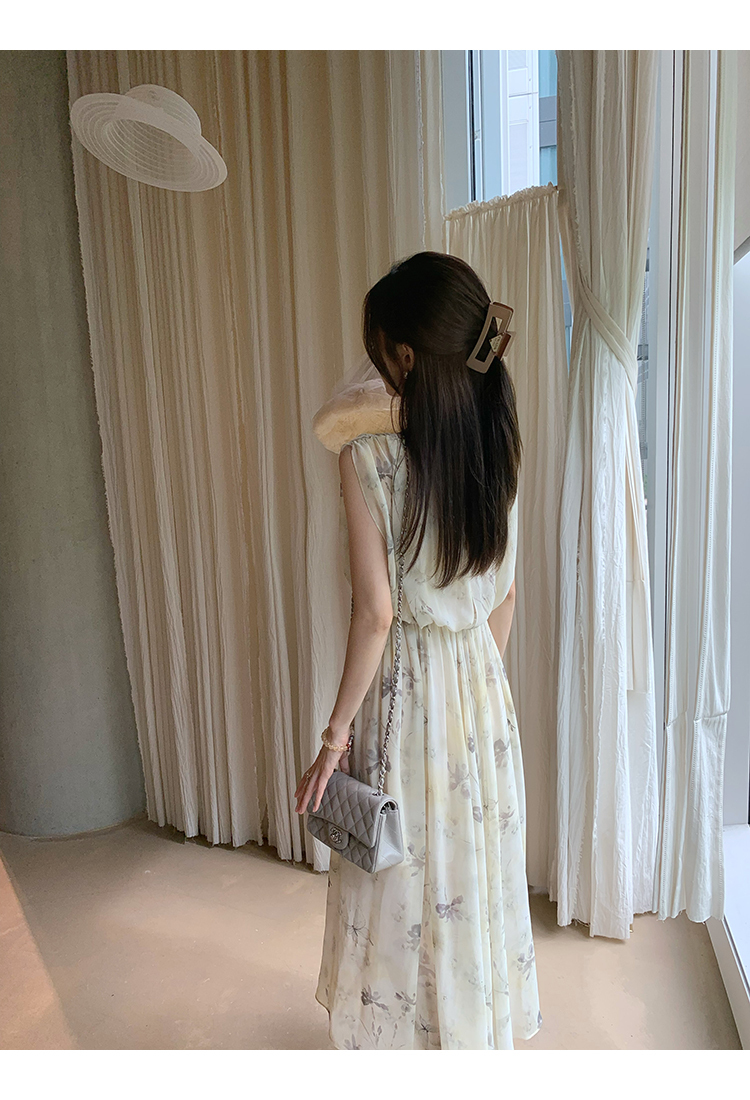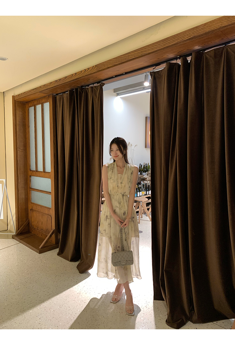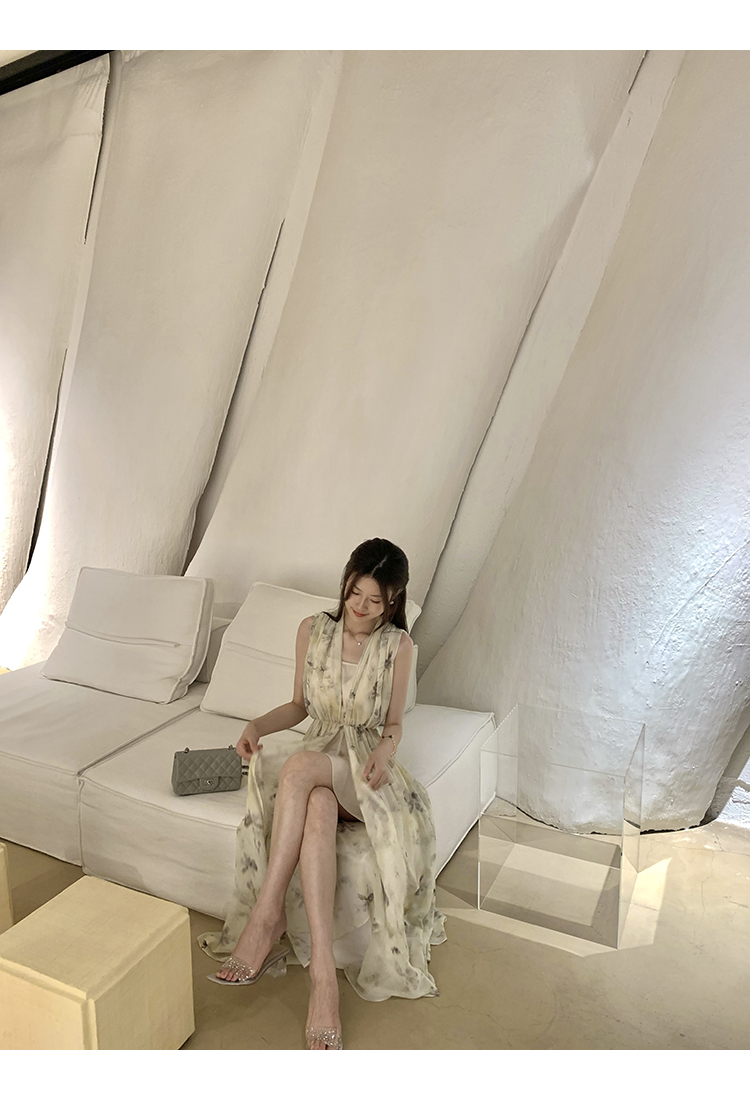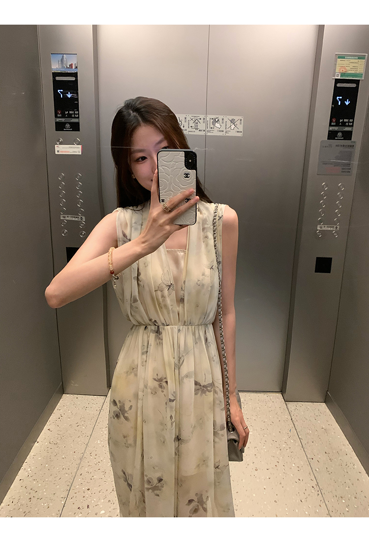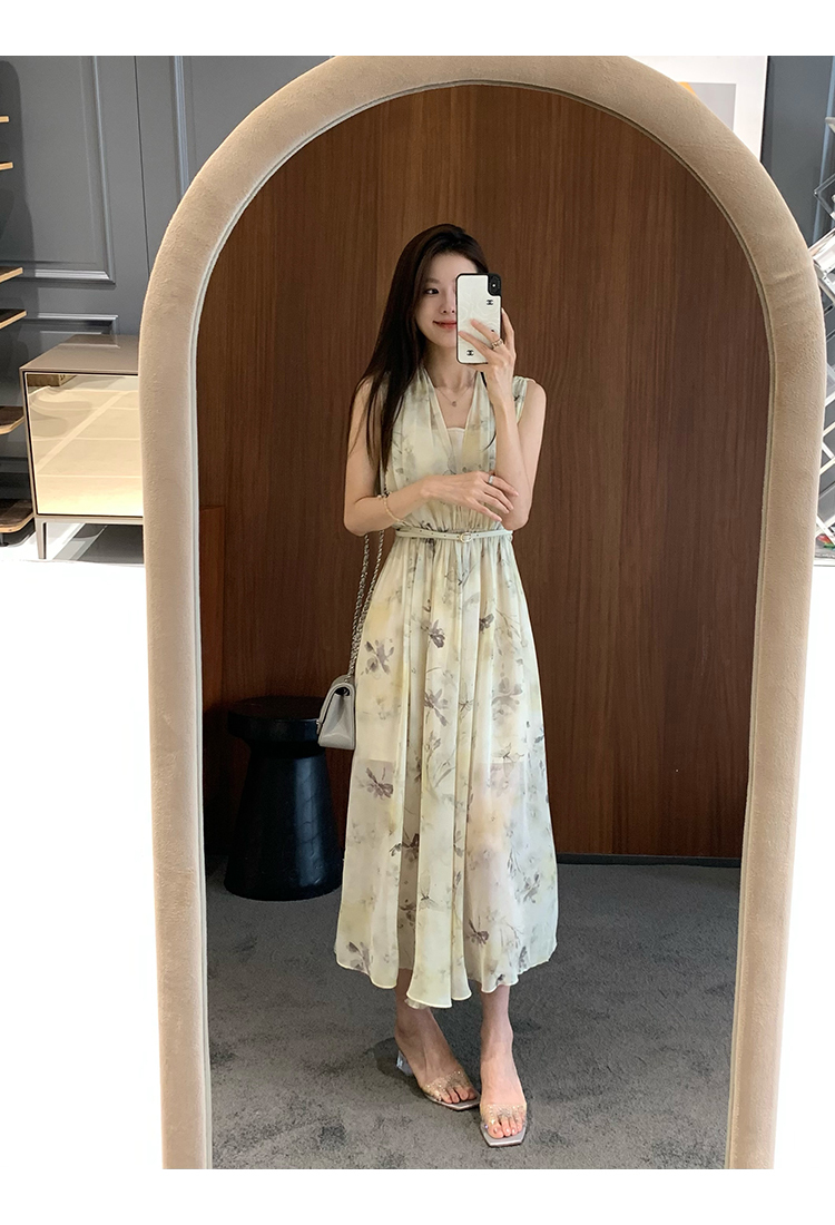*o-ha-you*【FMQL2042076】Rosy Ocean玫瑰裙夏日繁花裙飄逸仙氣V領顯瘦腰帶連衣裙洋裝