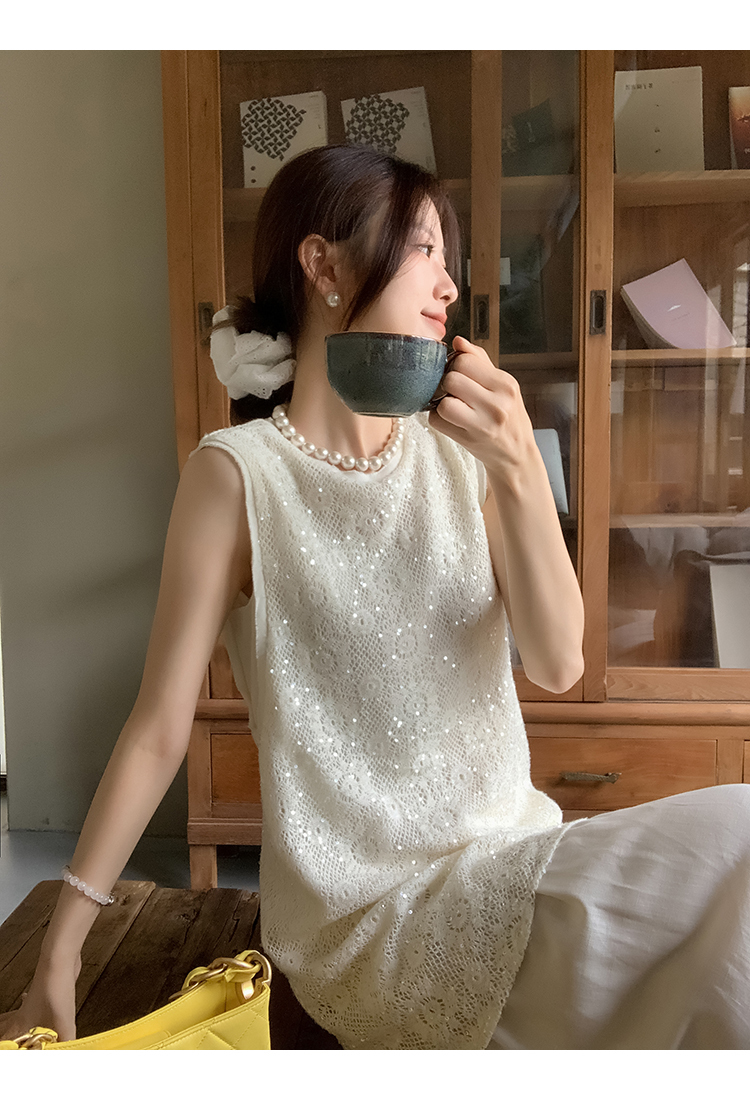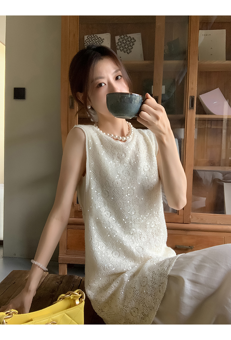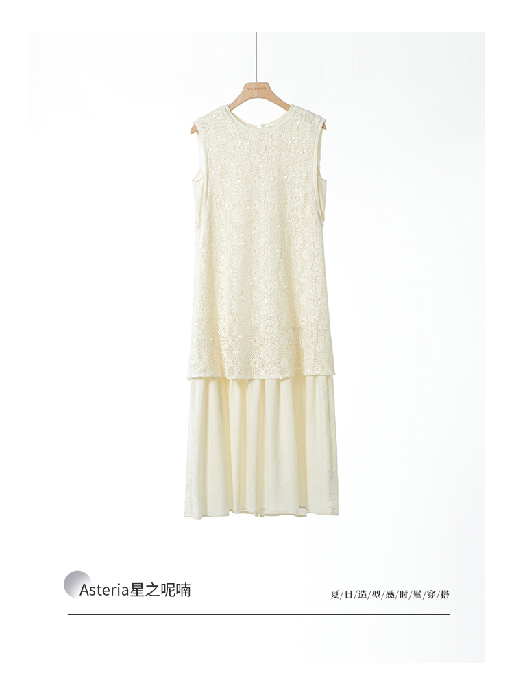 *o-ha-you*【FMQL2042081】Asteria星之呢喃重工珠片繡花鏤空花朵背心裙度假連衣裙洋裝