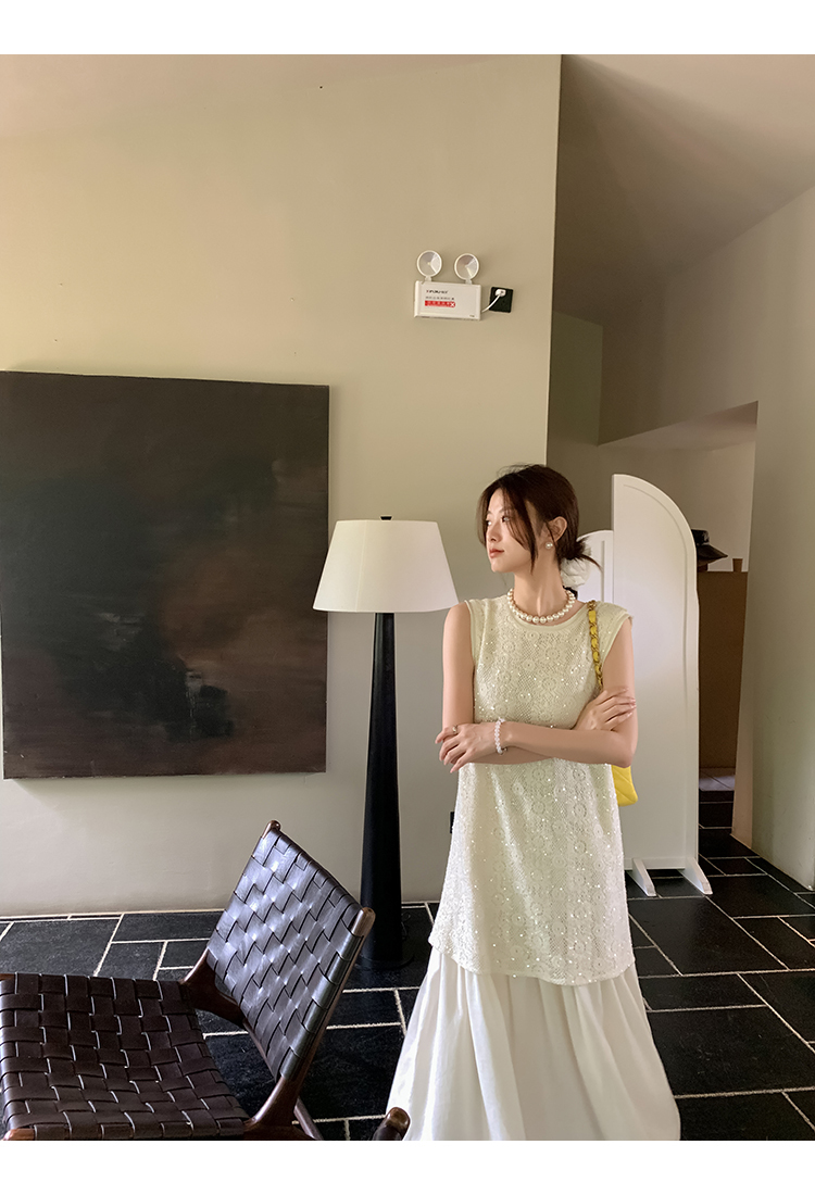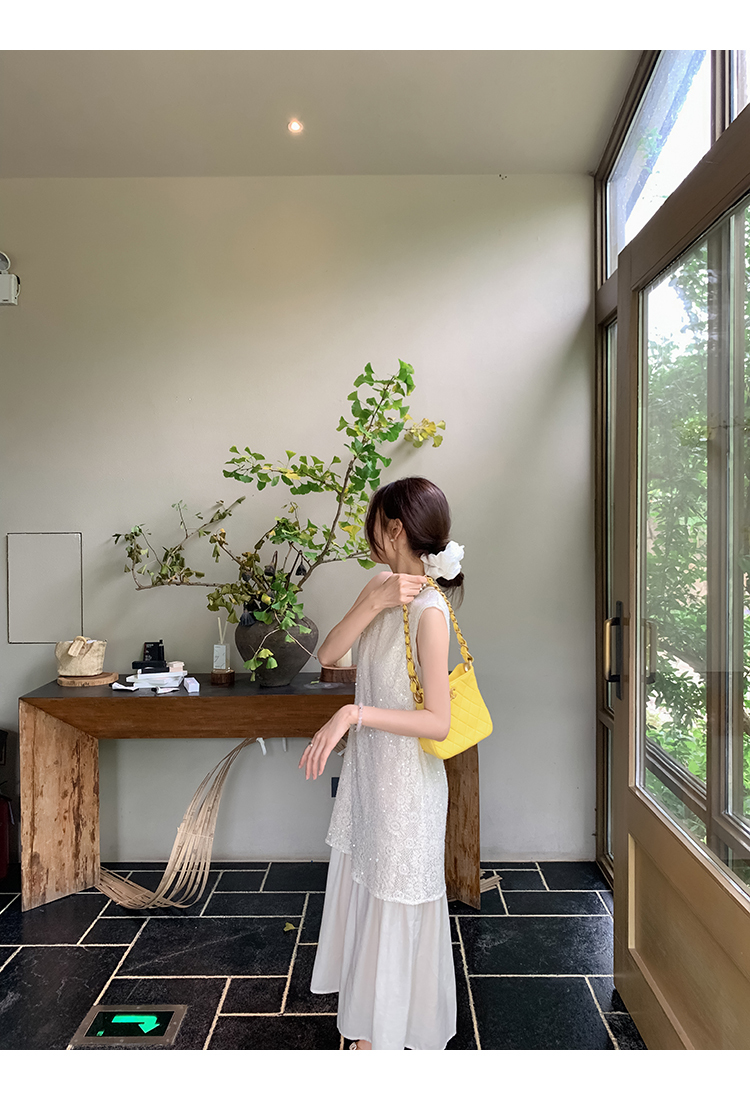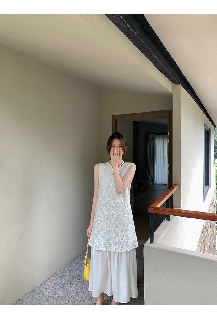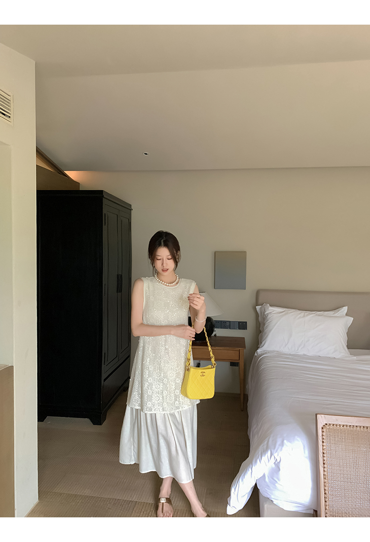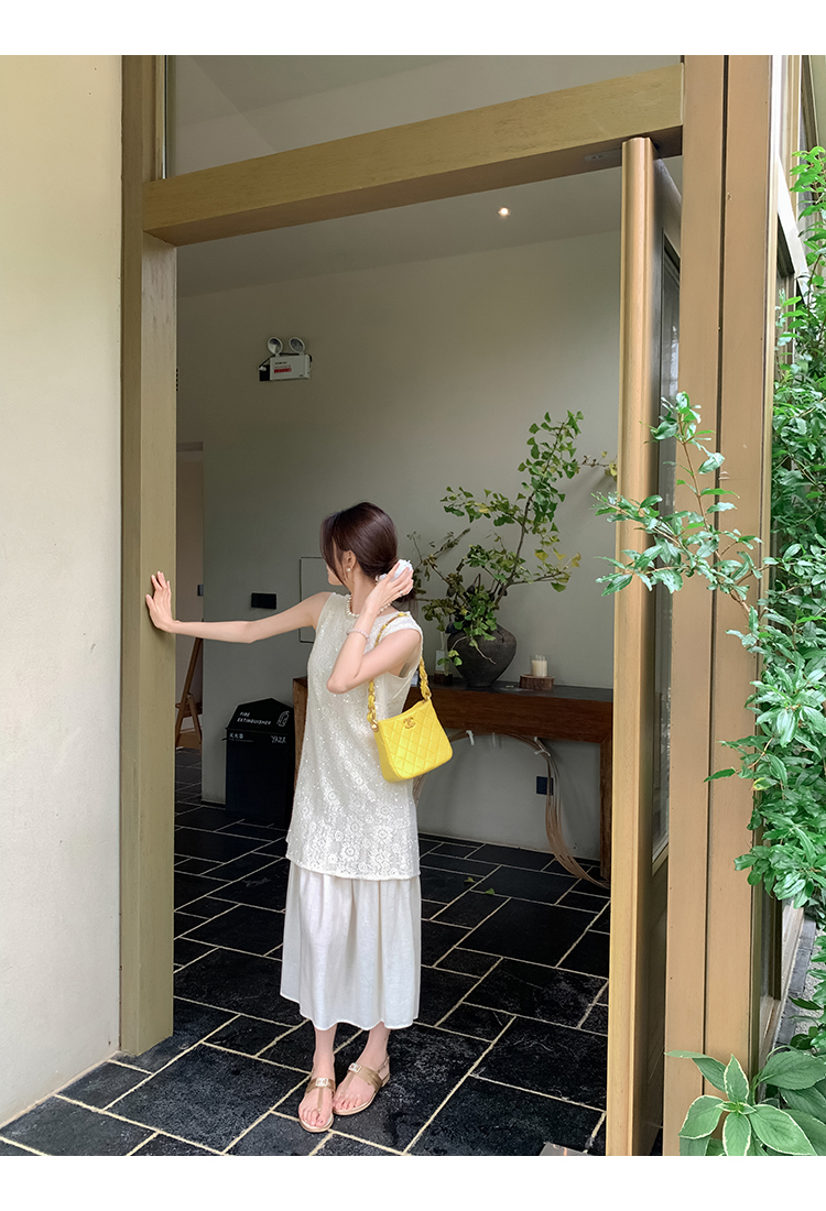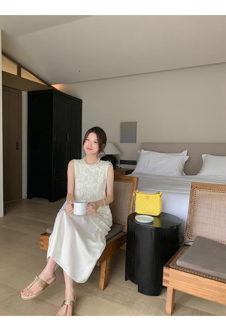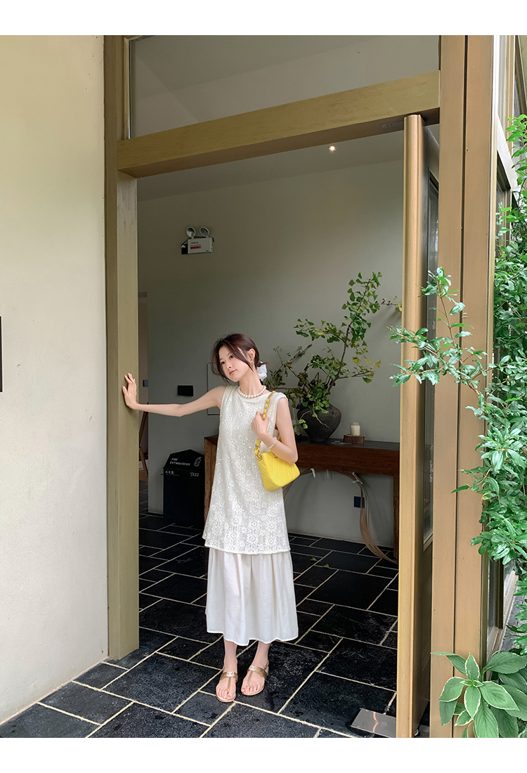 鬆弛vibe拉滿的無袖鏤空刺繡連身裙,