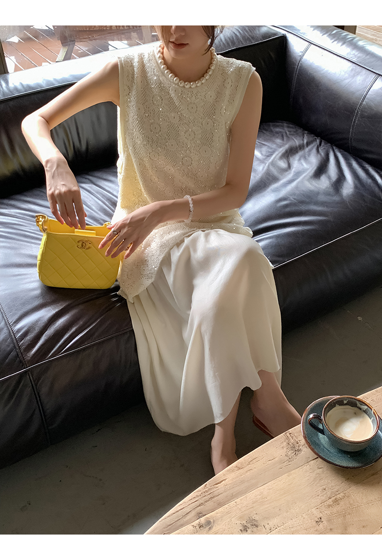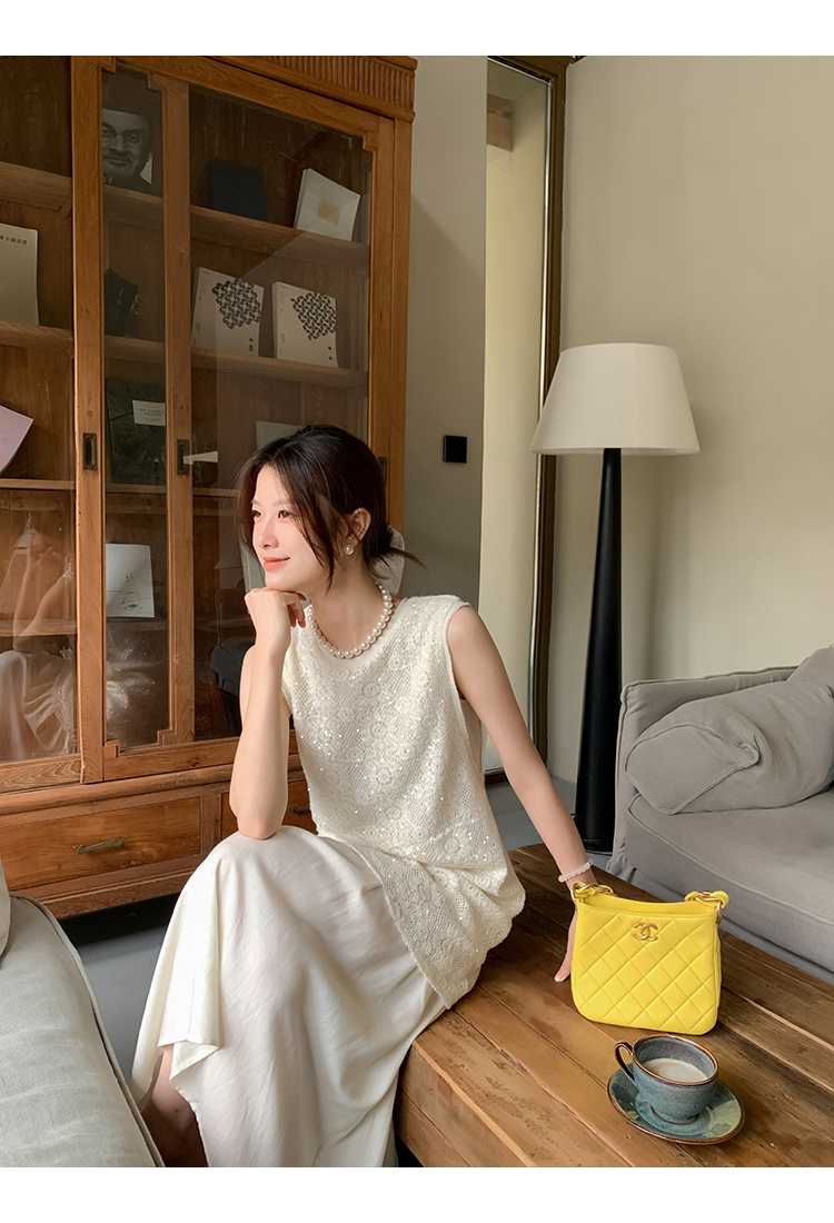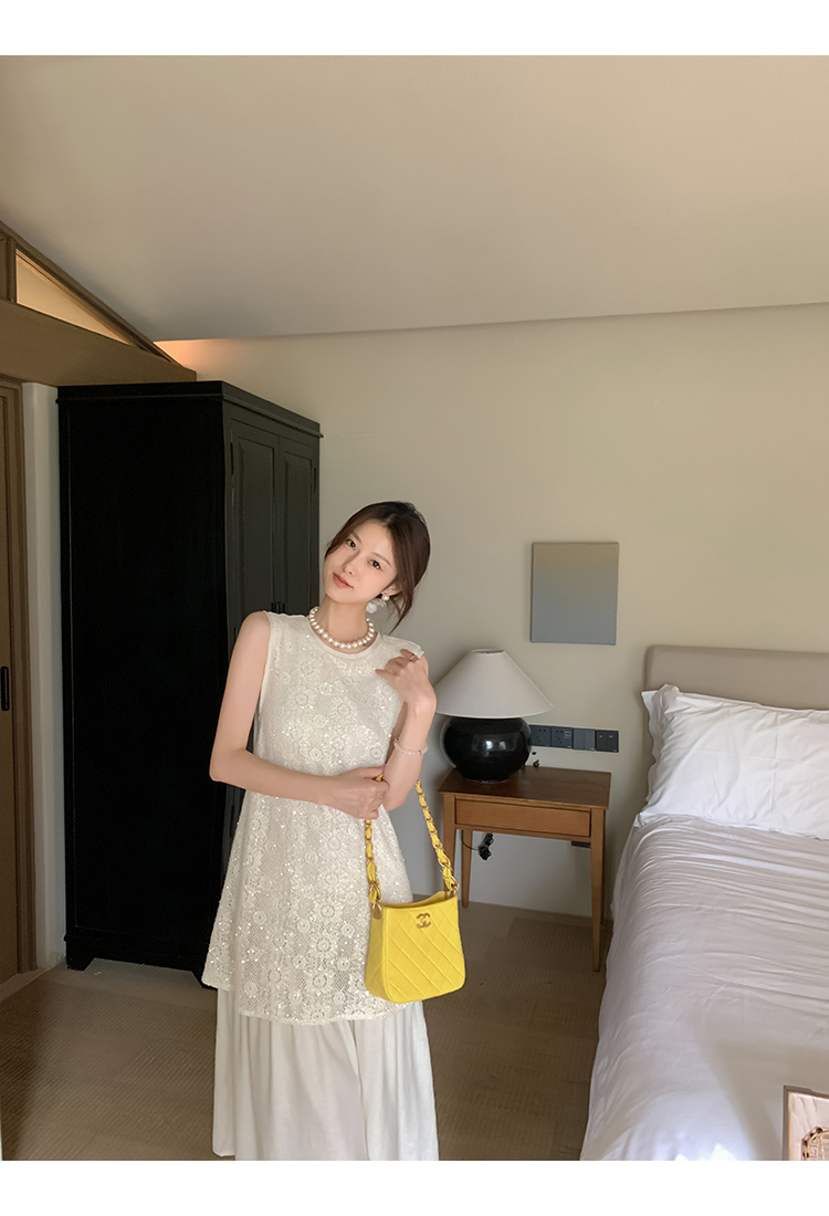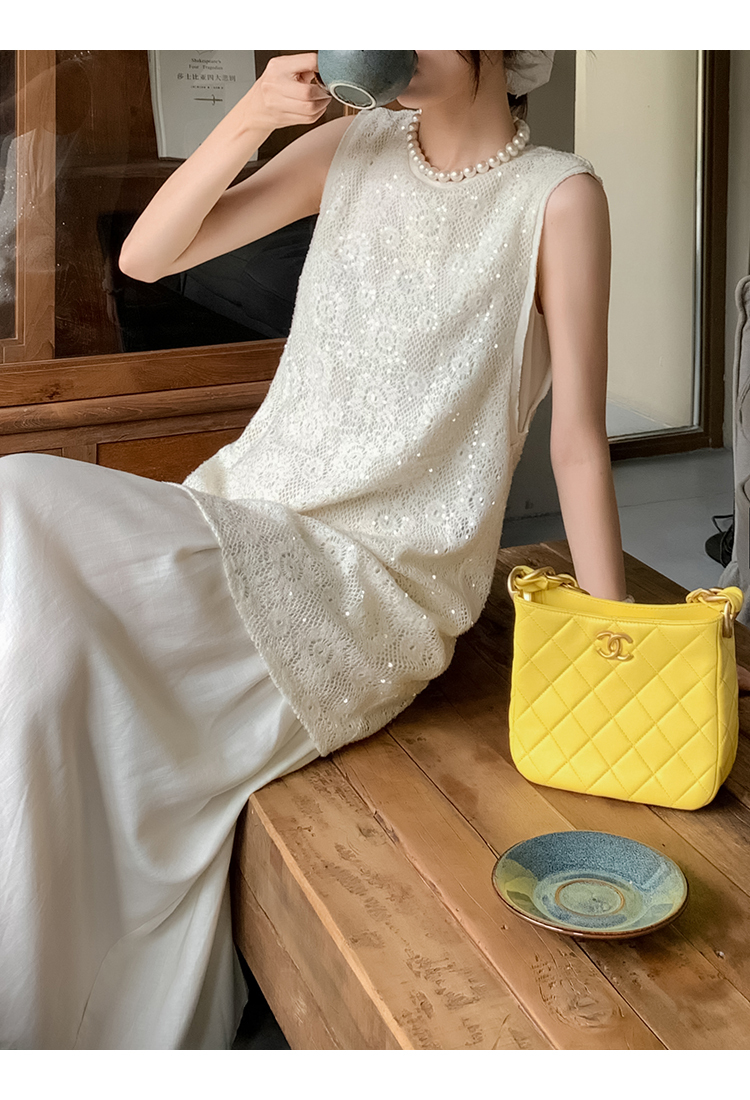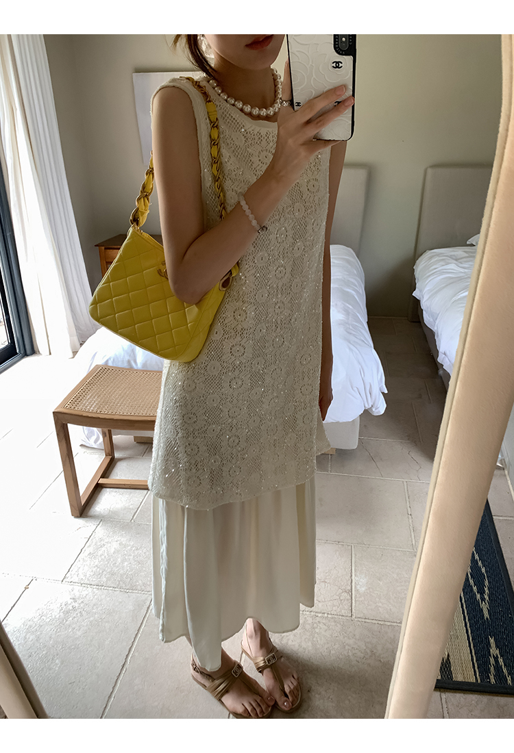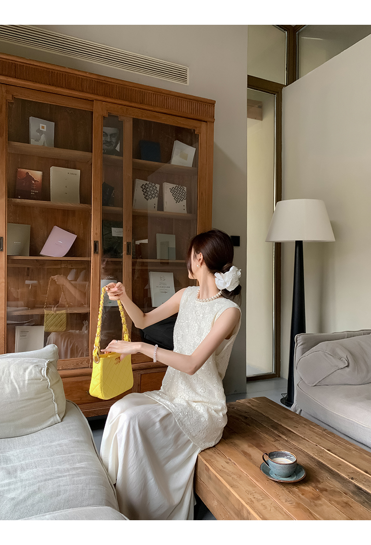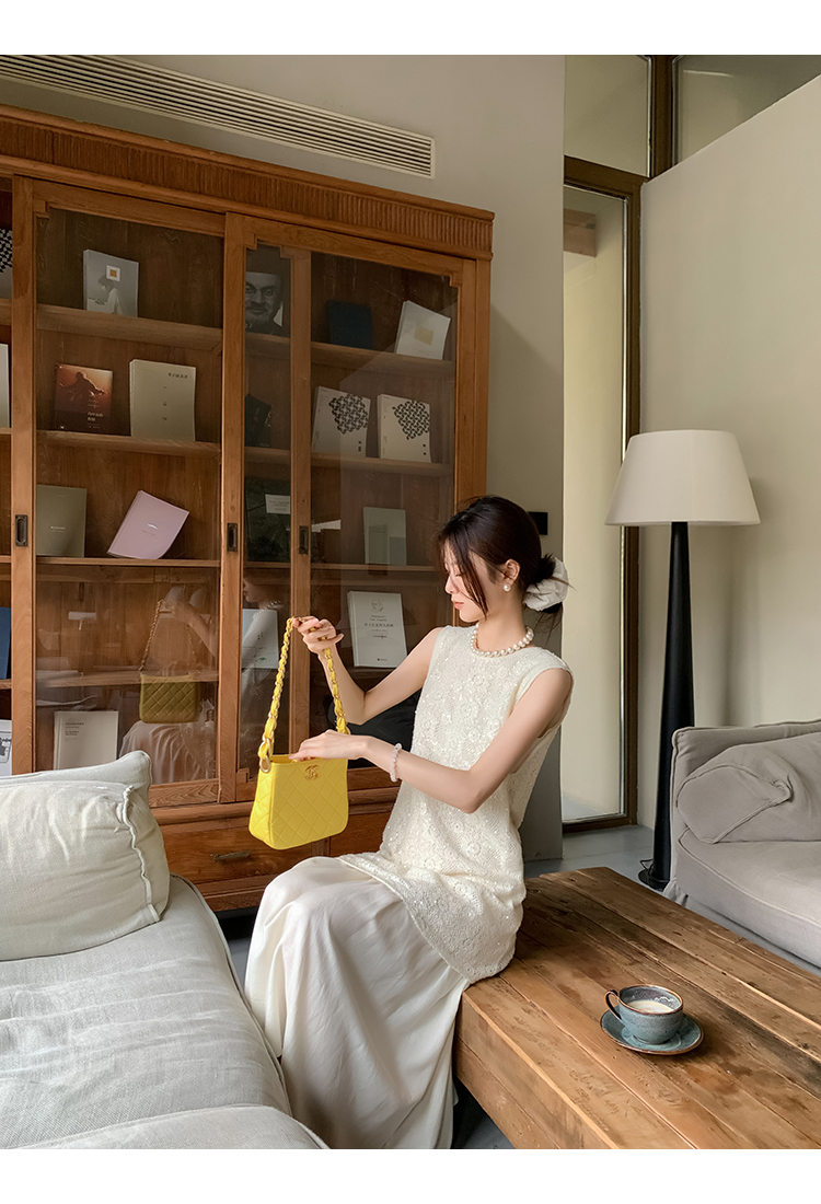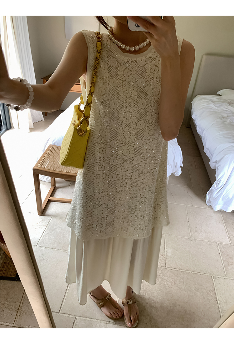鬆弛vibe拉滿的無袖鏤空刺繡連身裙,