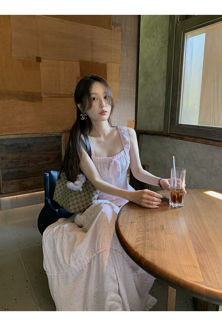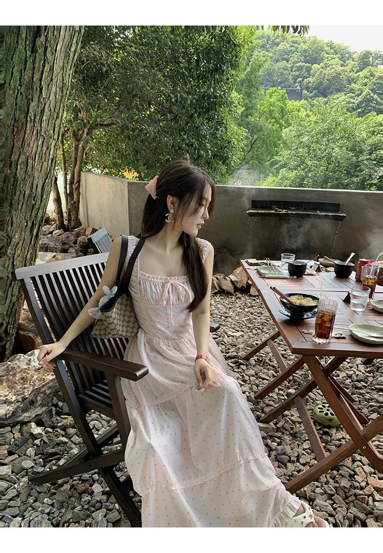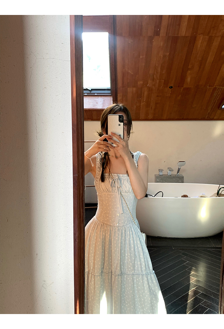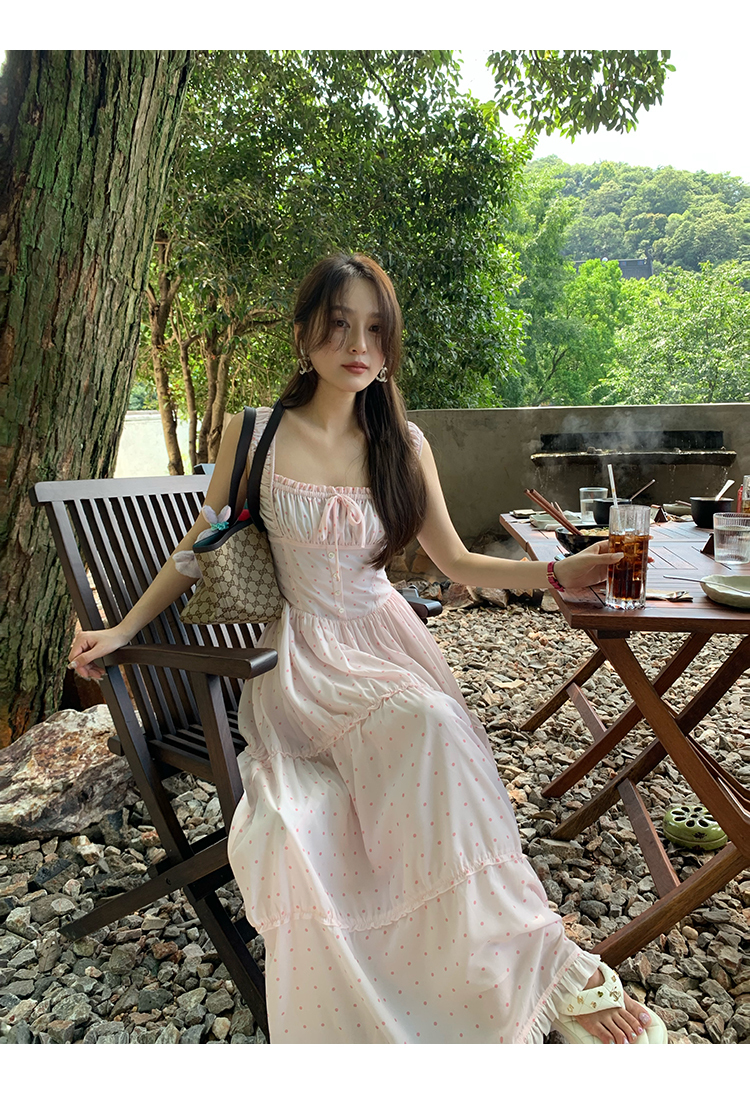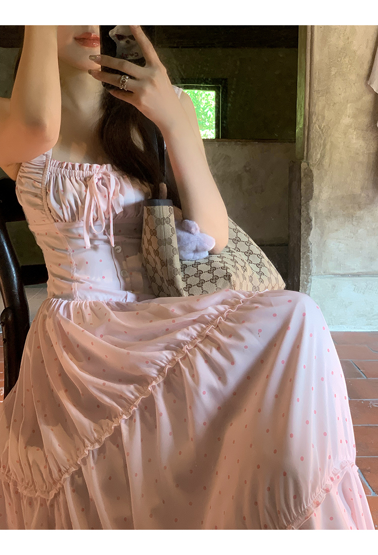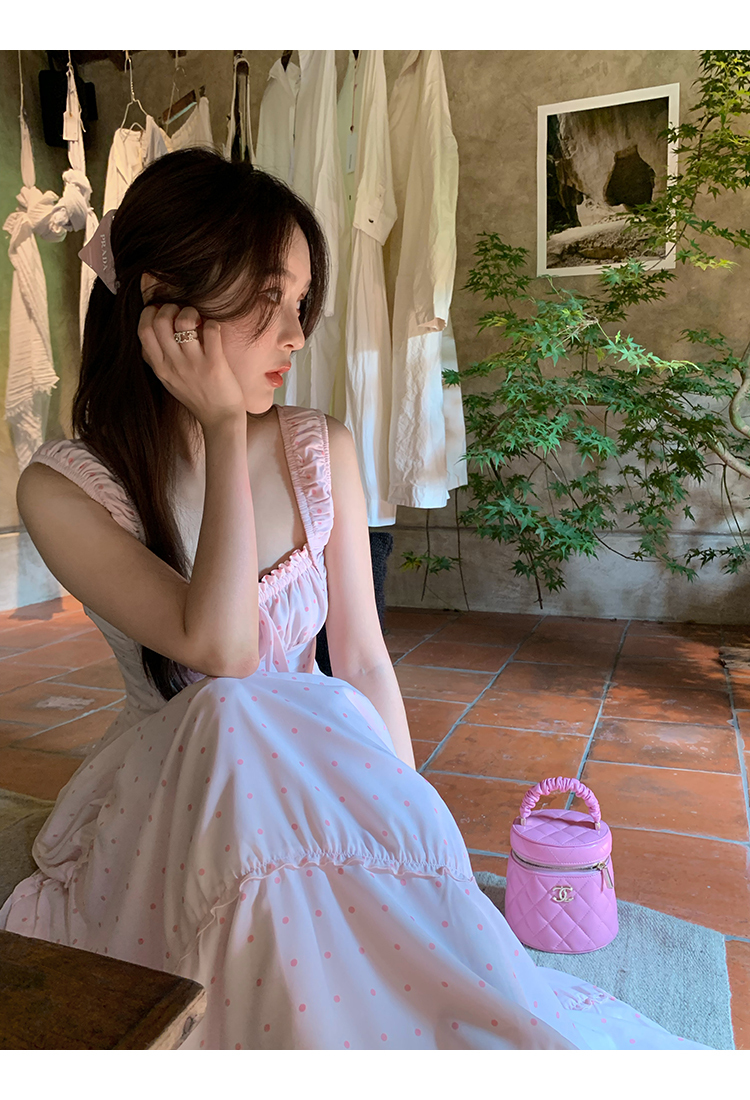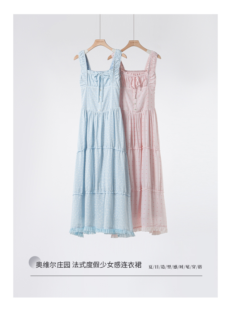 *o-ha-you*【FMQL2042082】奧維爾莊園法式度假波點蛋糕裙打攬收腰顯瘦中長背心連衣裙洋裝