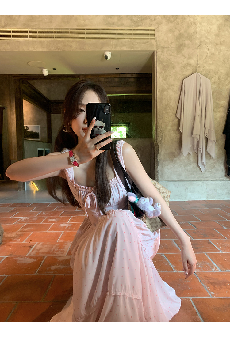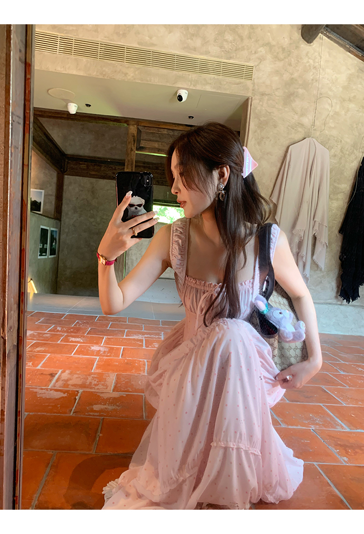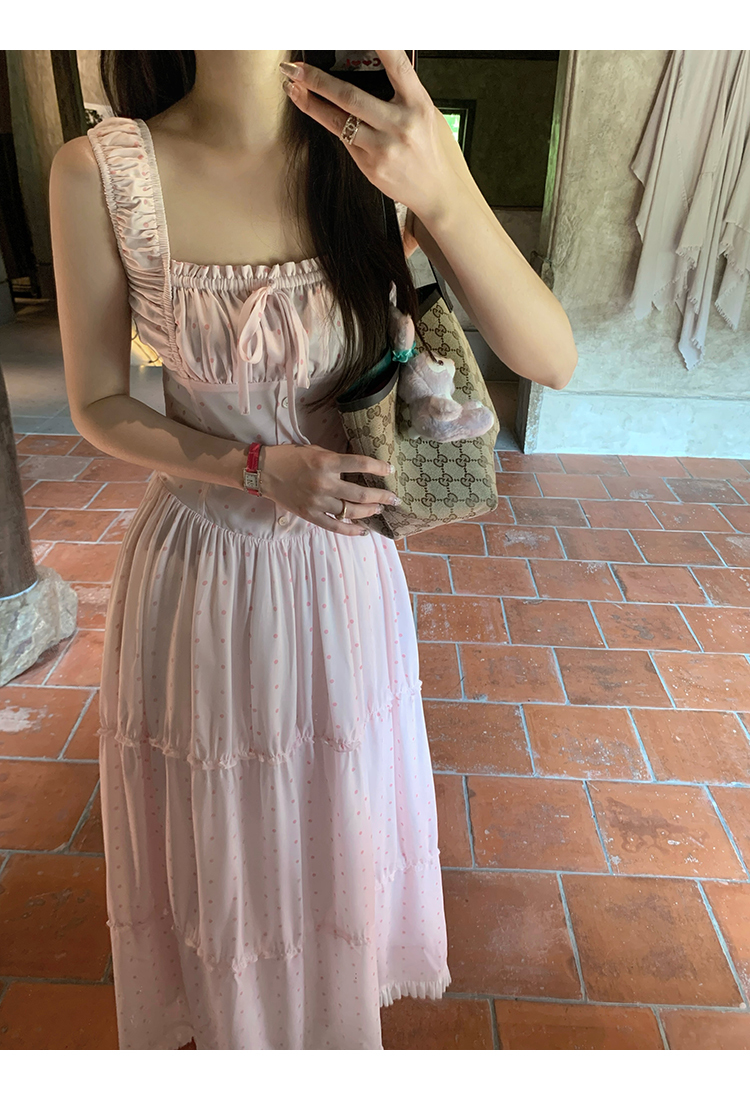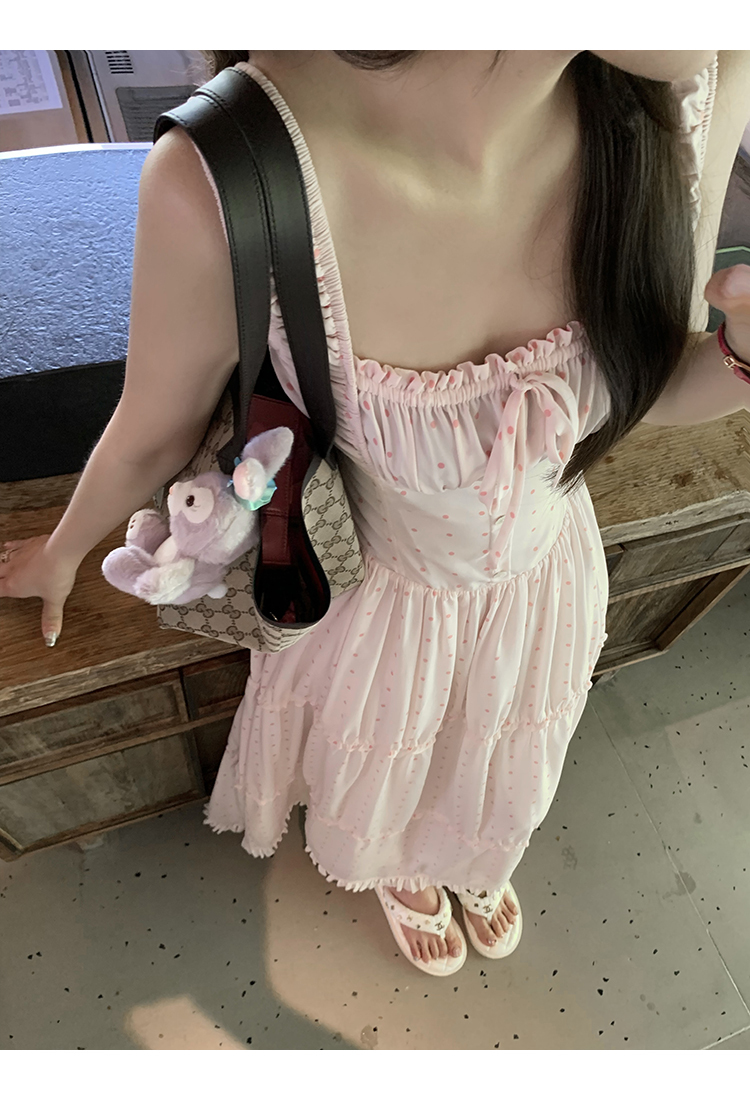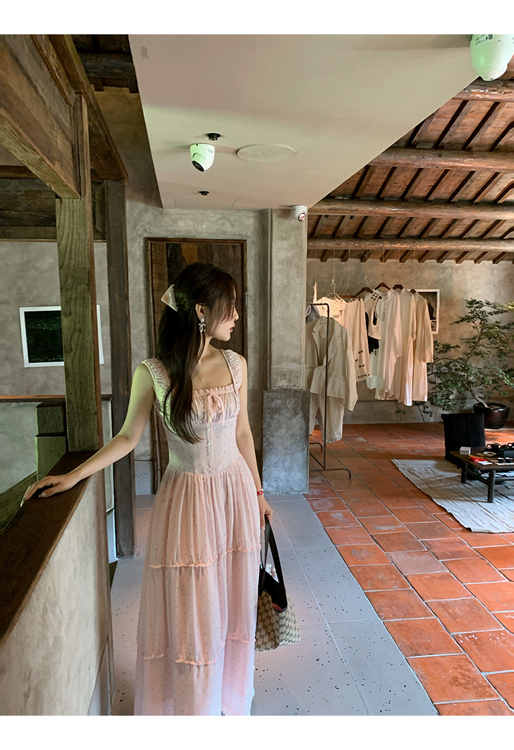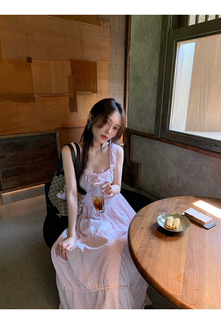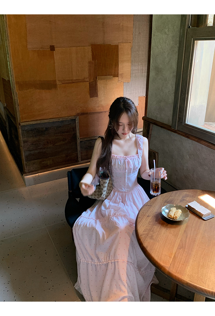*o-ha-you*【FMQL2042082】奧維爾莊園法式度假波點蛋糕裙打攬收腰顯瘦中長背心連衣裙洋裝