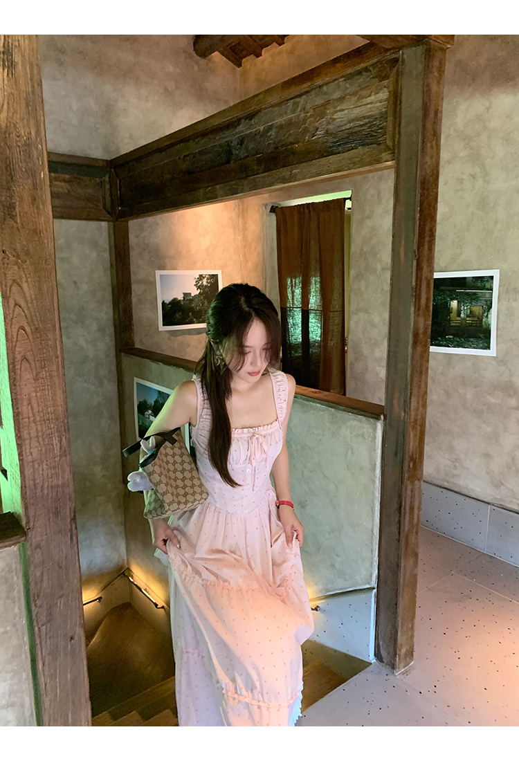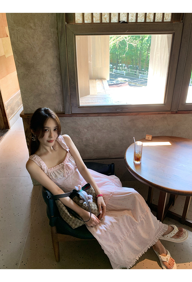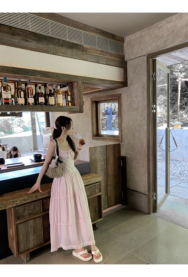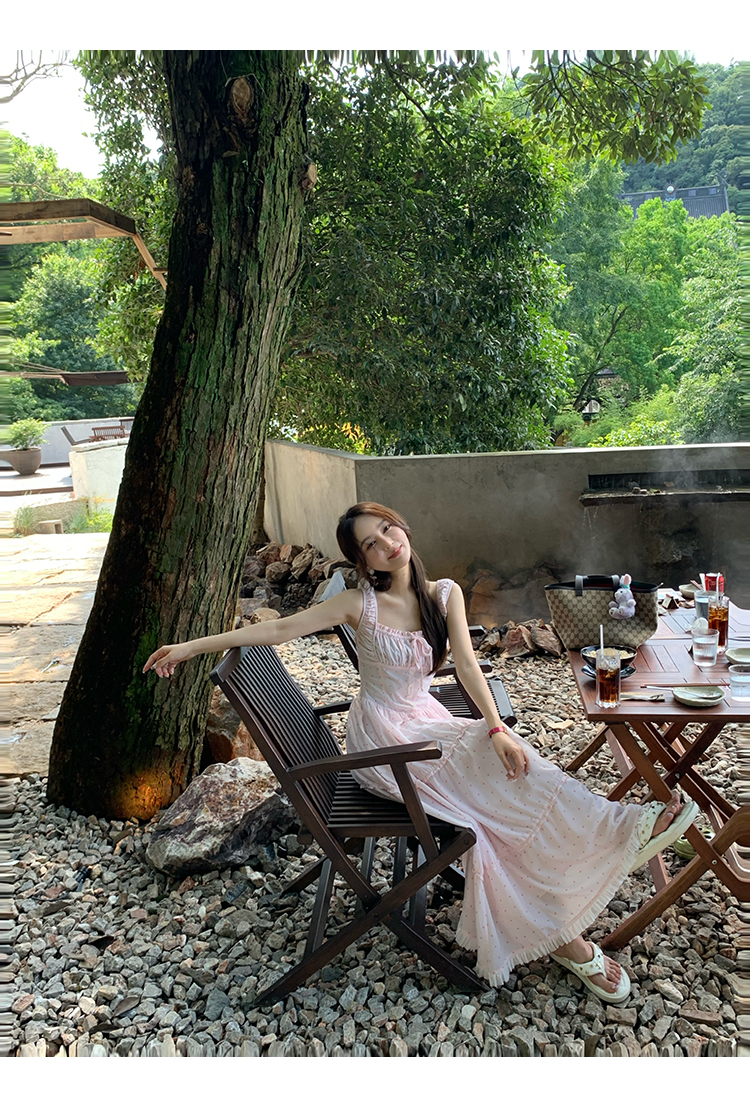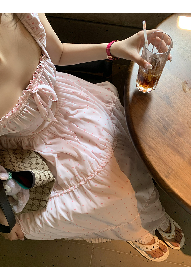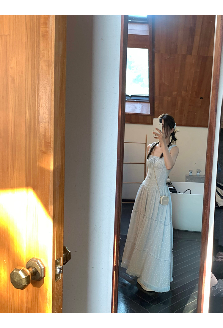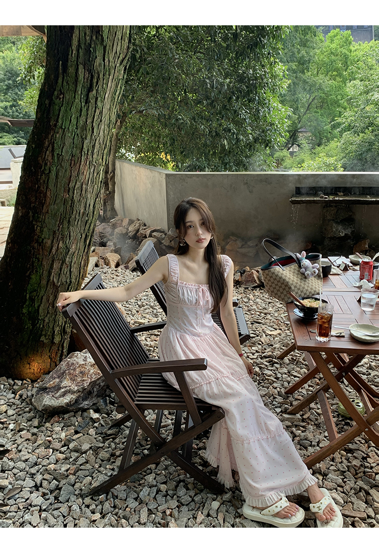 *o-ha-you*【FMQL2042082】奧維爾莊園法式度假波點蛋糕裙打攬收腰顯瘦中長背心連衣裙洋裝