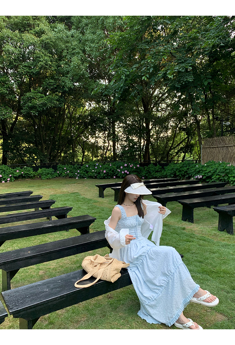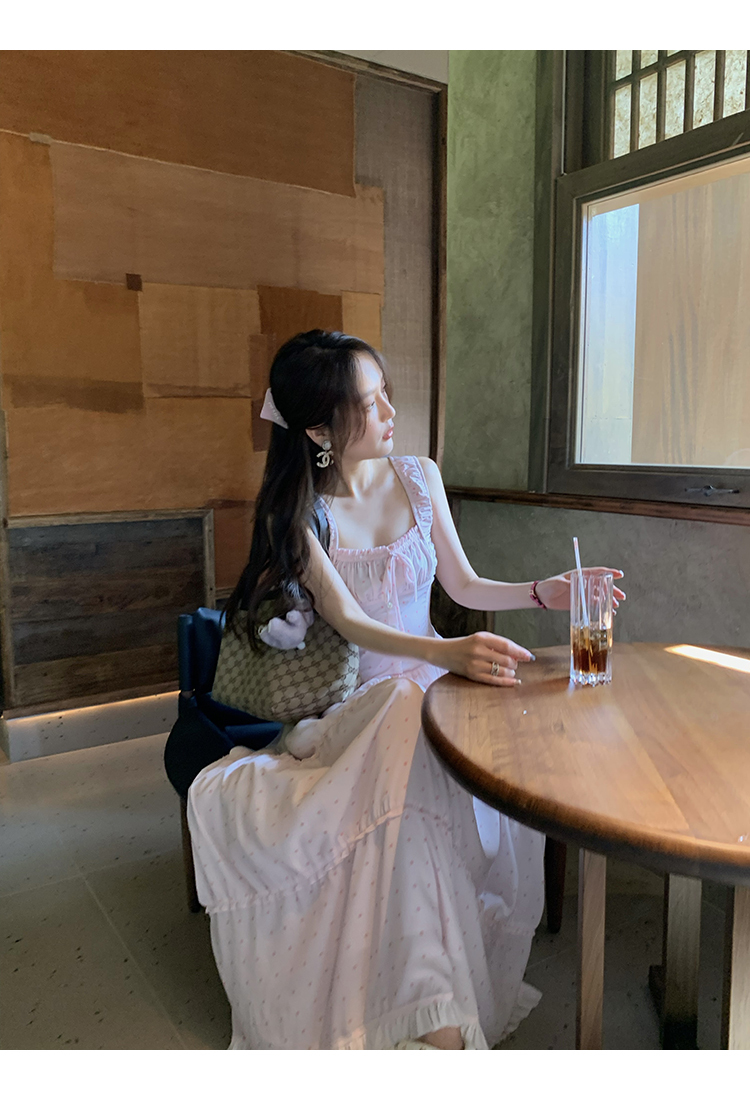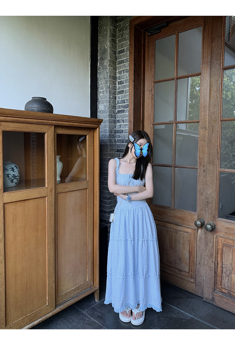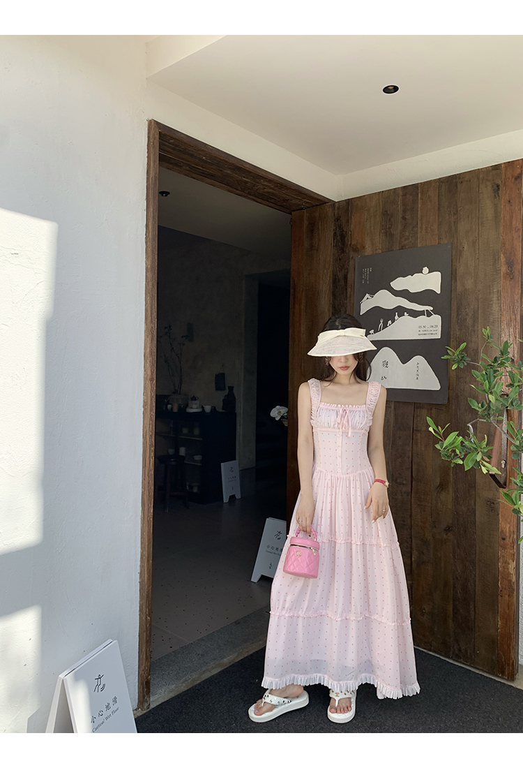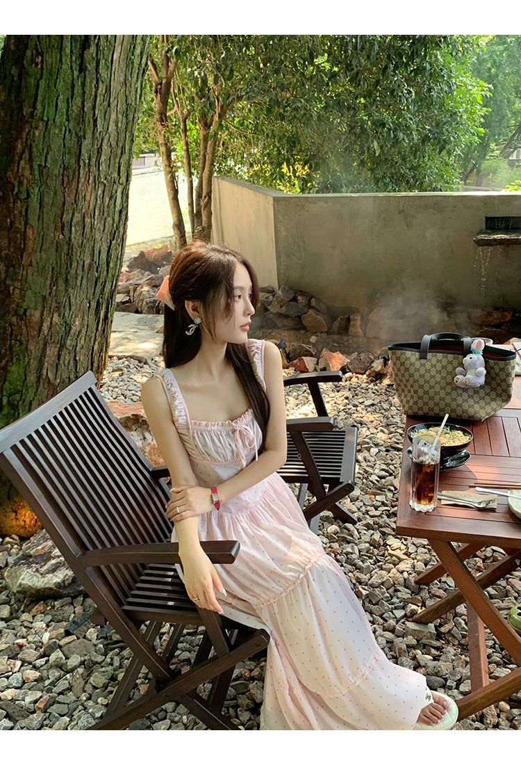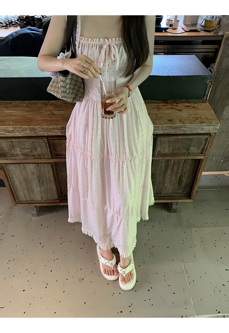 *o-ha-you*【FMQL2042082】奧維爾莊園法式度假波點蛋糕裙打攬收腰顯瘦中長背心連衣裙洋裝
