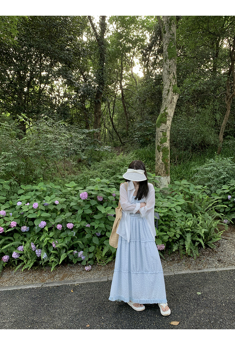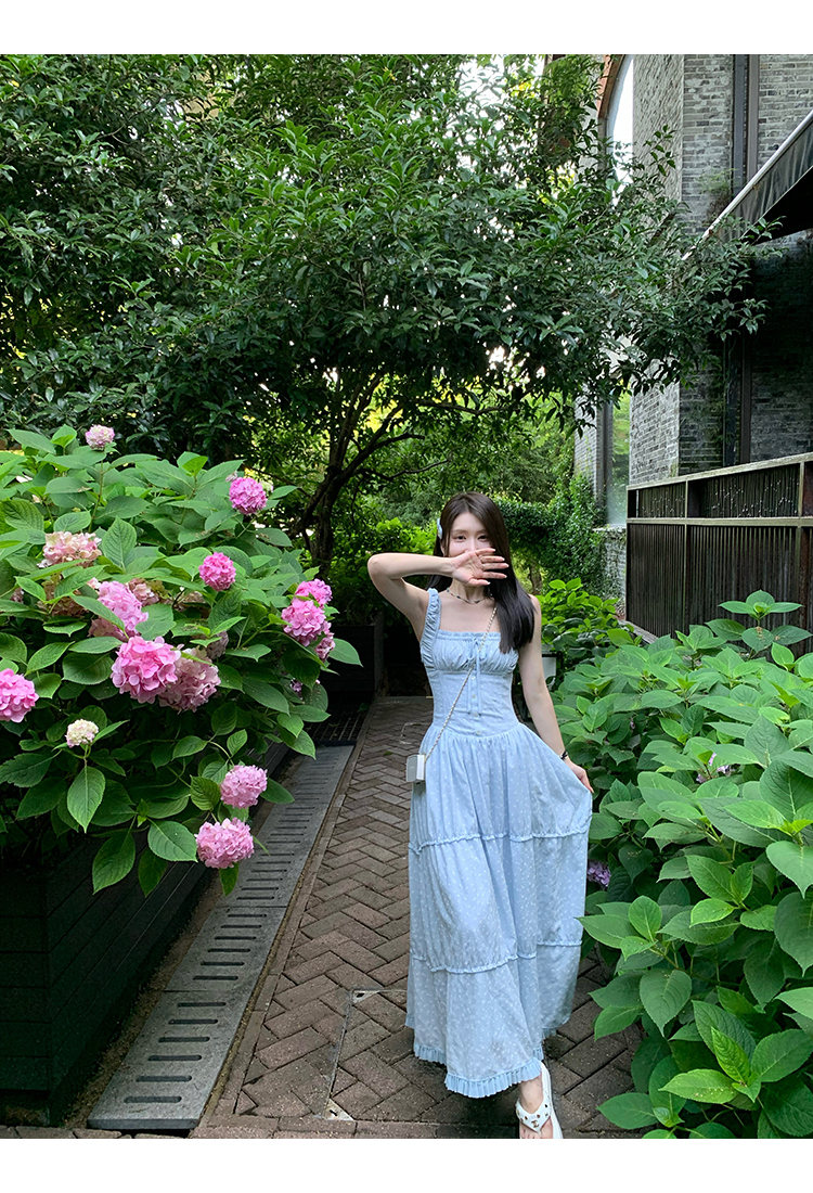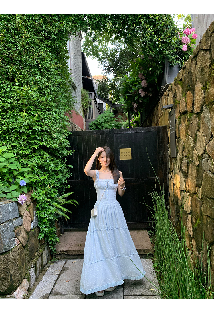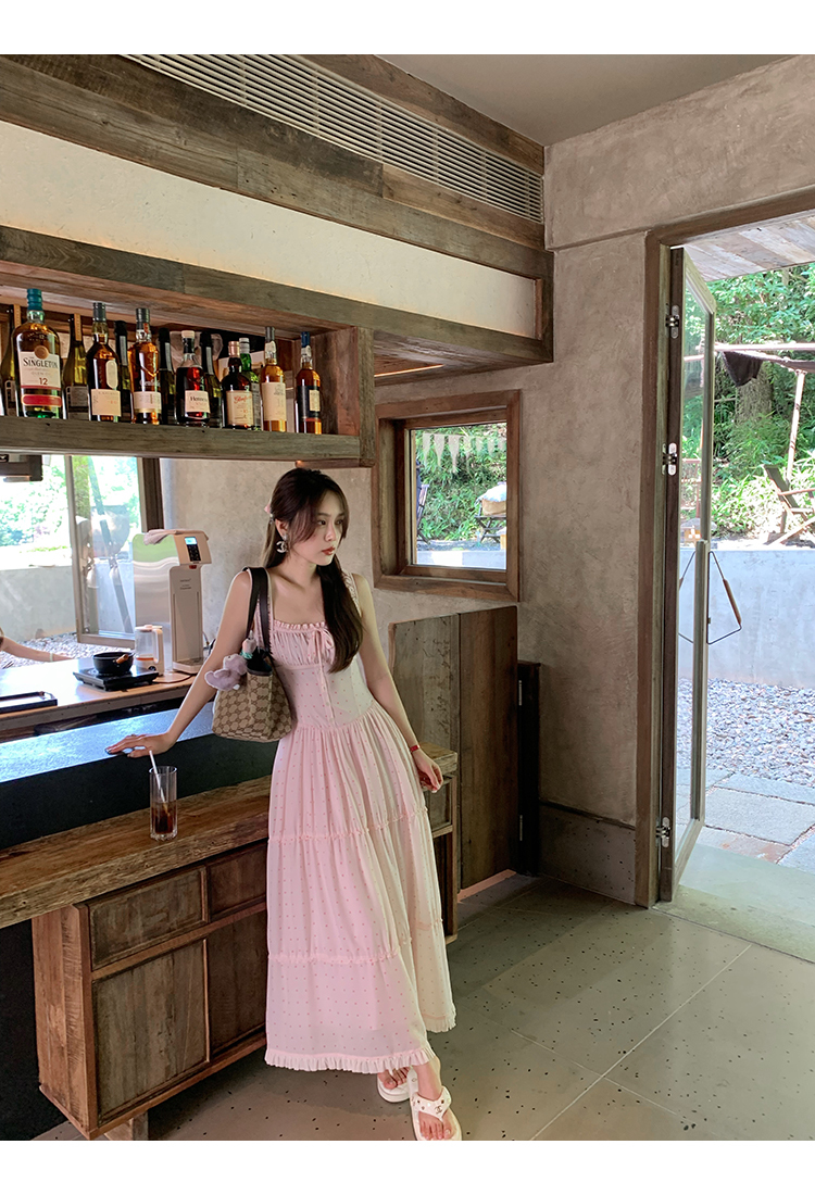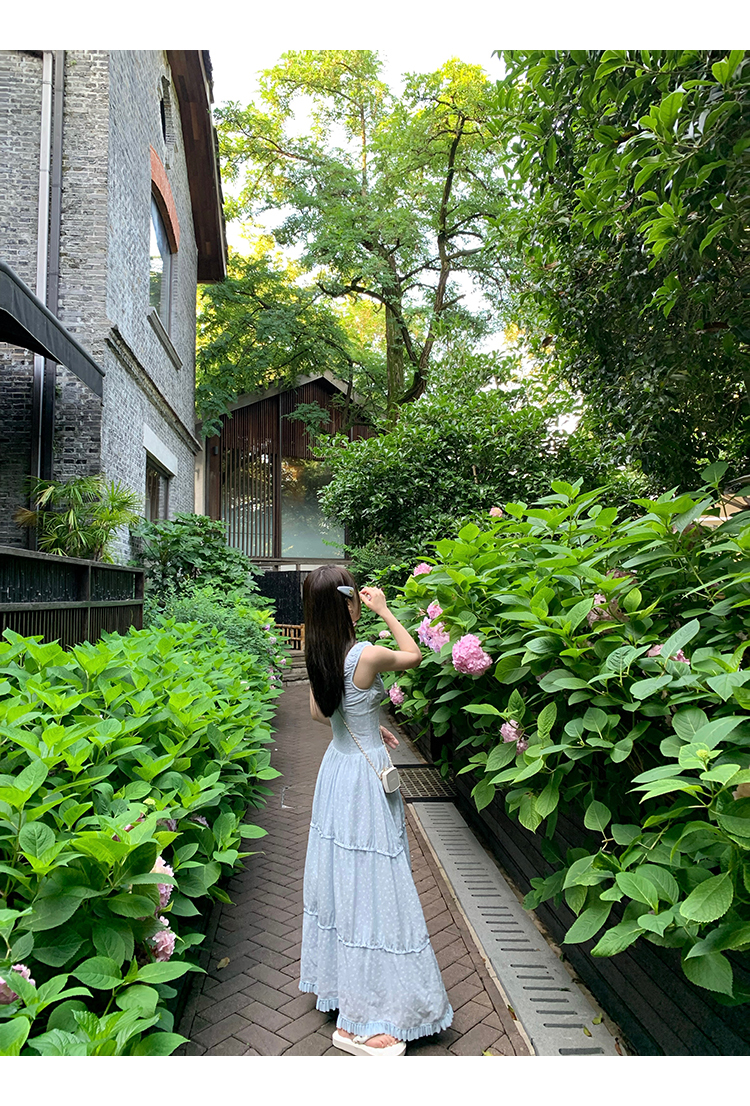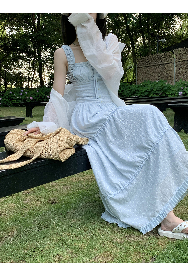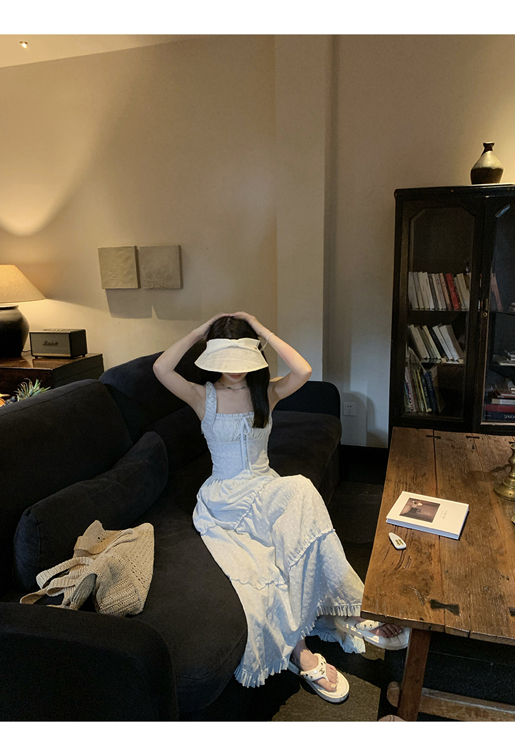 *o-ha-you*【FMQL2042082】奧維爾莊園法式度假波點蛋糕裙打攬收腰顯瘦中長背心連衣裙洋裝