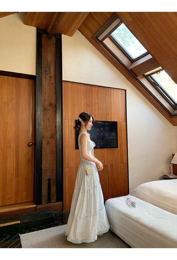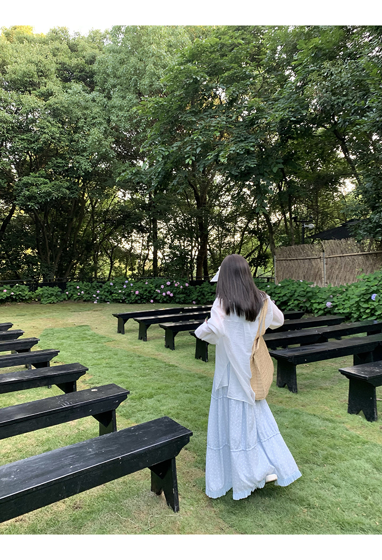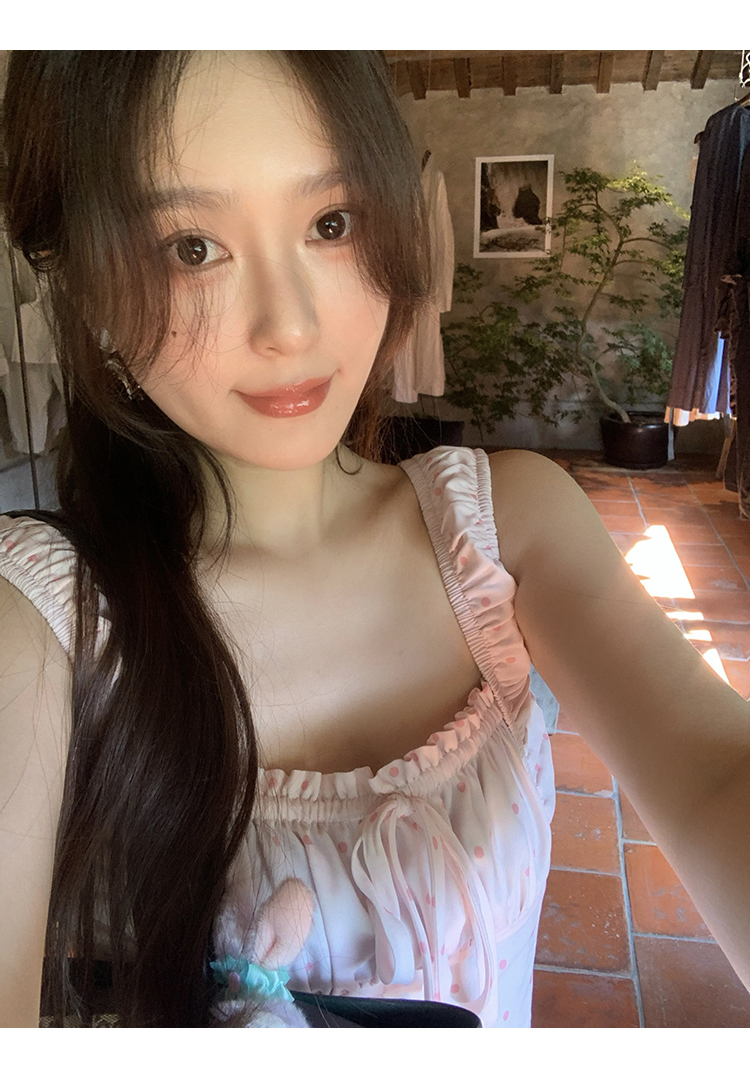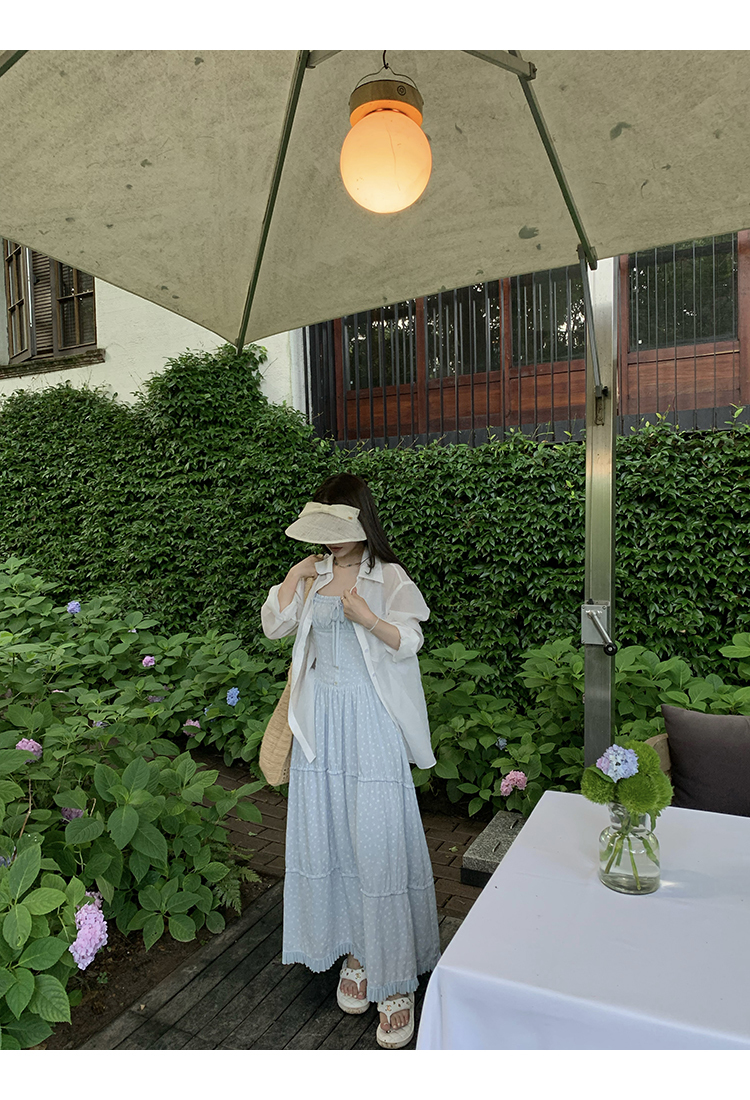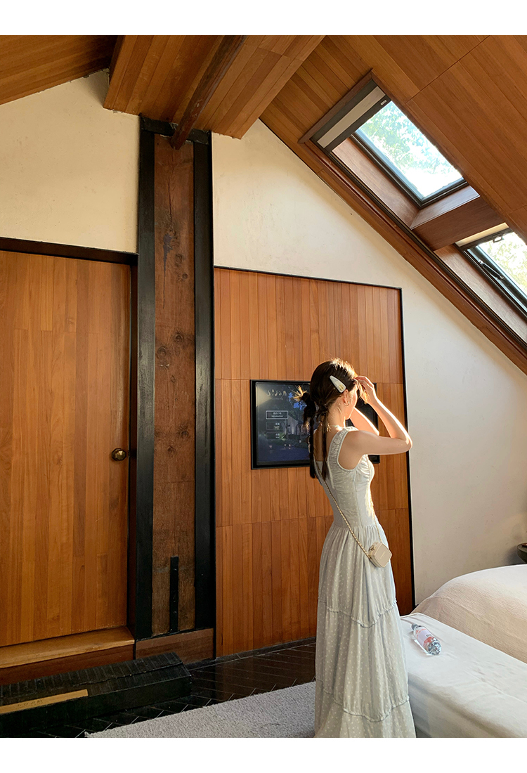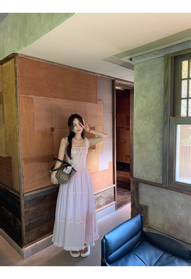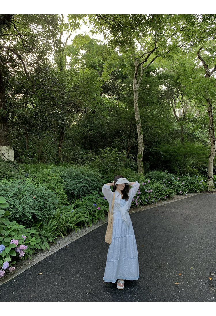 *o-ha-you*【FMQL2042082】奧維爾莊園法式度假波點蛋糕裙打攬收腰顯瘦中長背心連衣裙洋裝