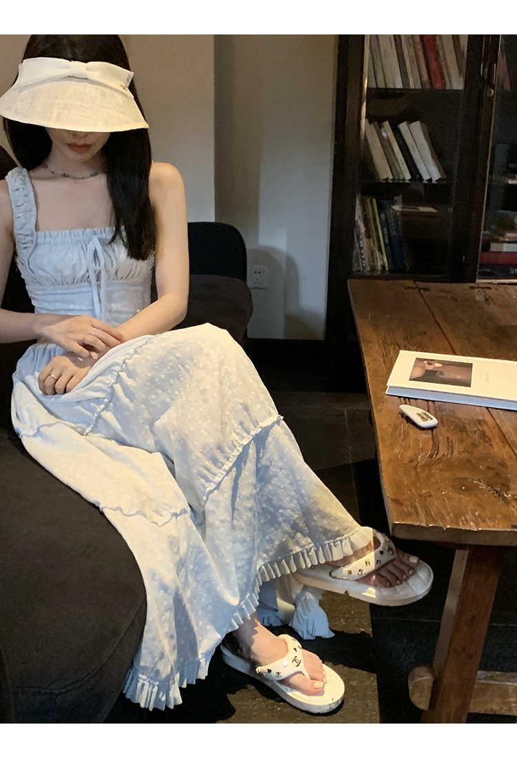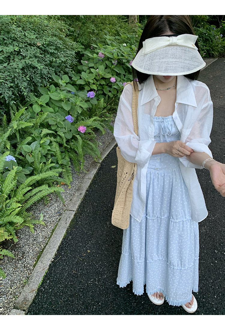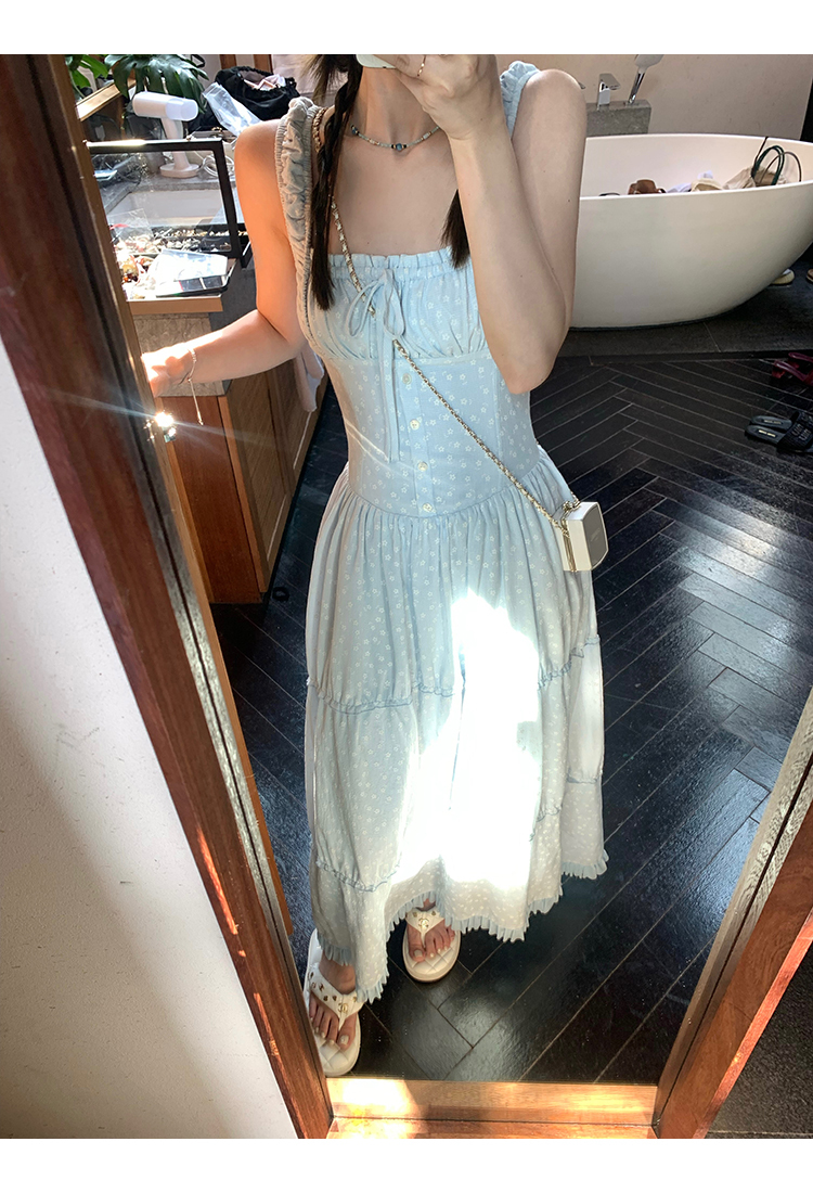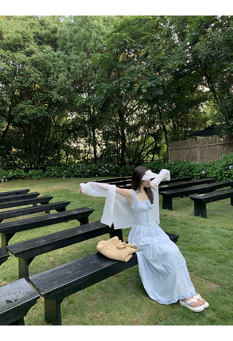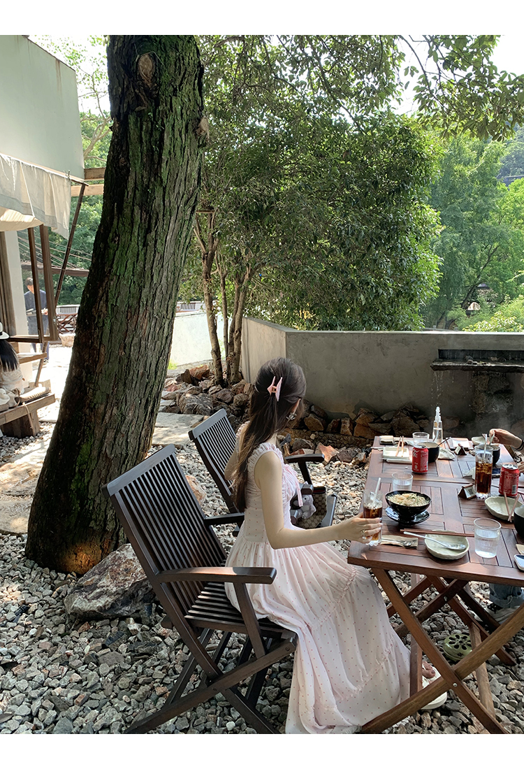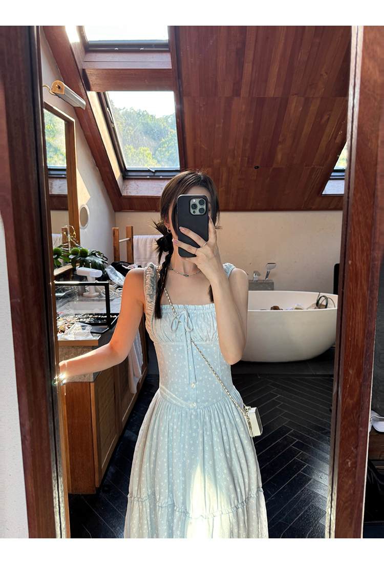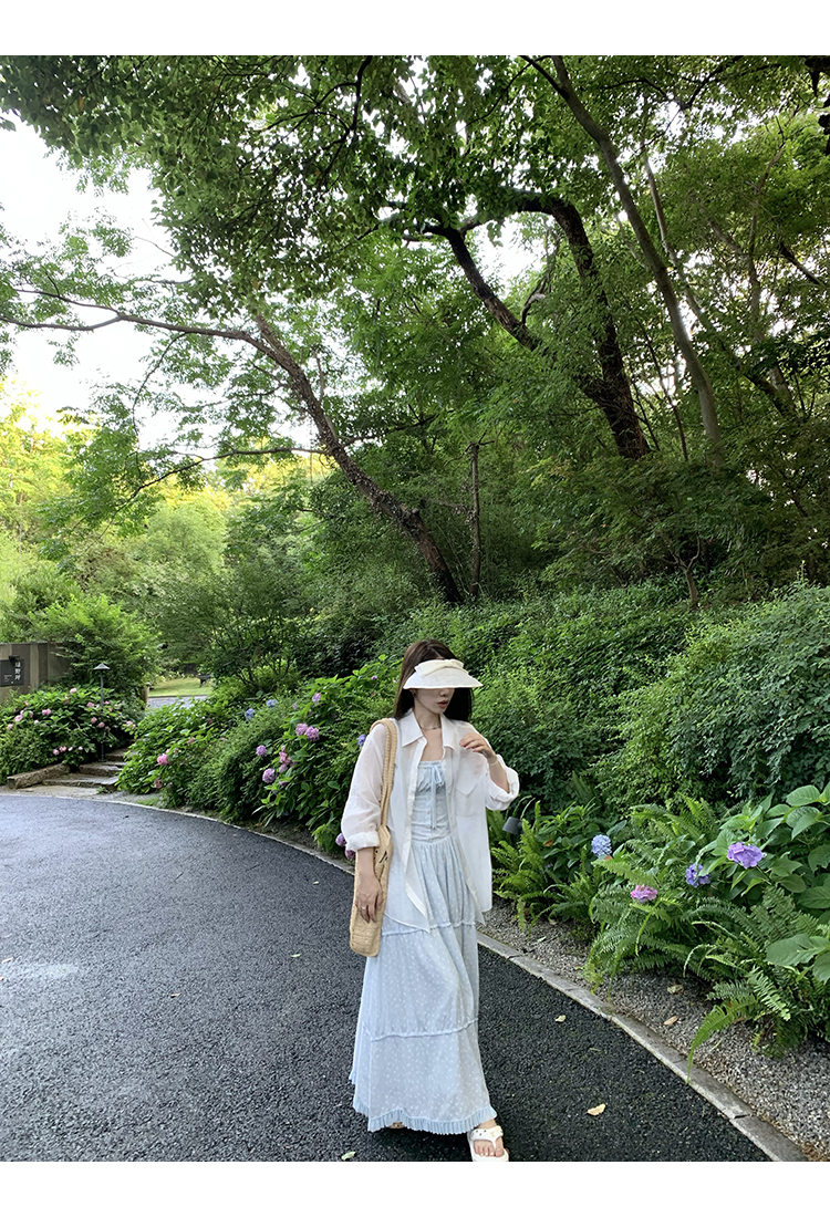 *o-ha-you*【FMQL2042082】奧維爾莊園法式度假波點蛋糕裙打攬收腰顯瘦中長背心連衣裙洋裝
