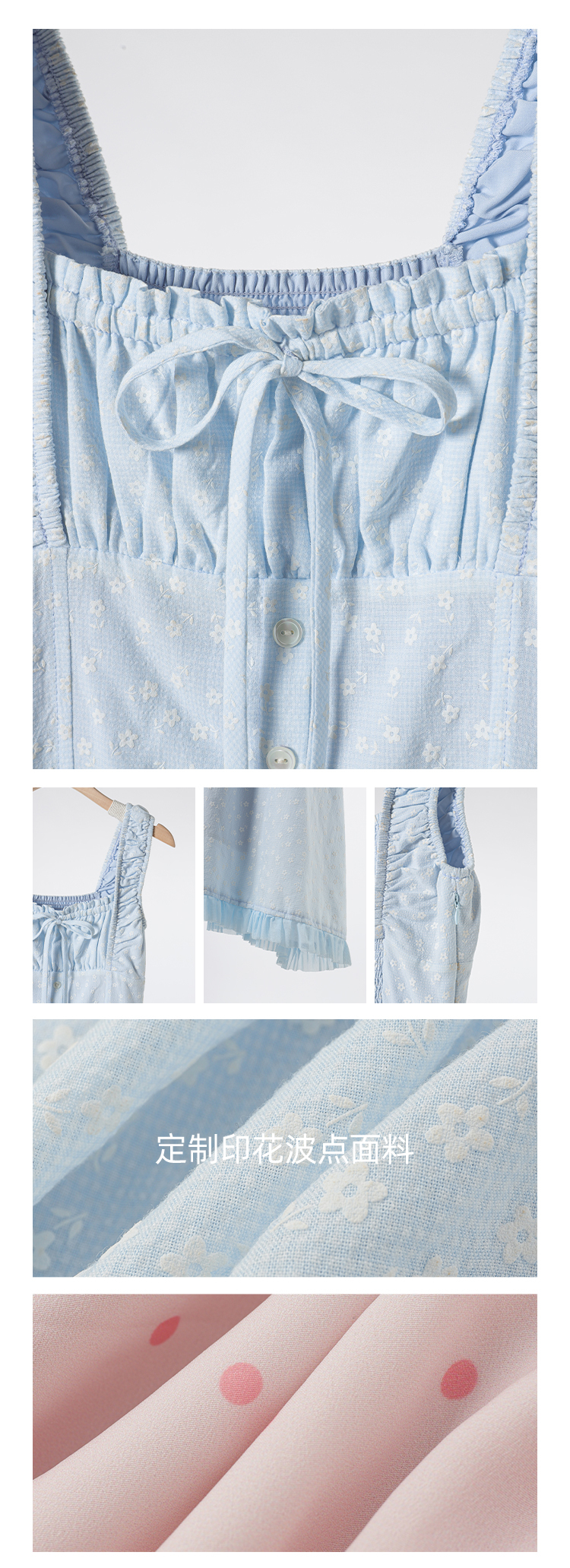 布料成分 : 藍色波點:65%人類棉 35%聚酯纖維