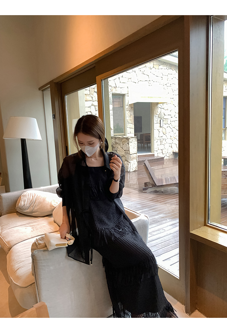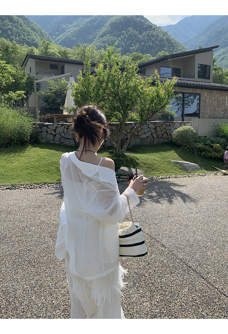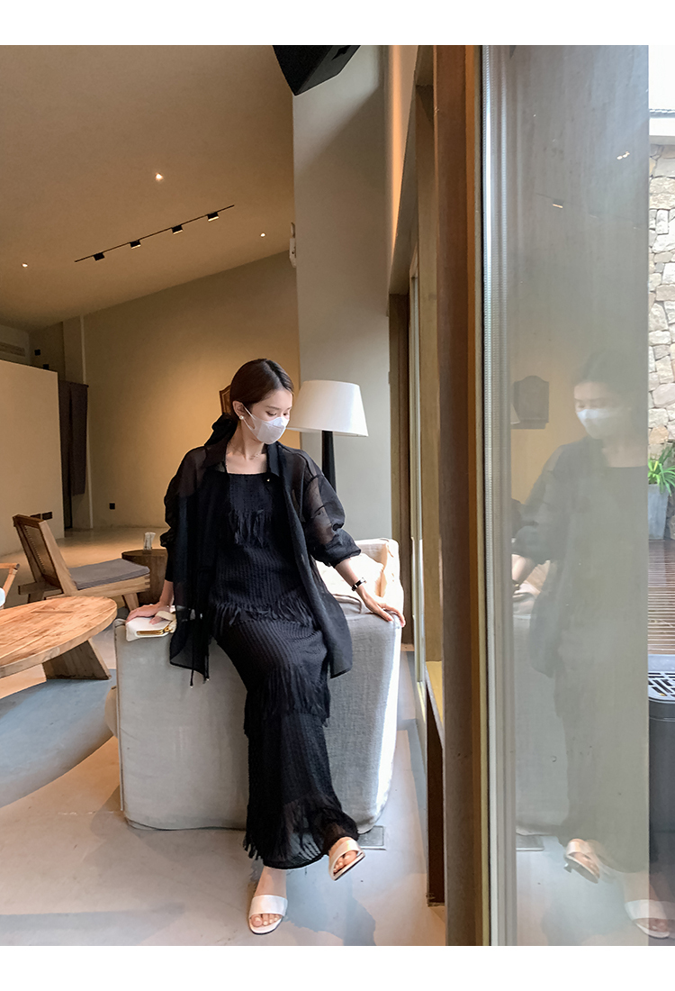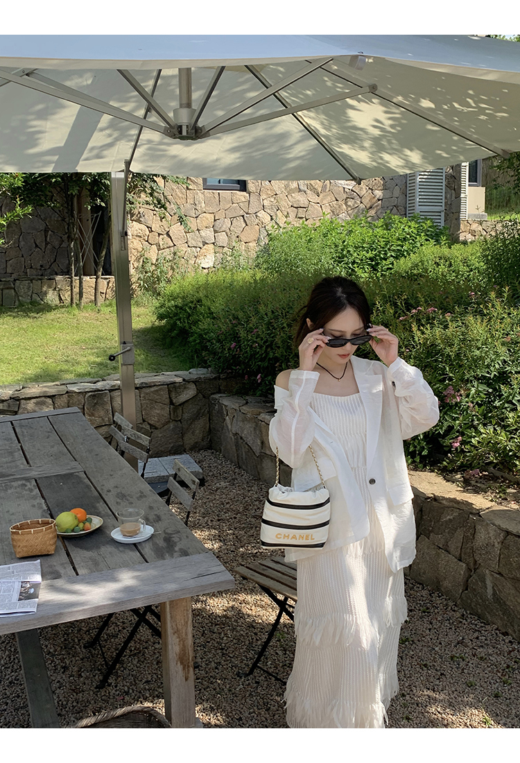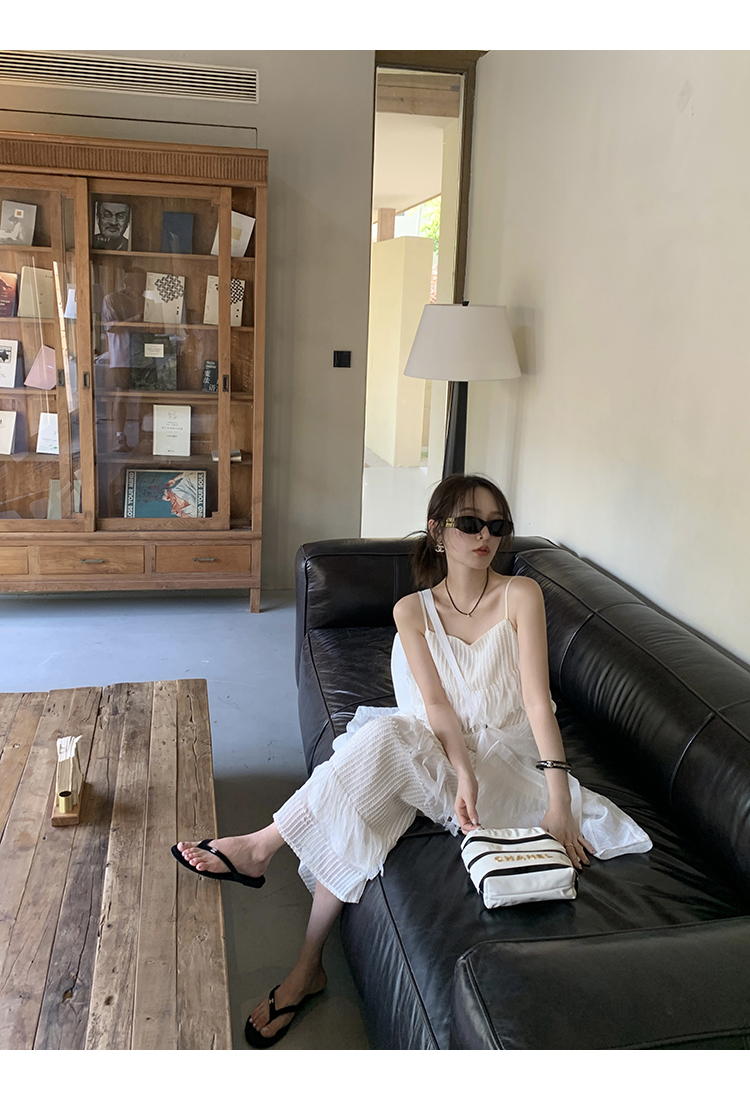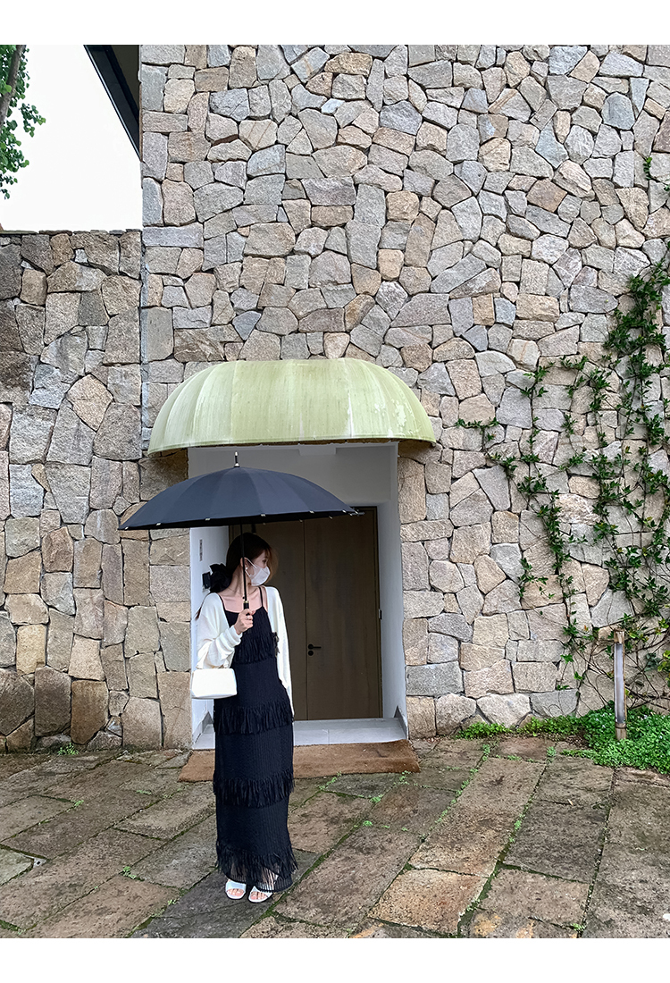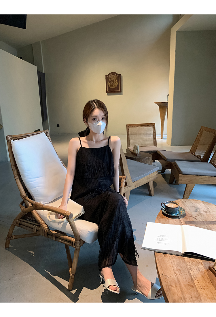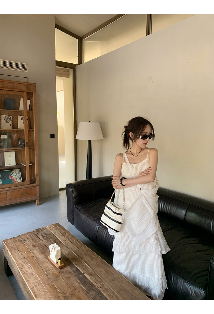 *o-ha-you*【FMQL2042083】浮世輕羽-法式流蘇裙涼感親膚肌理布料遮副乳吊帶裙洋裝