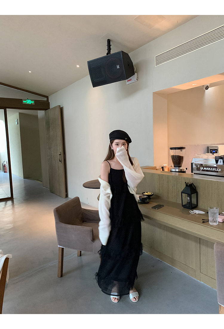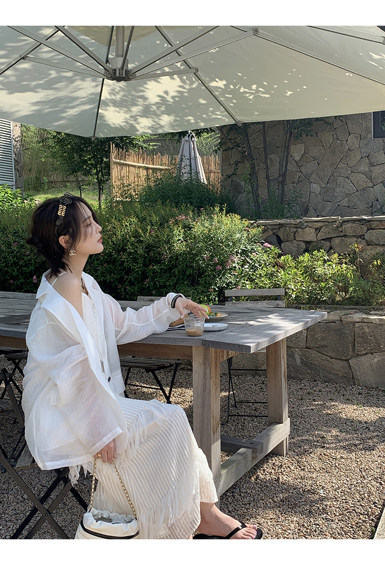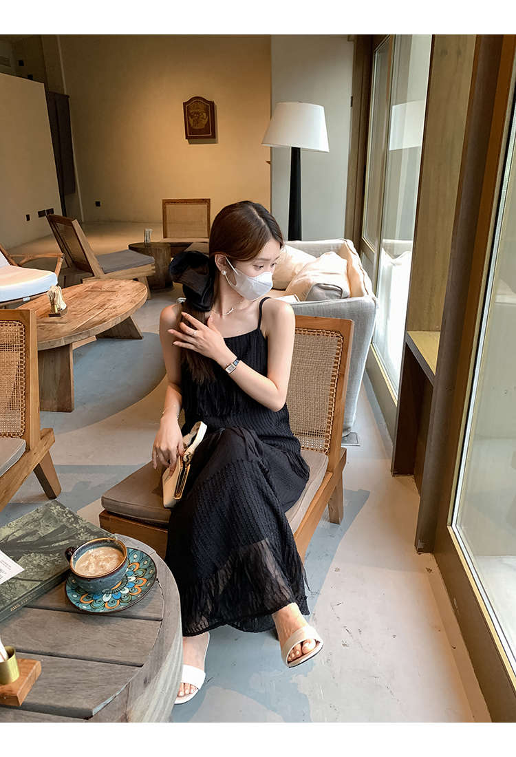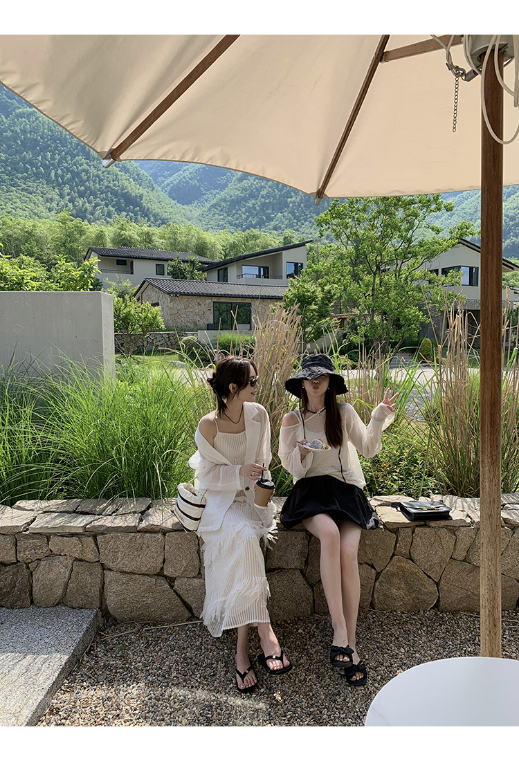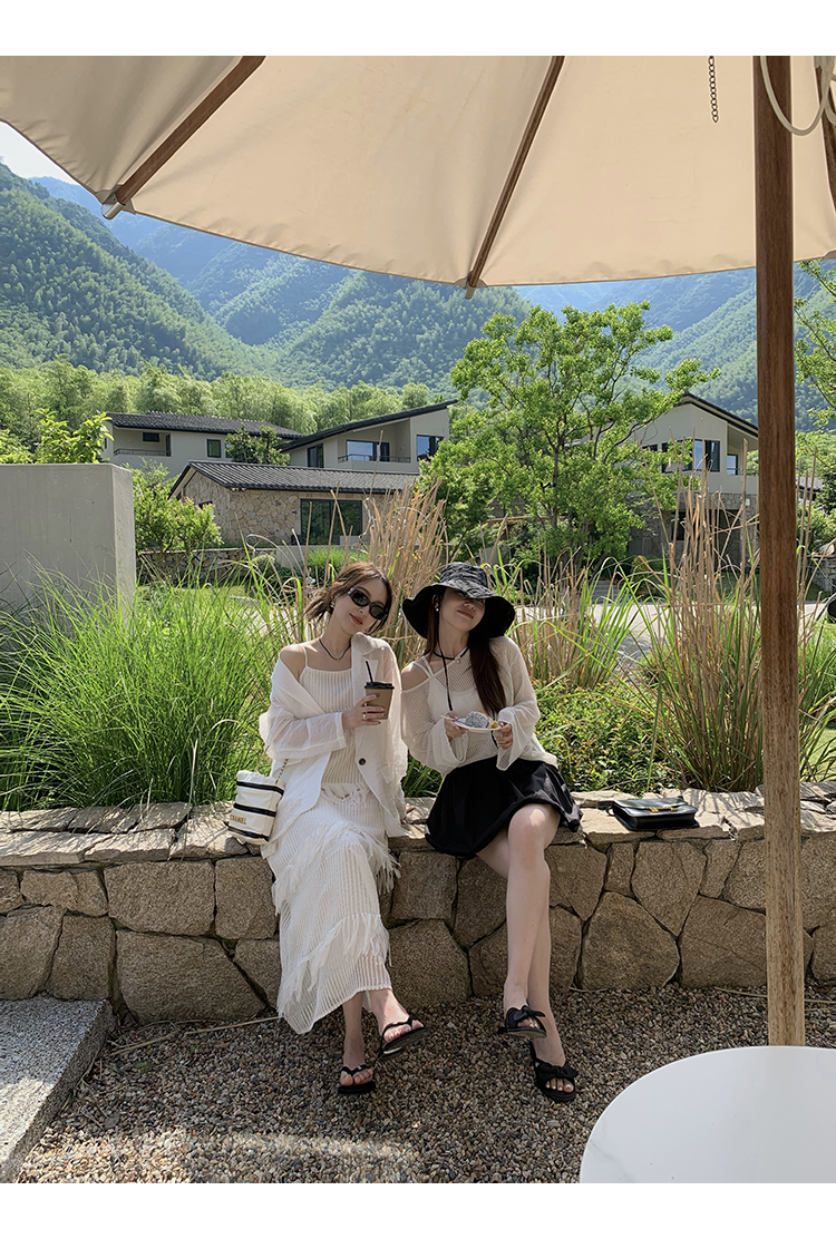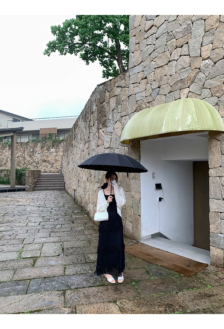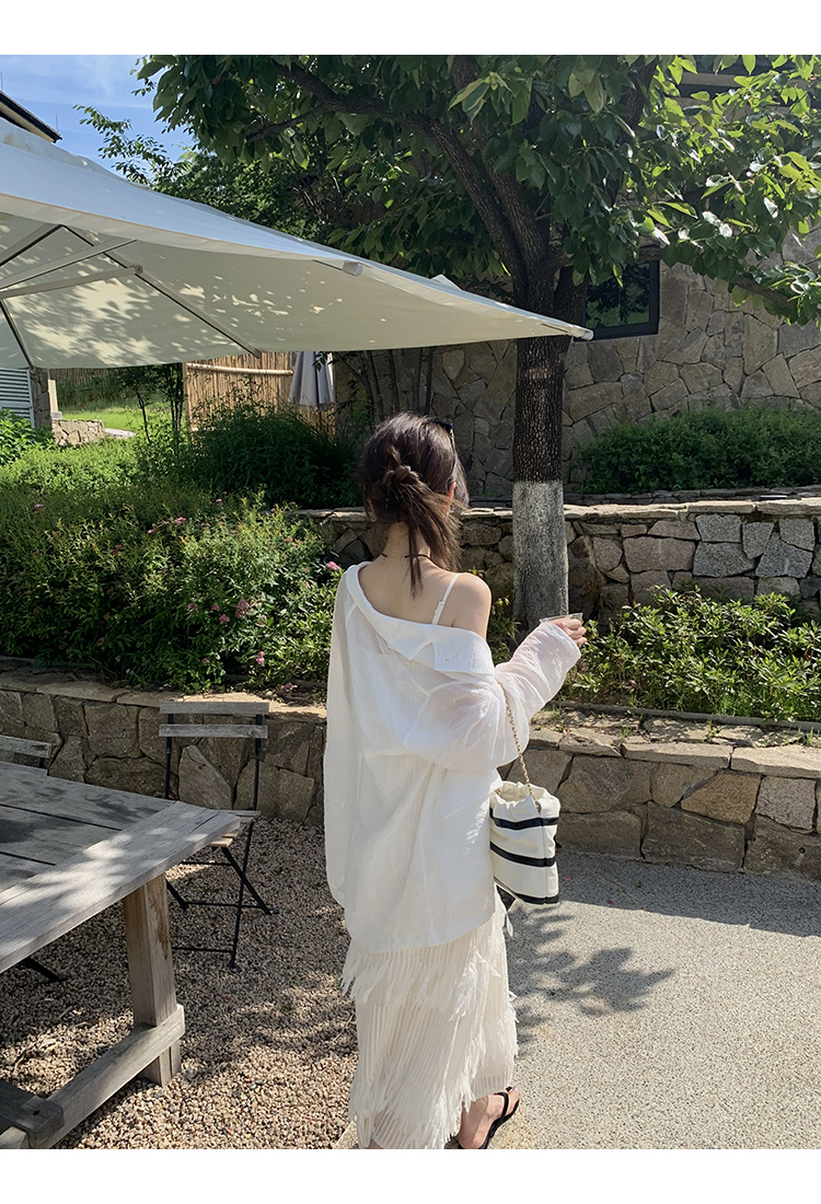 *o-ha-you*【FMQL2042083】浮世輕羽-法式流蘇裙涼感親膚肌理布料遮副乳吊帶裙洋裝