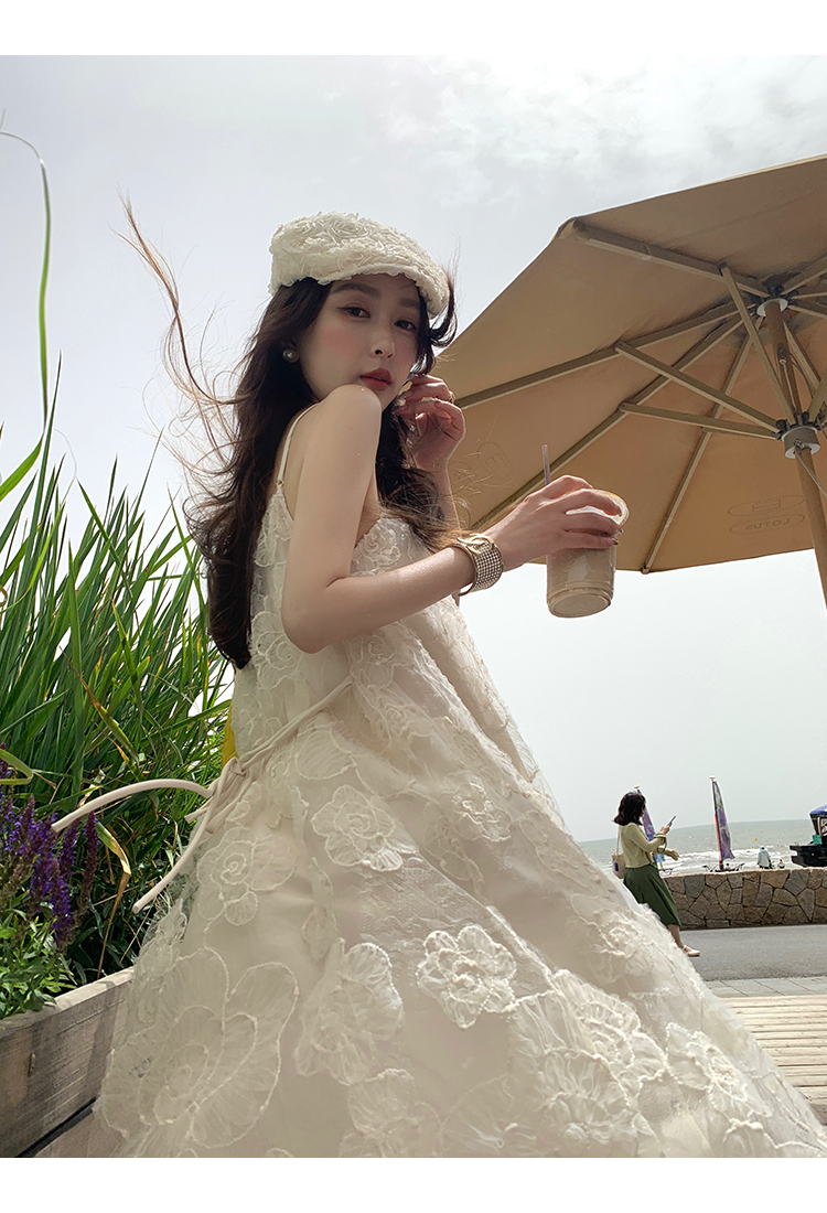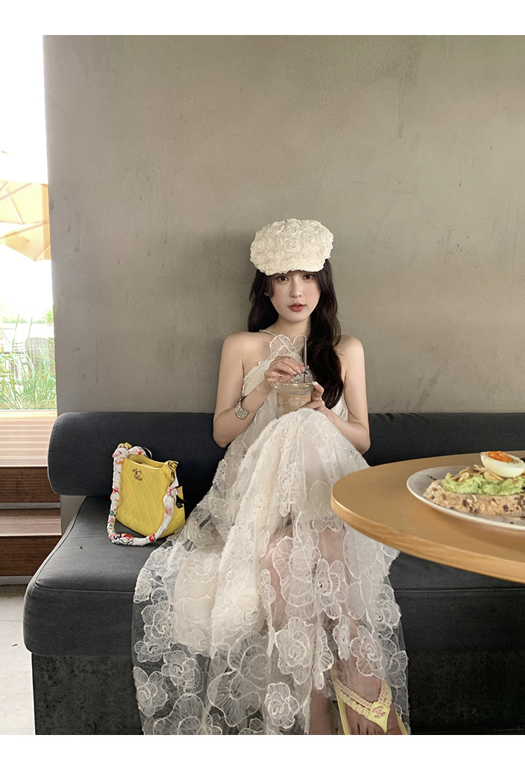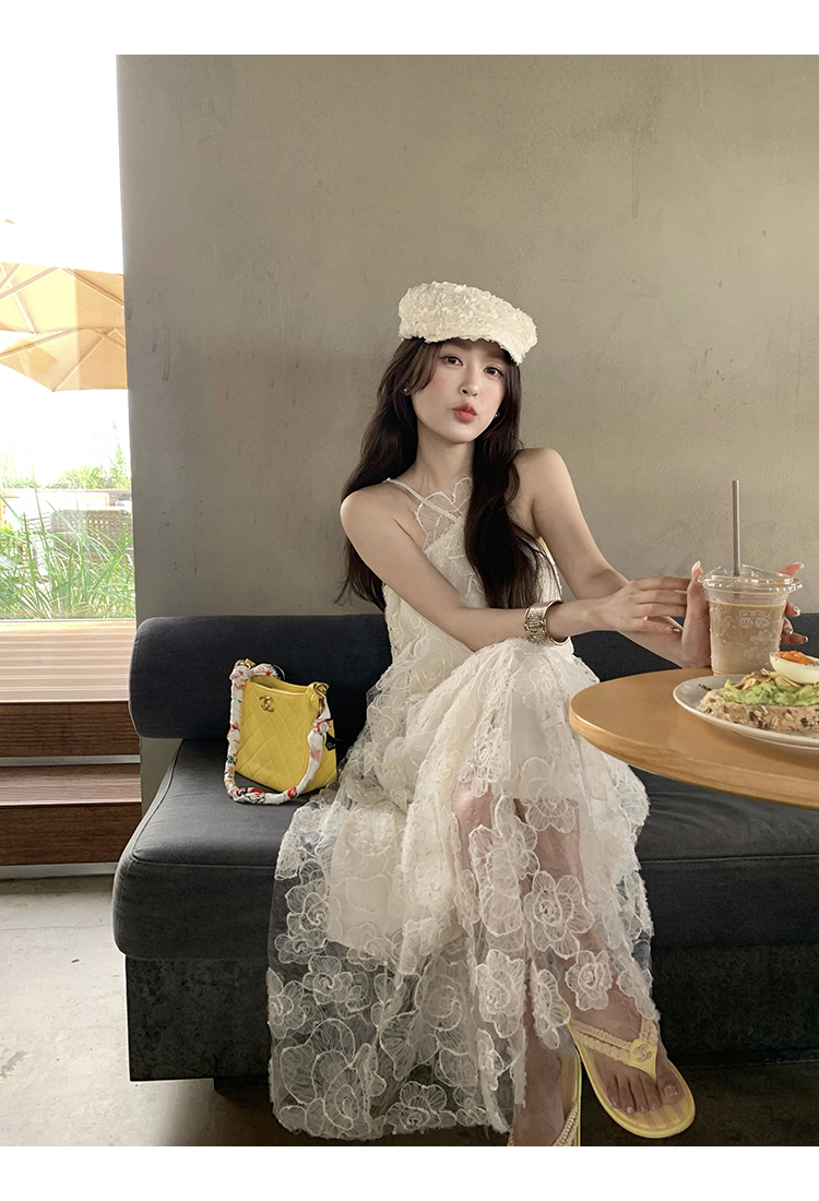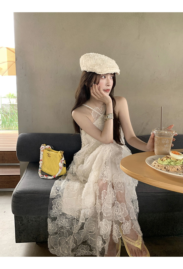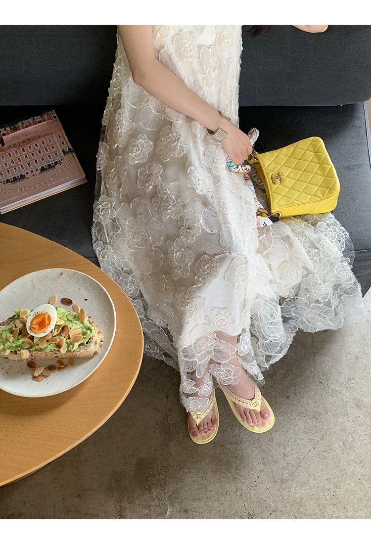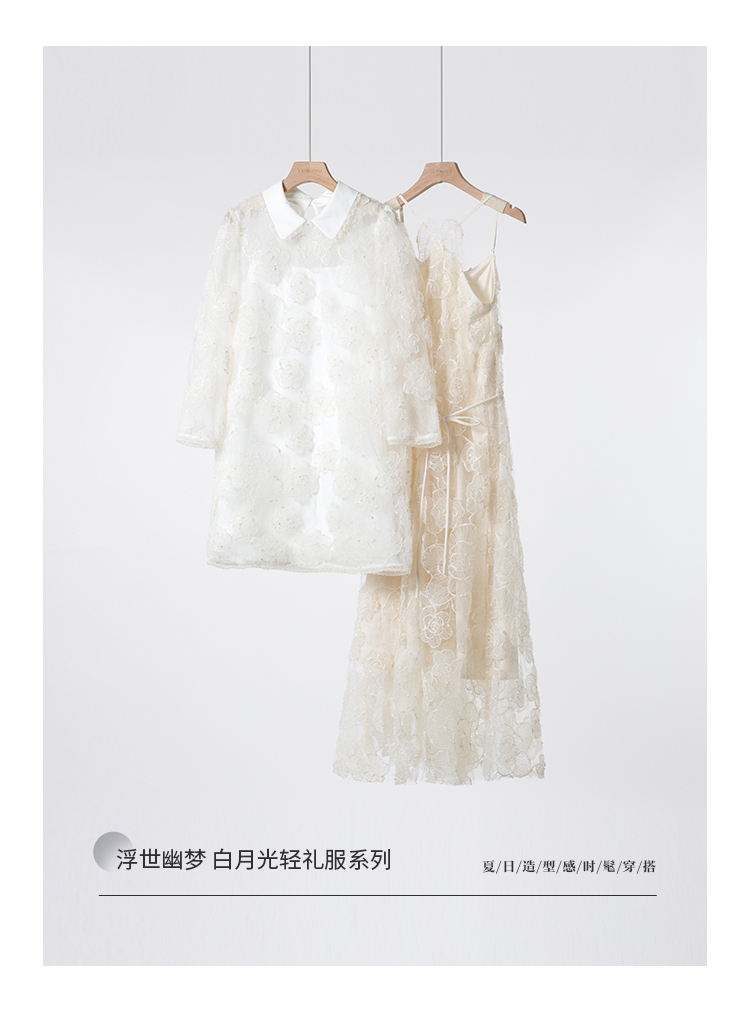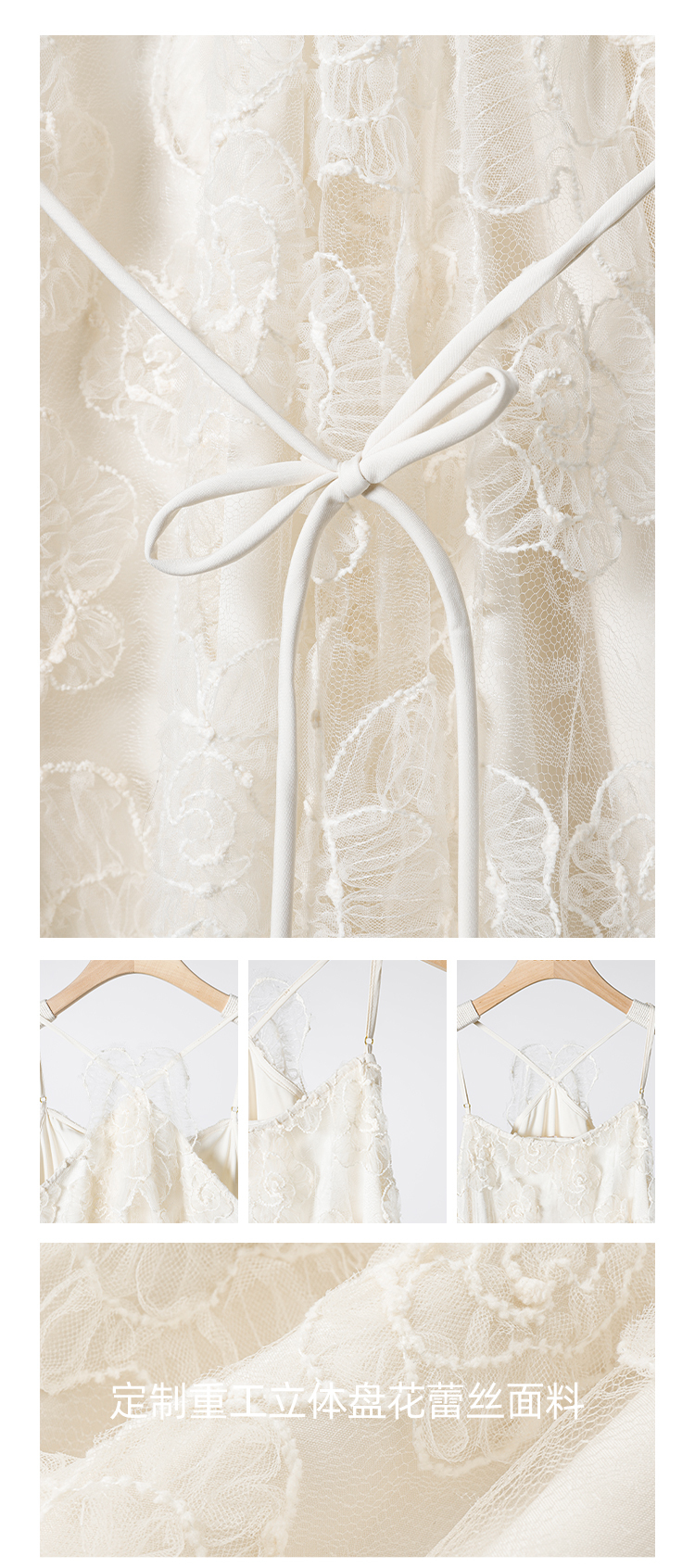 *o-ha-you*【FMQL2042092】浮世幽夢白月光輕禮服系列重工立體盤花蕾絲仙氣吊帶裙/連衣裙洋裝