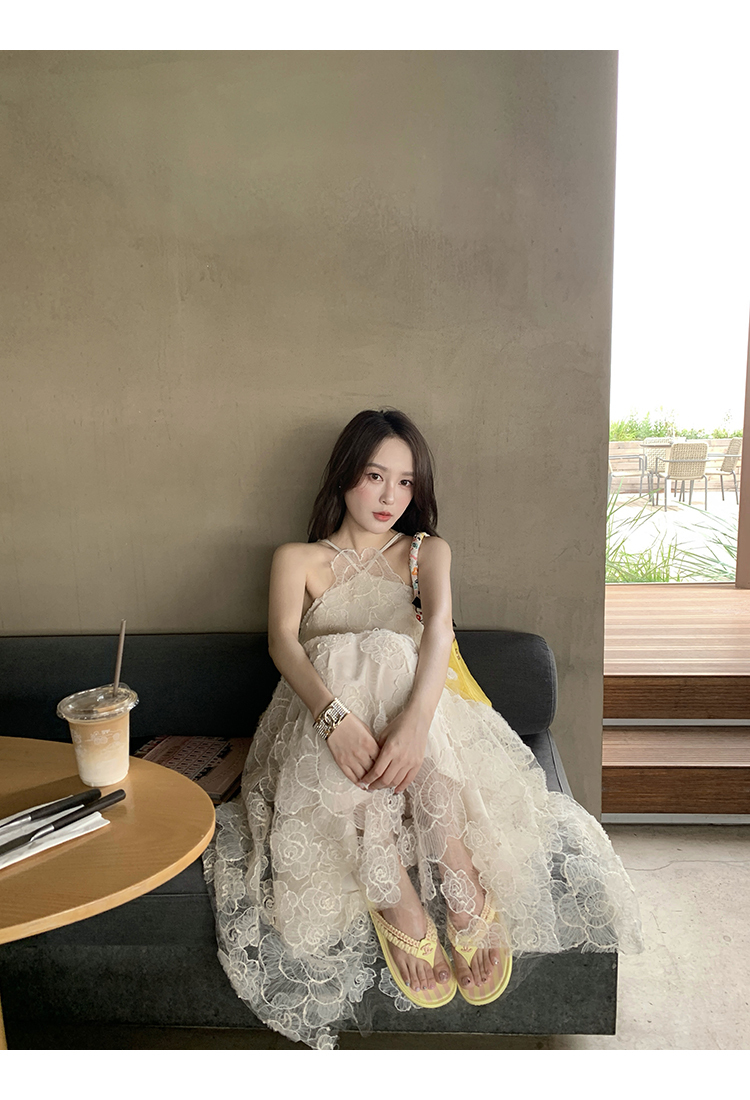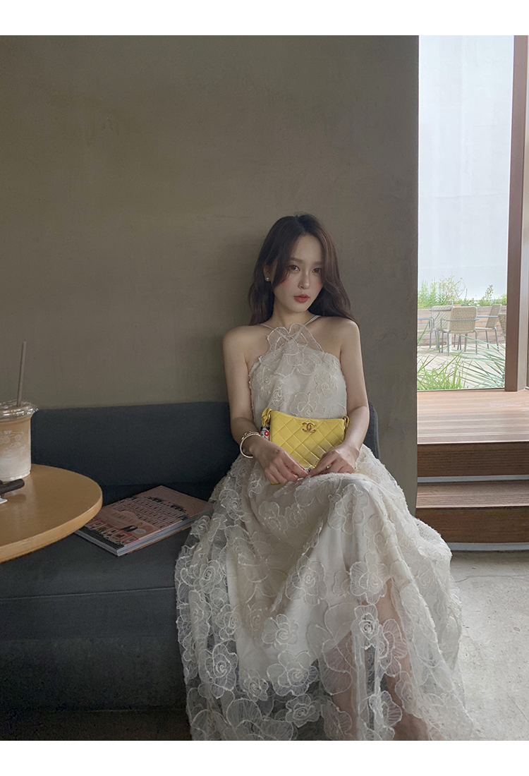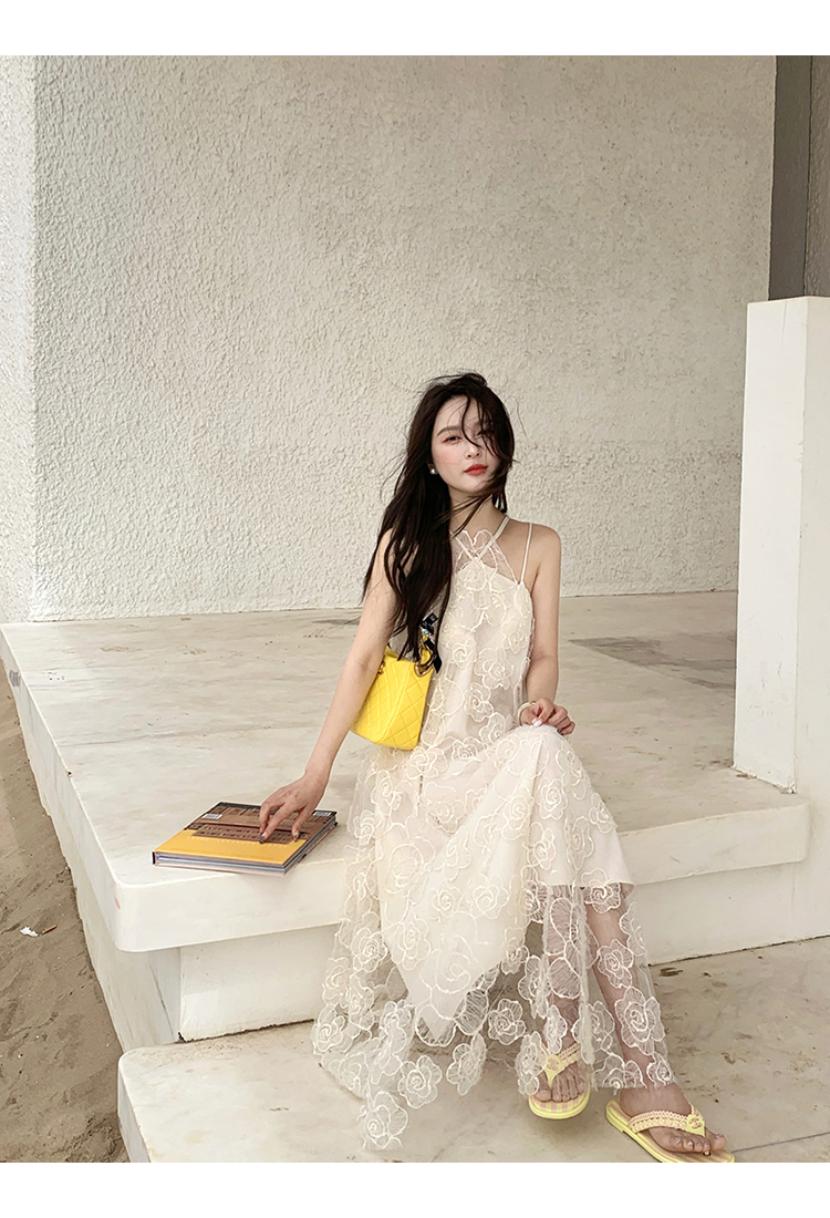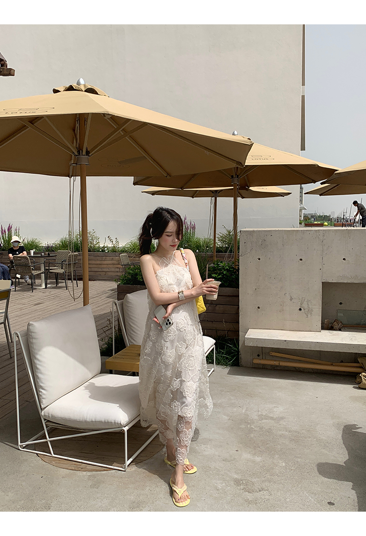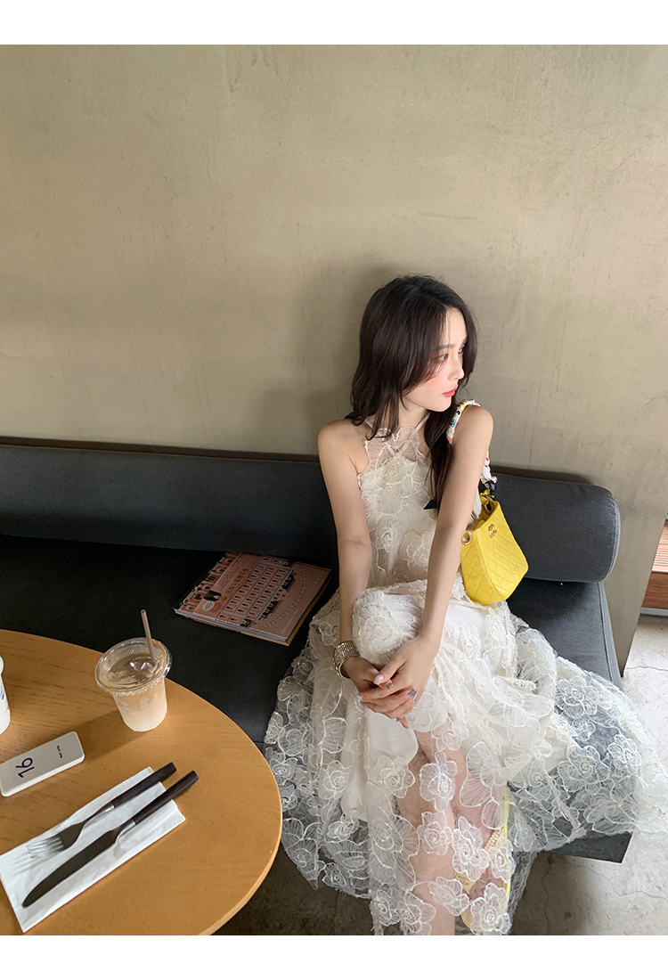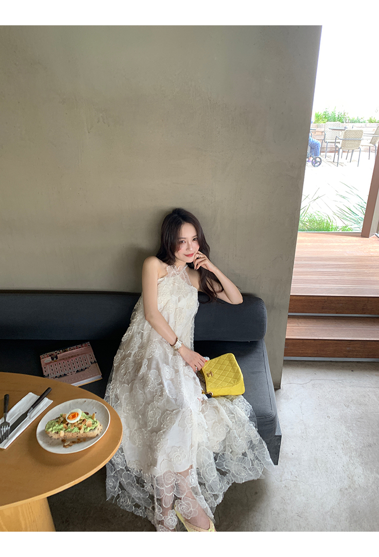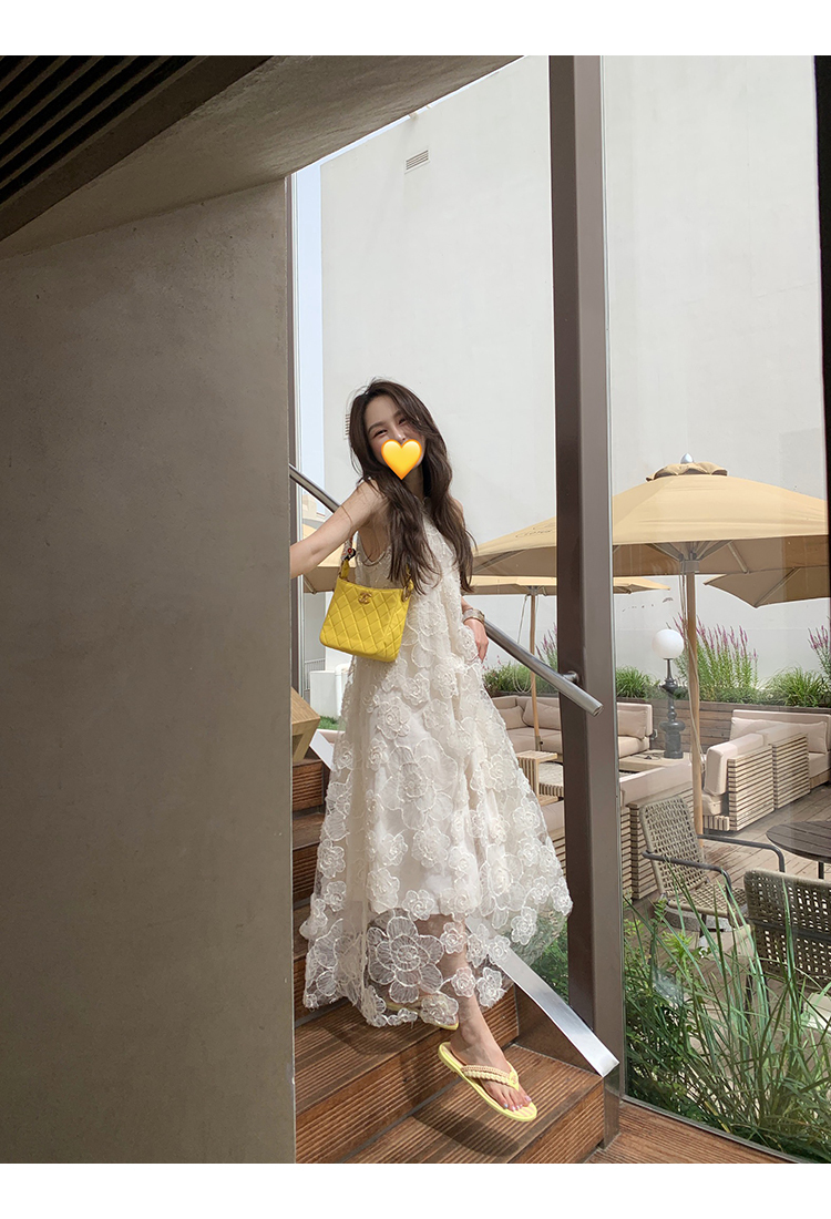 *o-ha-you*【FMQL2042092】浮世幽夢白月光輕禮服系列重工立體盤花蕾絲仙氣吊帶裙/連衣裙洋裝
